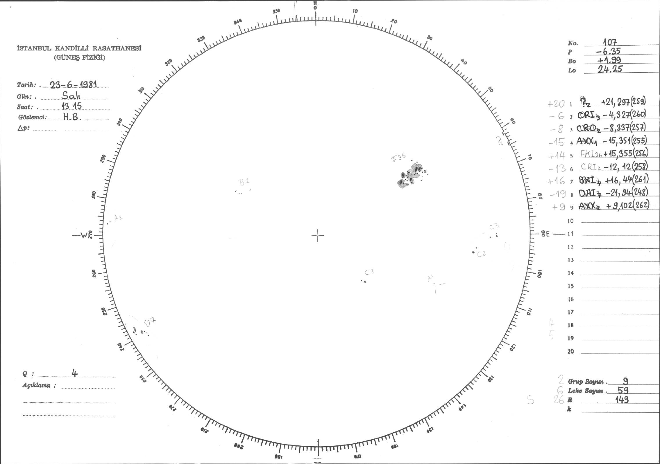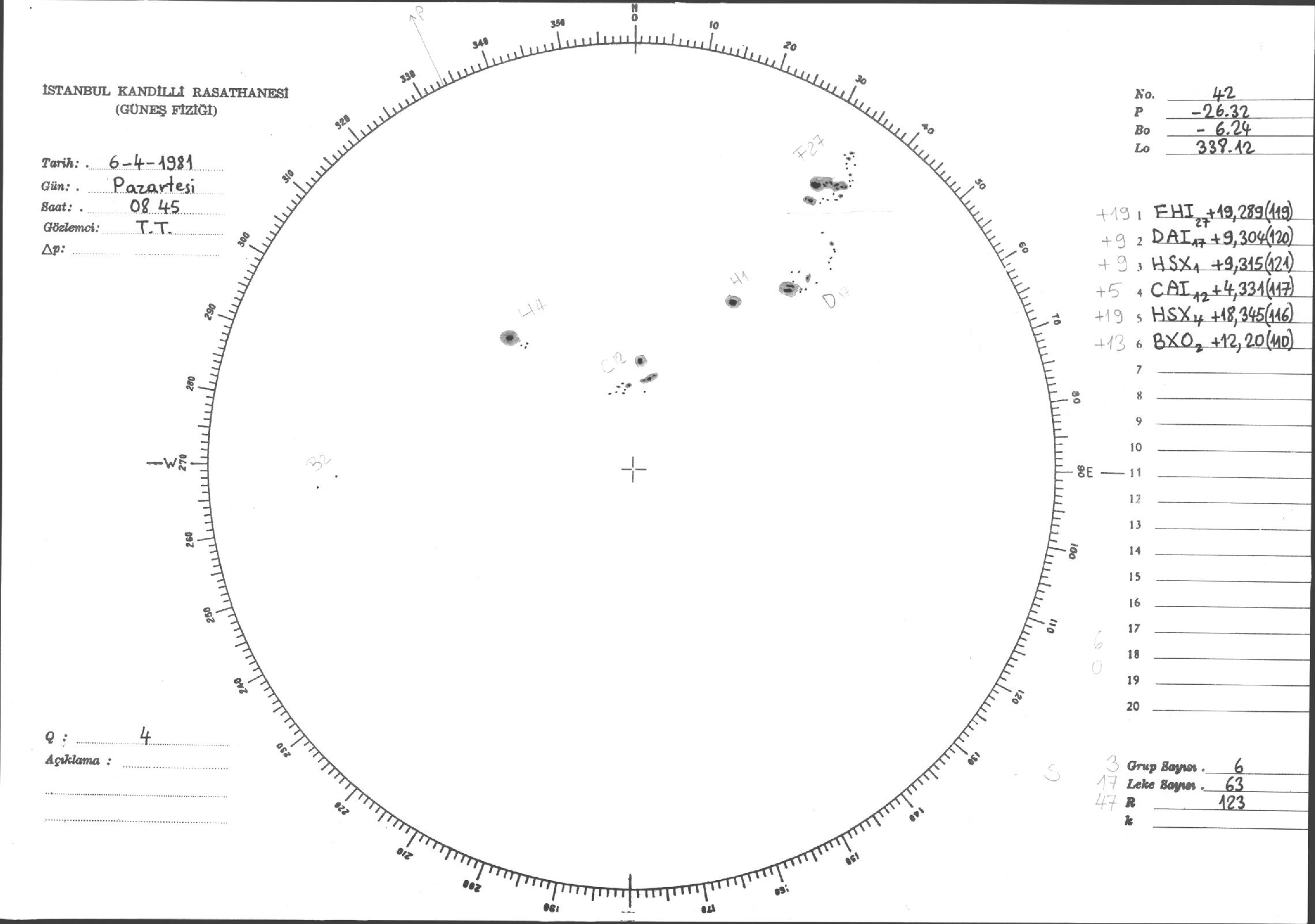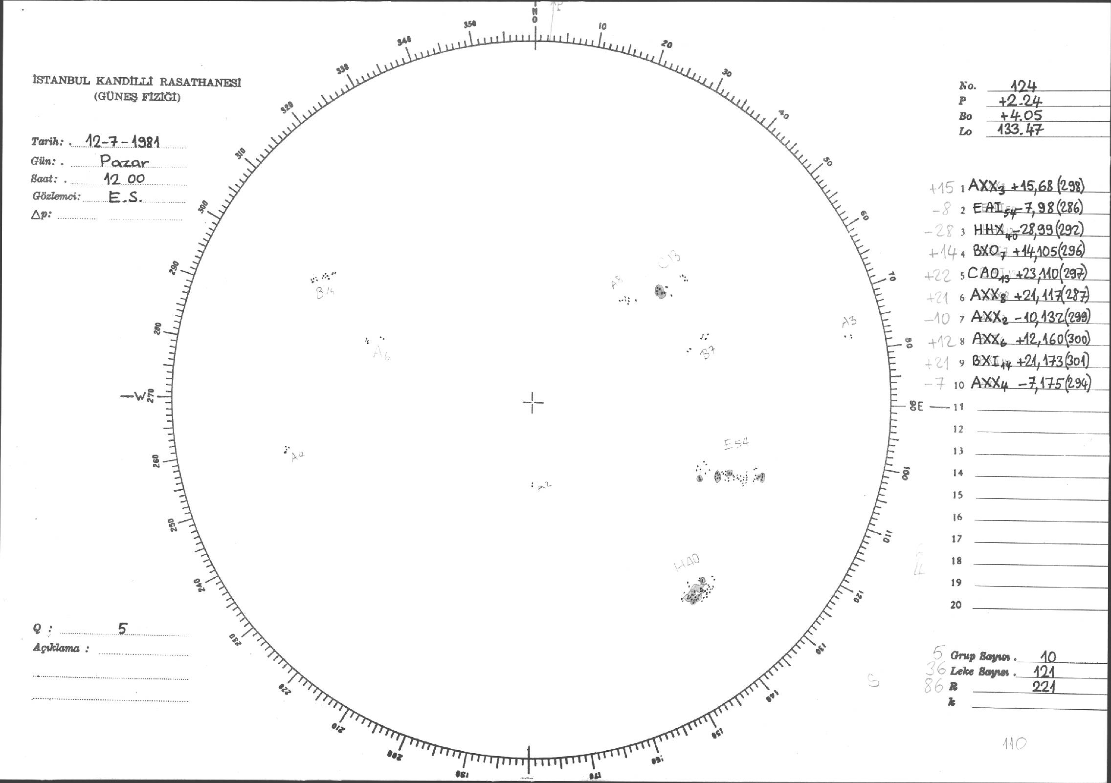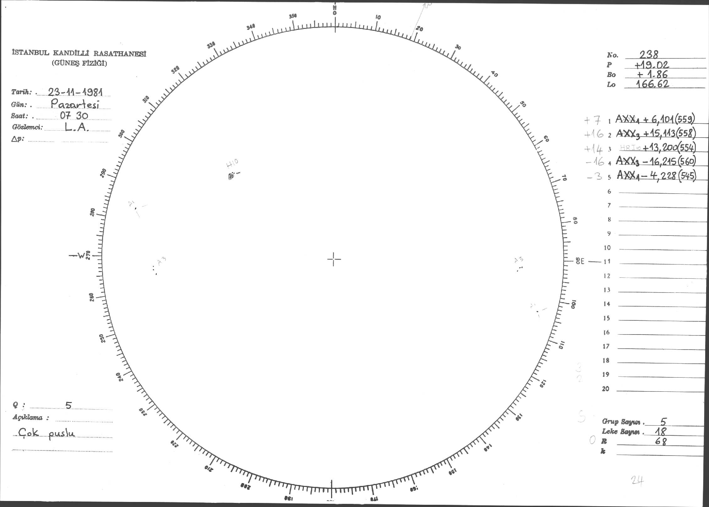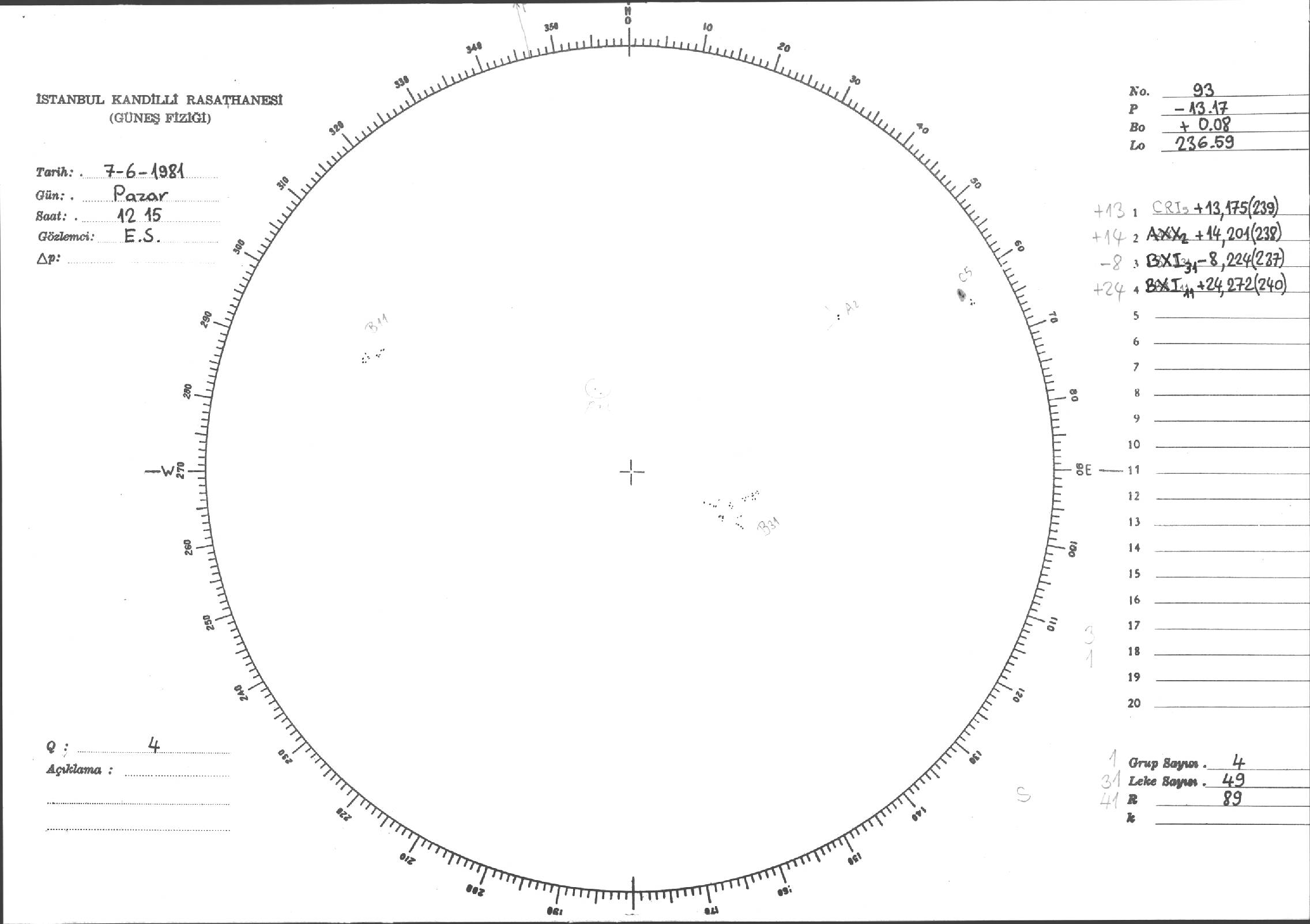 Güneş Lekesi Çizimleri / Kandilli Sunspot Drawings