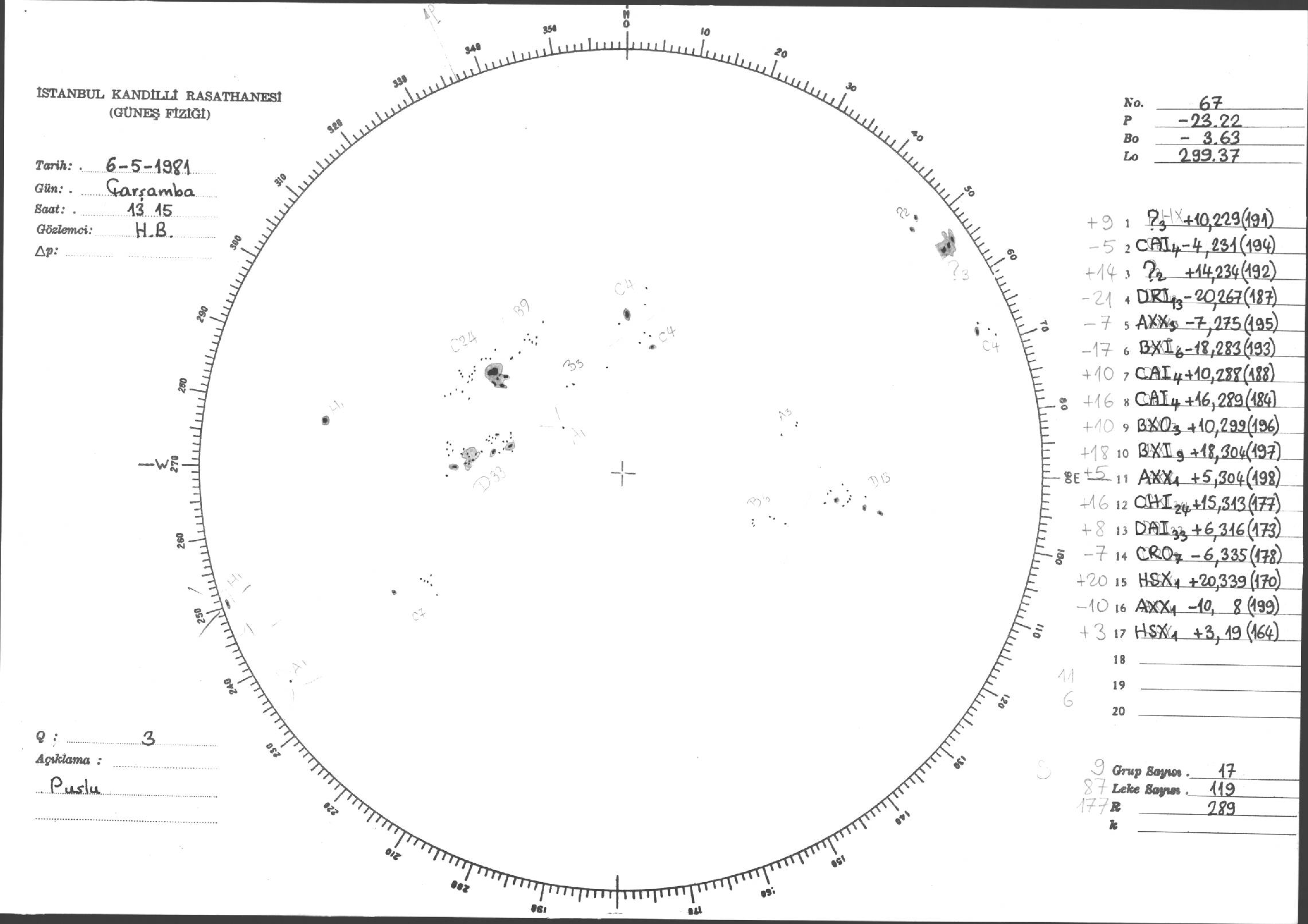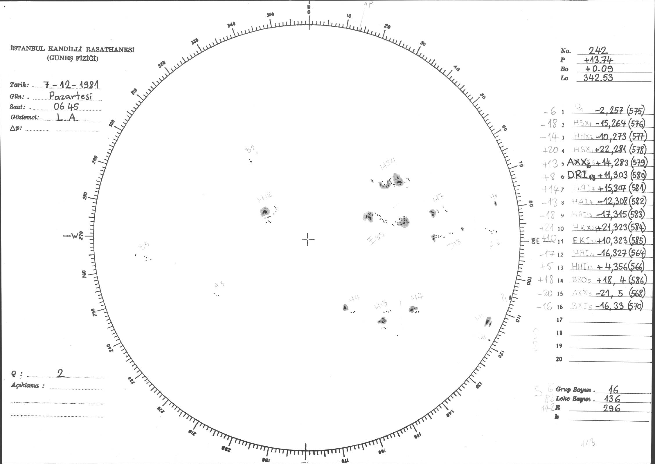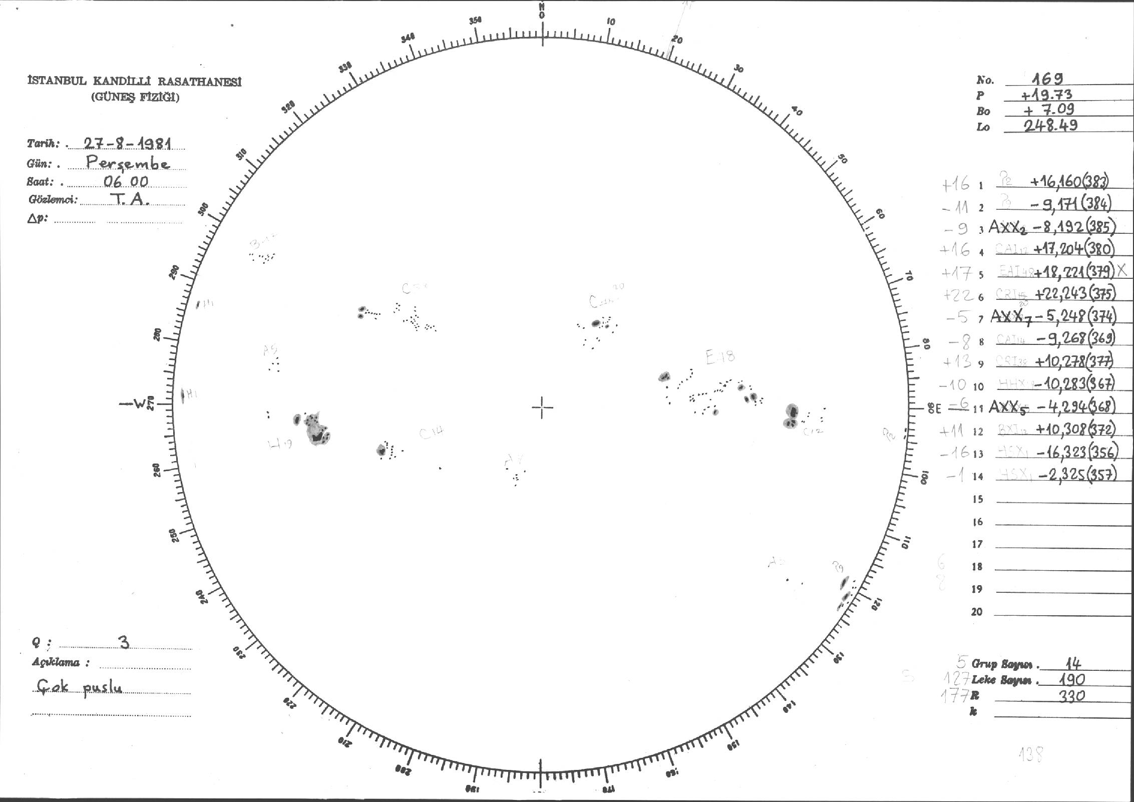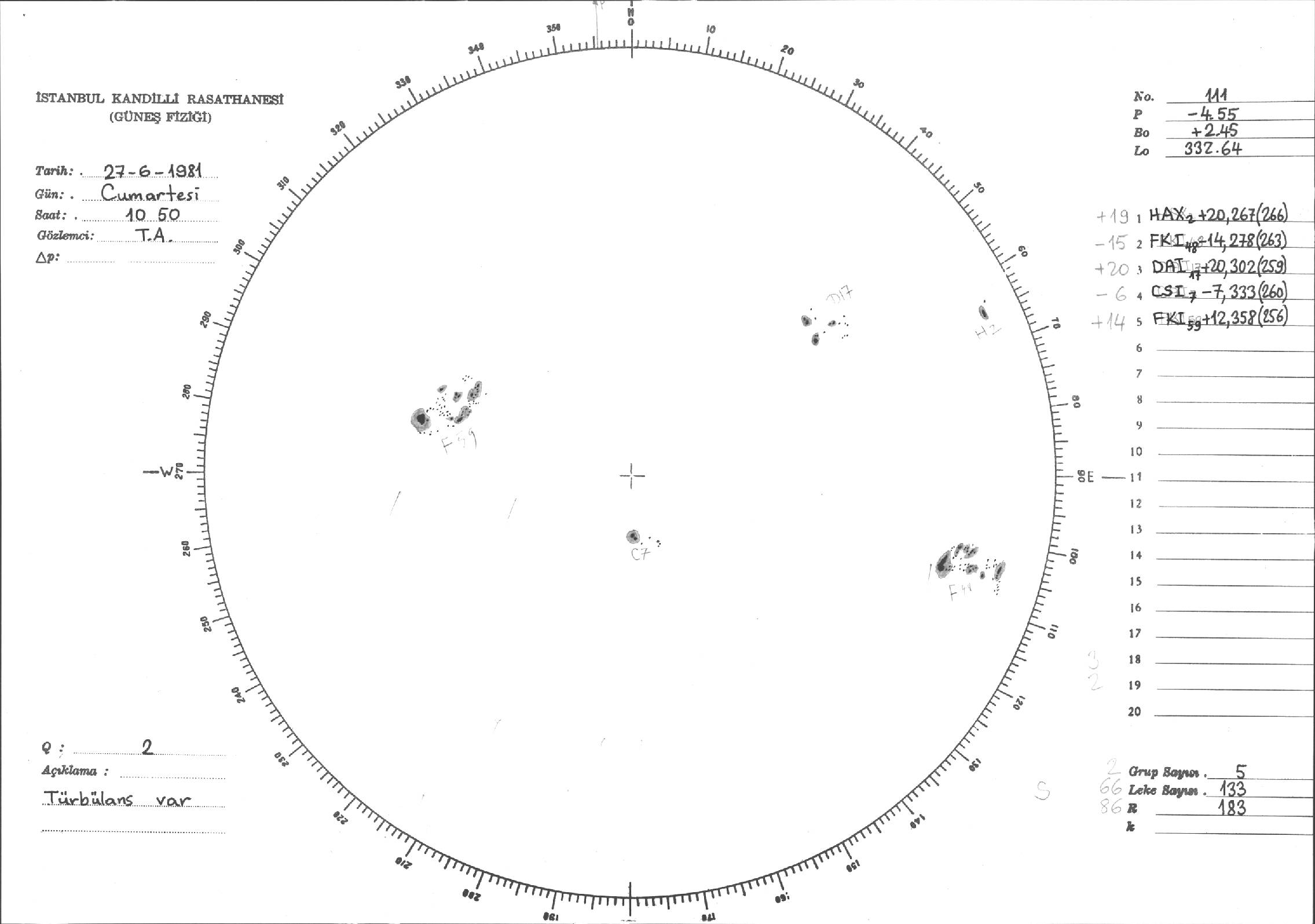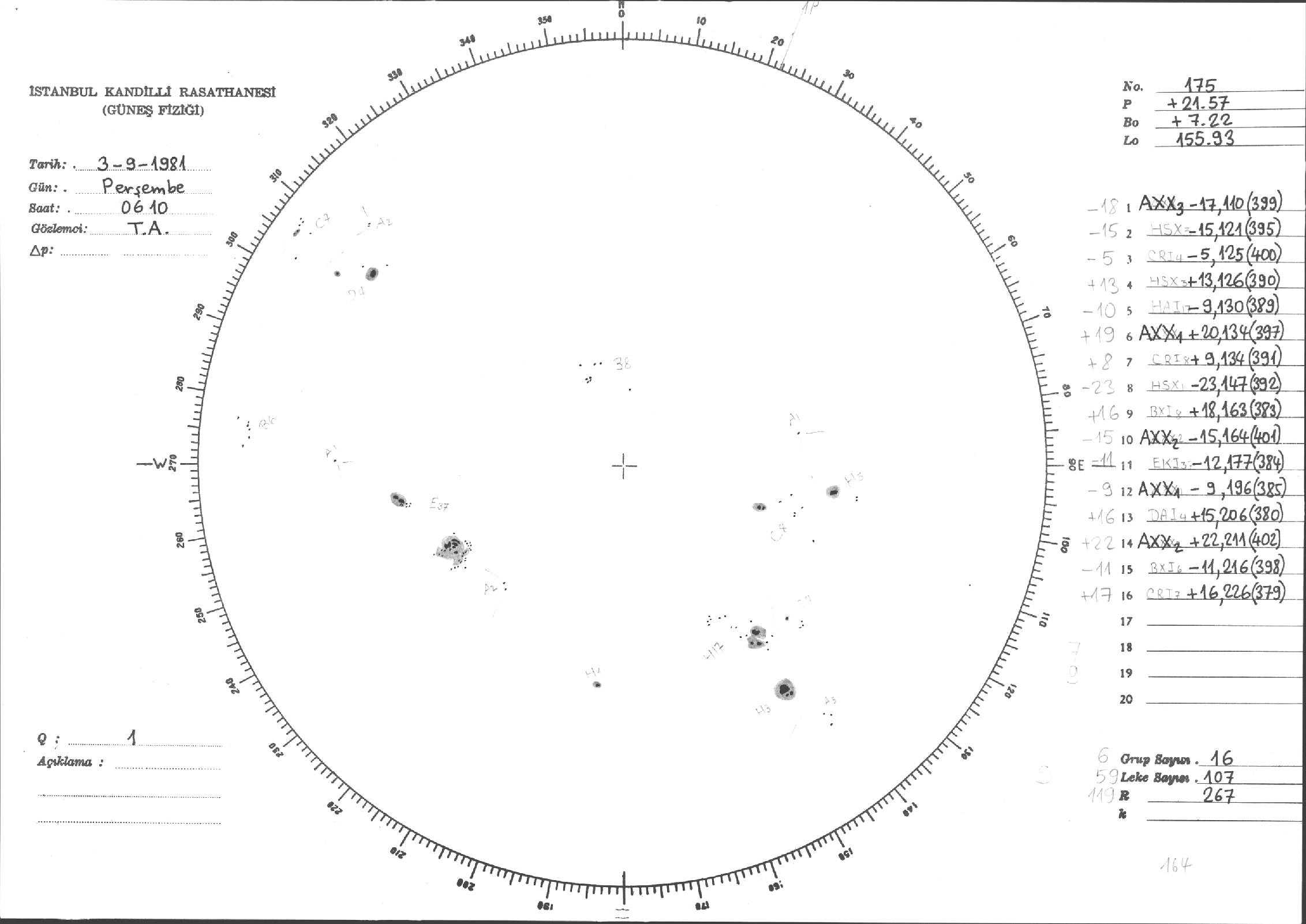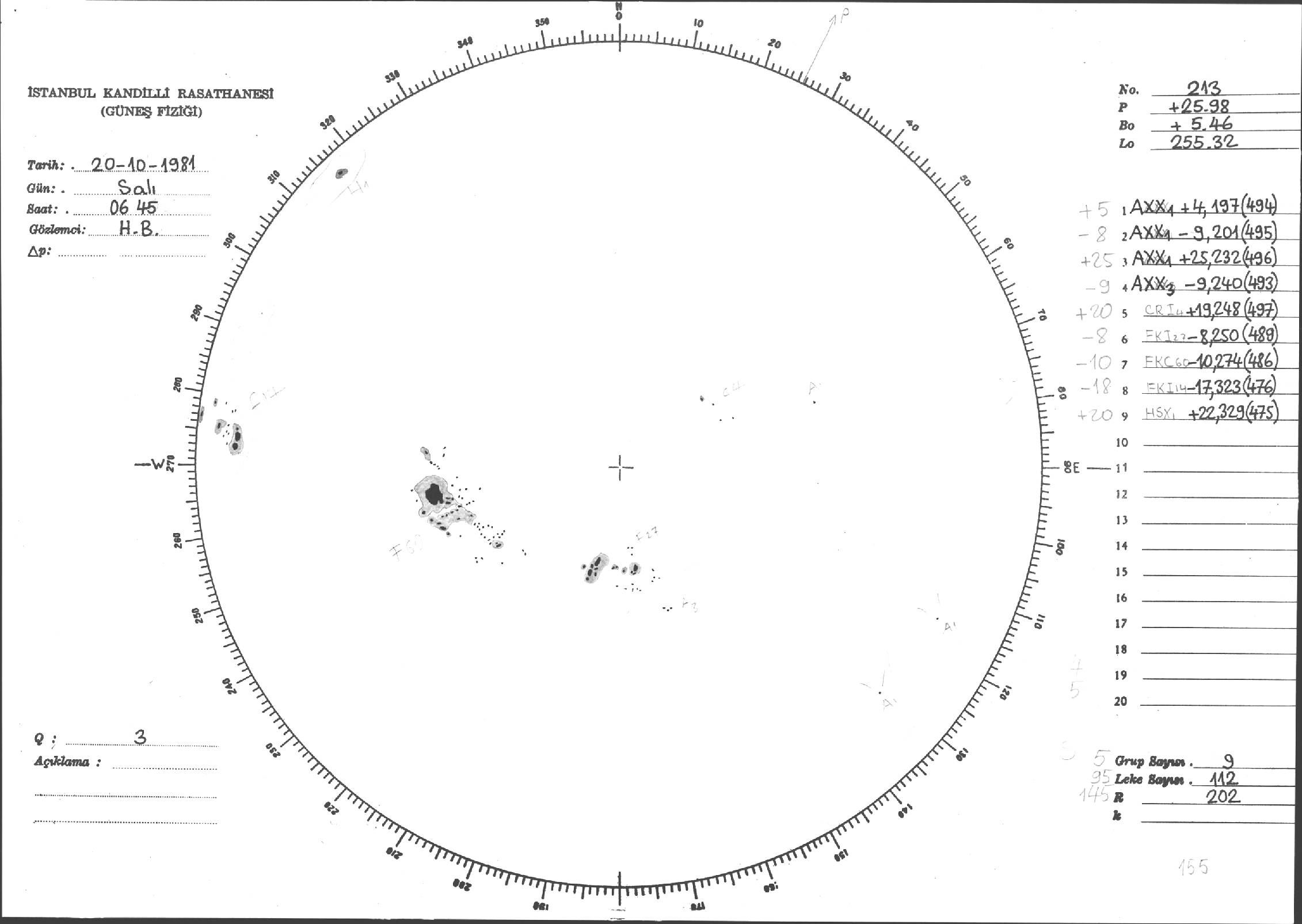 Güneş Lekesi Çizimleri / Kandilli Sunspot Drawings