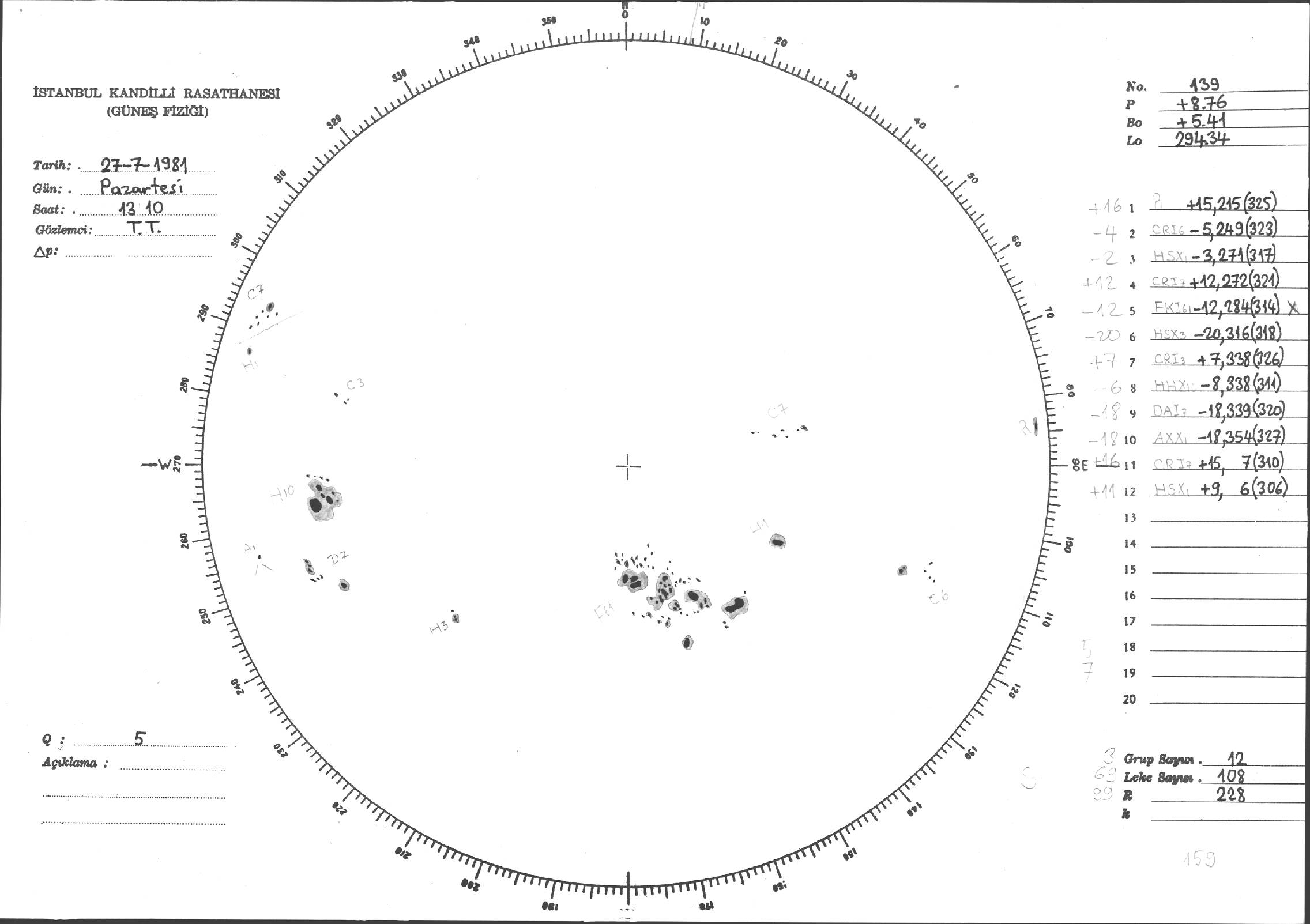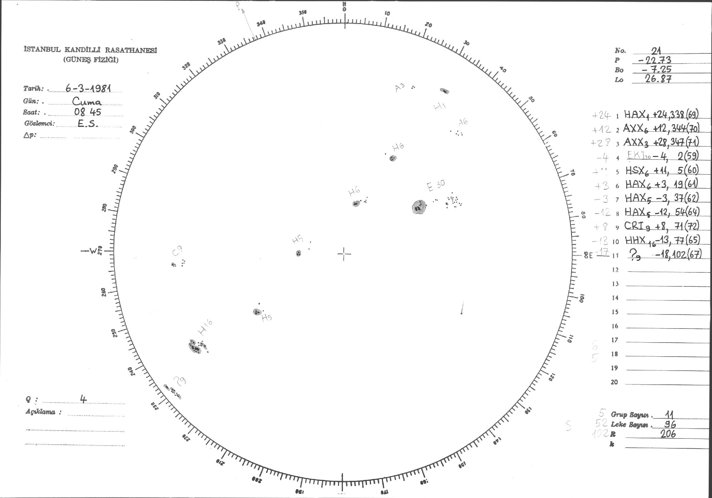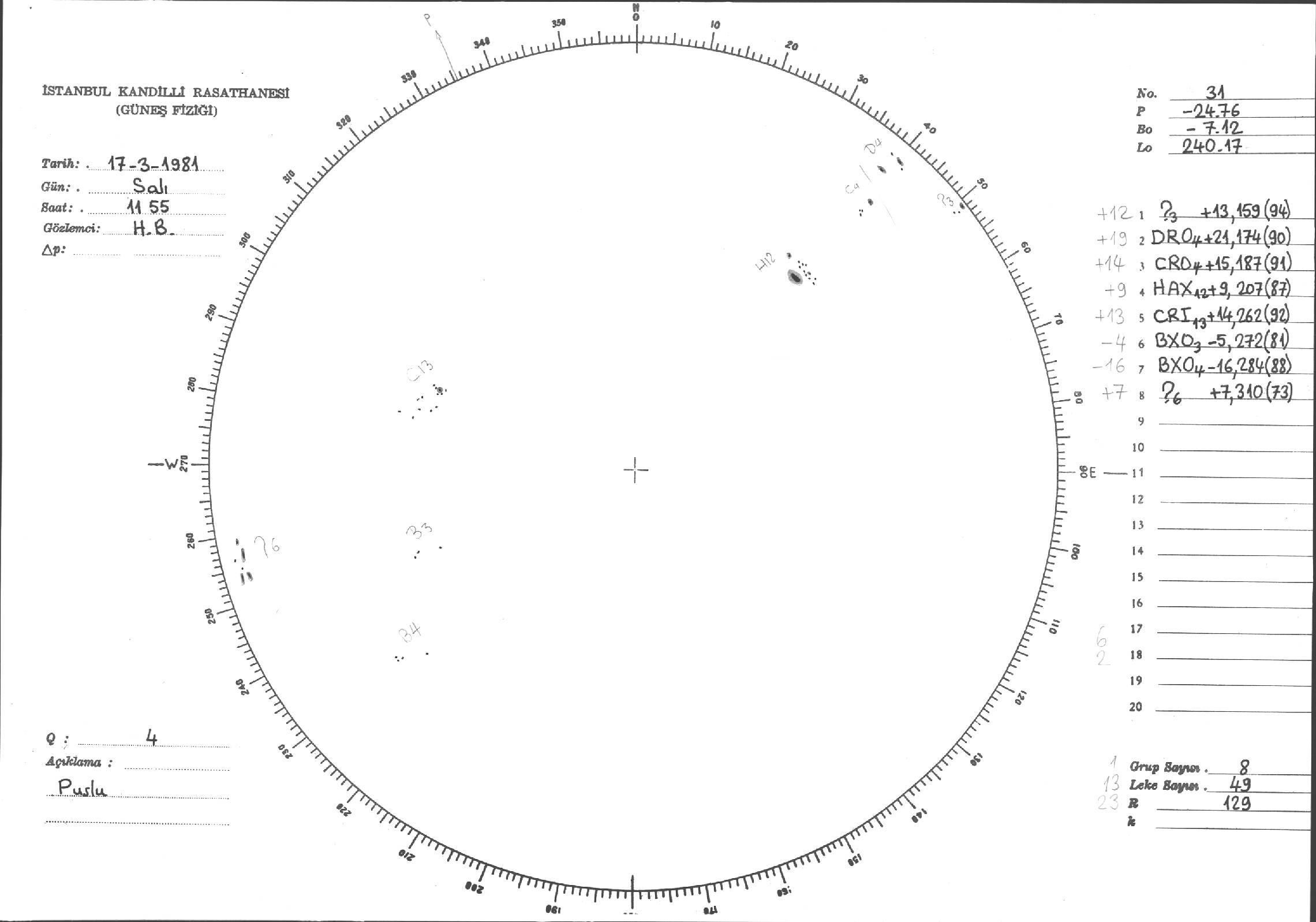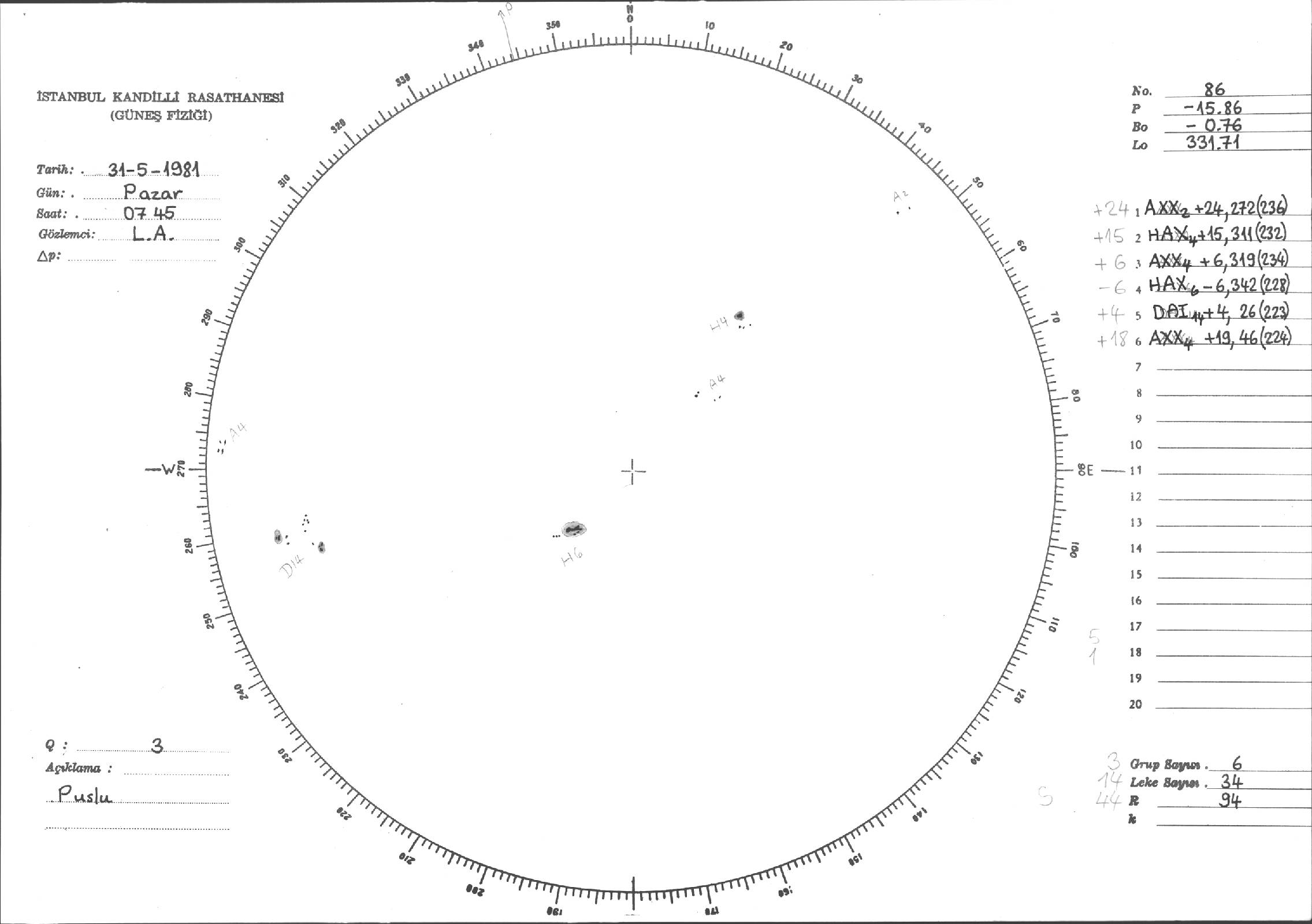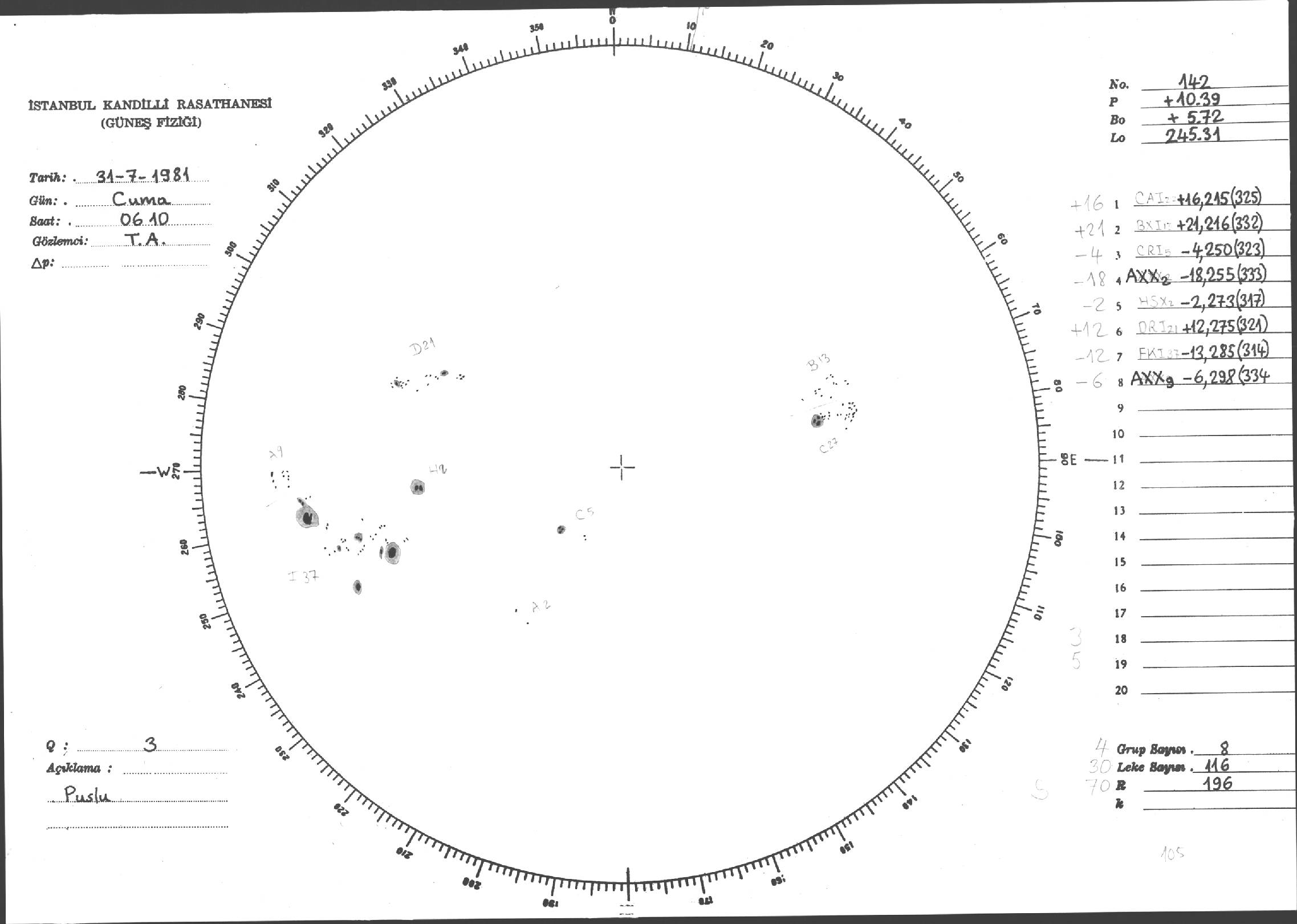 Güneş Lekesi Çizimleri / Kandilli Sunspot Drawings