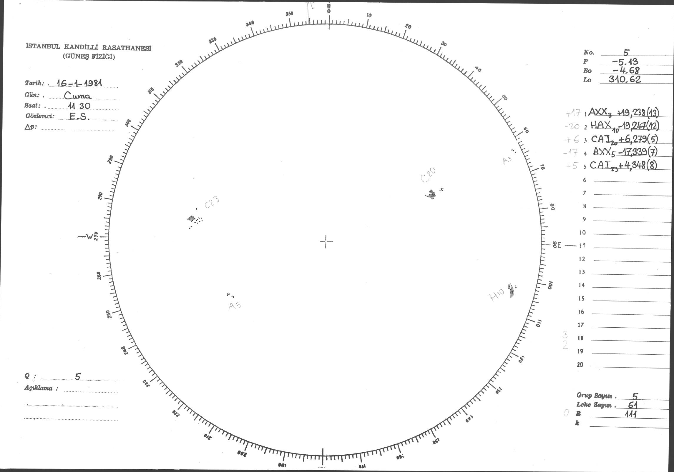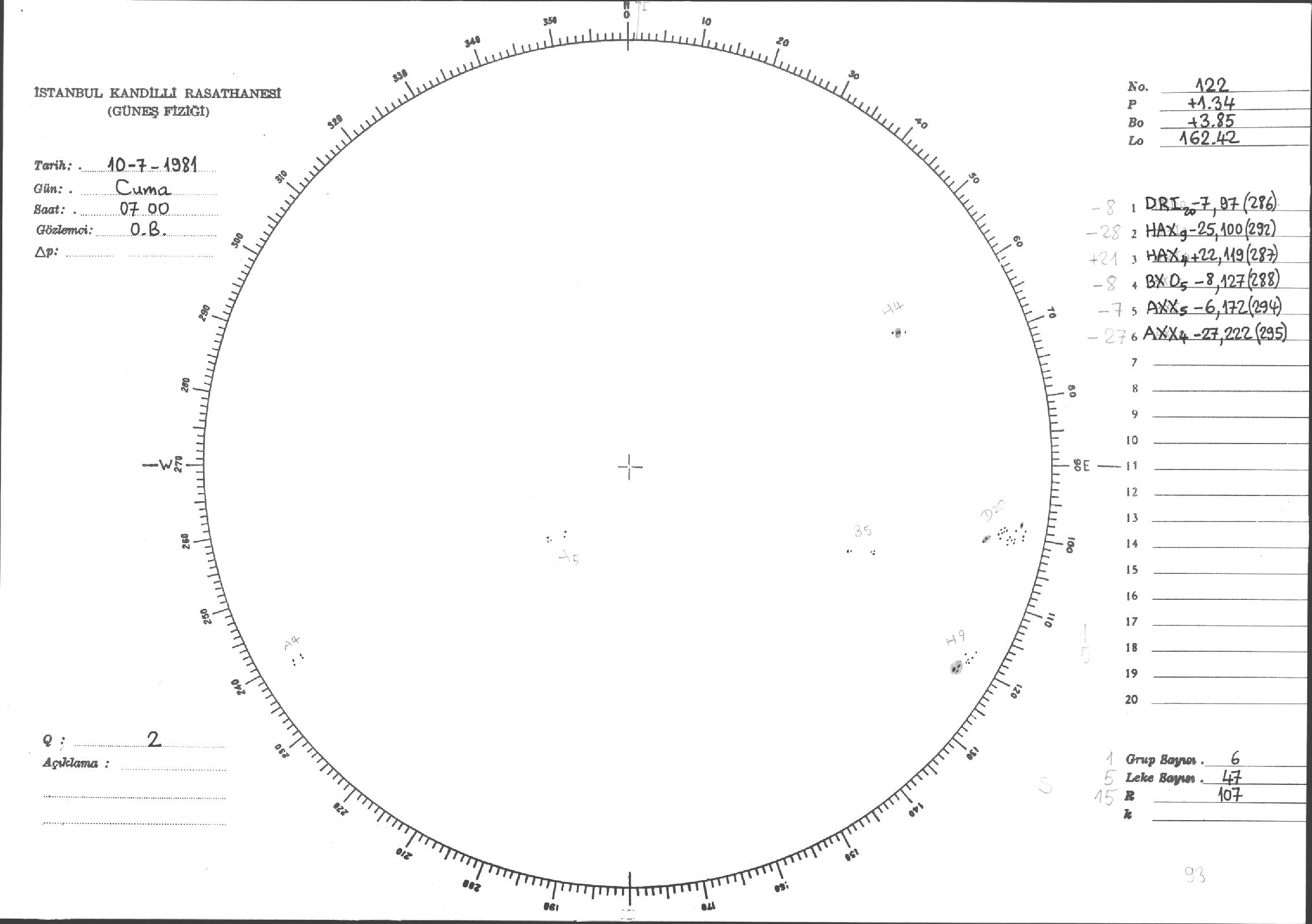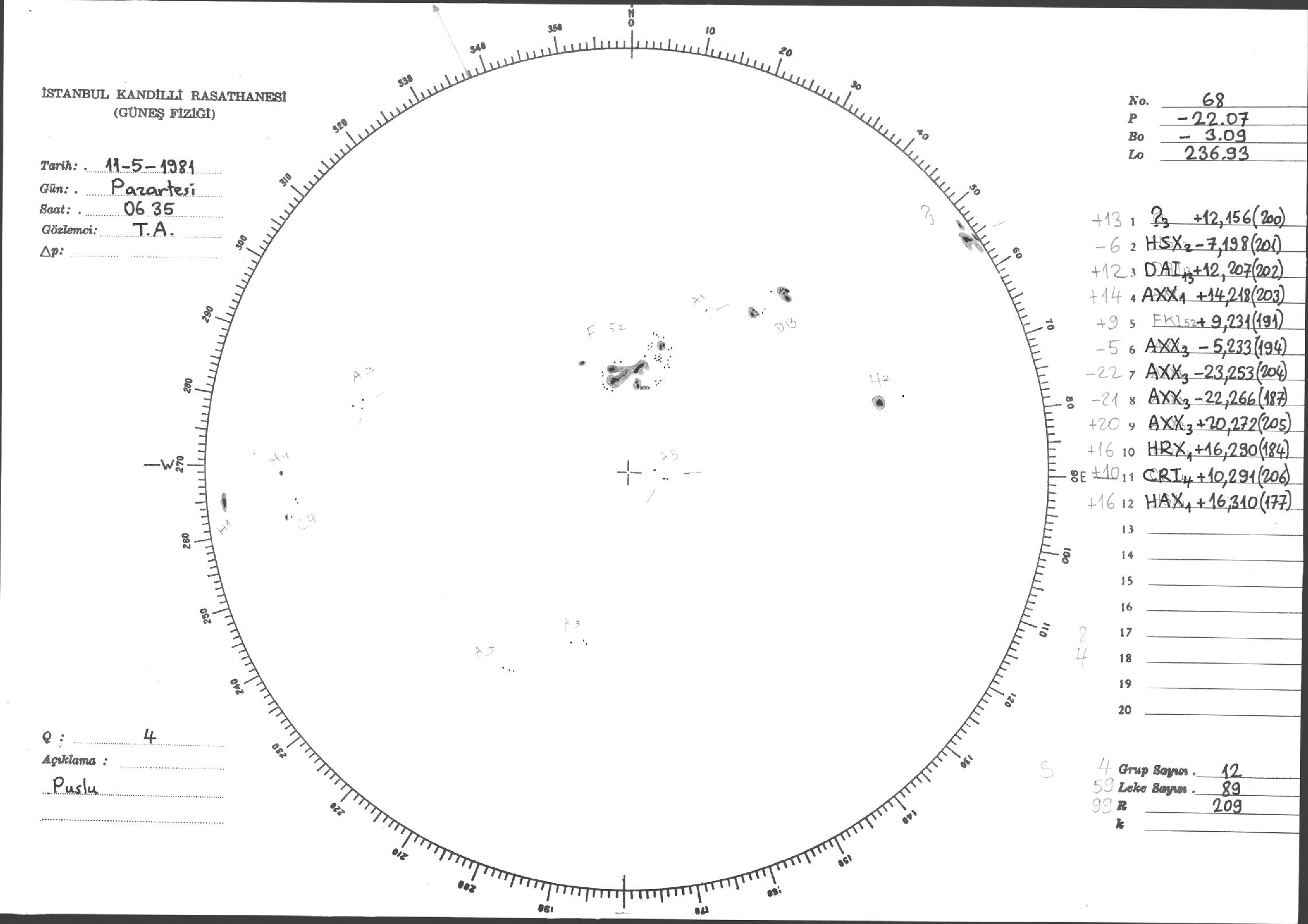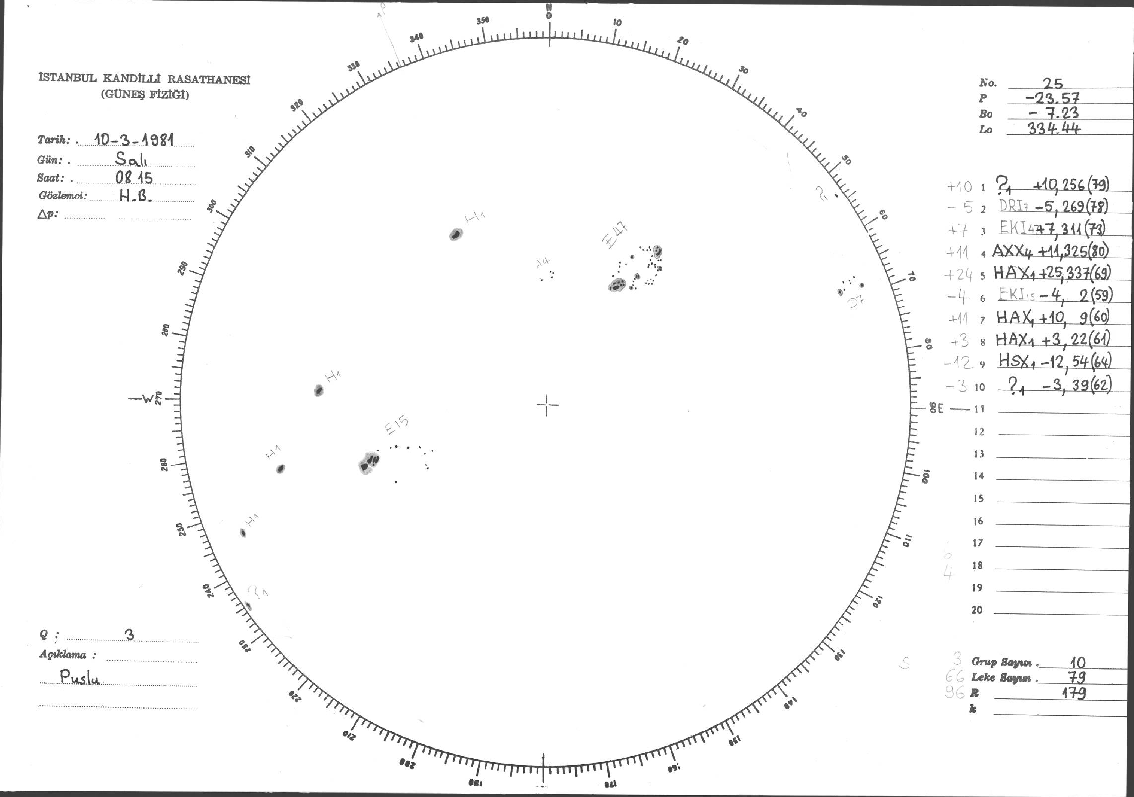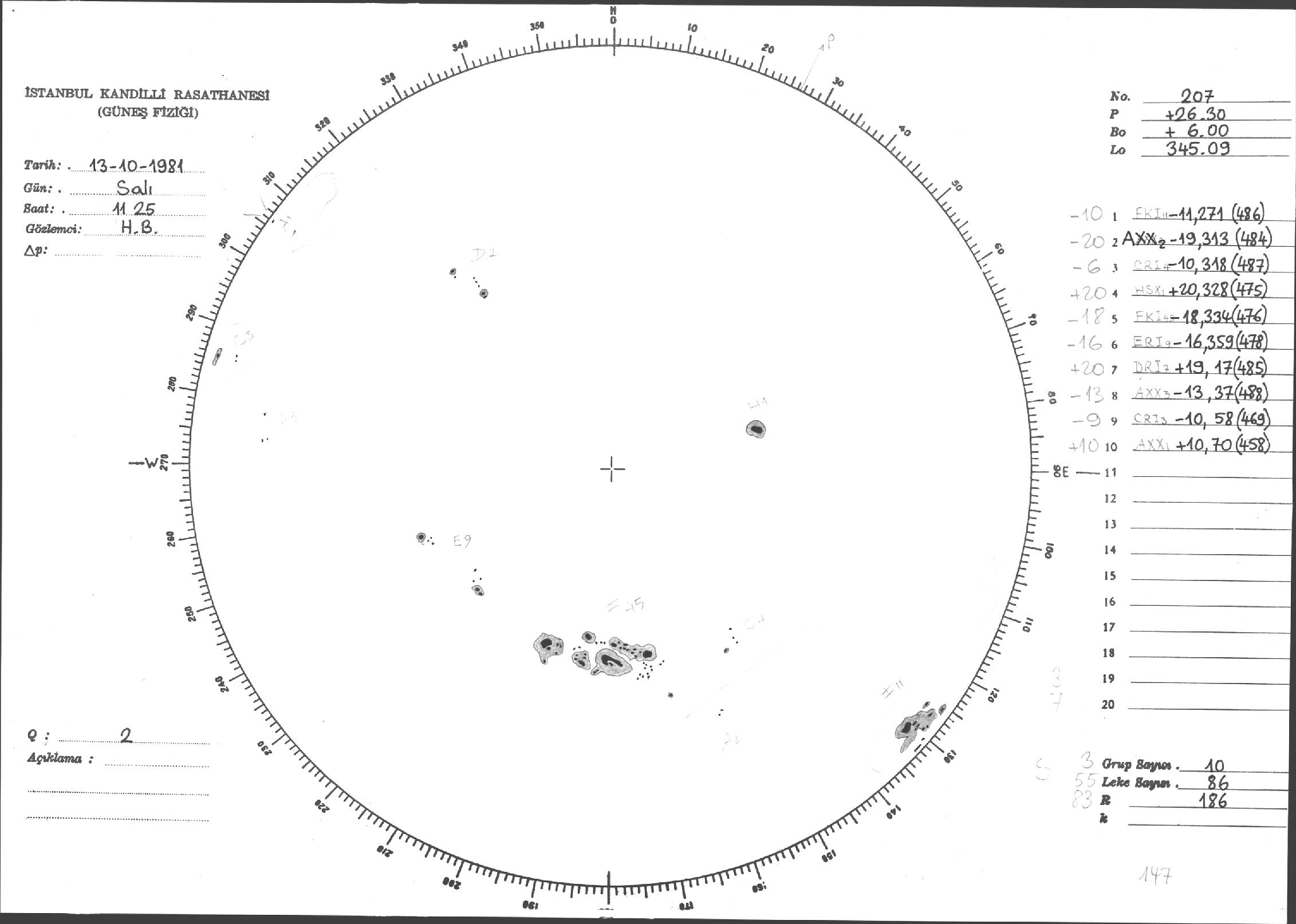 Güneş Lekesi Çizimleri / Kandilli Sunspot Drawings