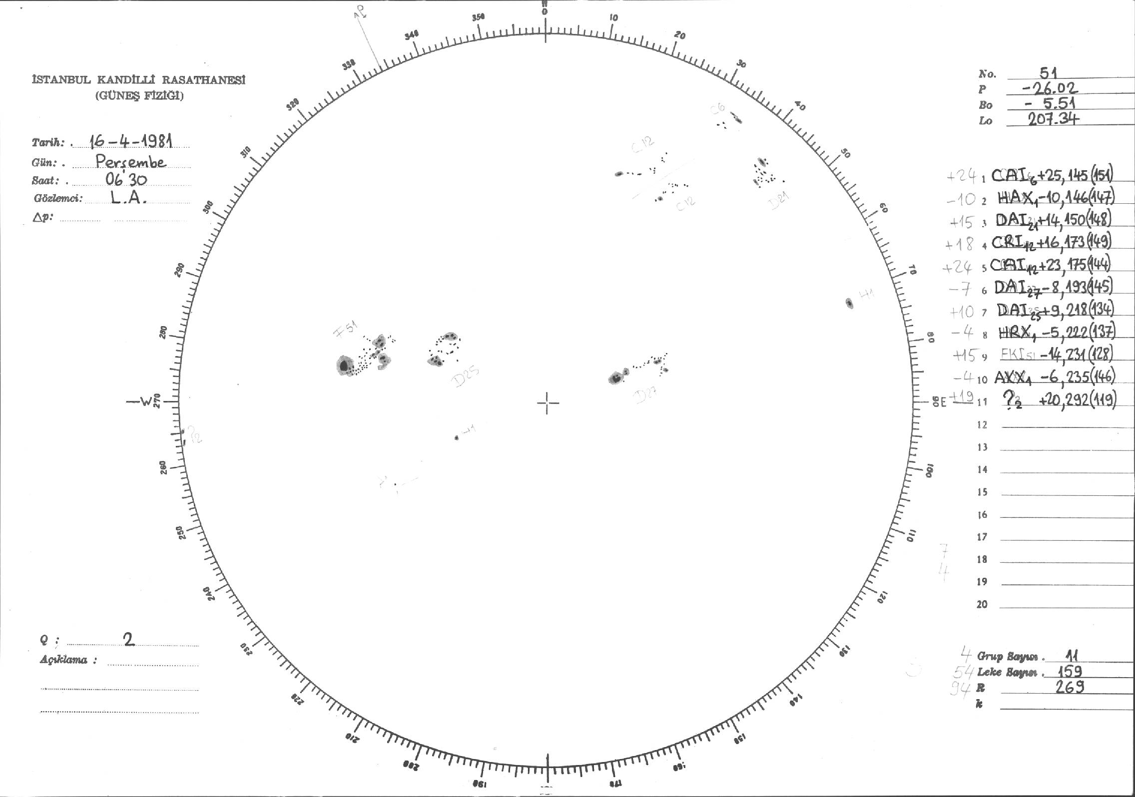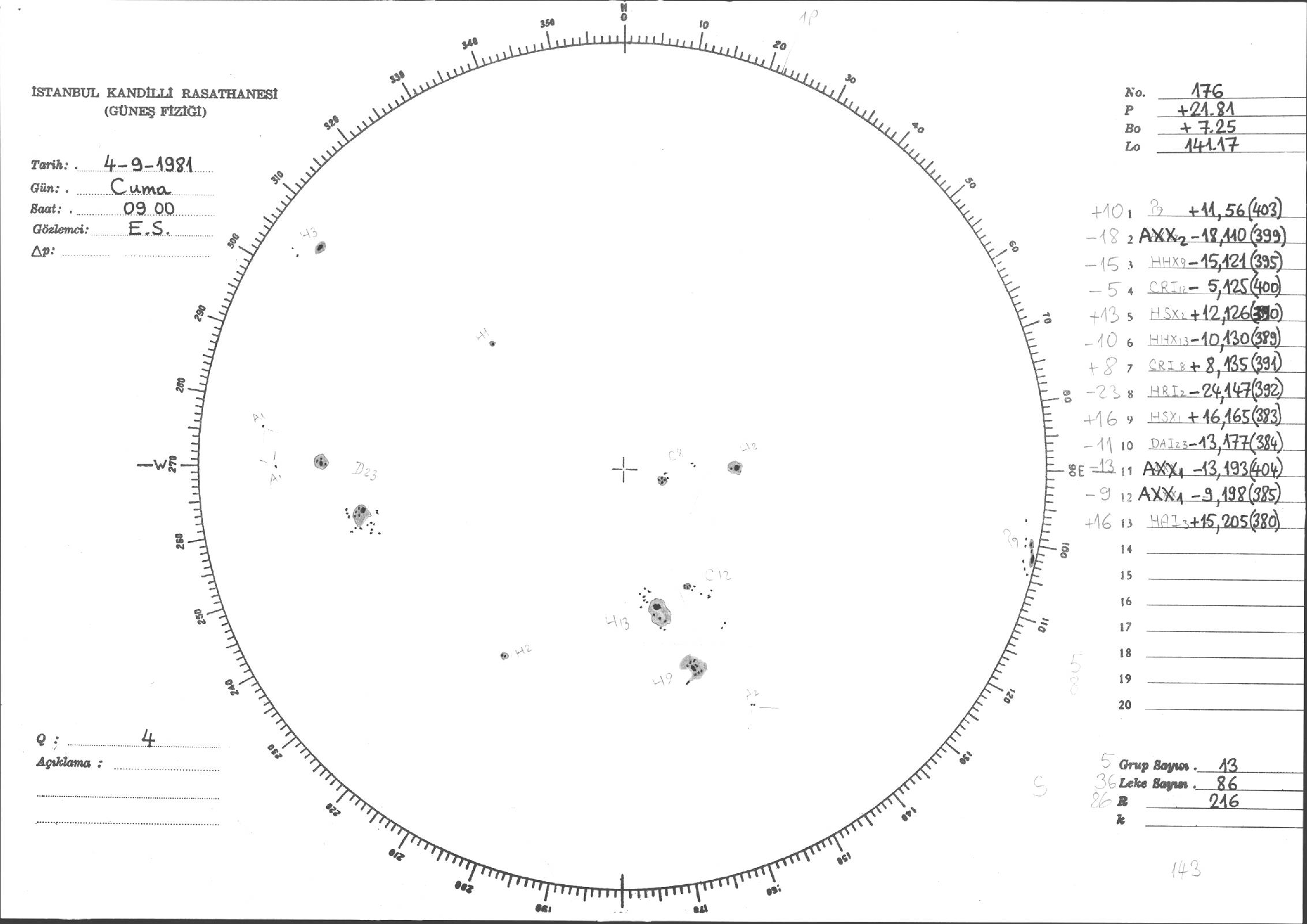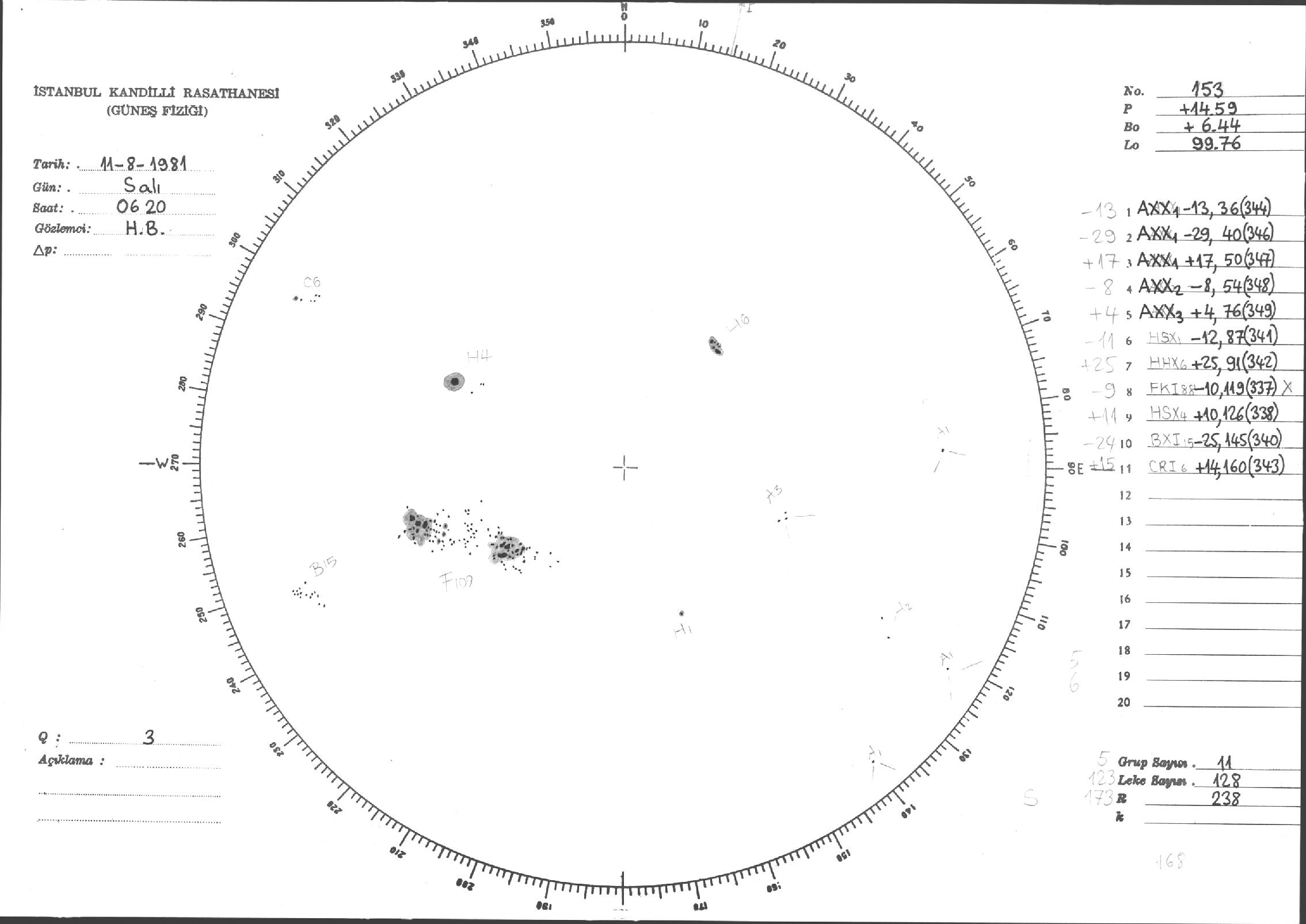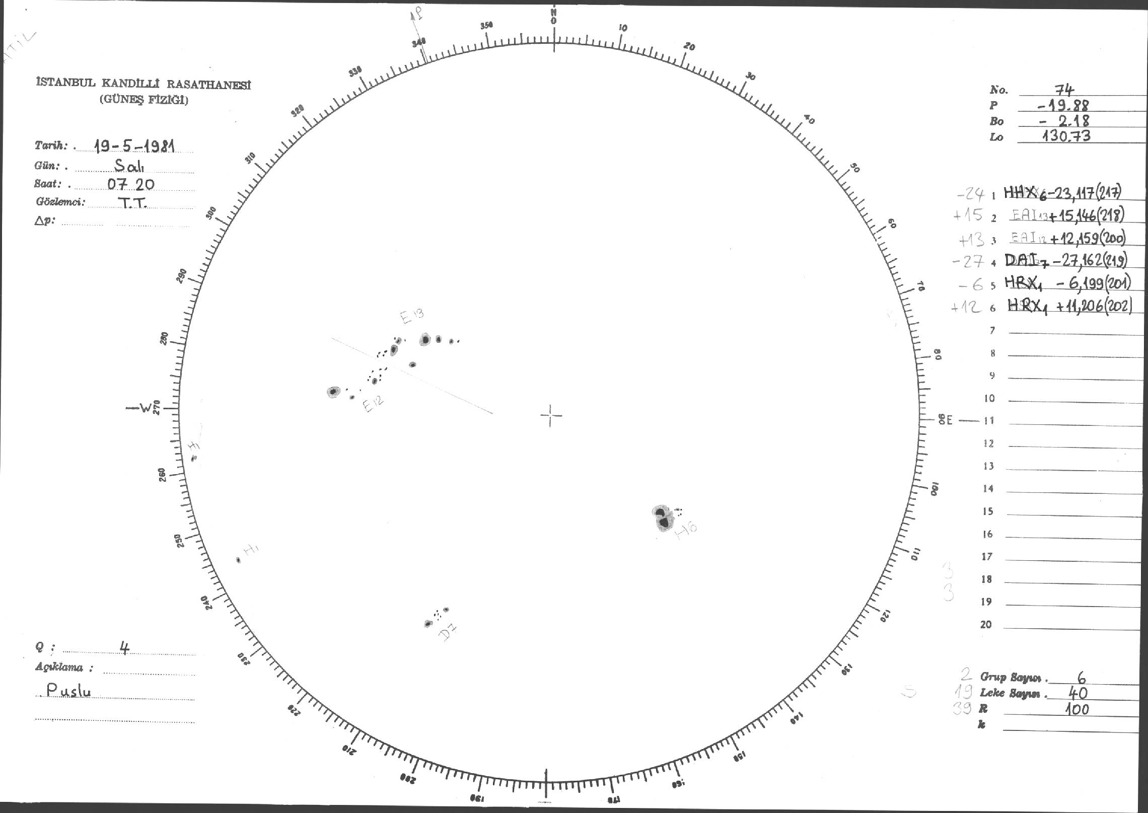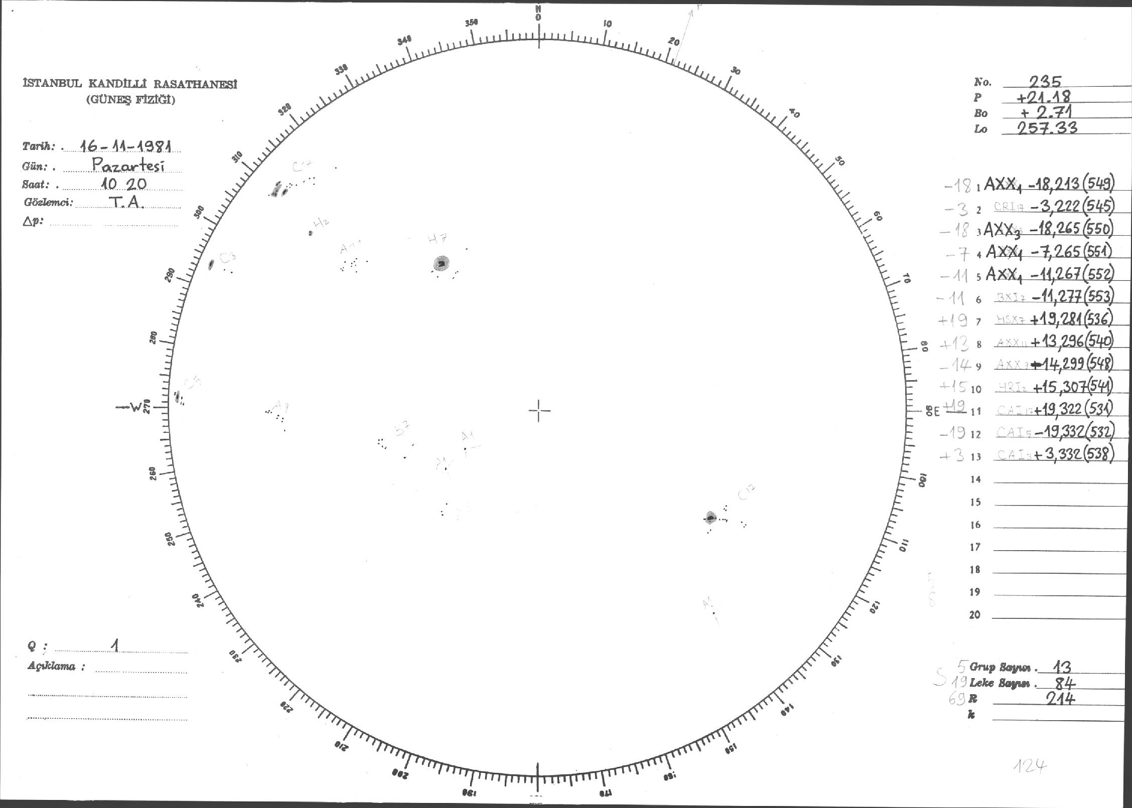 Güneş Lekesi Çizimleri / Kandilli Sunspot Drawings