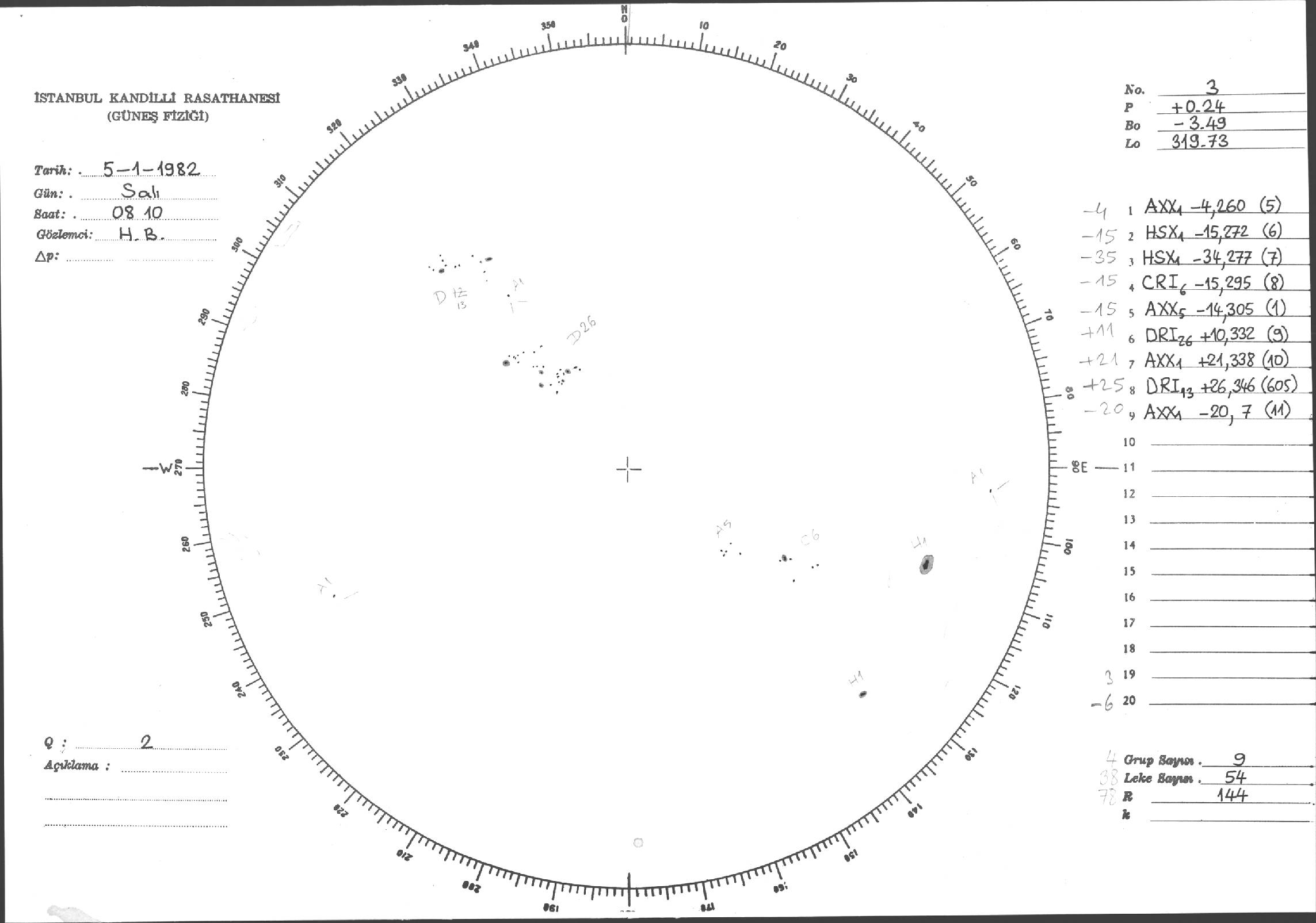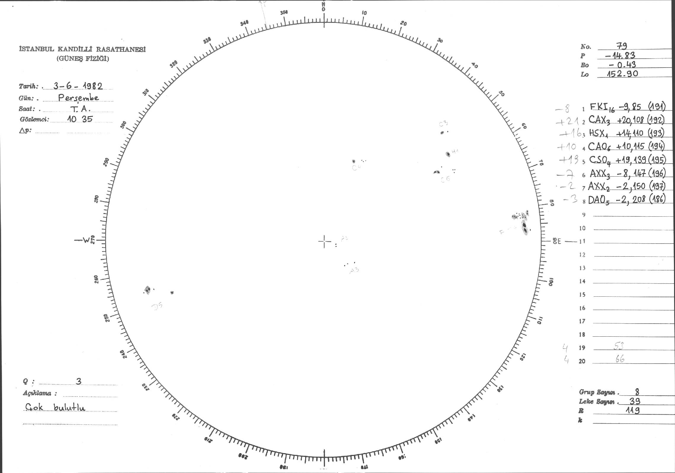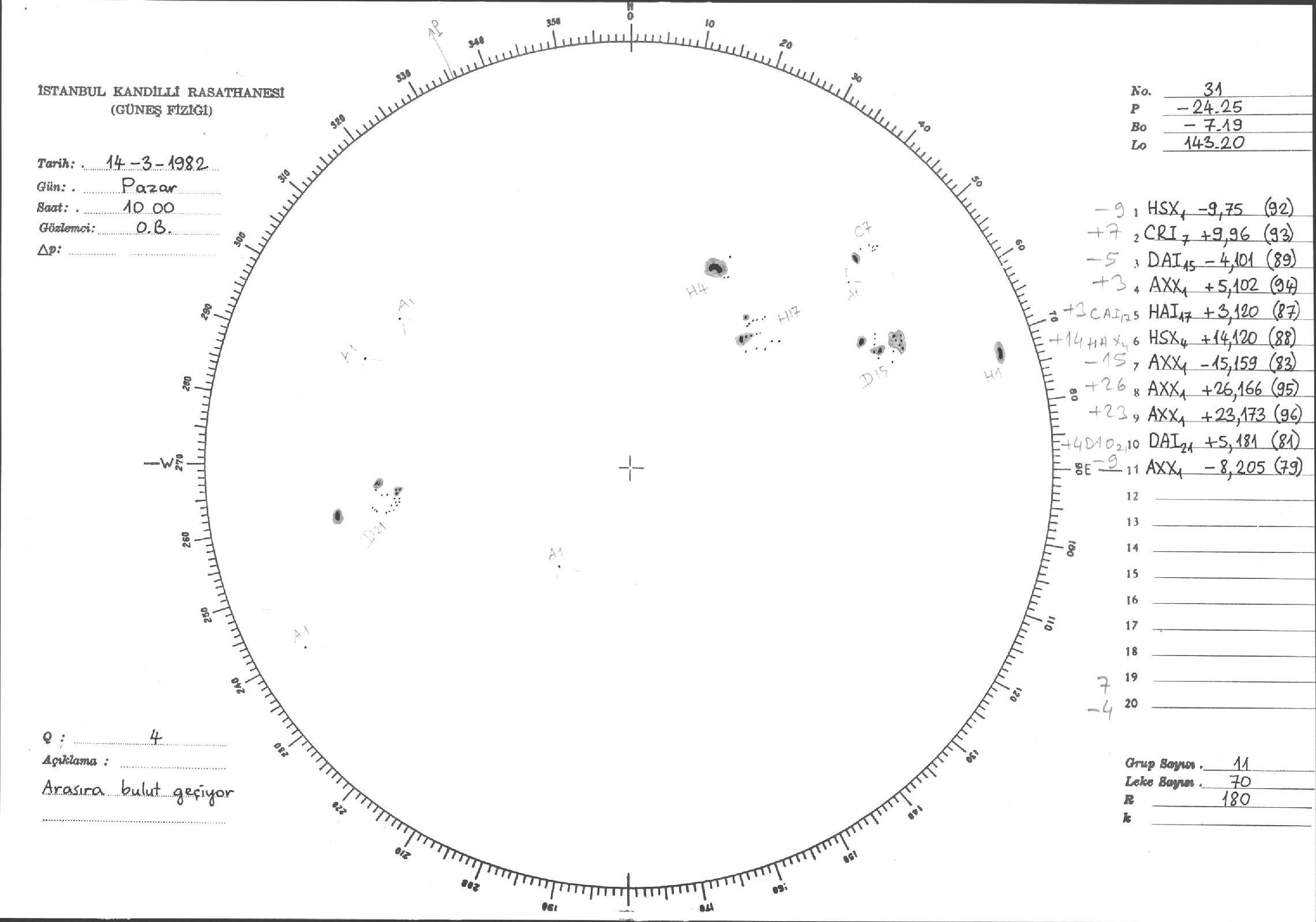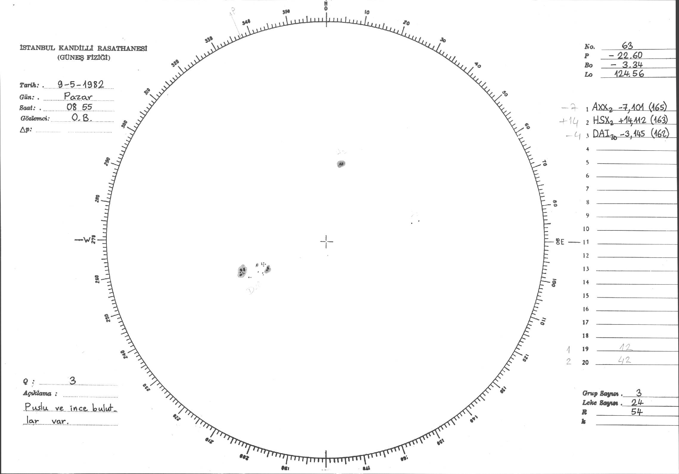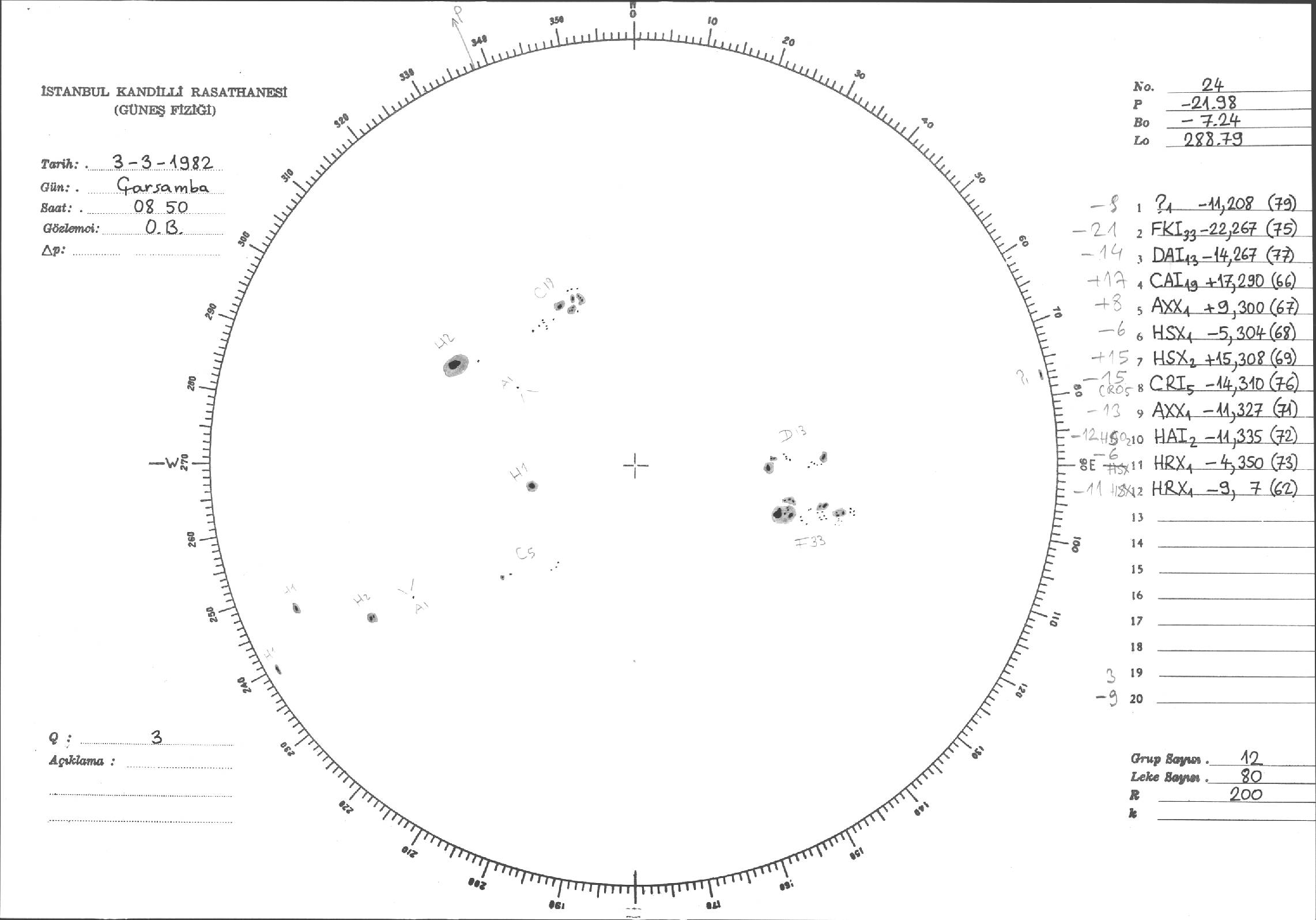 Güneş Lekesi Çizimleri / Kandilli Sunspot Drawings