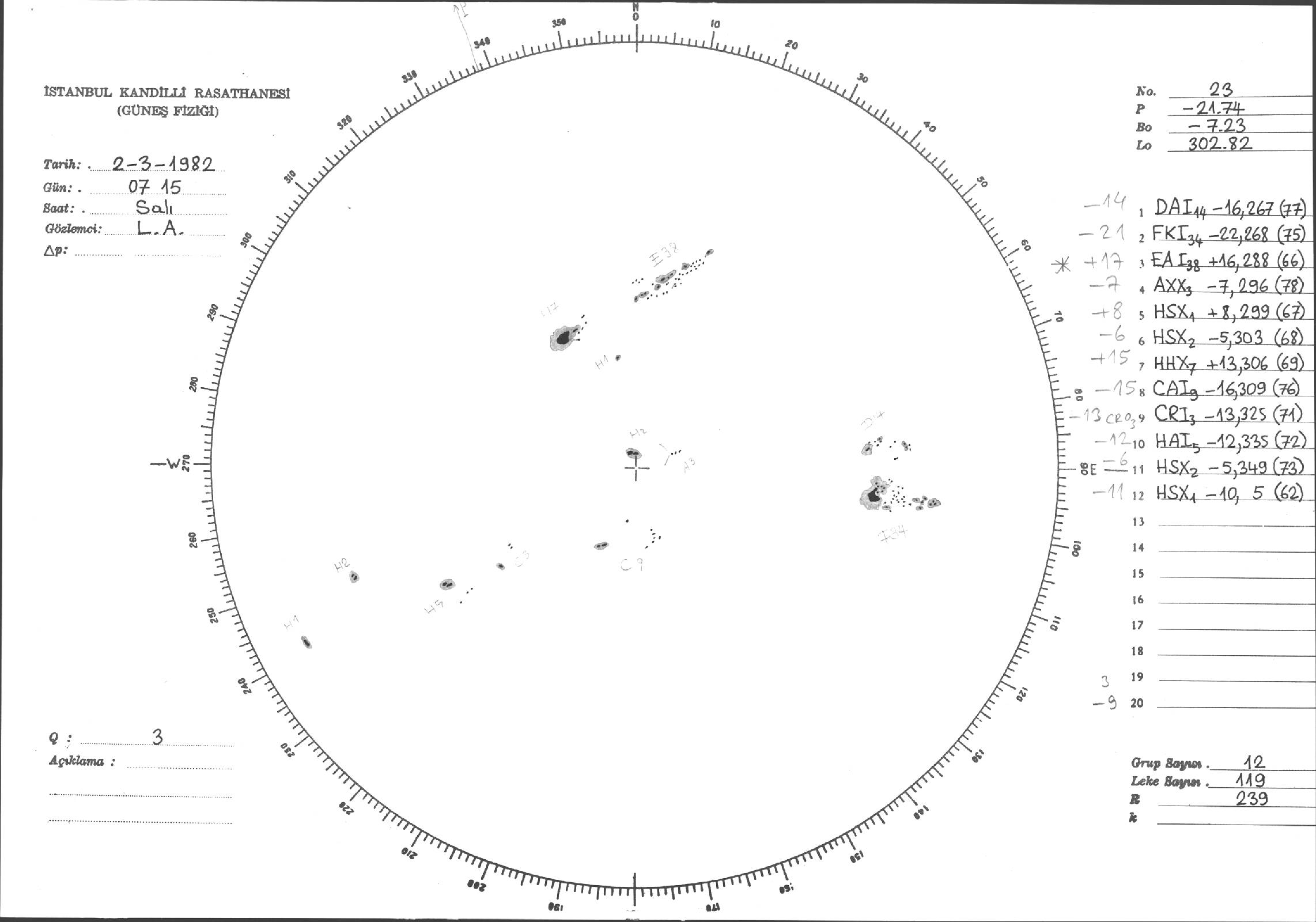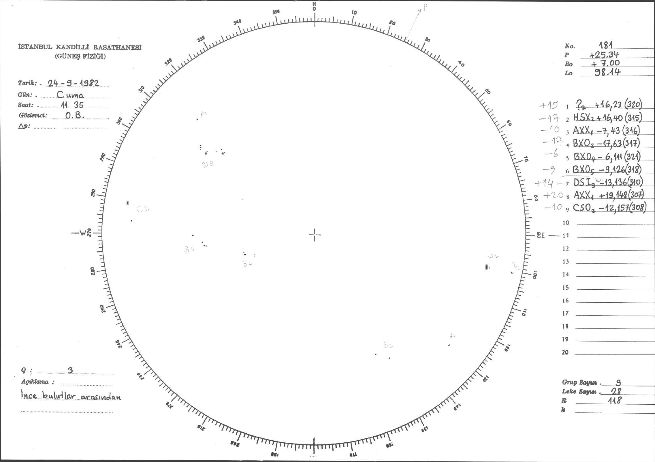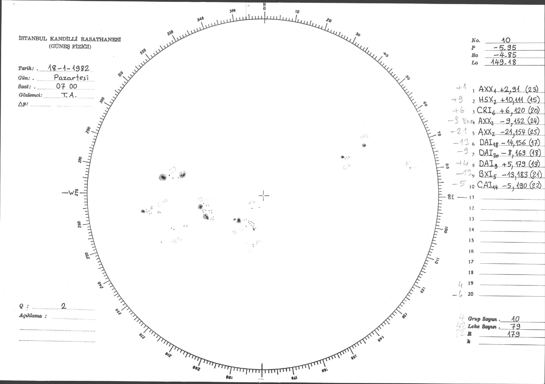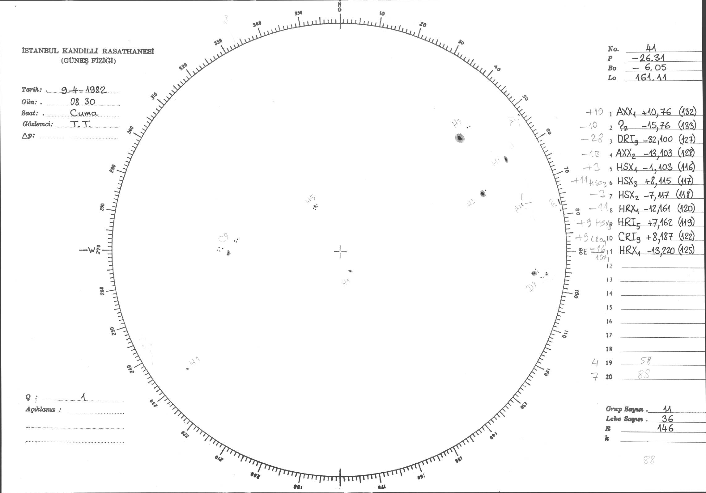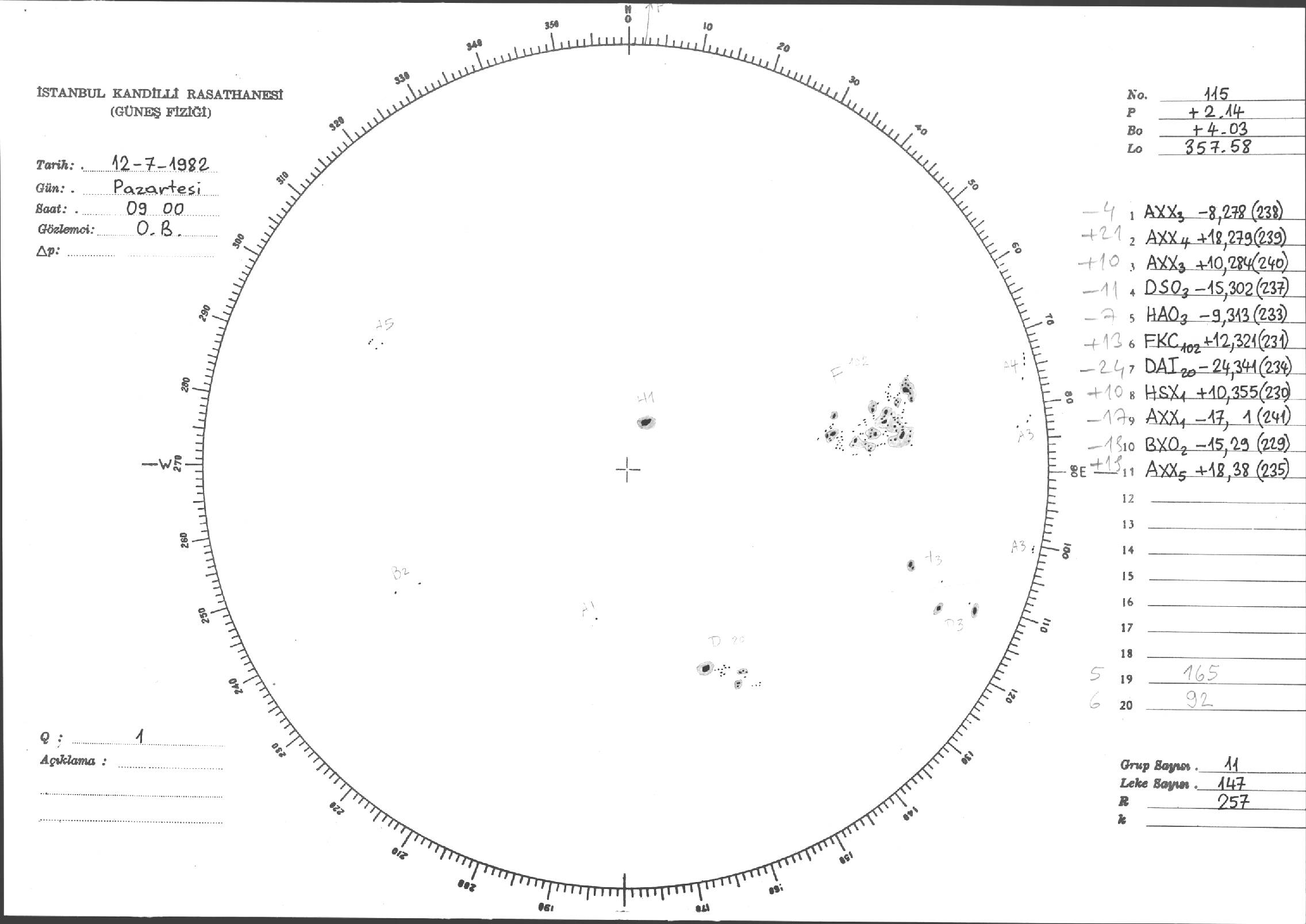 Güneş Lekesi Çizimleri / Kandilli Sunspot Drawings