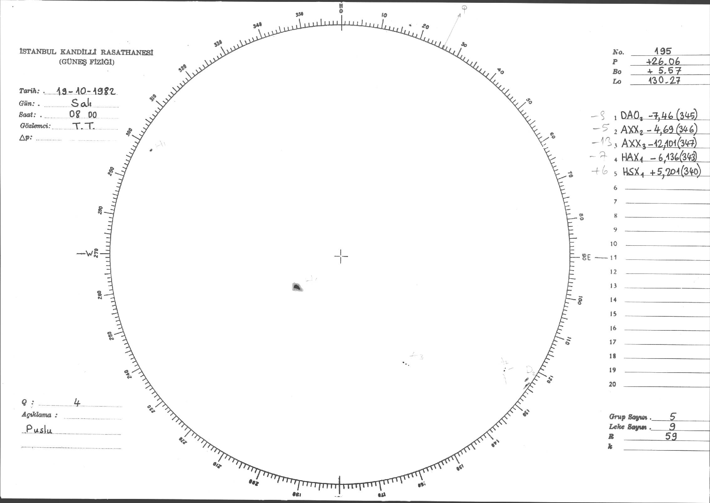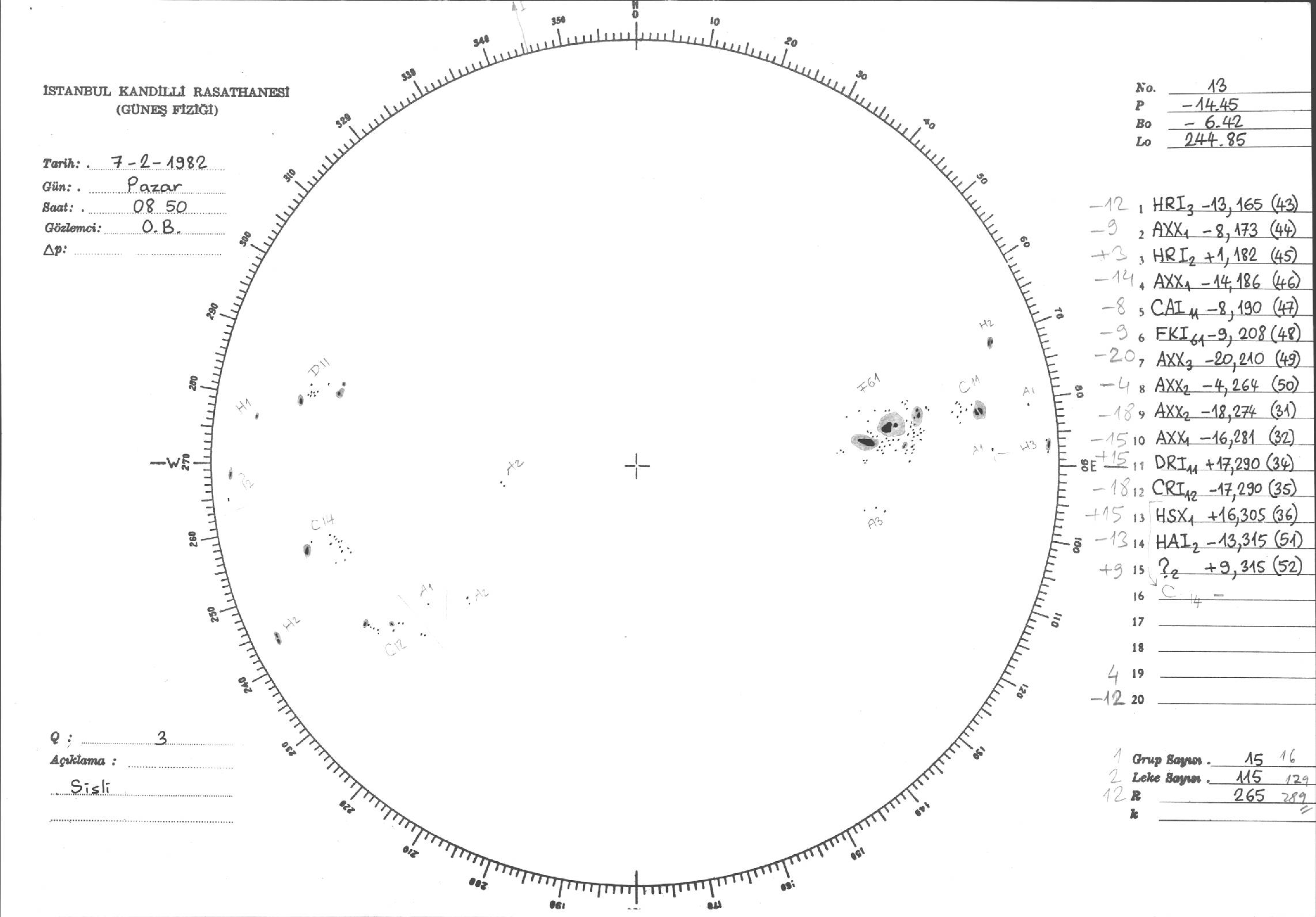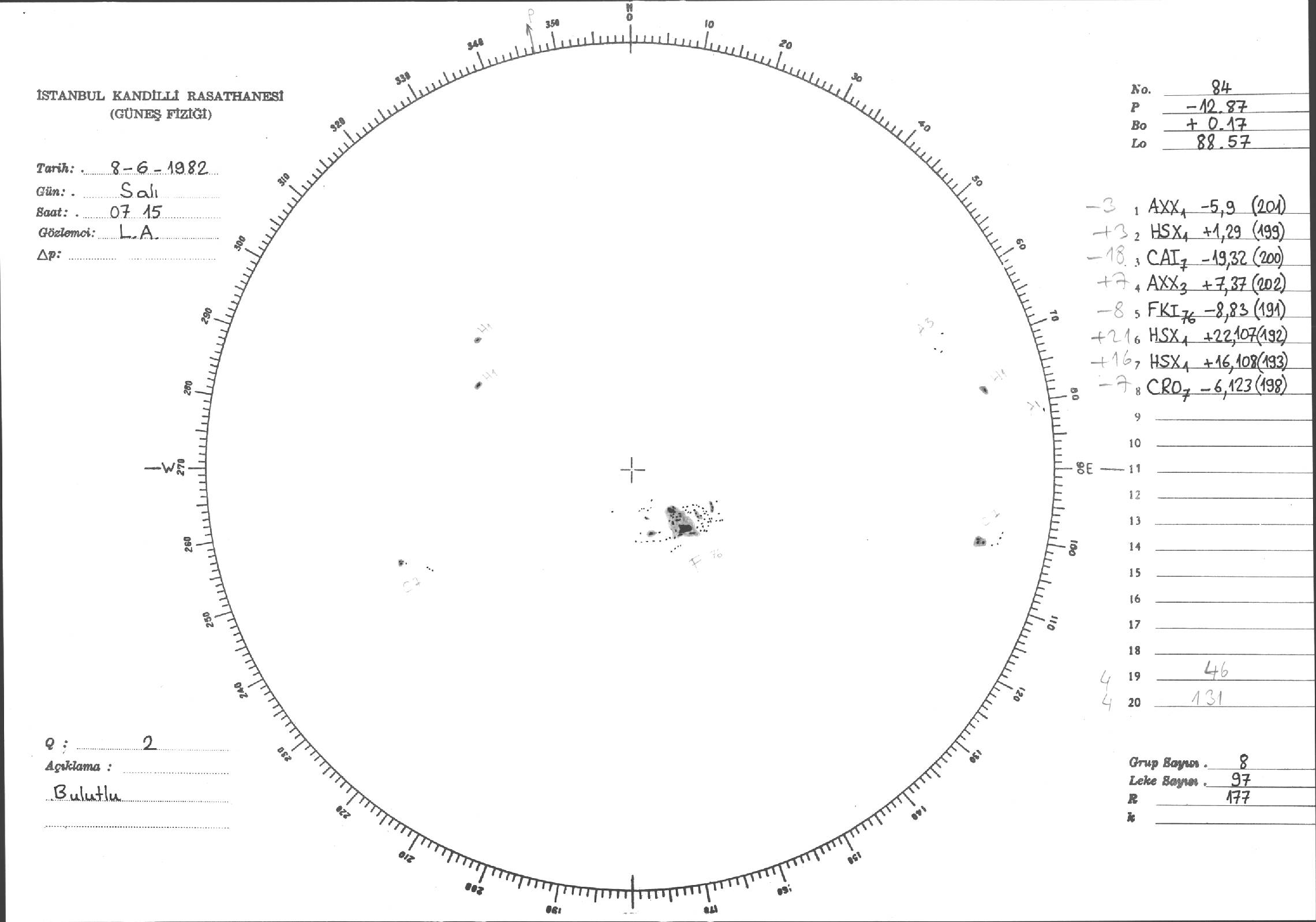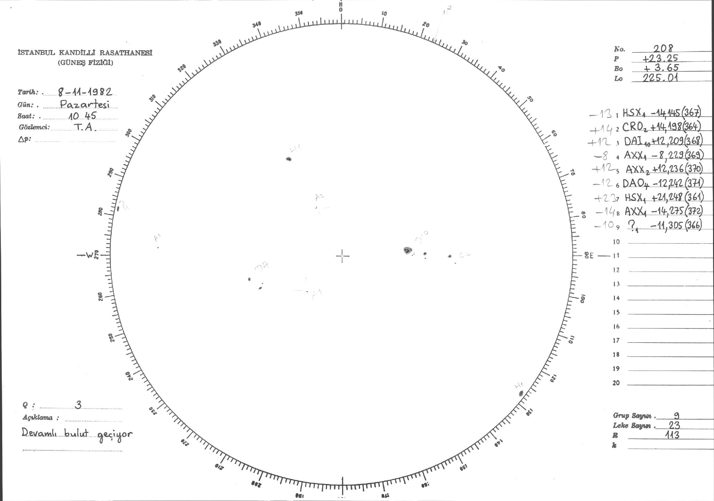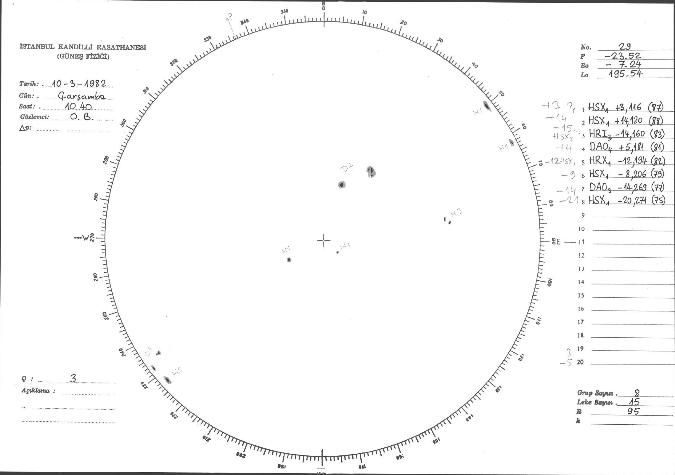 Güneş Lekesi Çizimleri / Kandilli Sunspot Drawings
