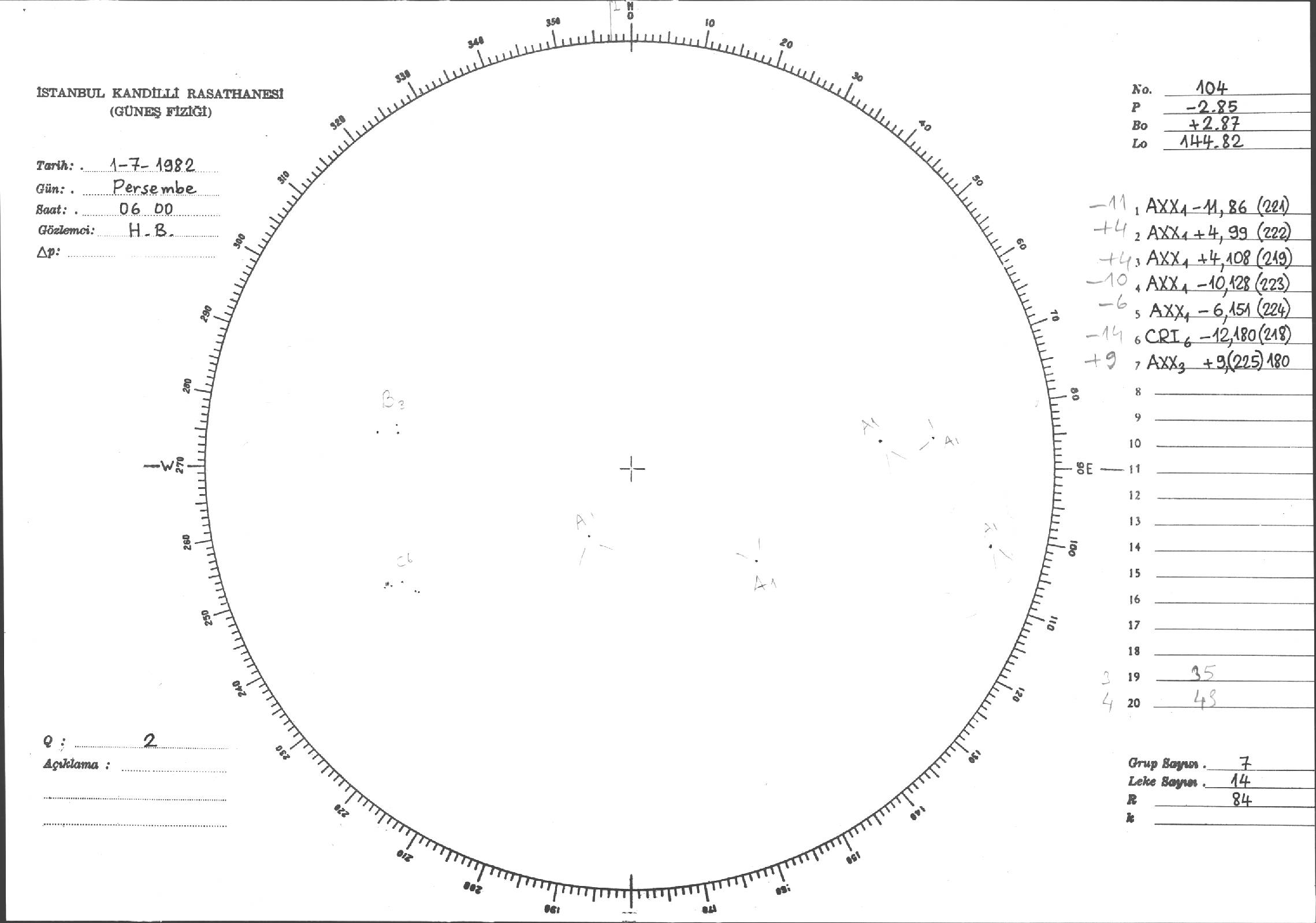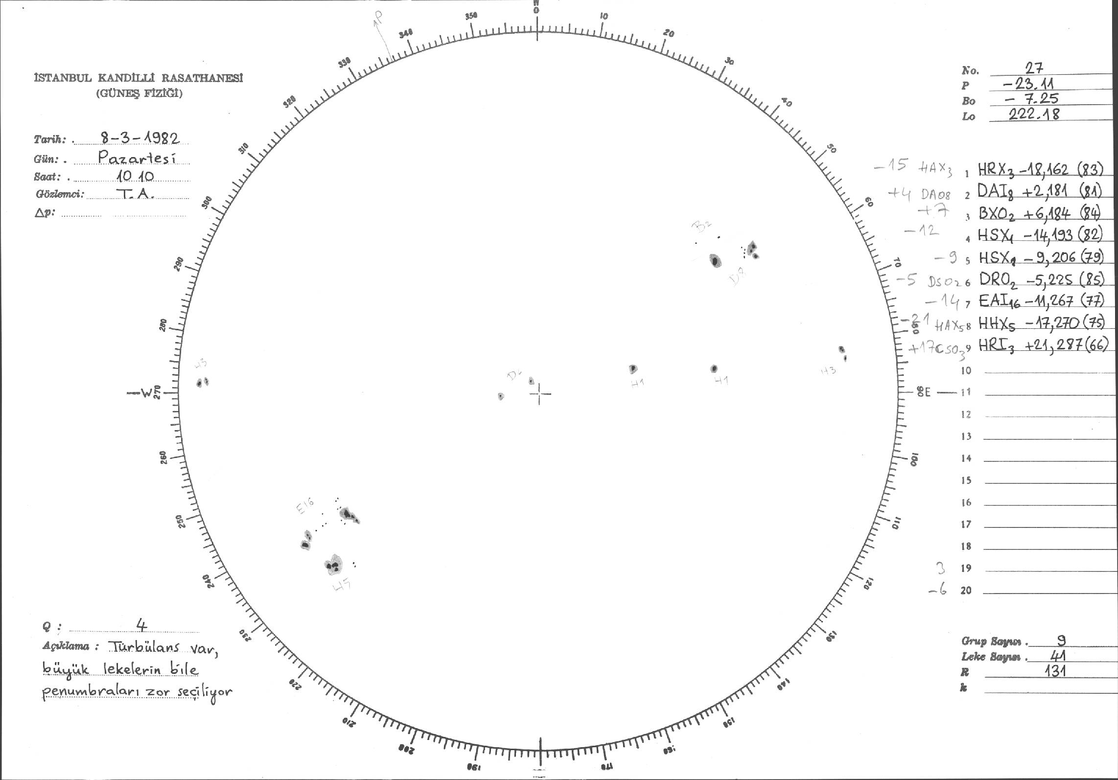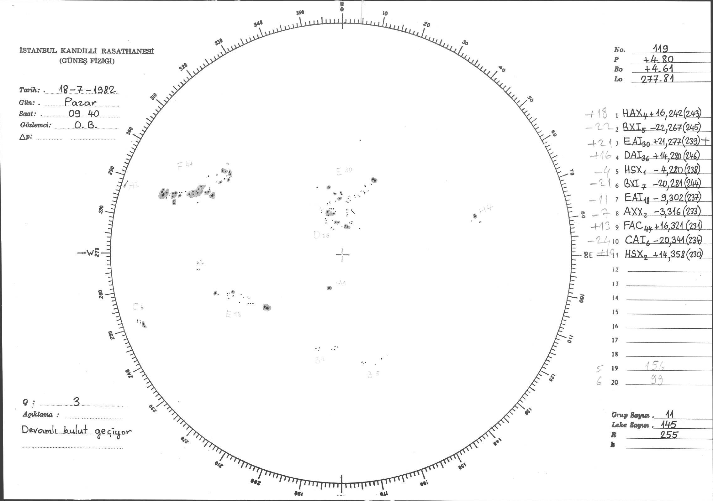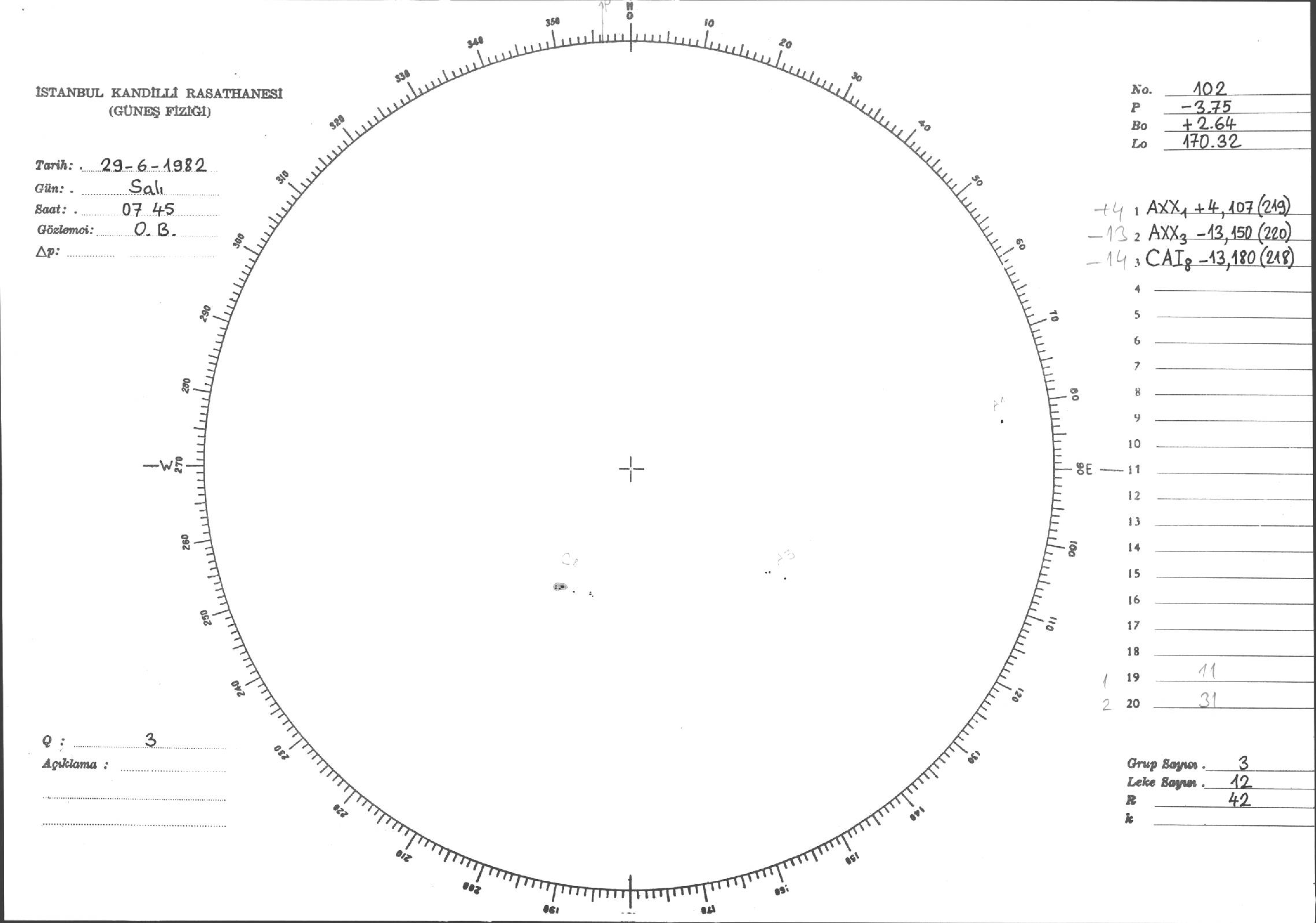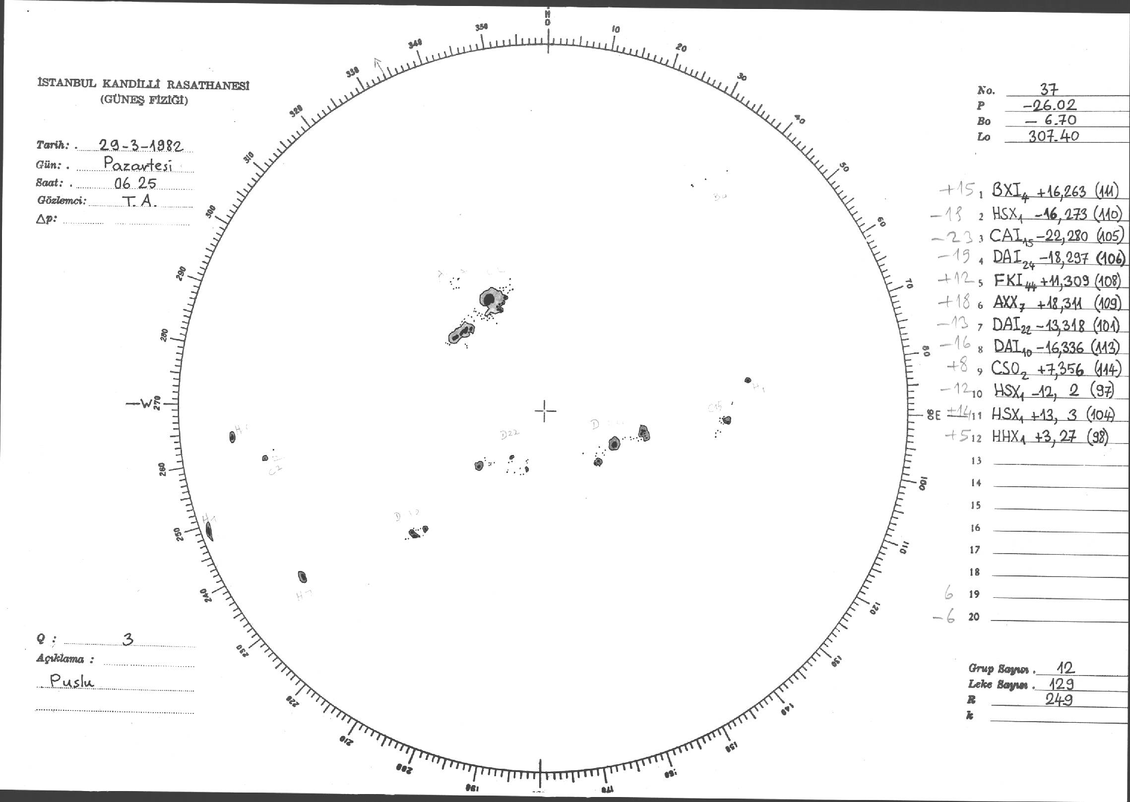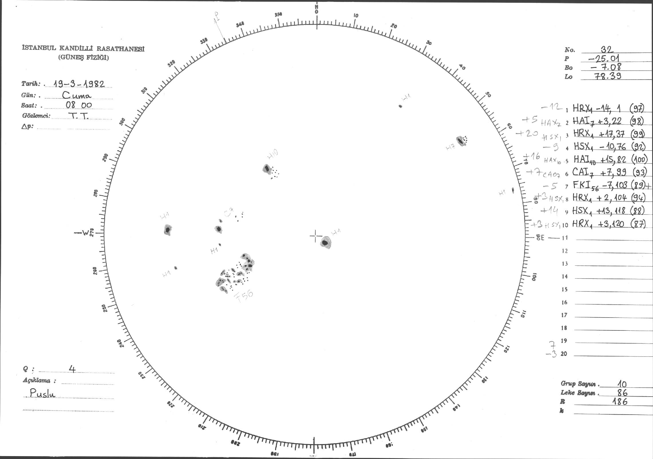 Güneş Lekesi Çizimleri / Kandilli Sunspot Drawings