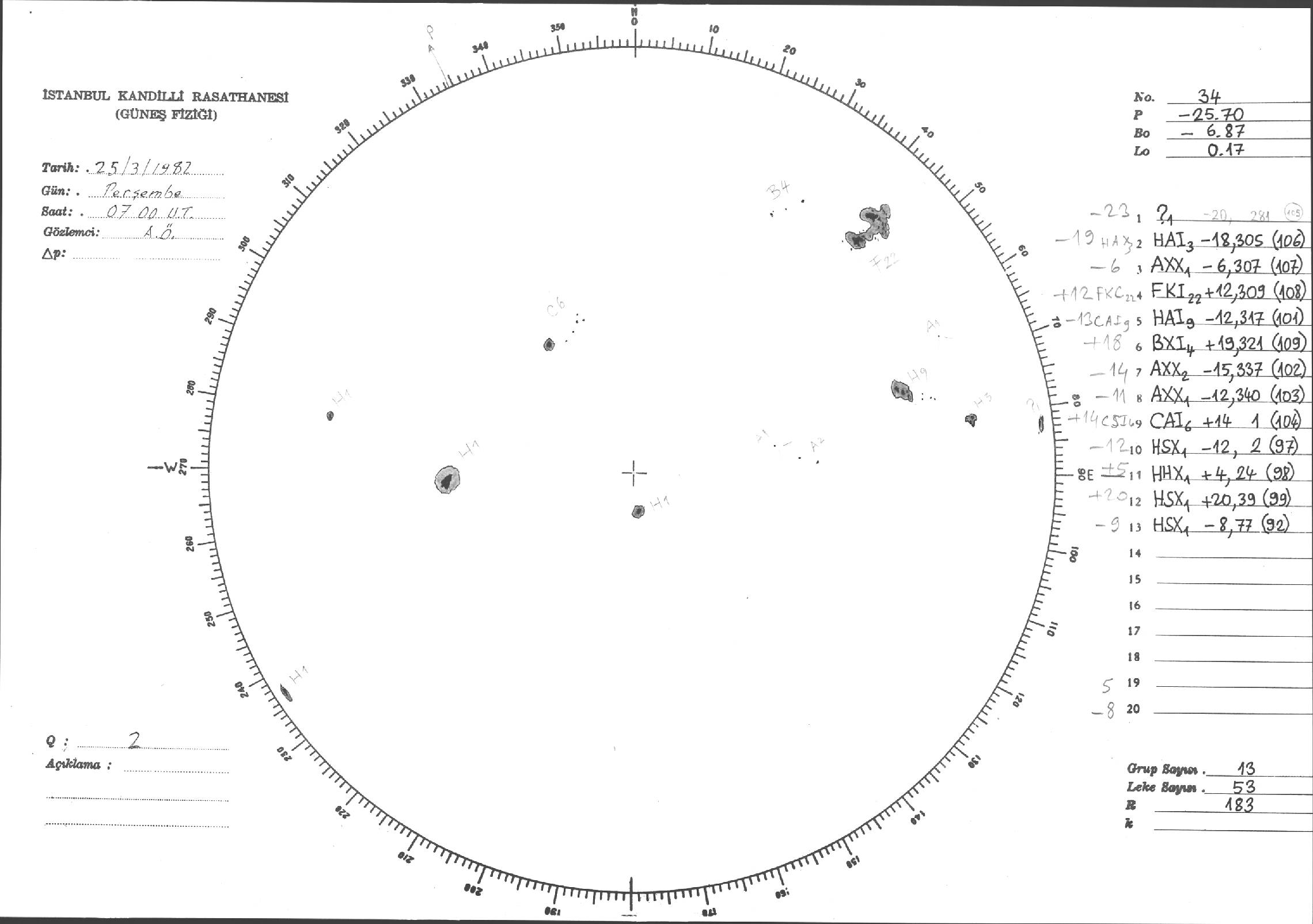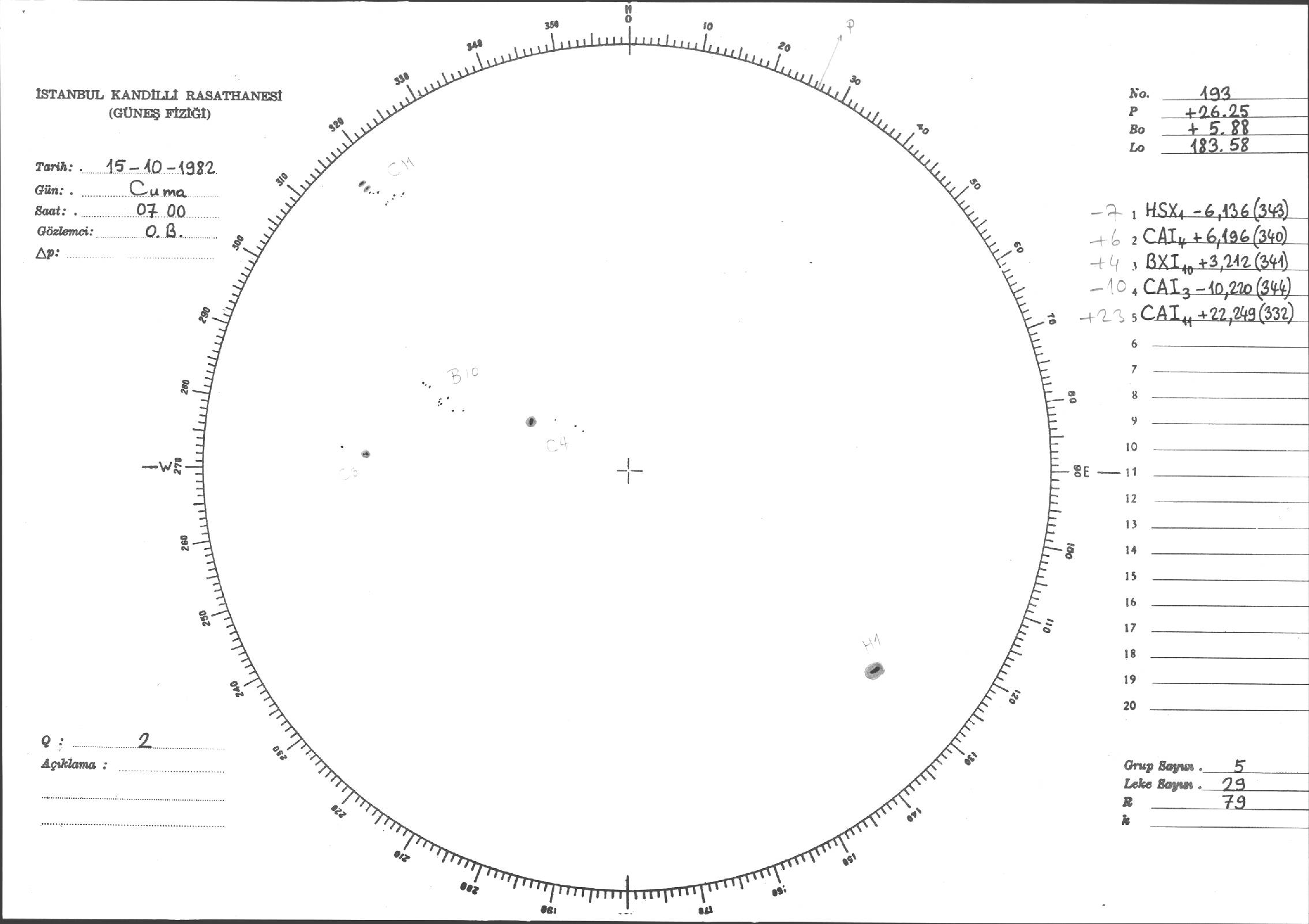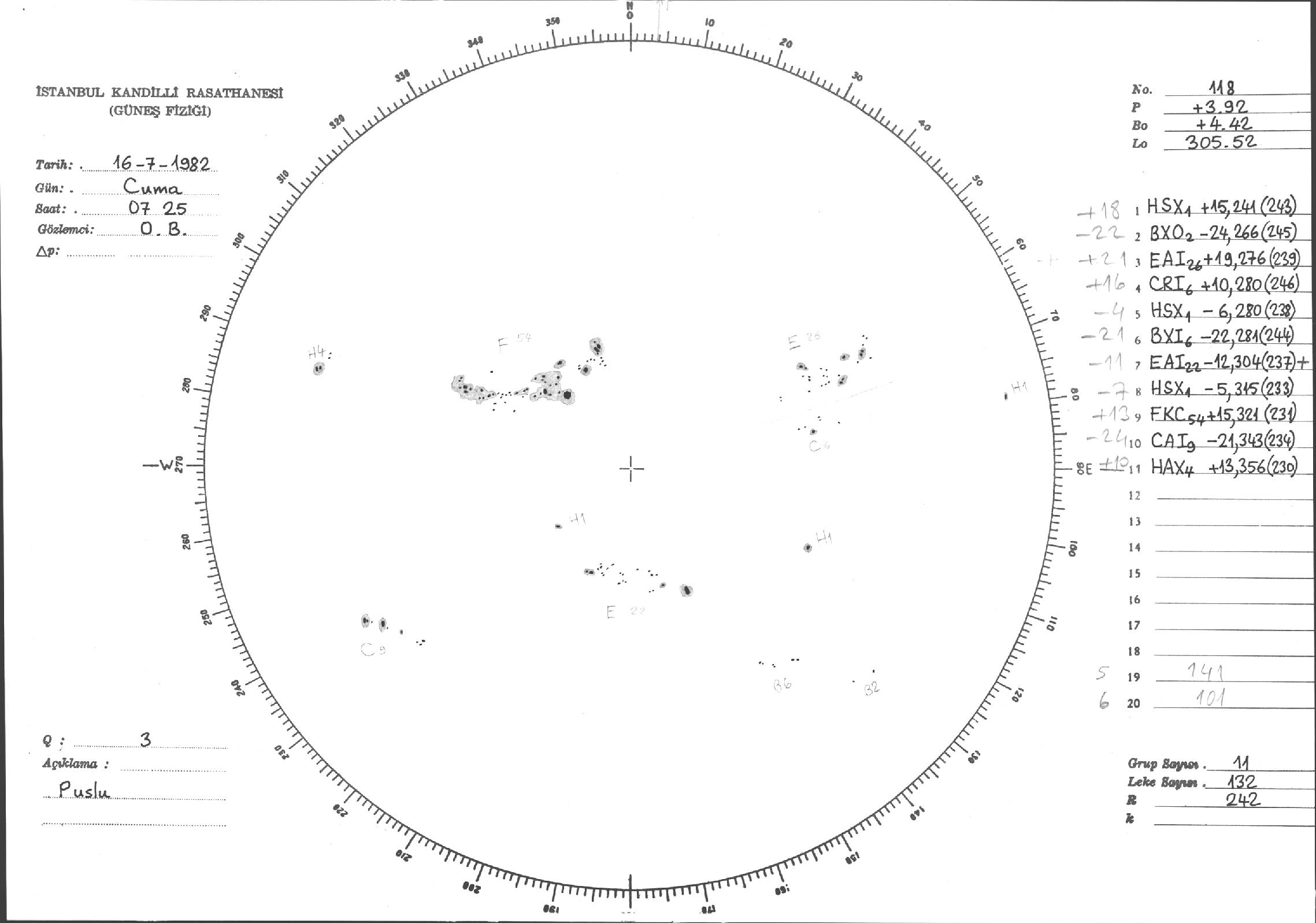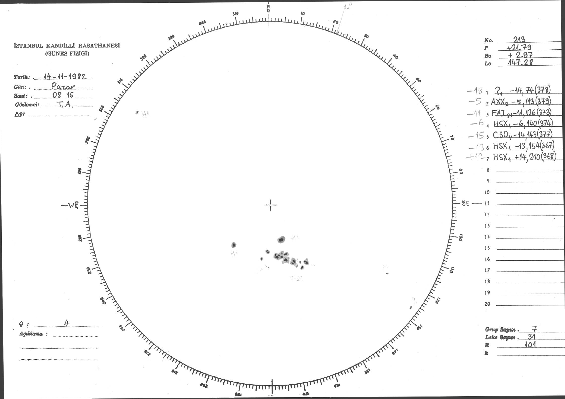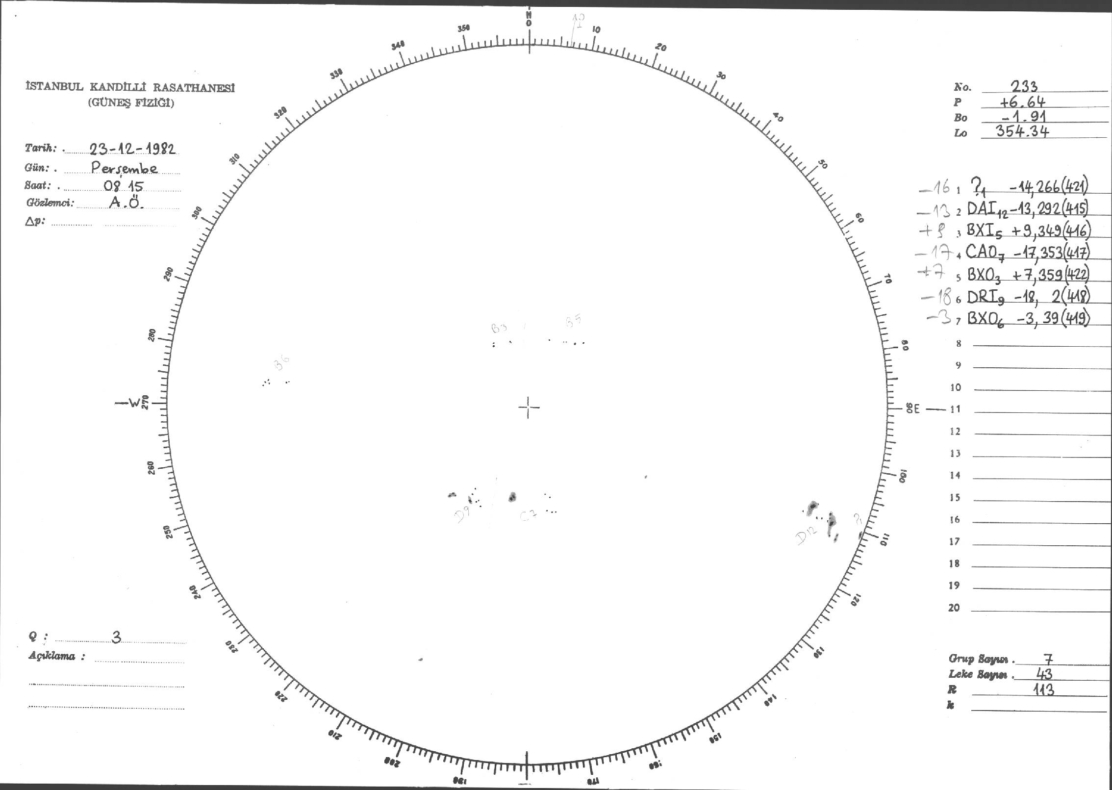 Güneş Lekesi Çizimleri / Kandilli Sunspot Drawings