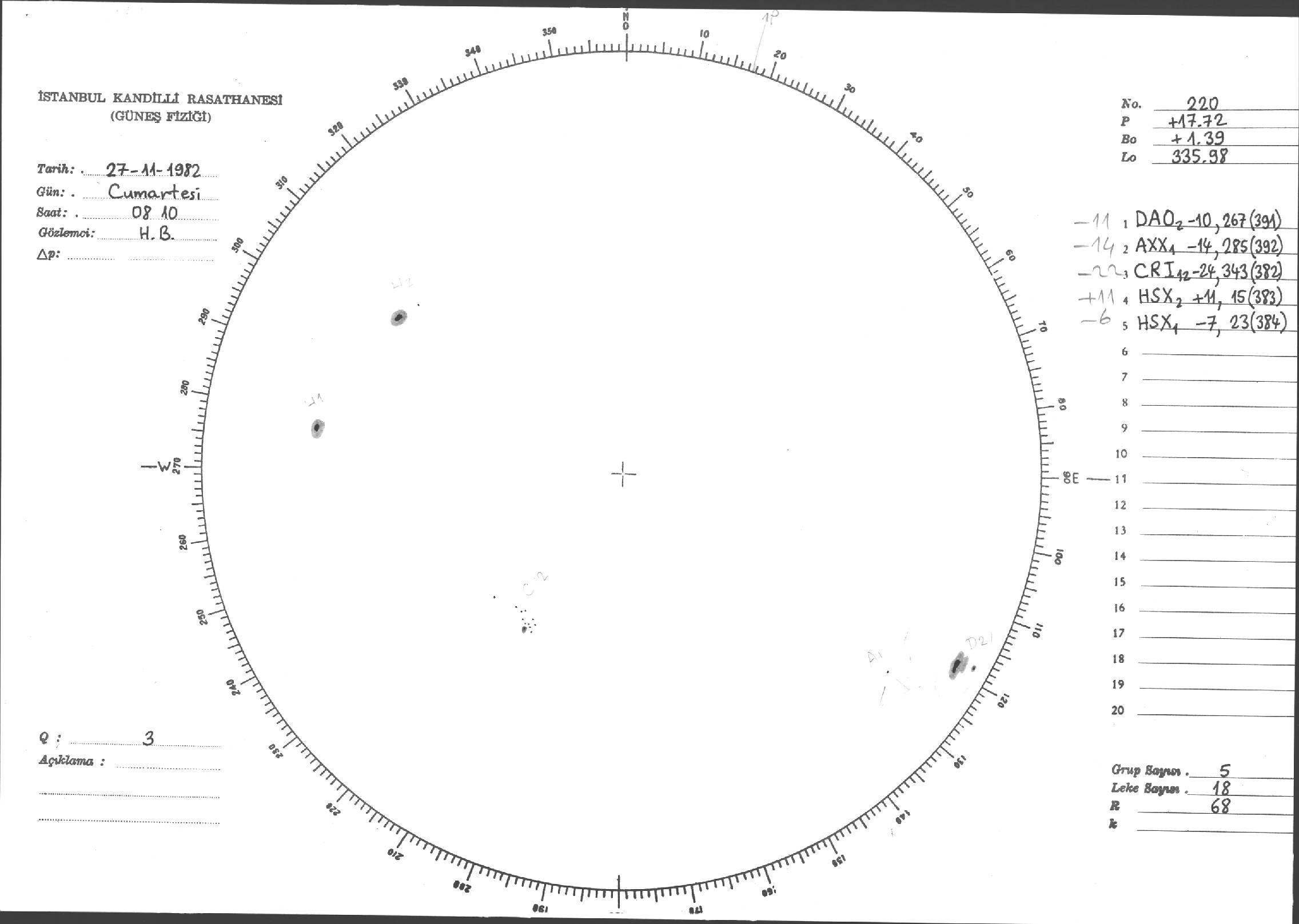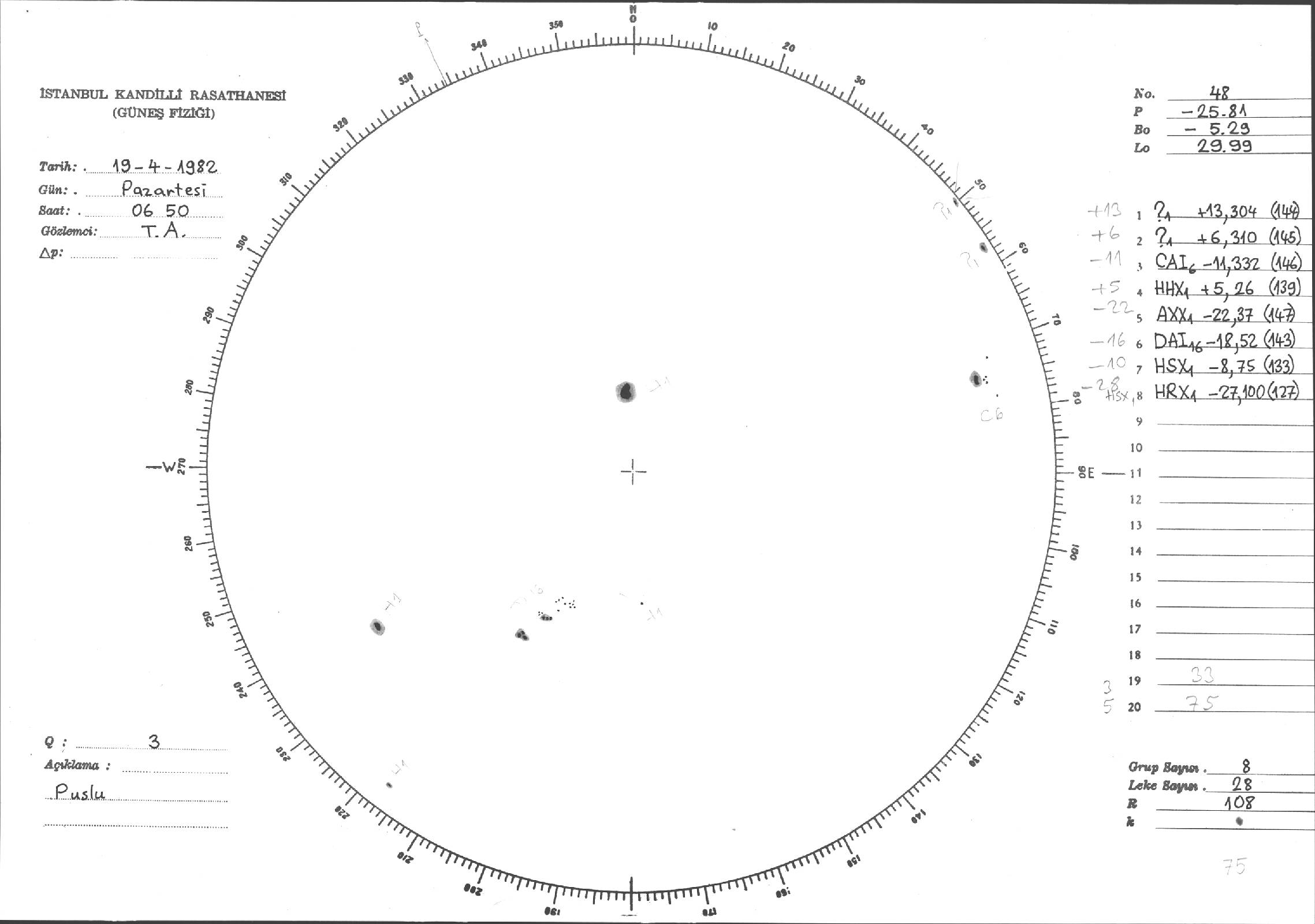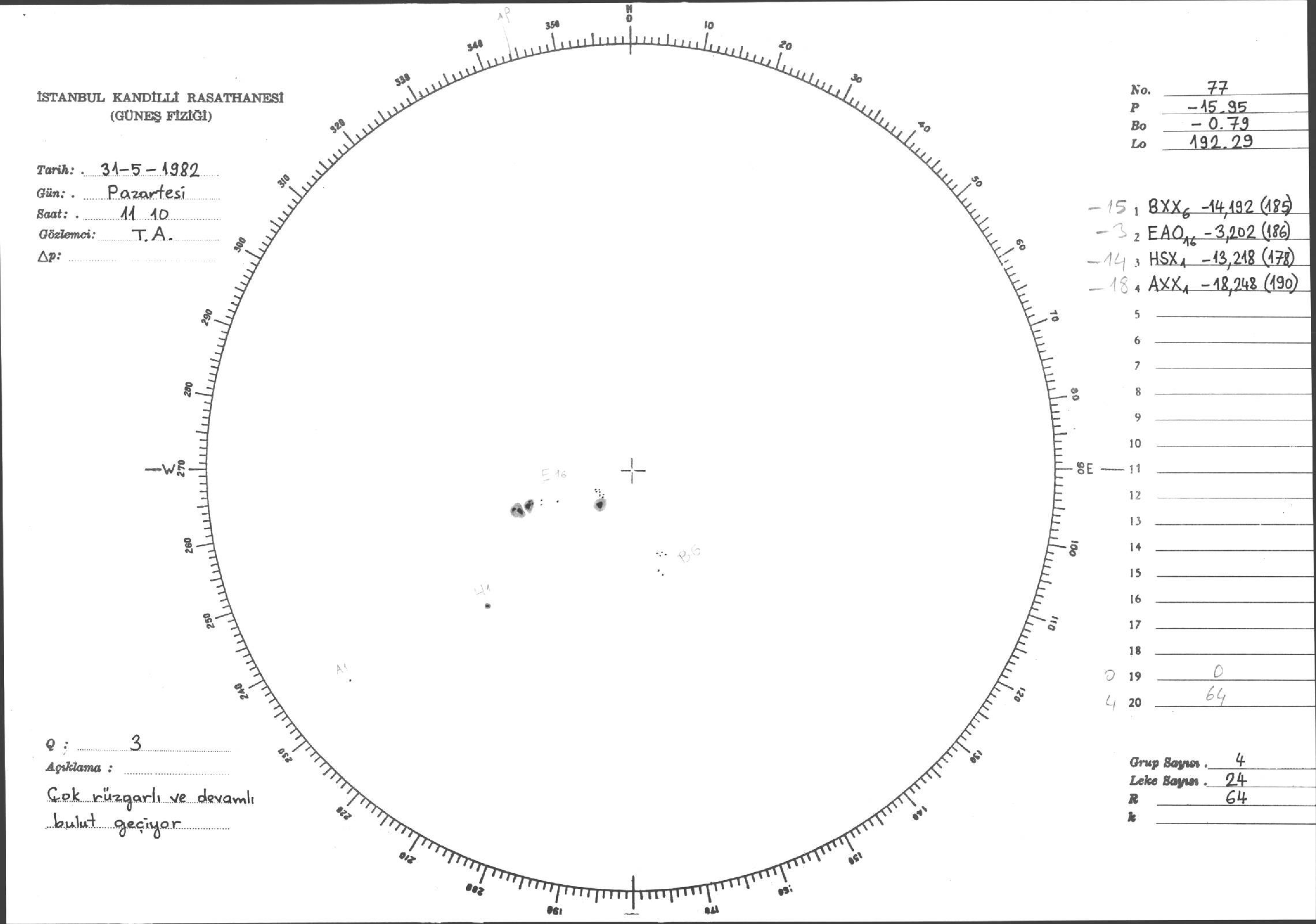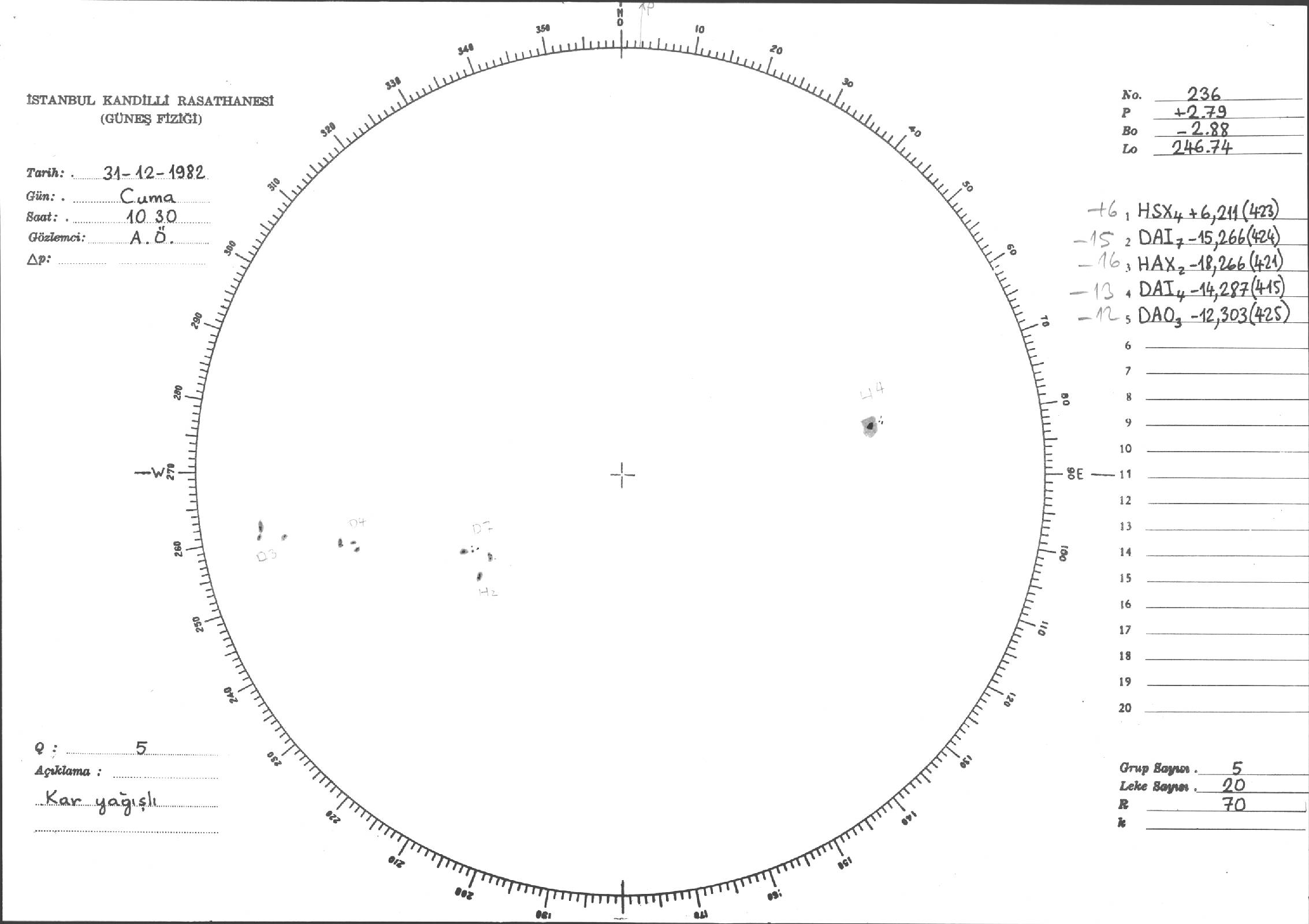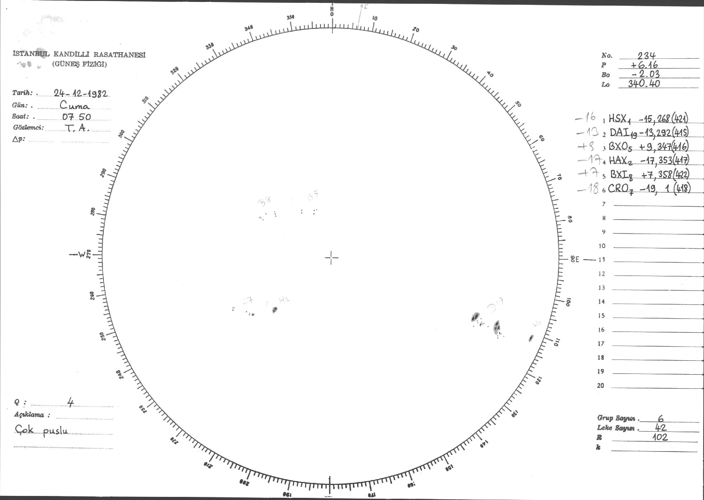 Güneş Lekesi Çizimleri / Kandilli Sunspot Drawings
