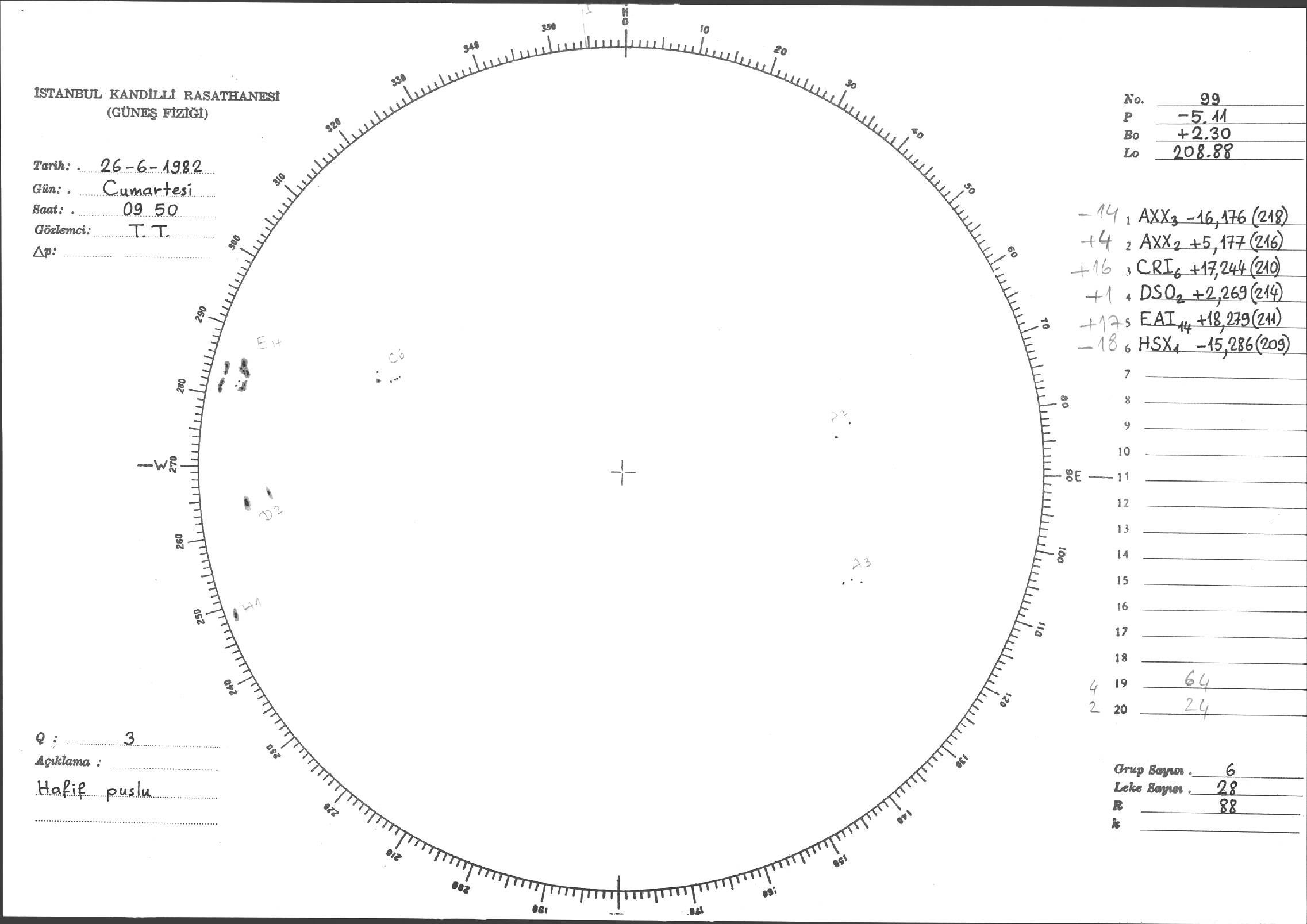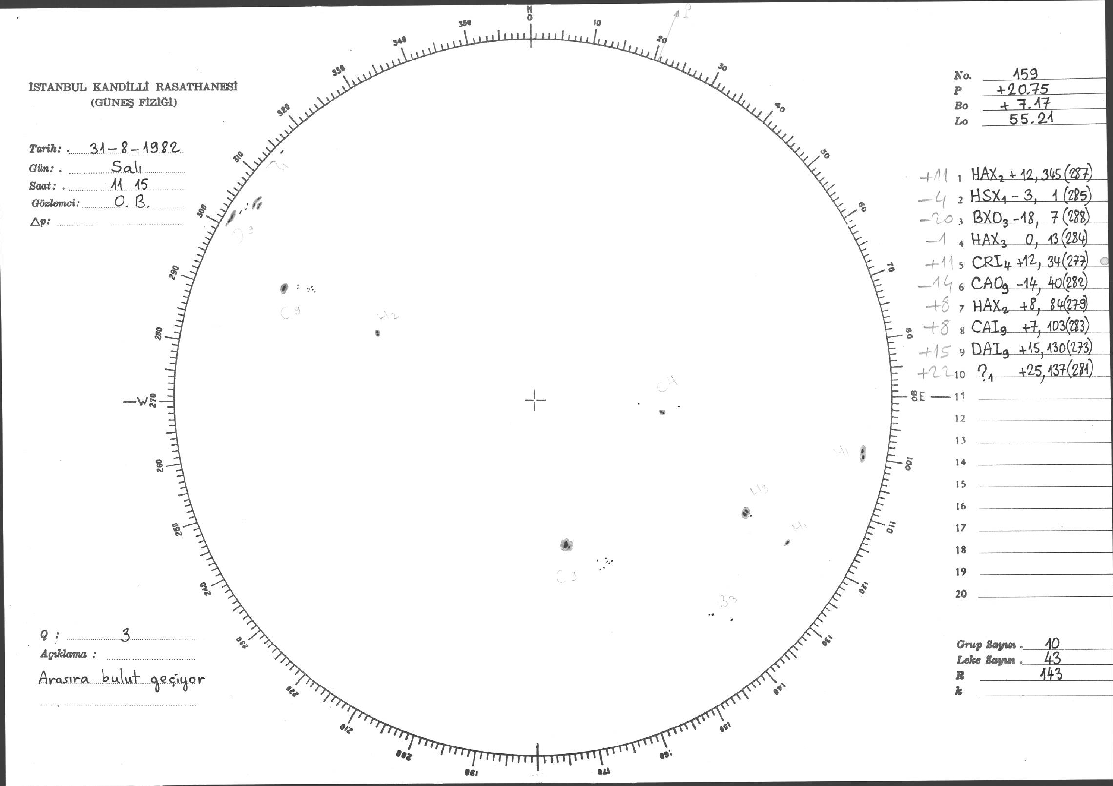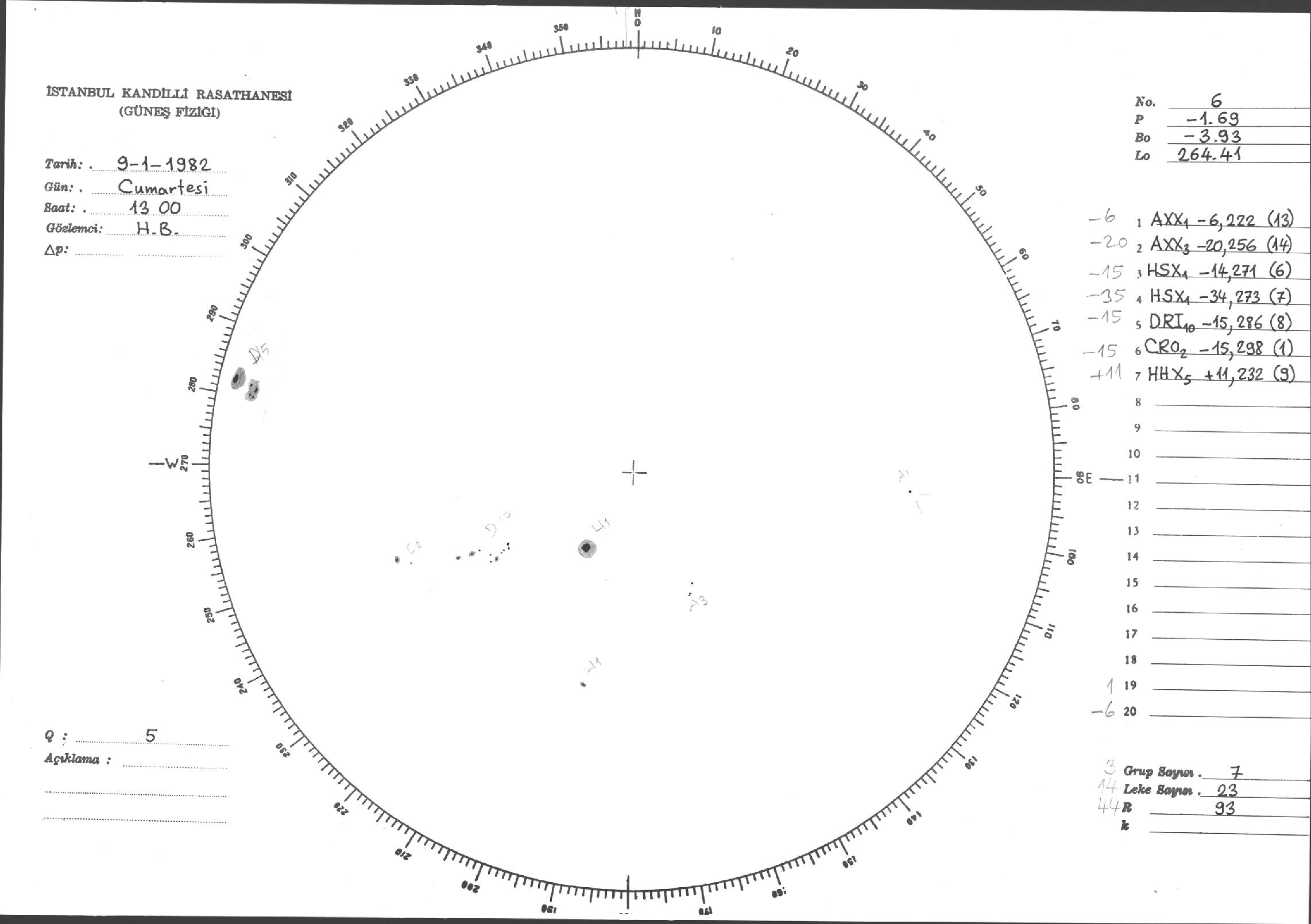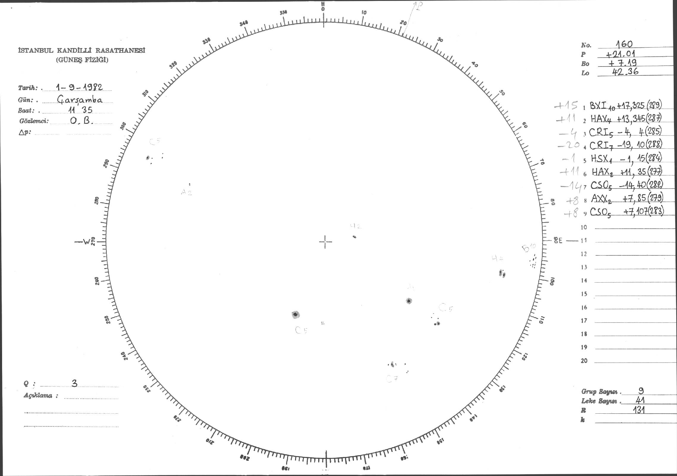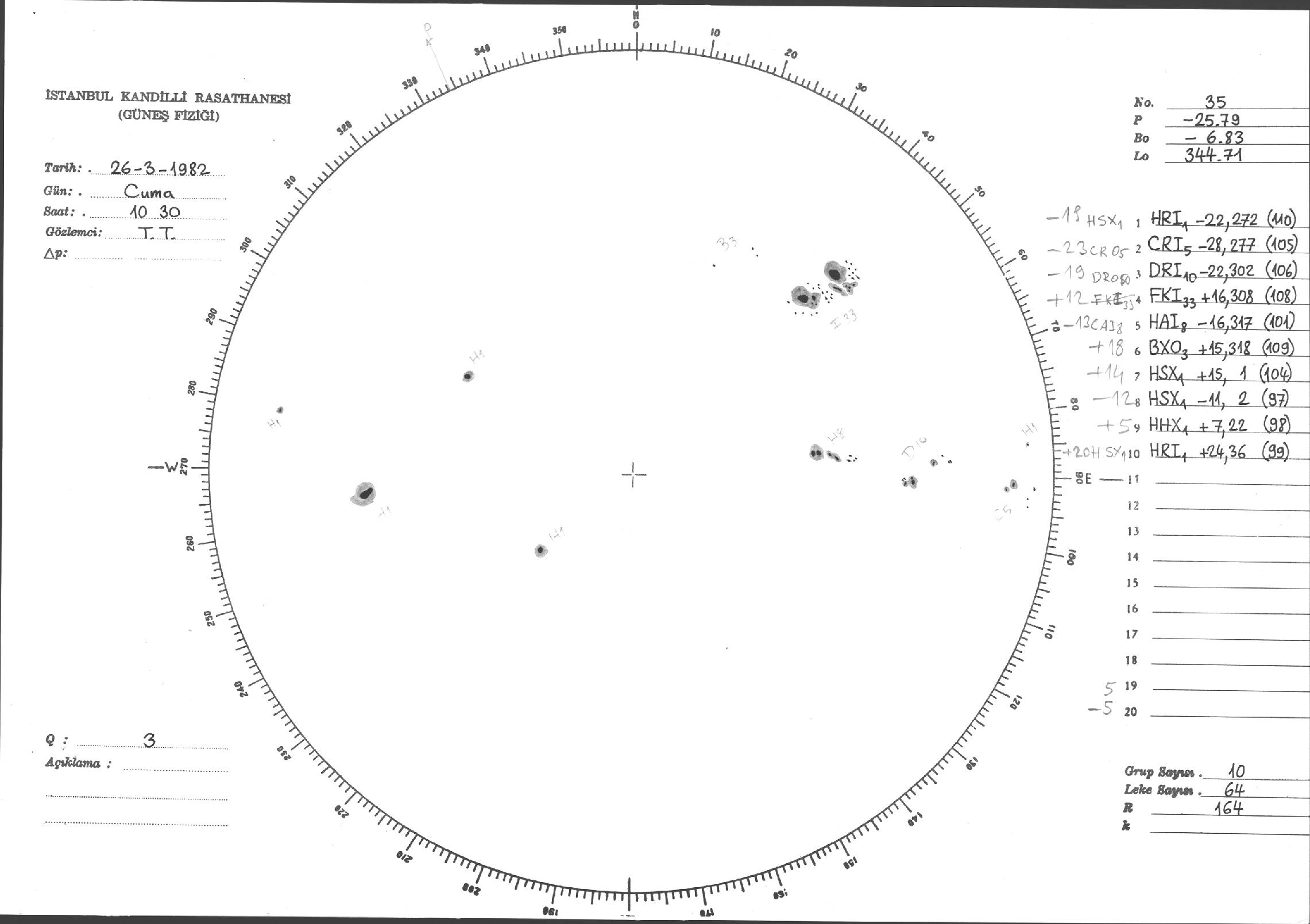 Güneş Lekesi Çizimleri / Kandilli Sunspot Drawings