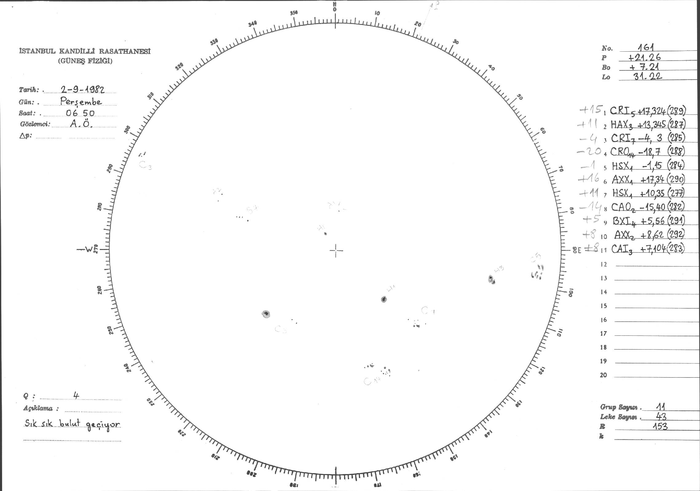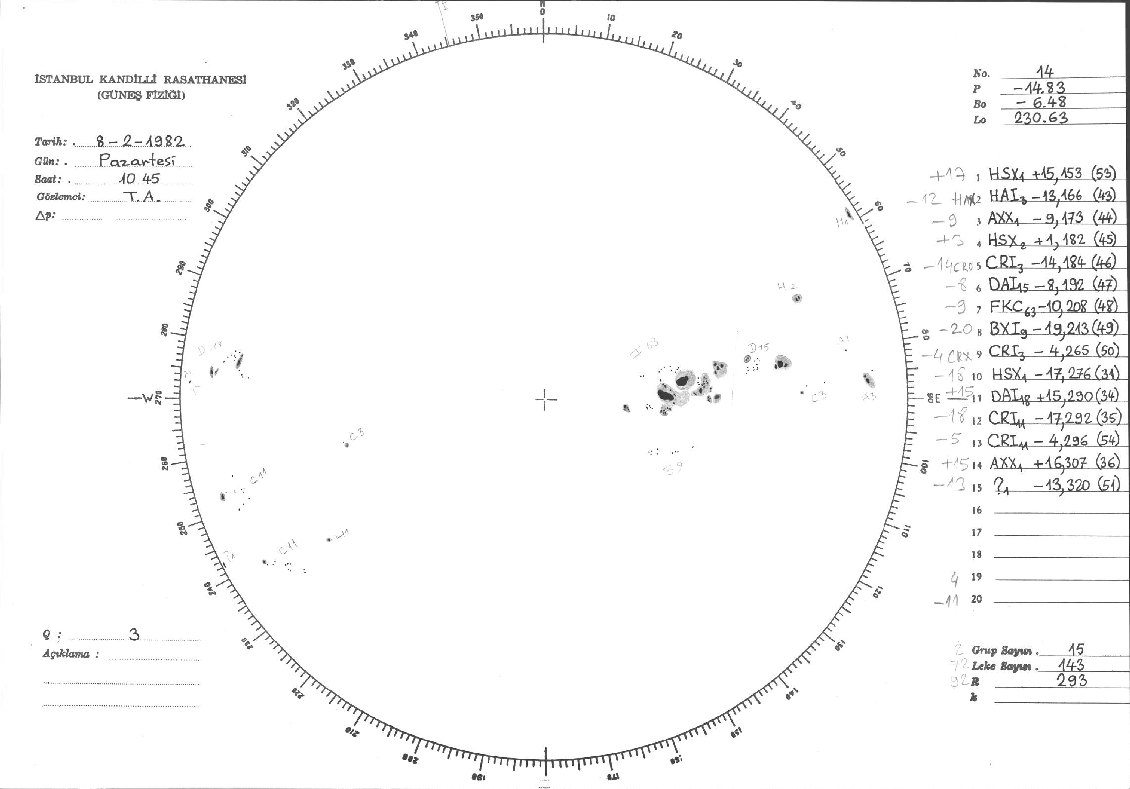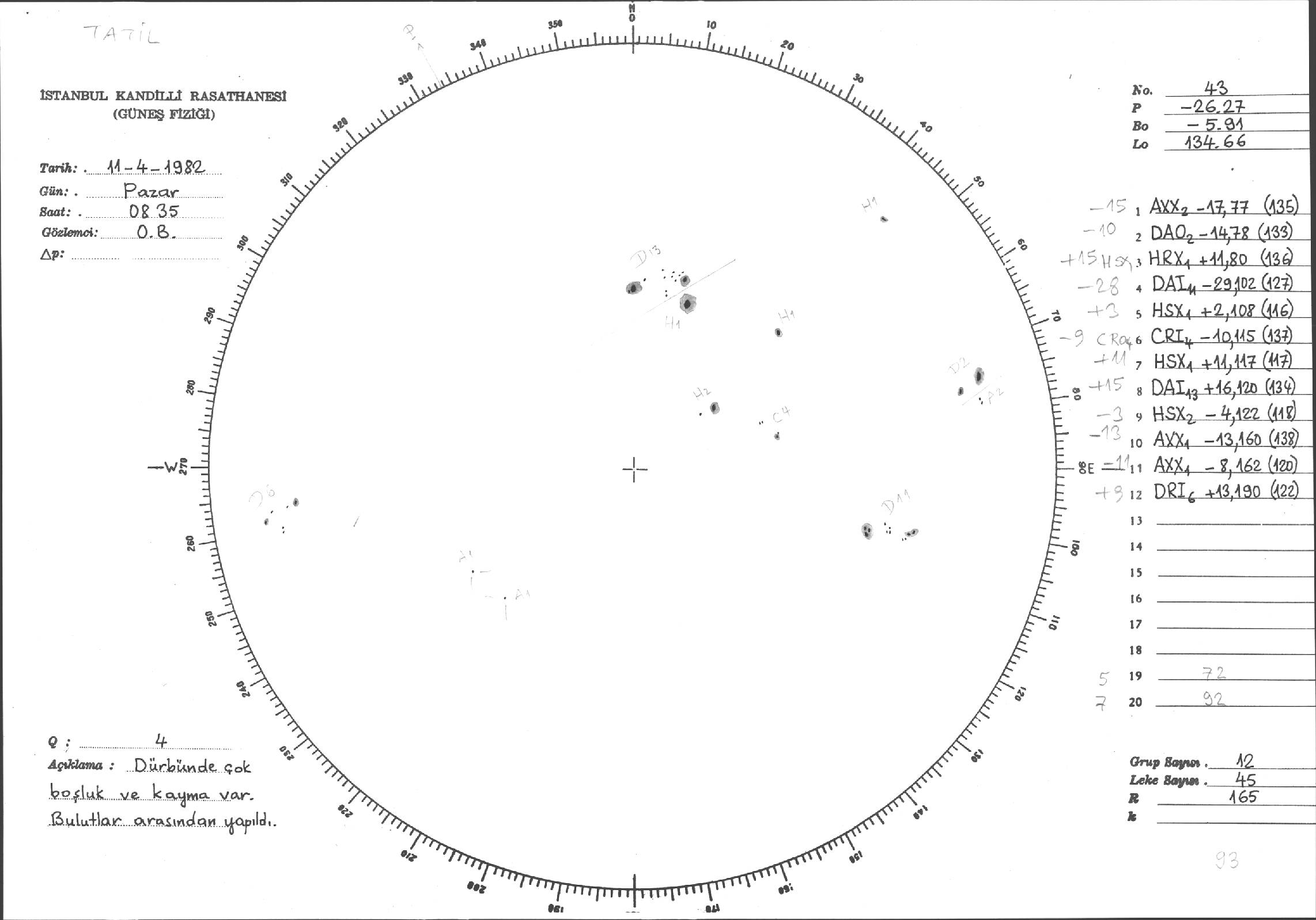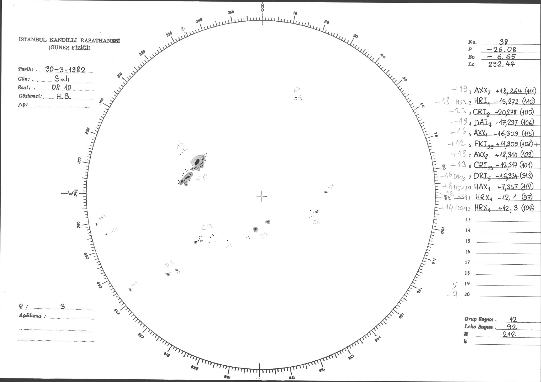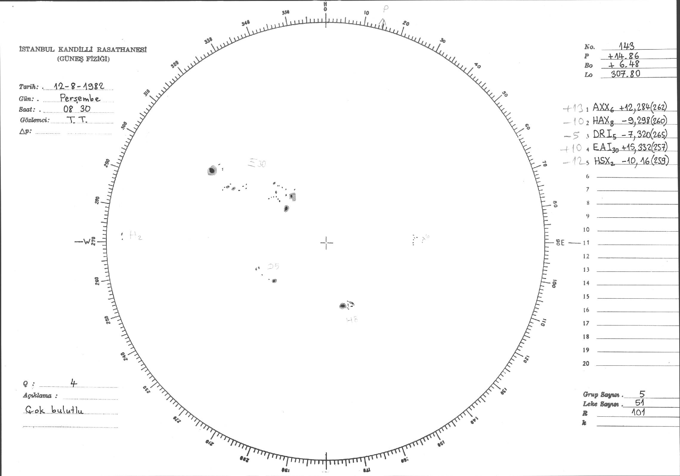 Güneş Lekesi Çizimleri / Kandilli Sunspot Drawings
