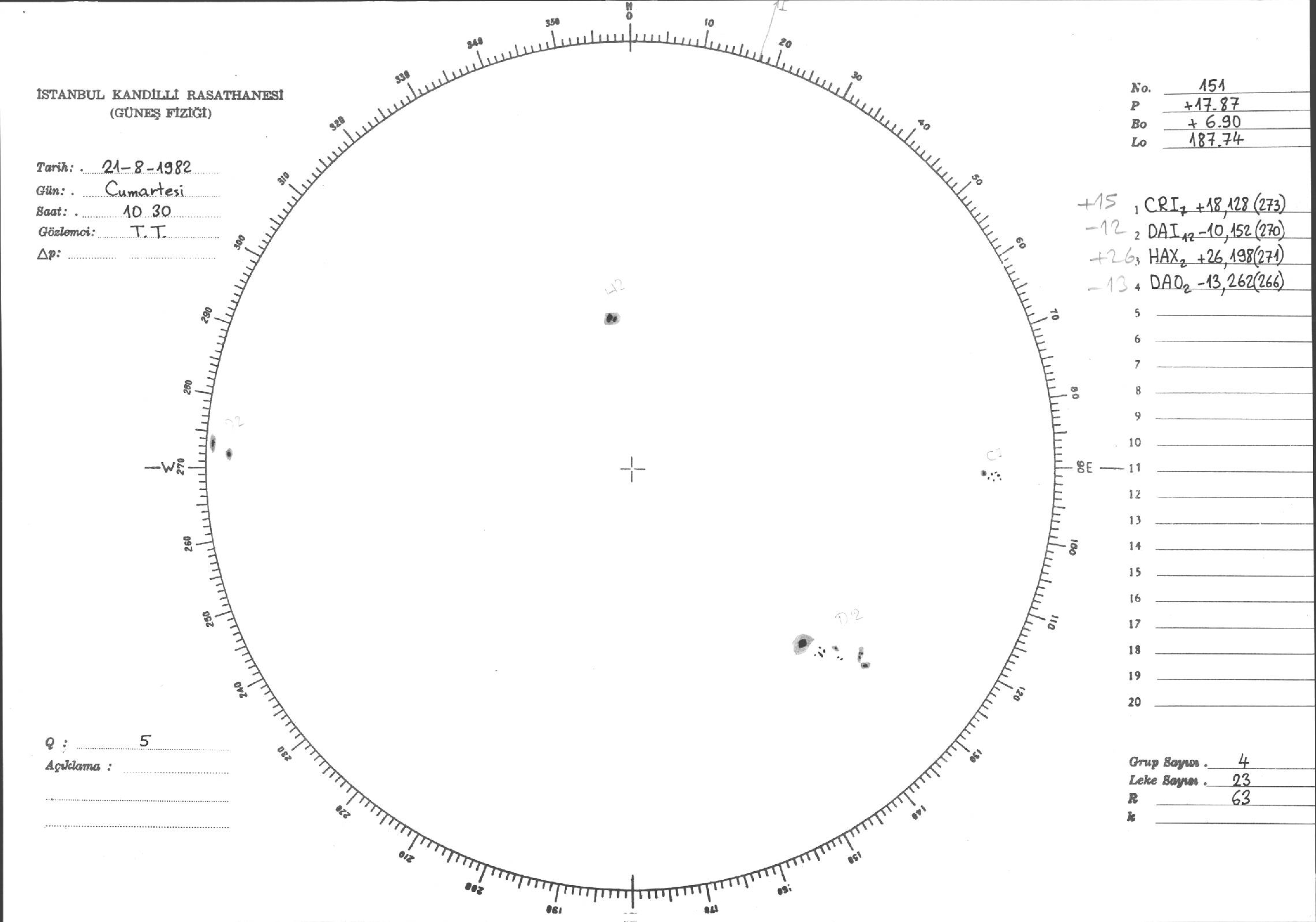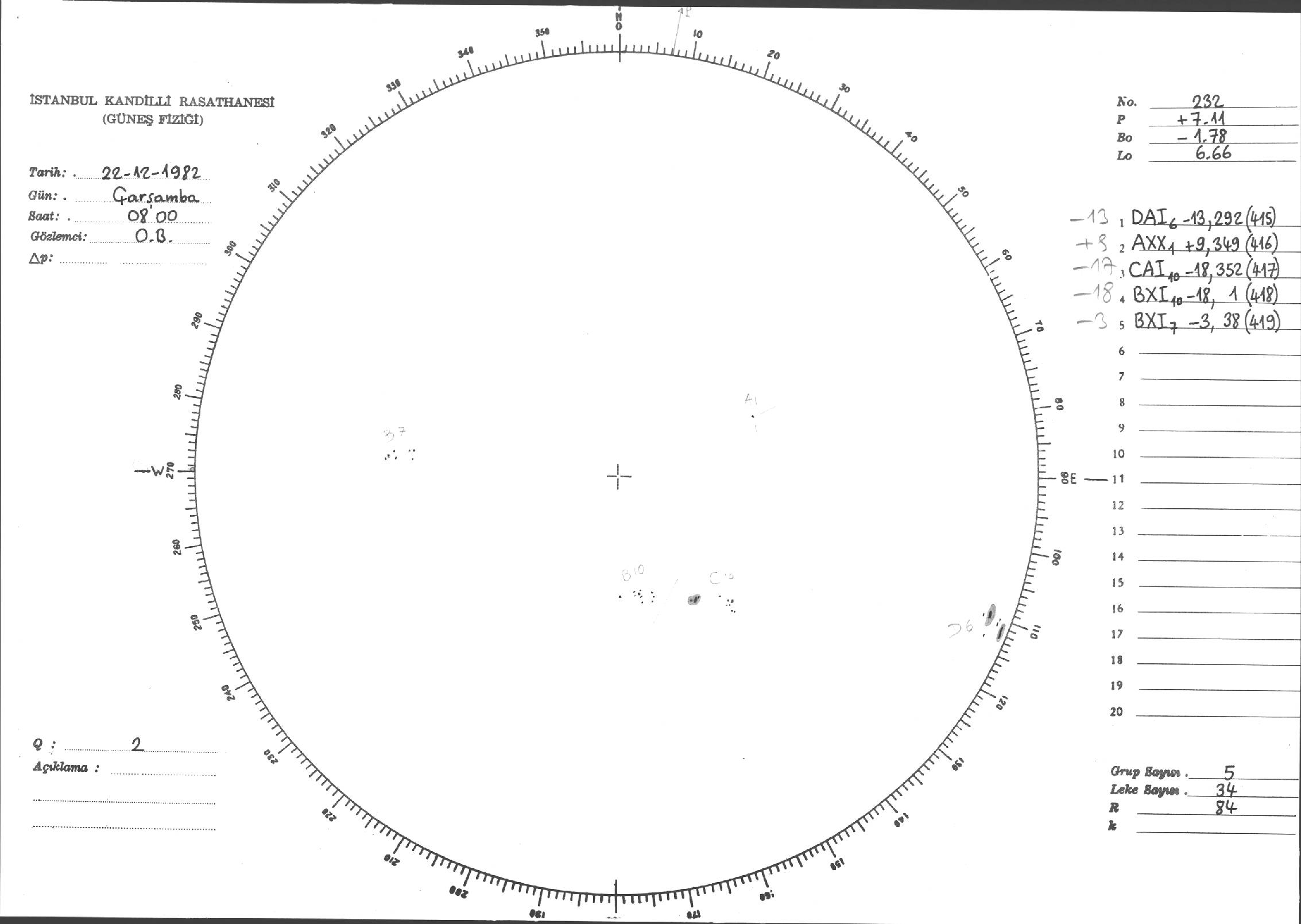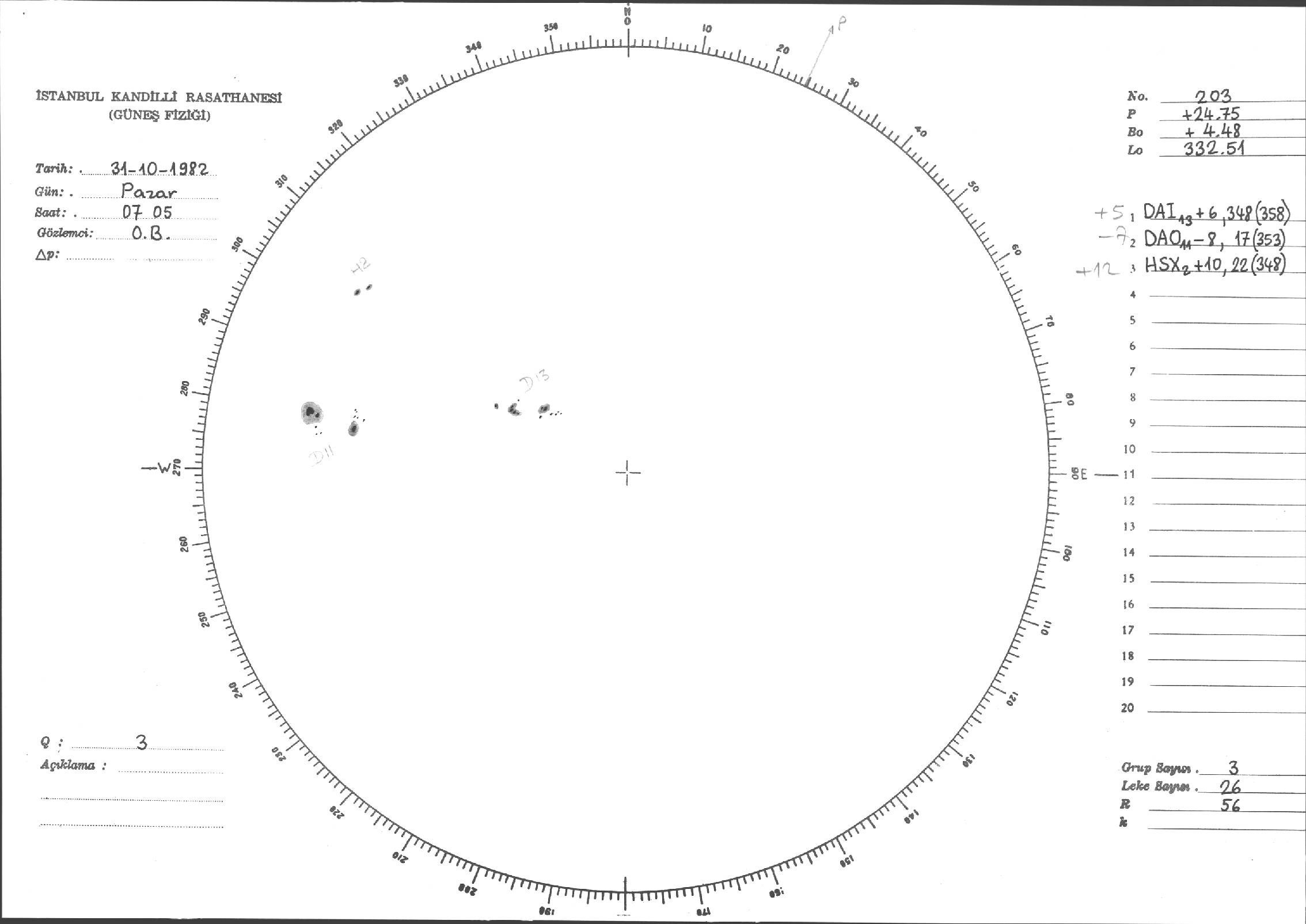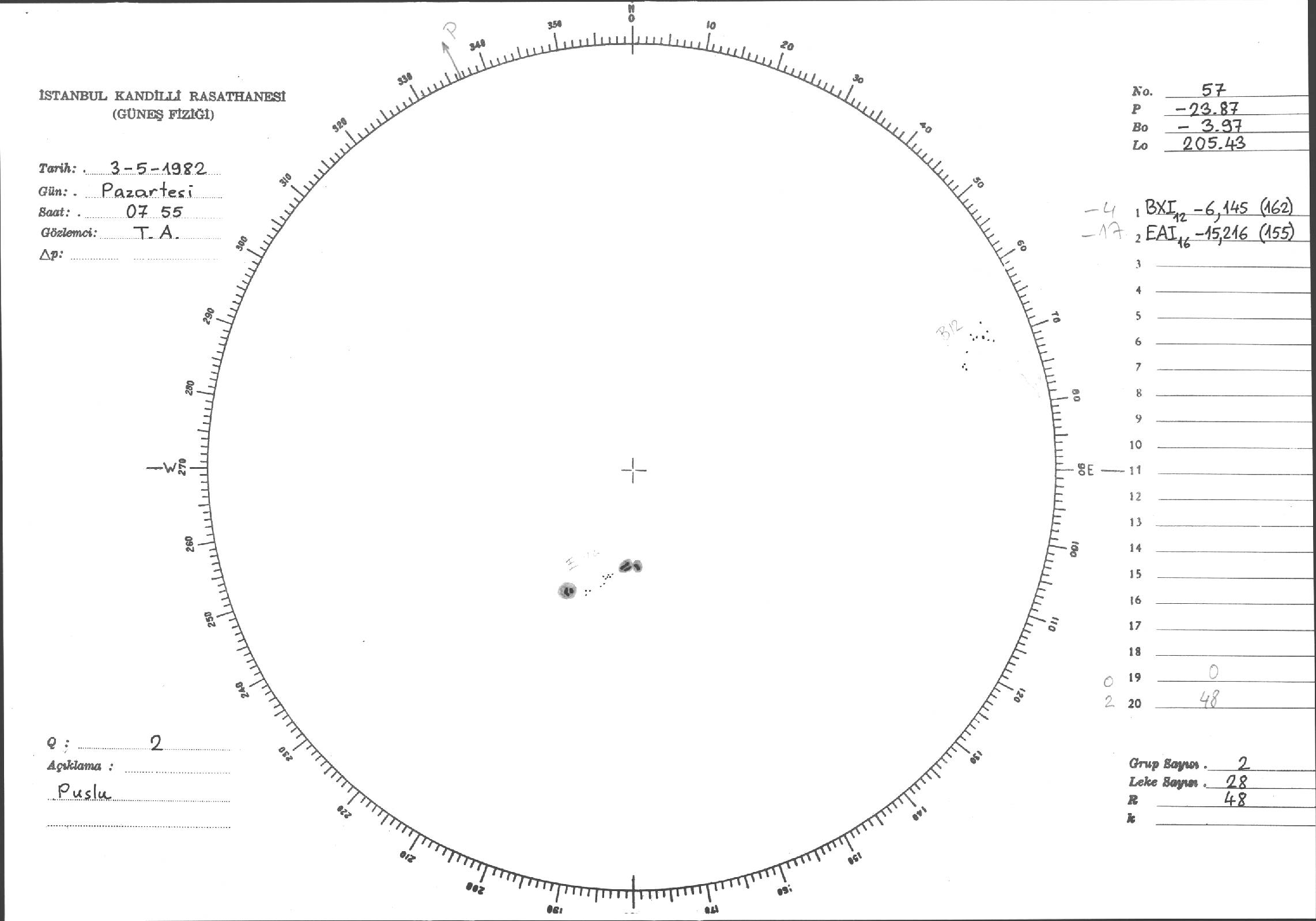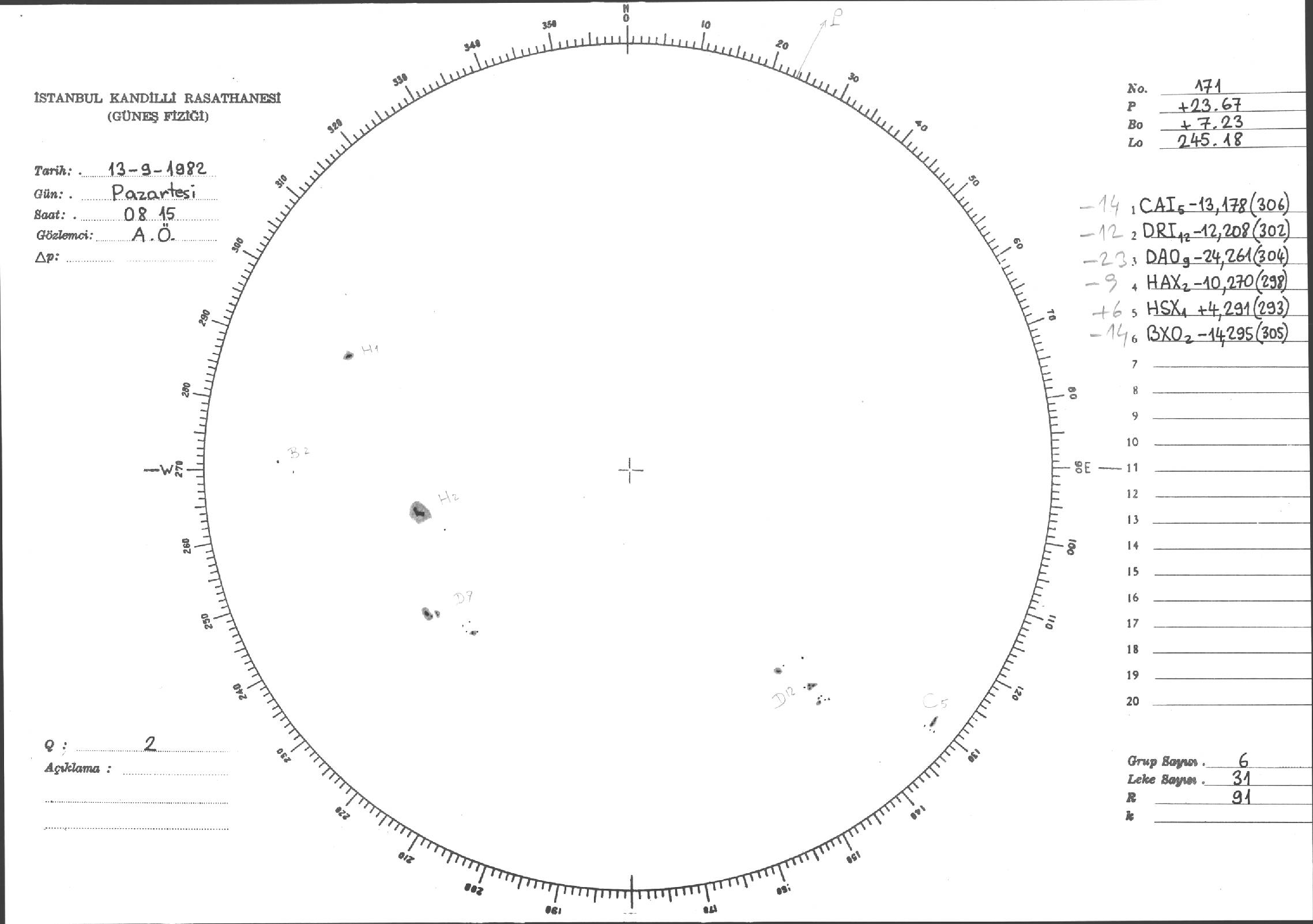 Güneş Lekesi Çizimleri / Kandilli Sunspot Drawings