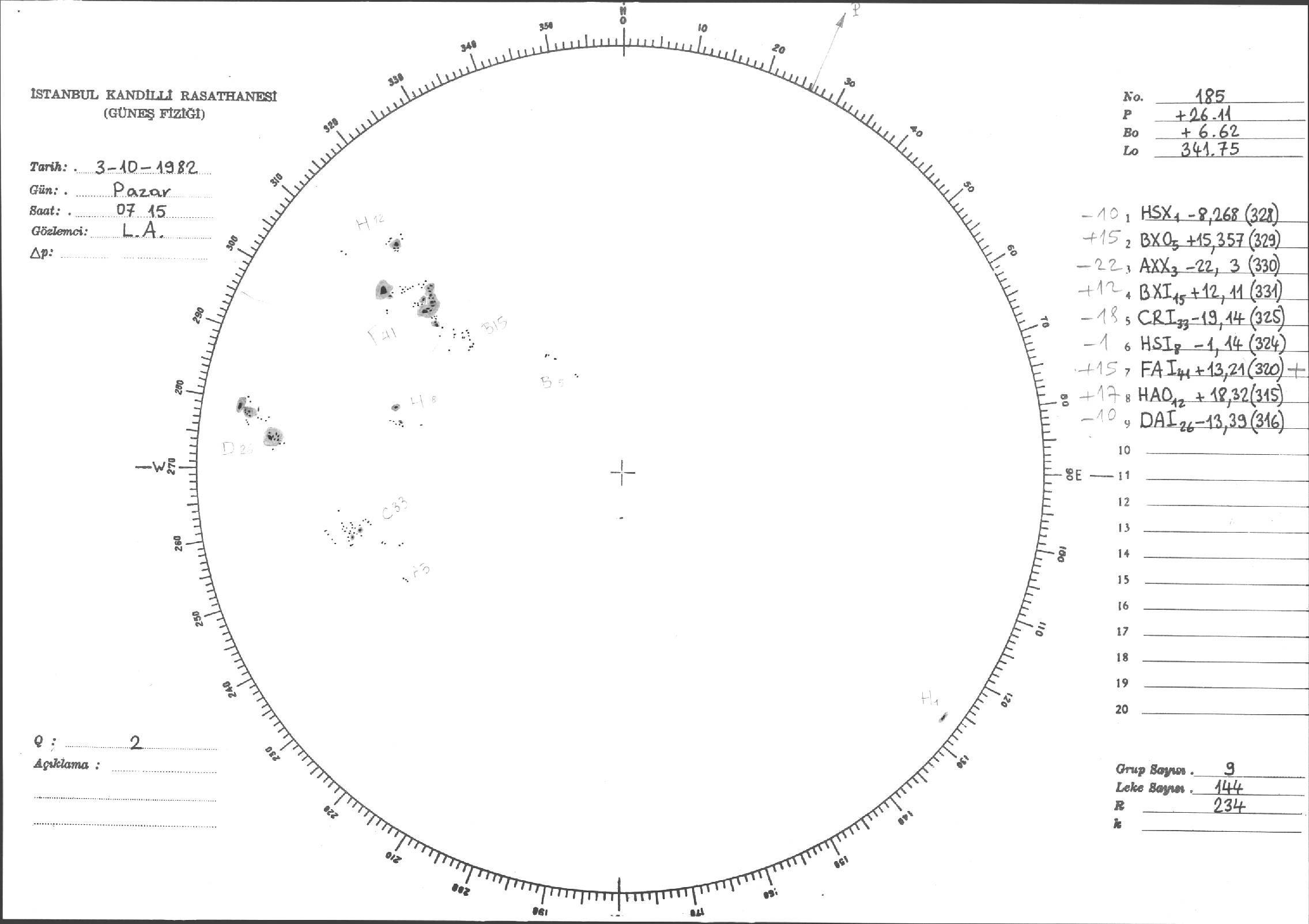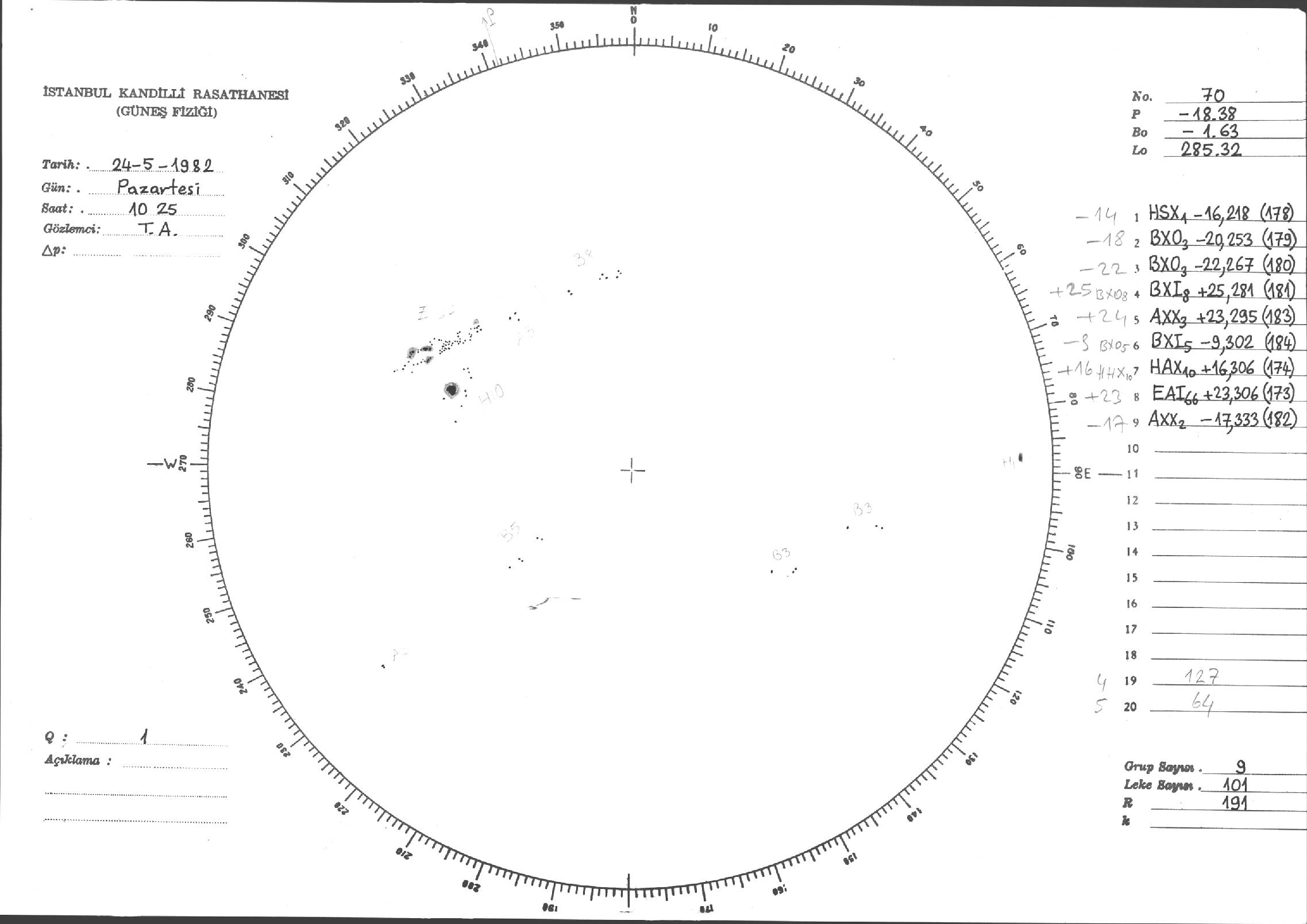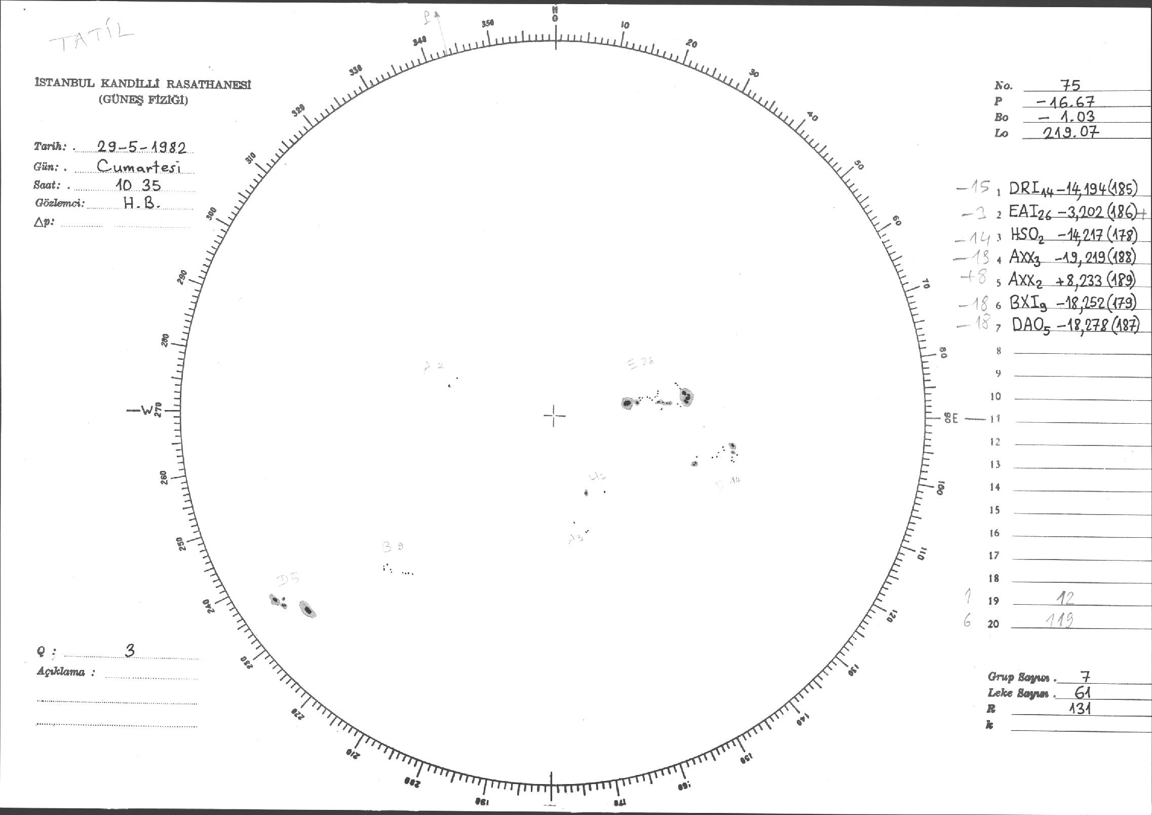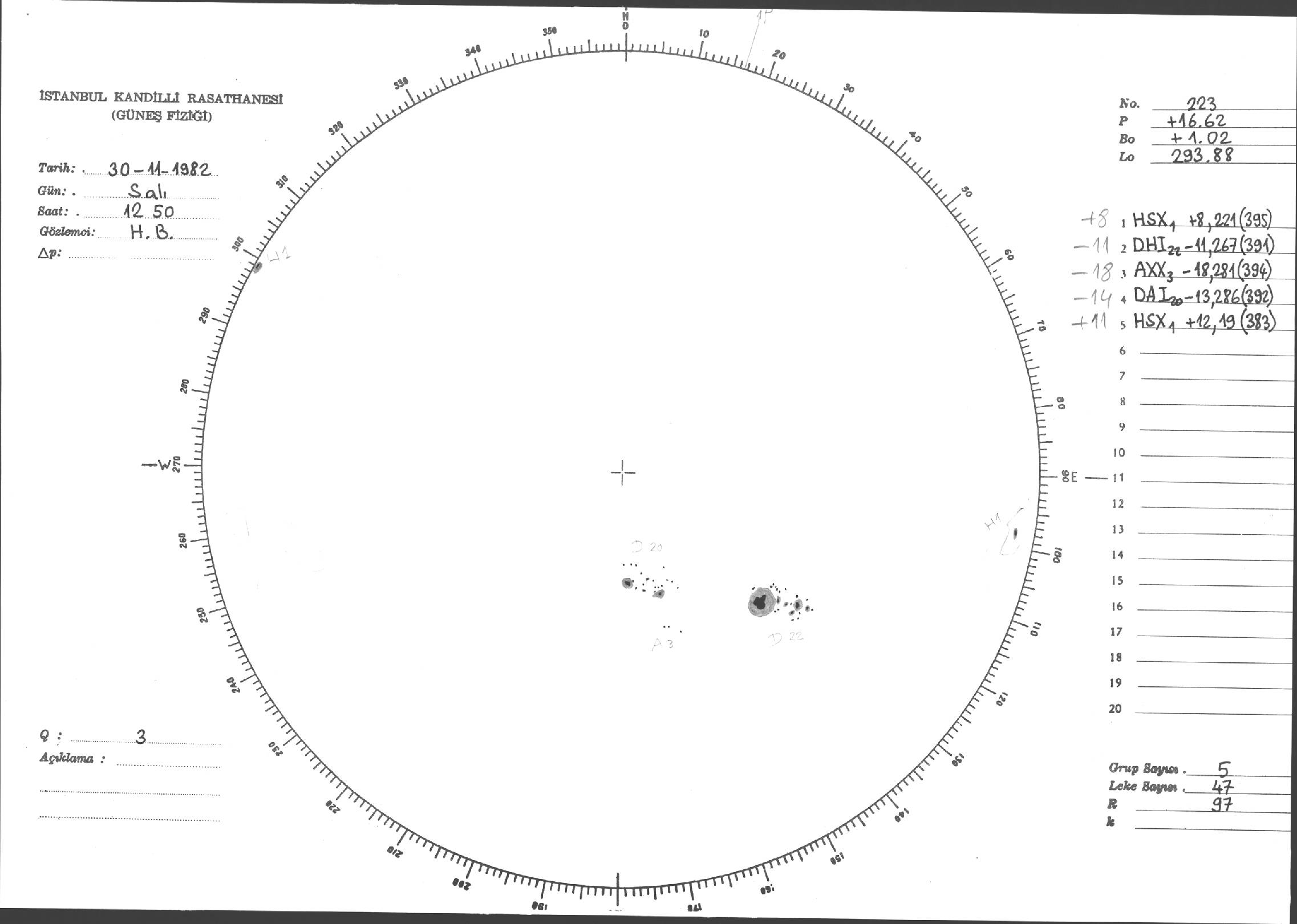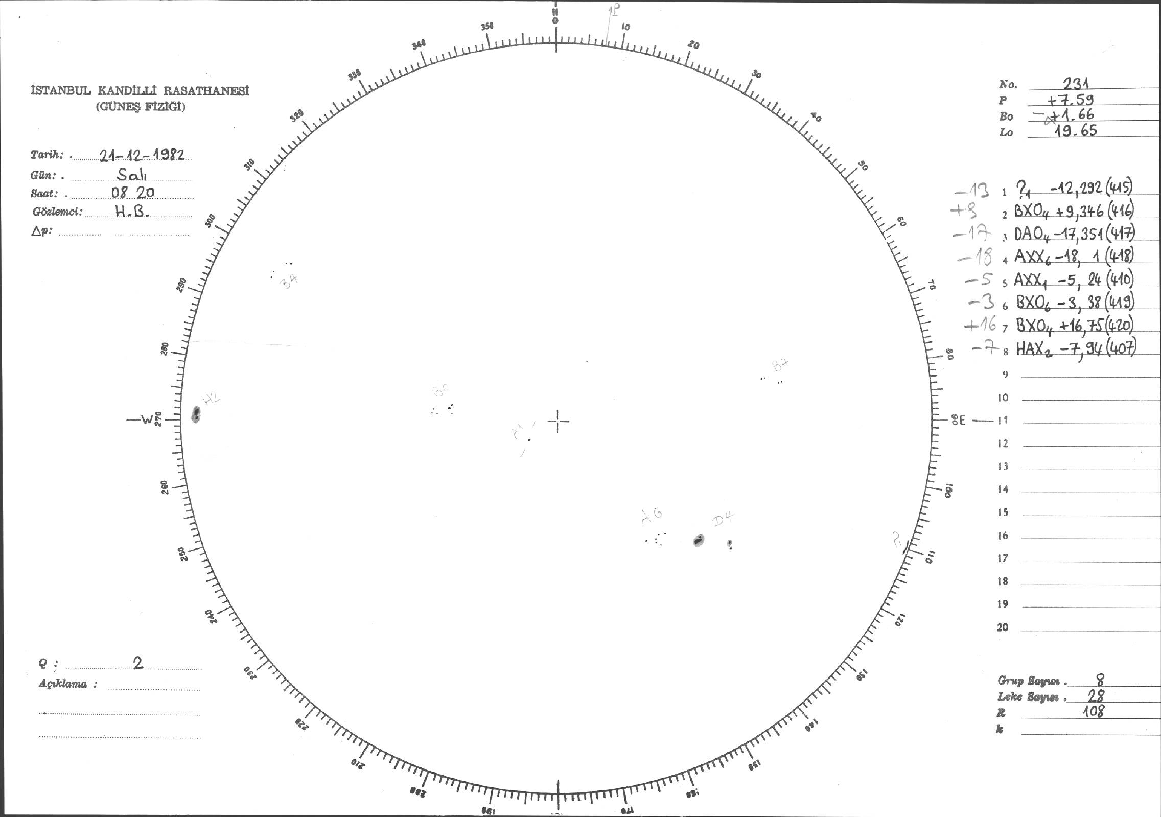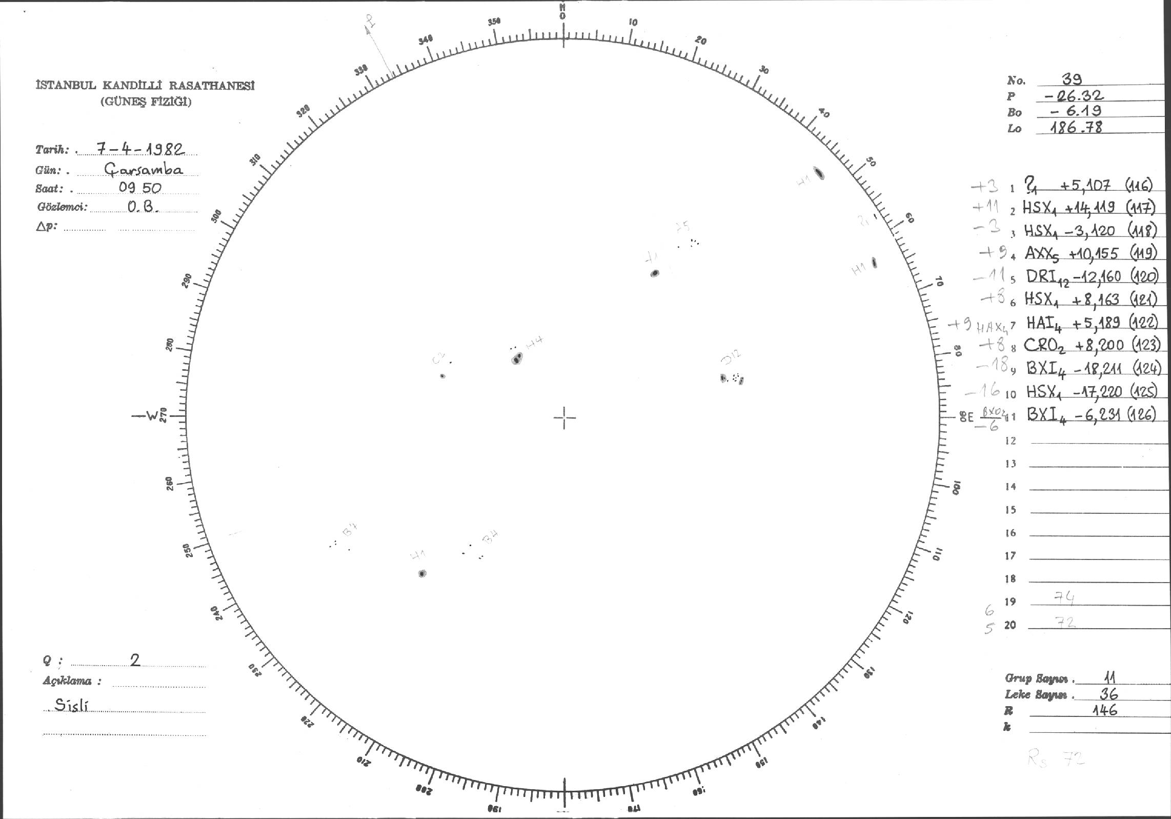 Güneş Lekesi Çizimleri / Kandilli Sunspot Drawings