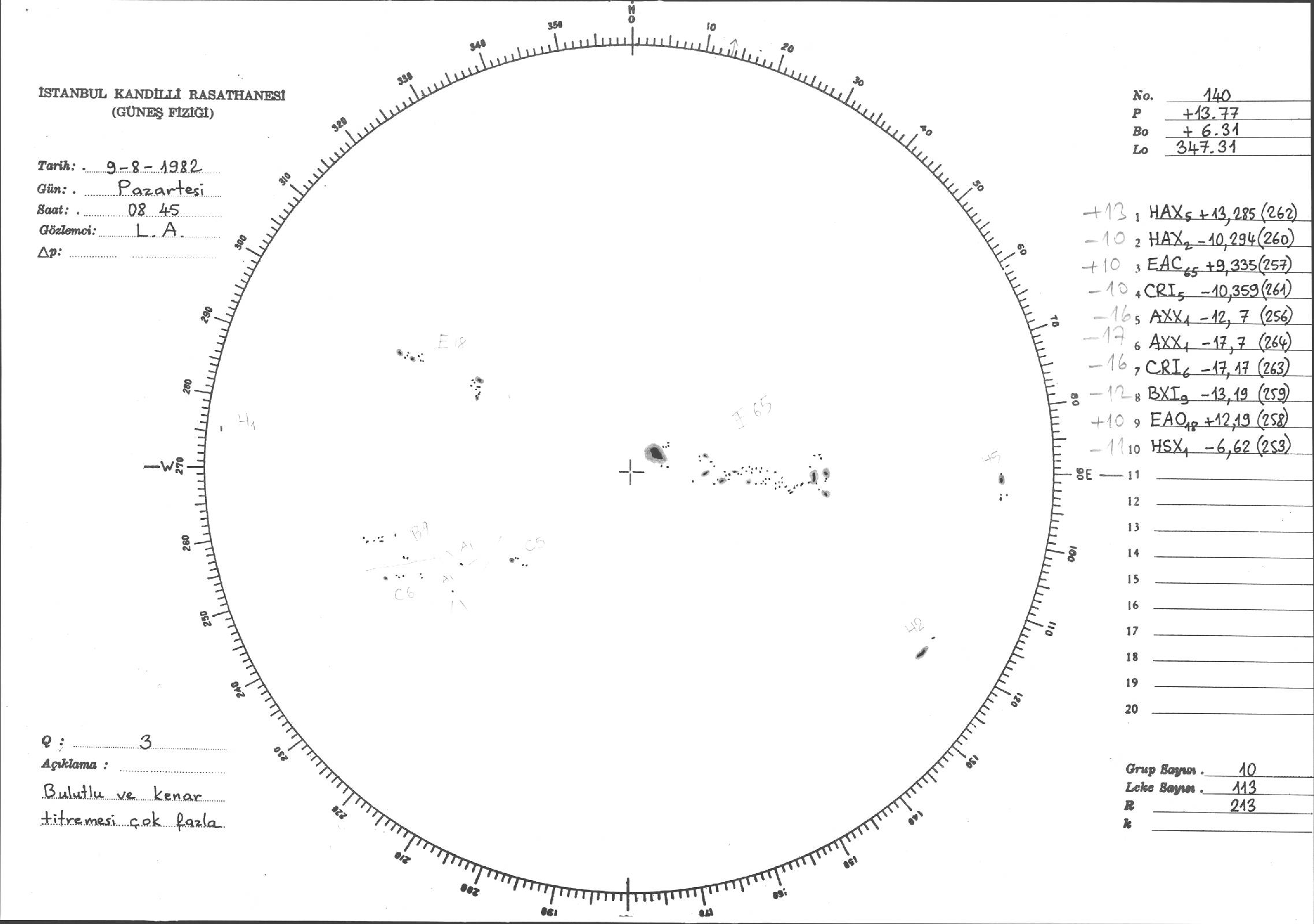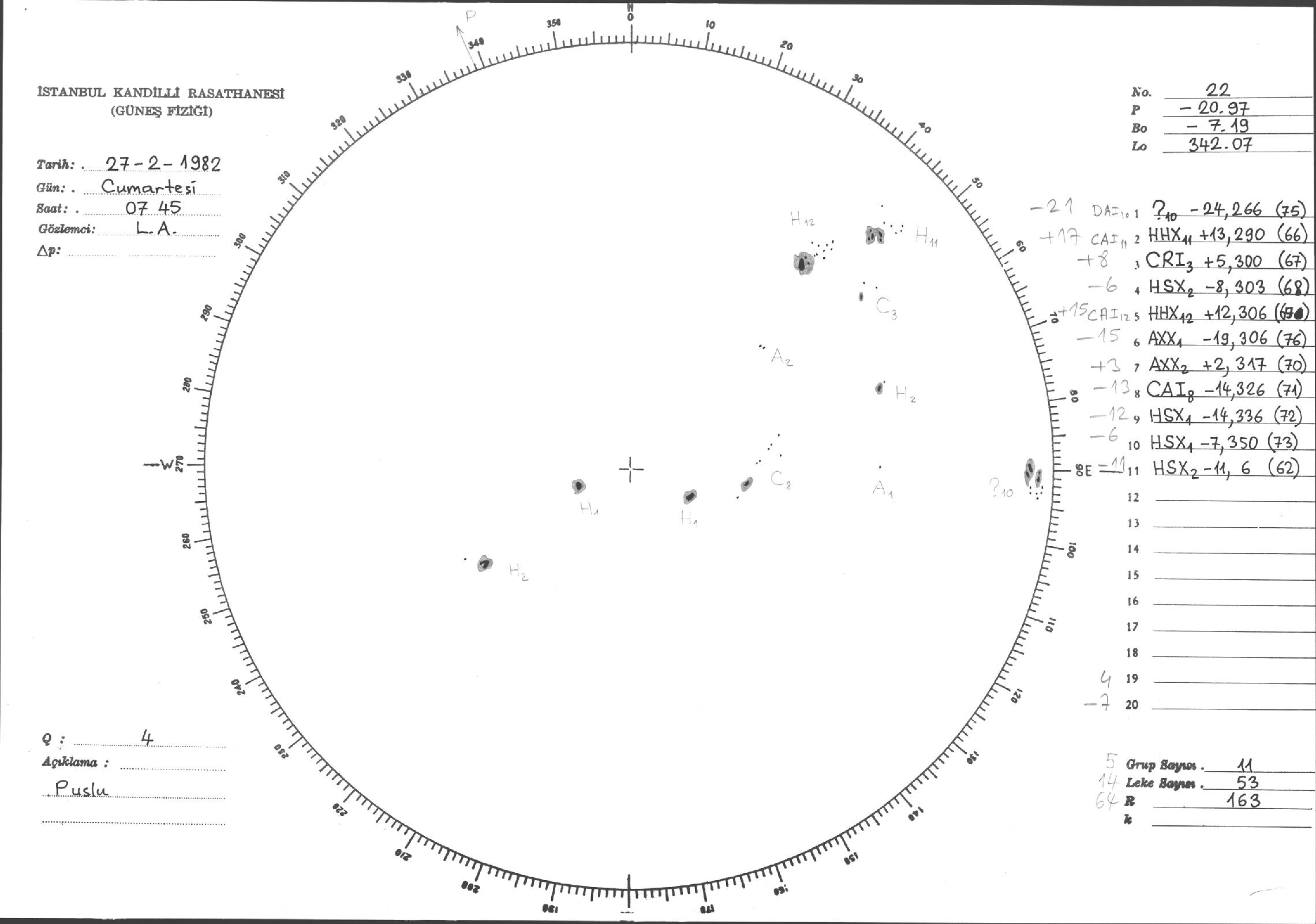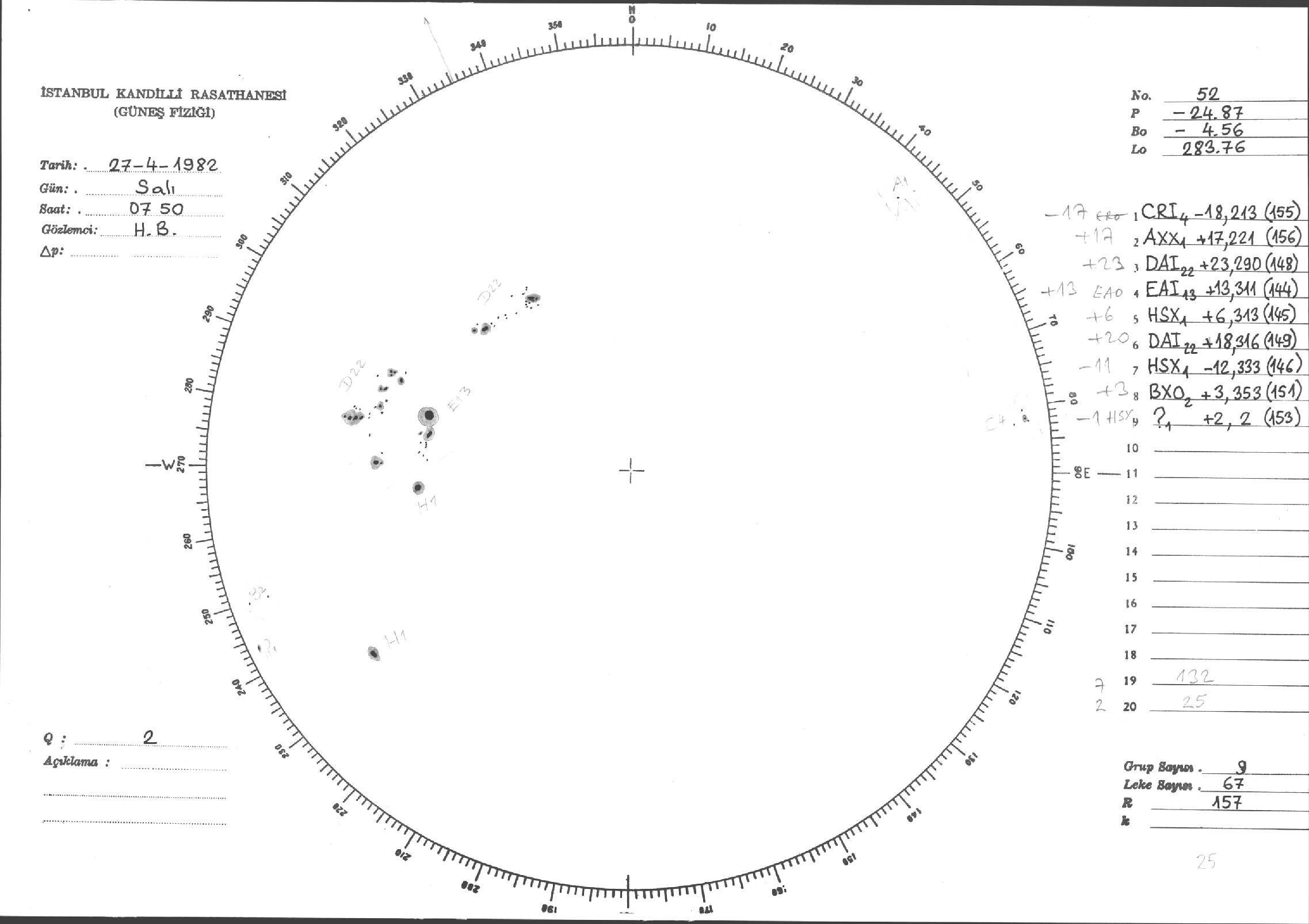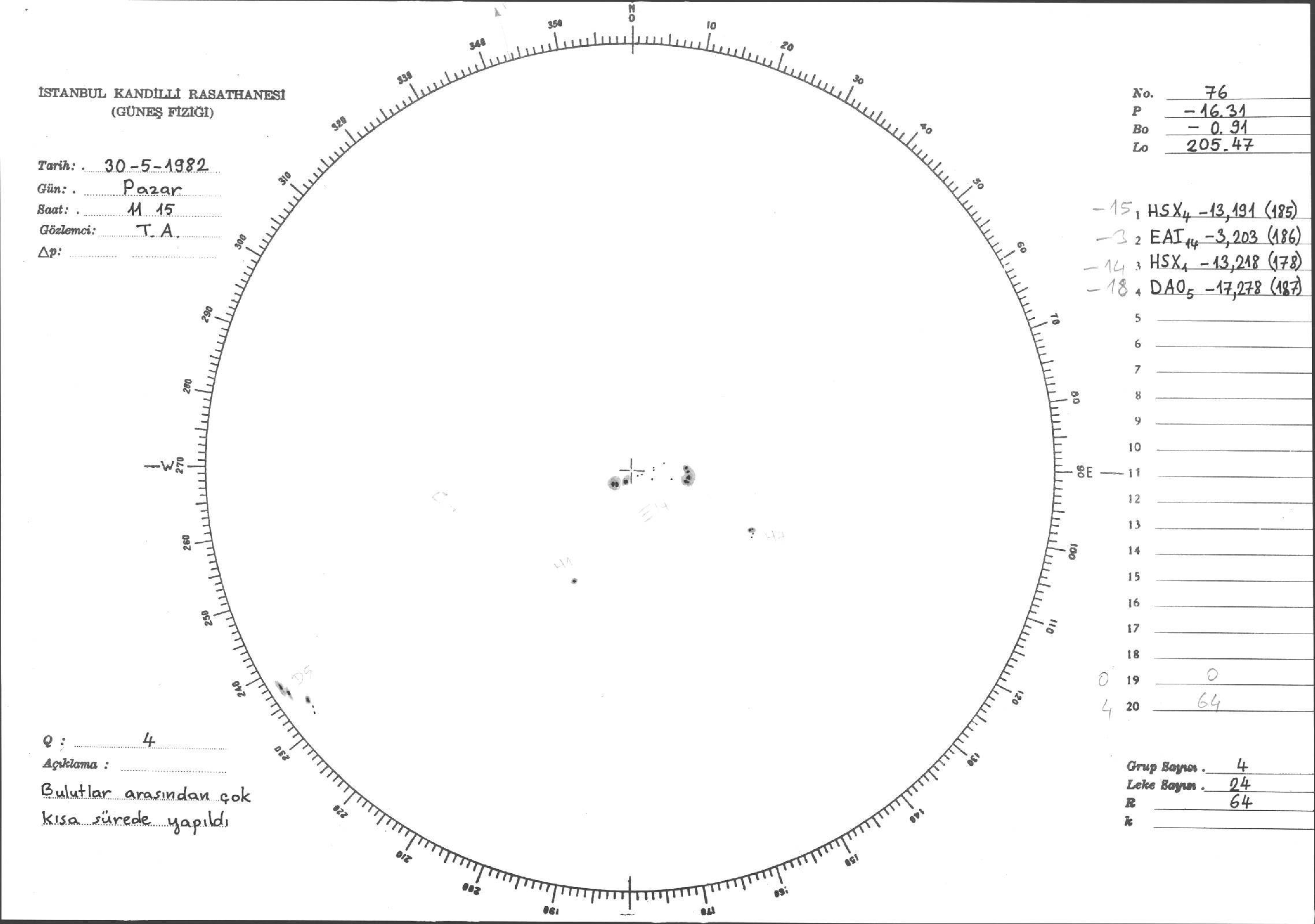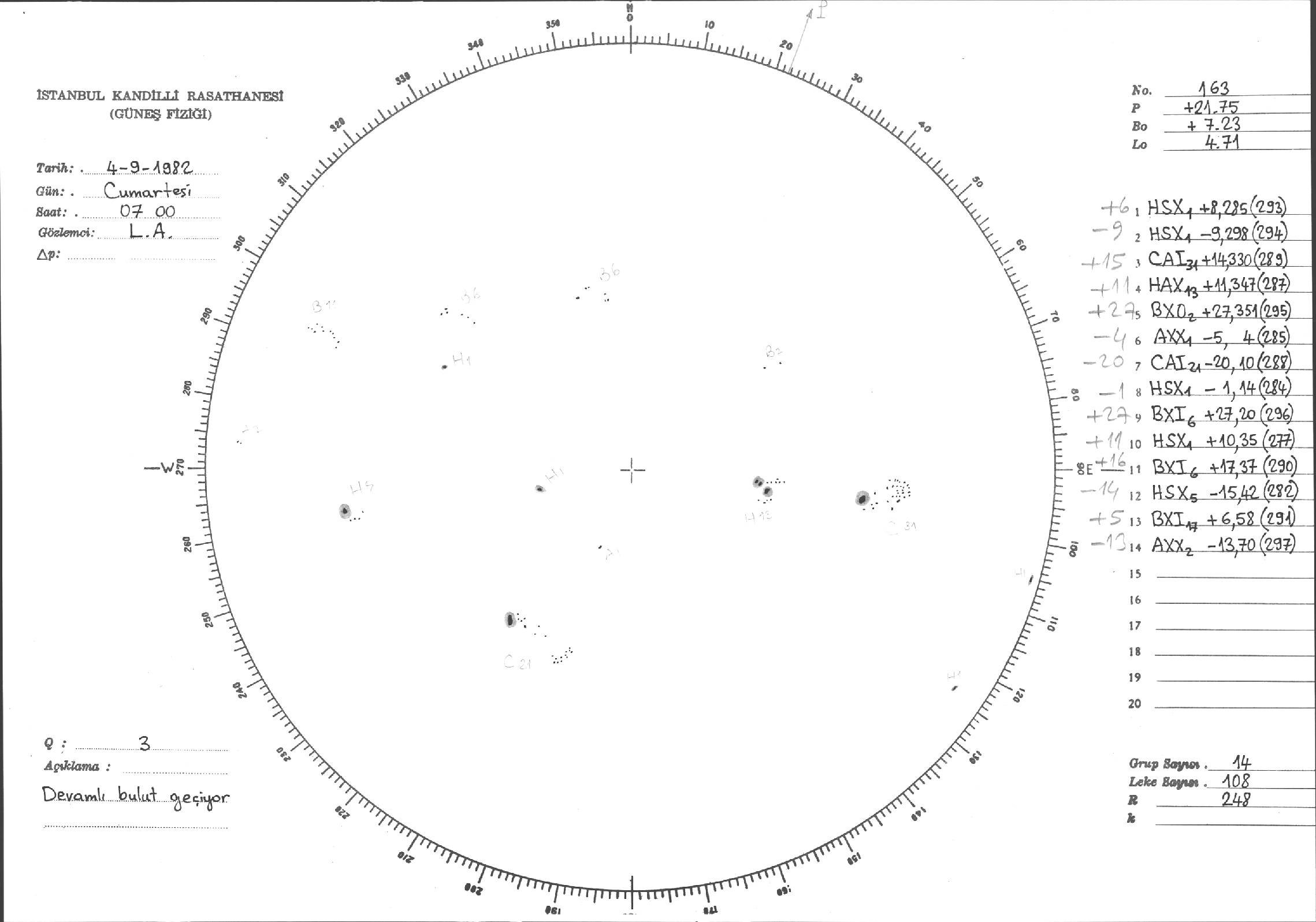 Güneş Lekesi Çizimleri / Kandilli Sunspot Drawings