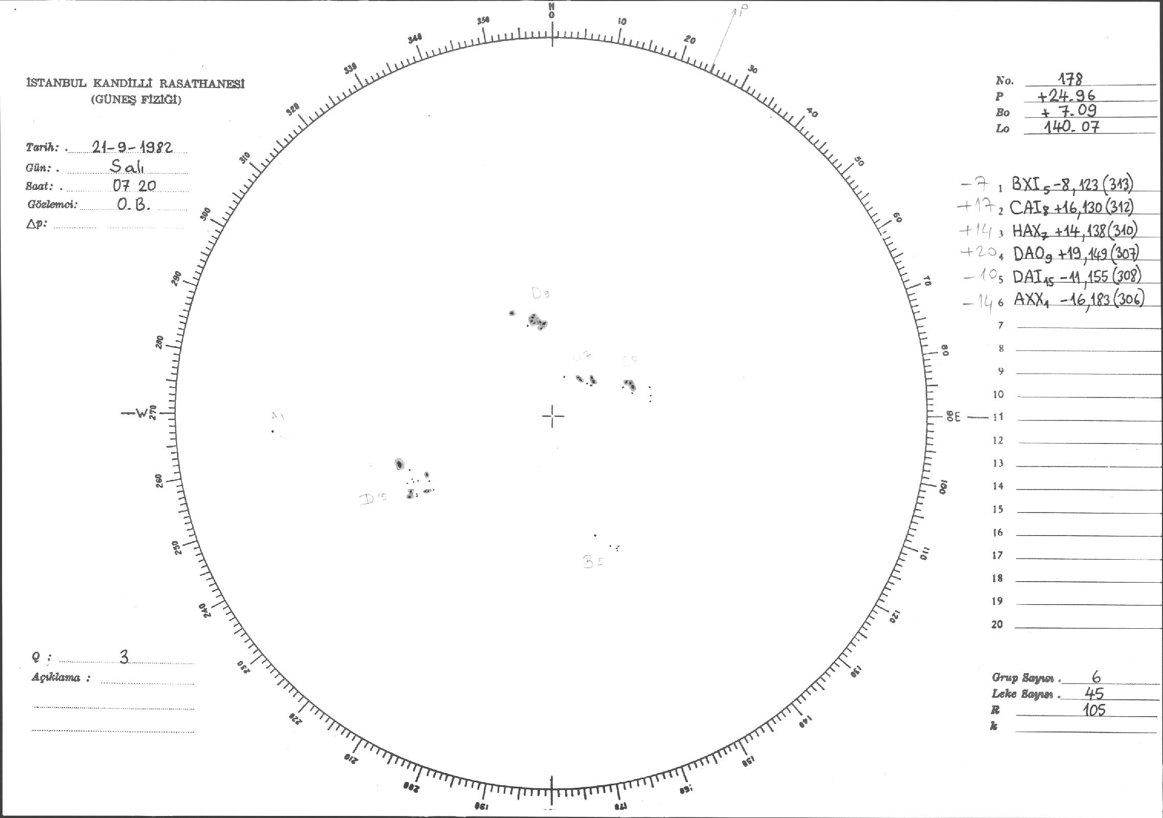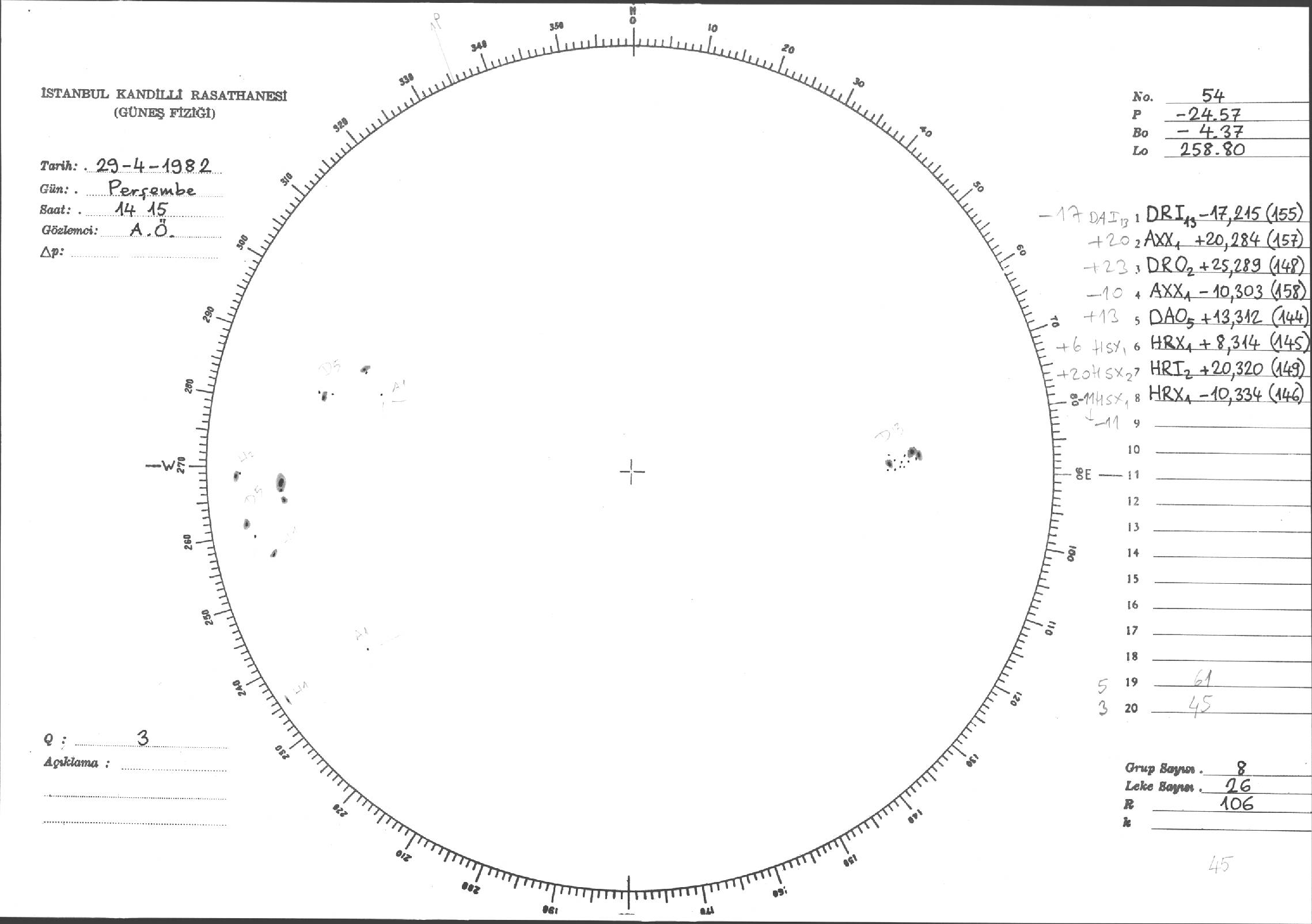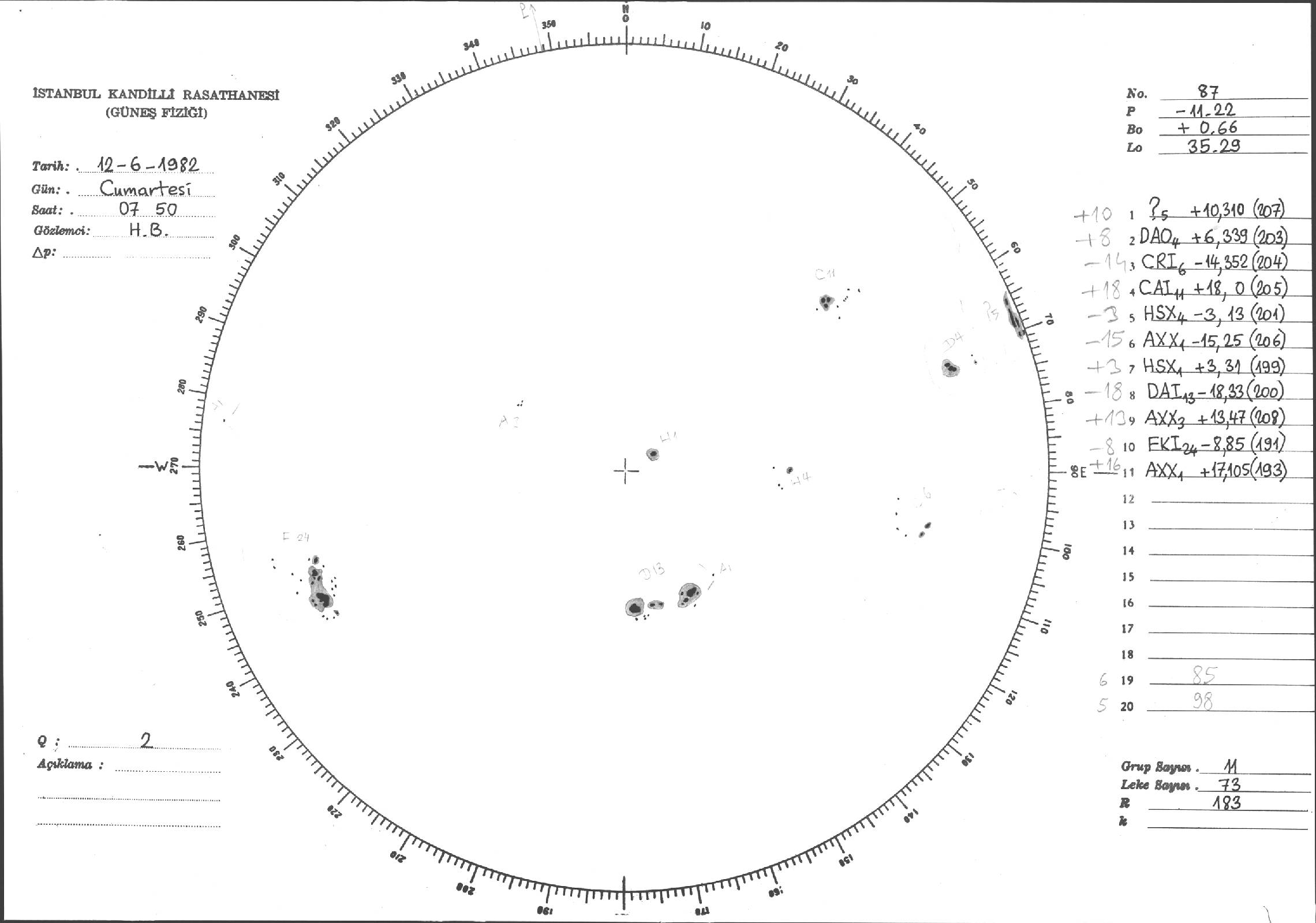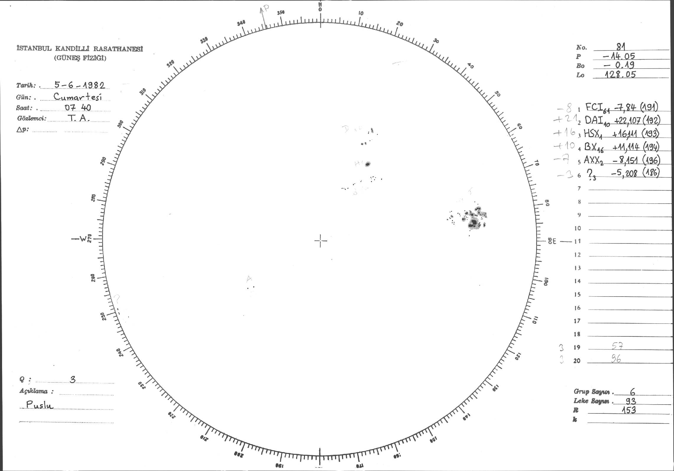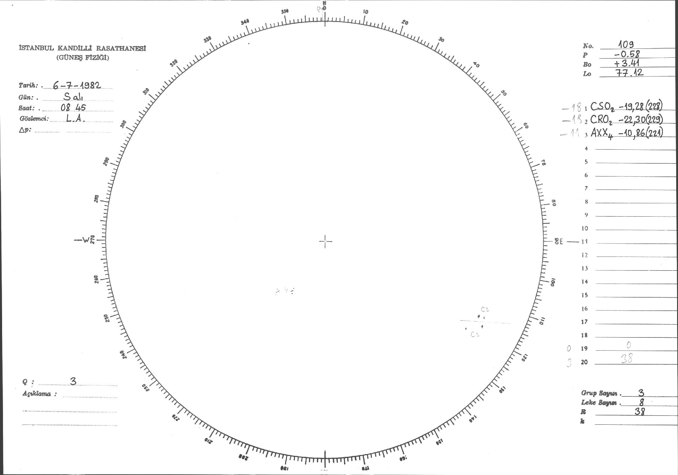 Güneş Lekesi Çizimleri / Kandilli Sunspot Drawings