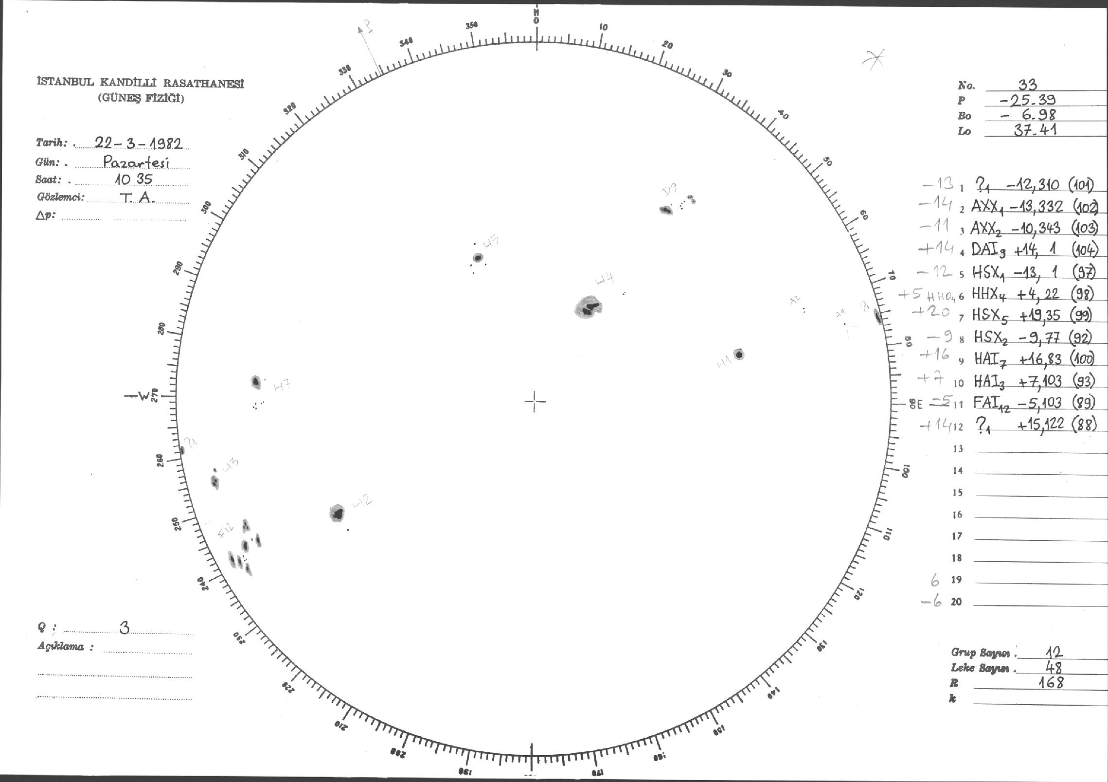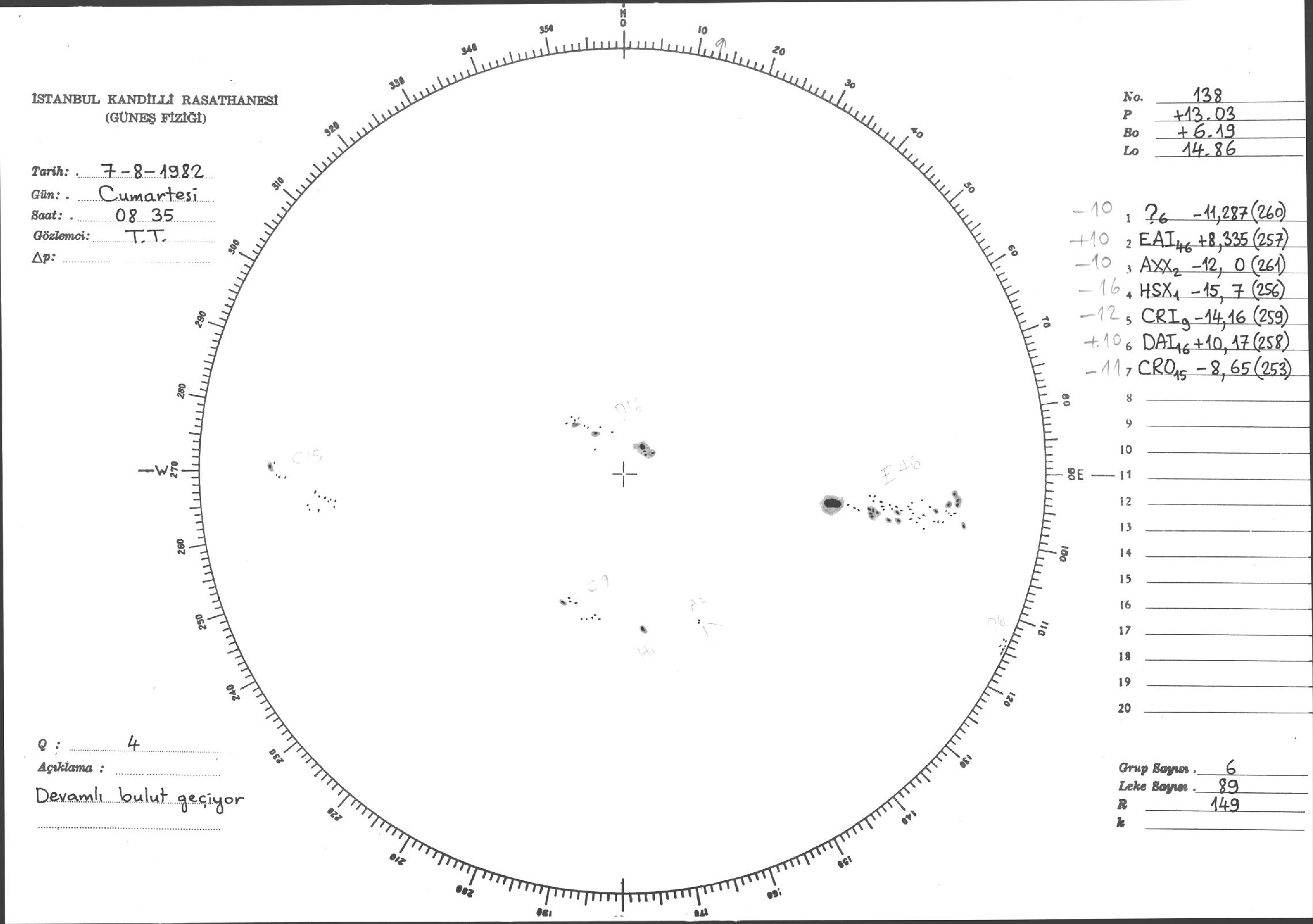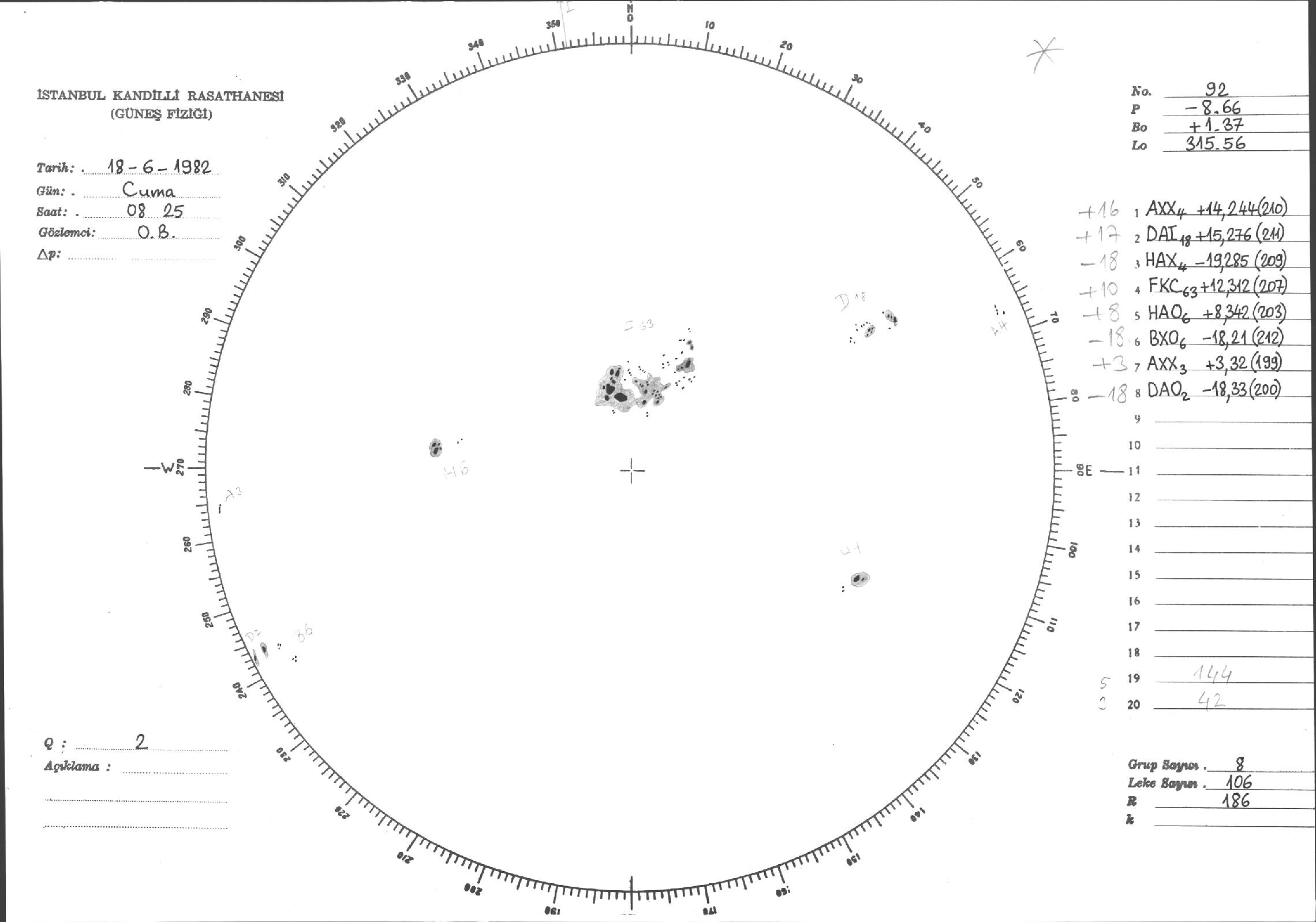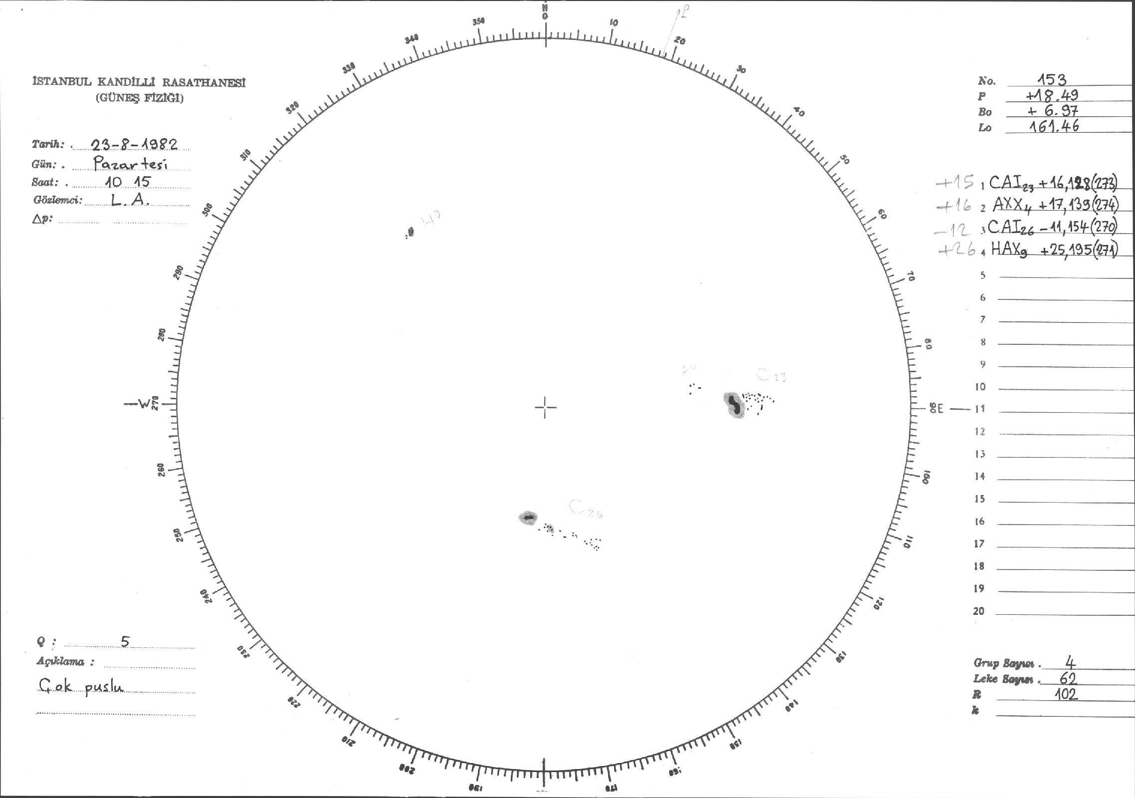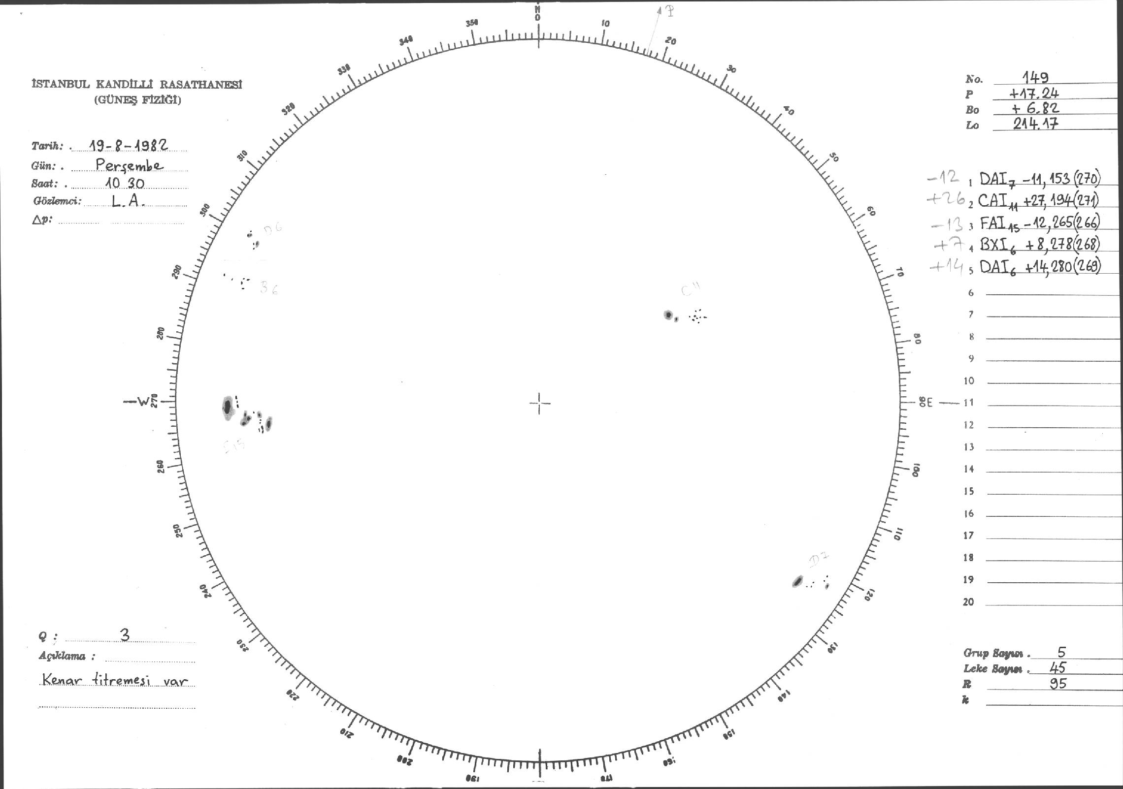 Güneş Lekesi Çizimleri / Kandilli Sunspot Drawings
