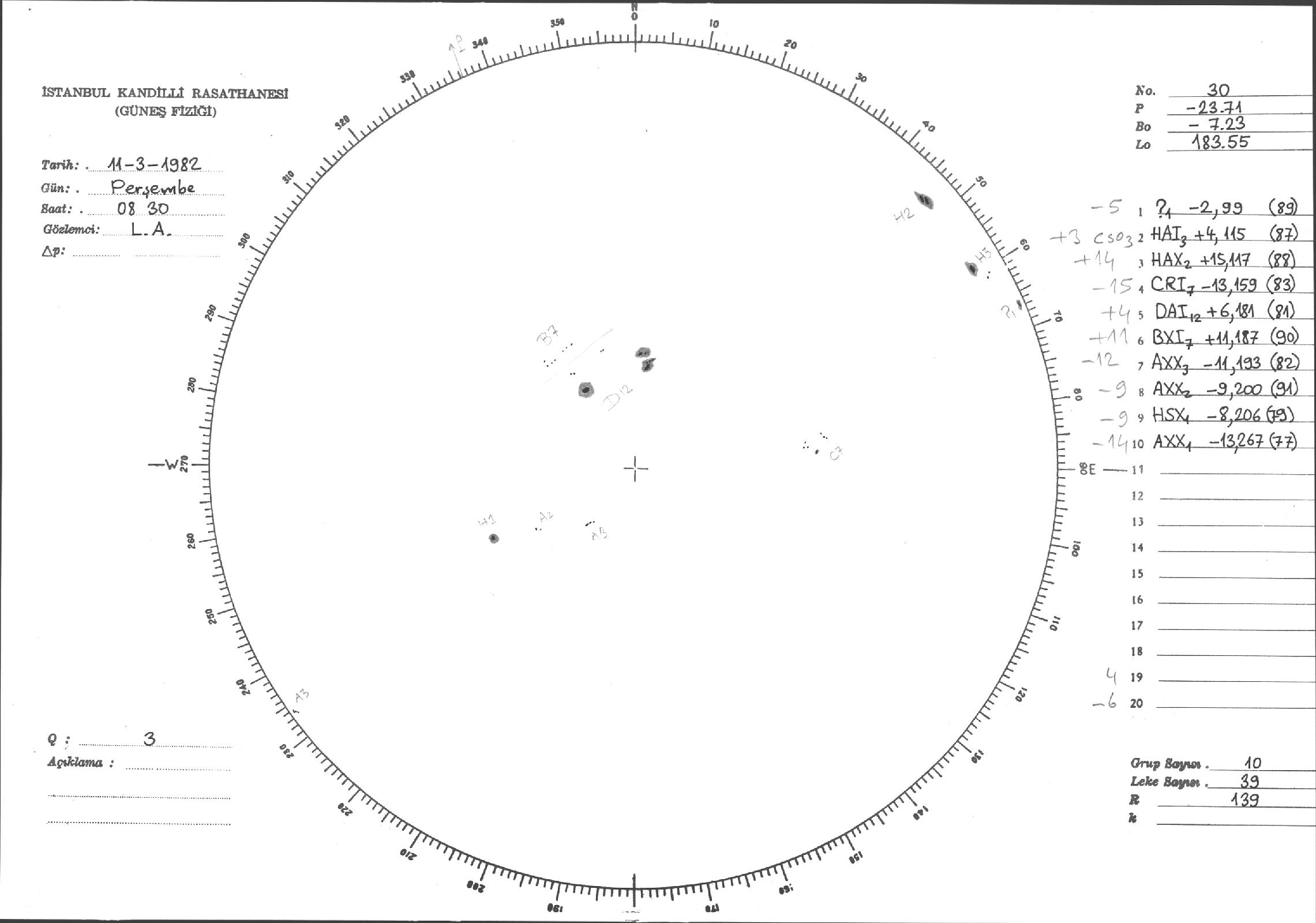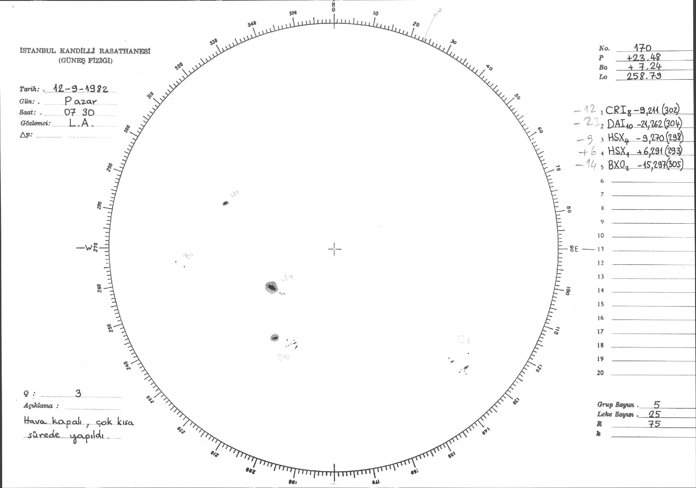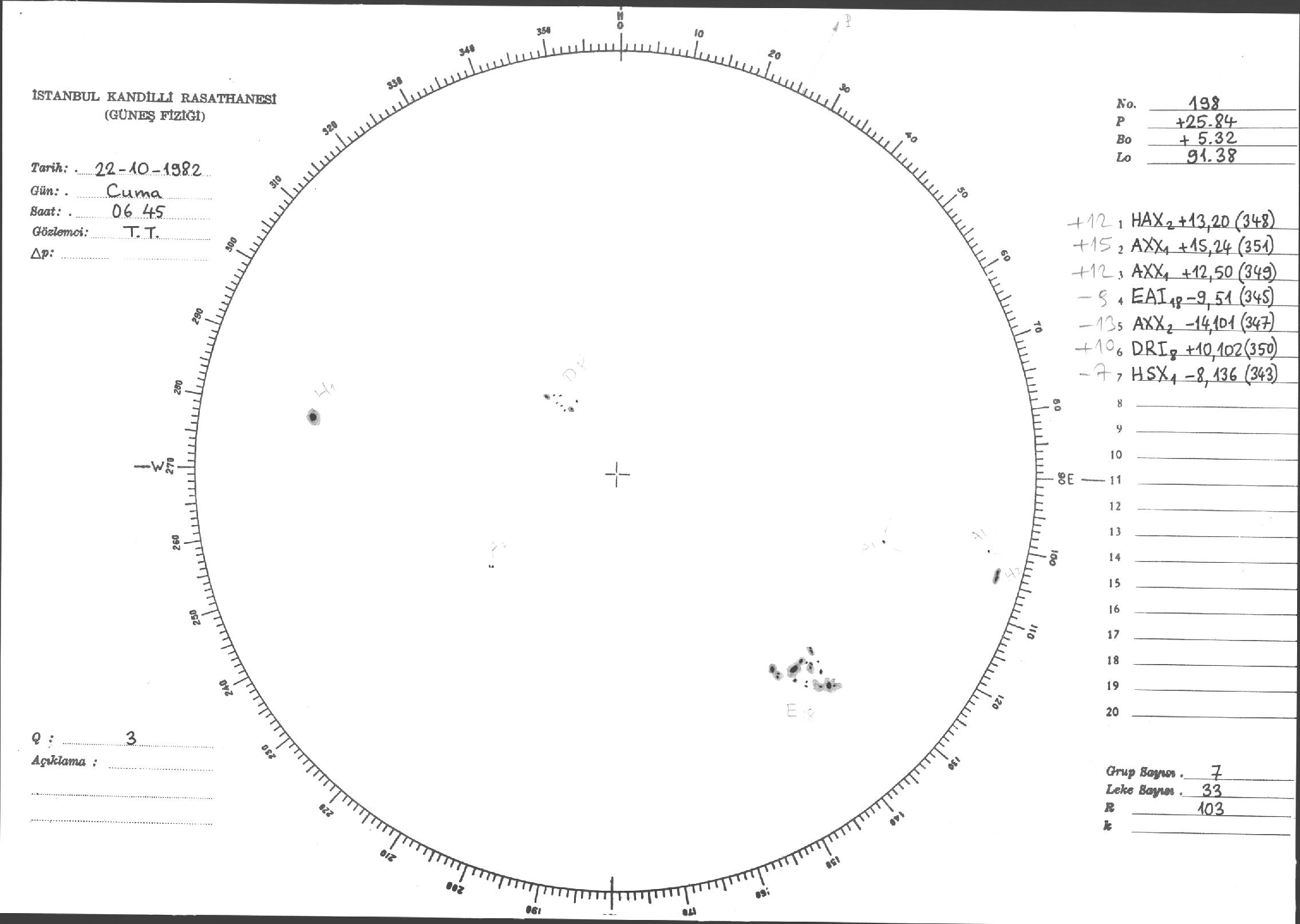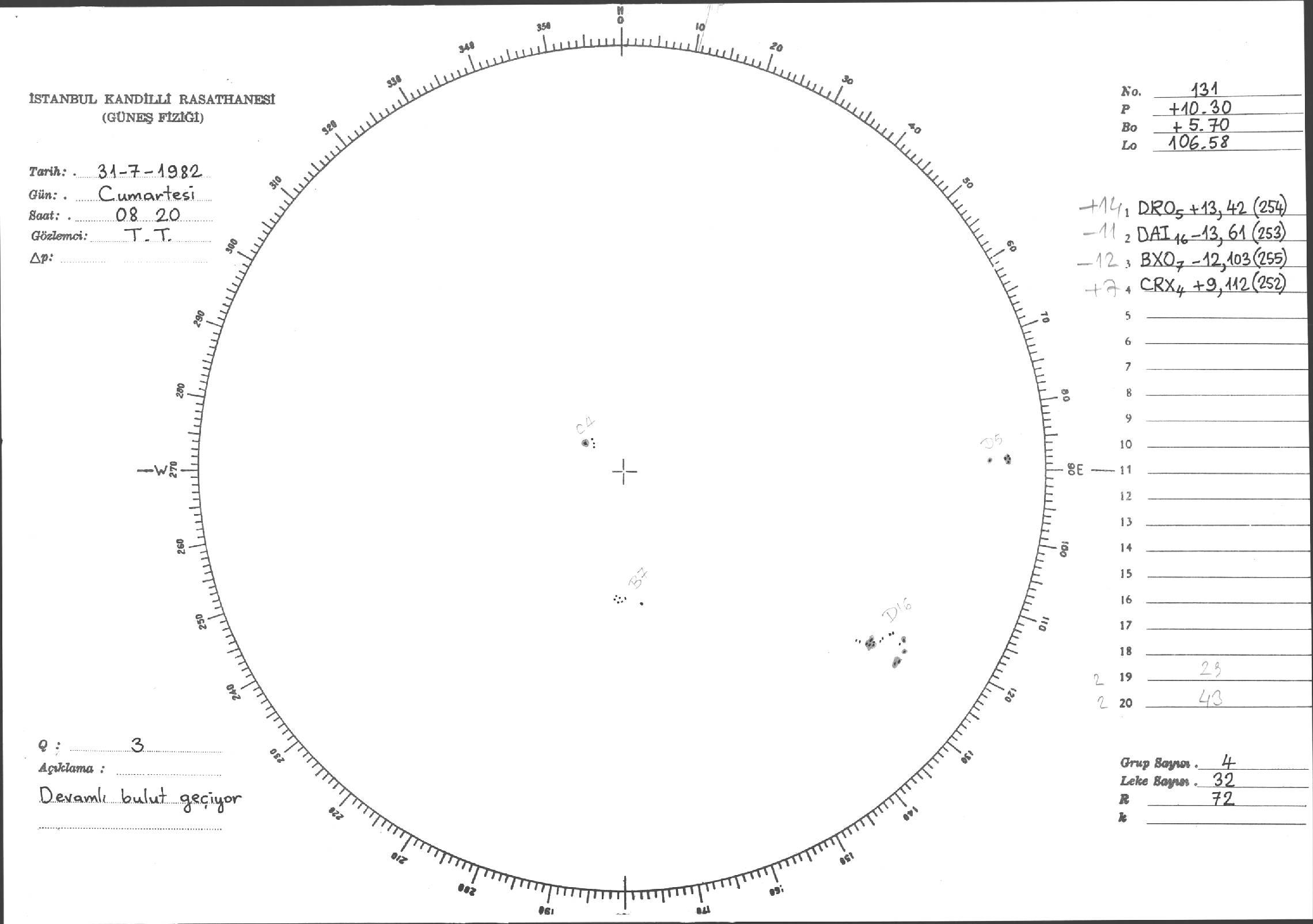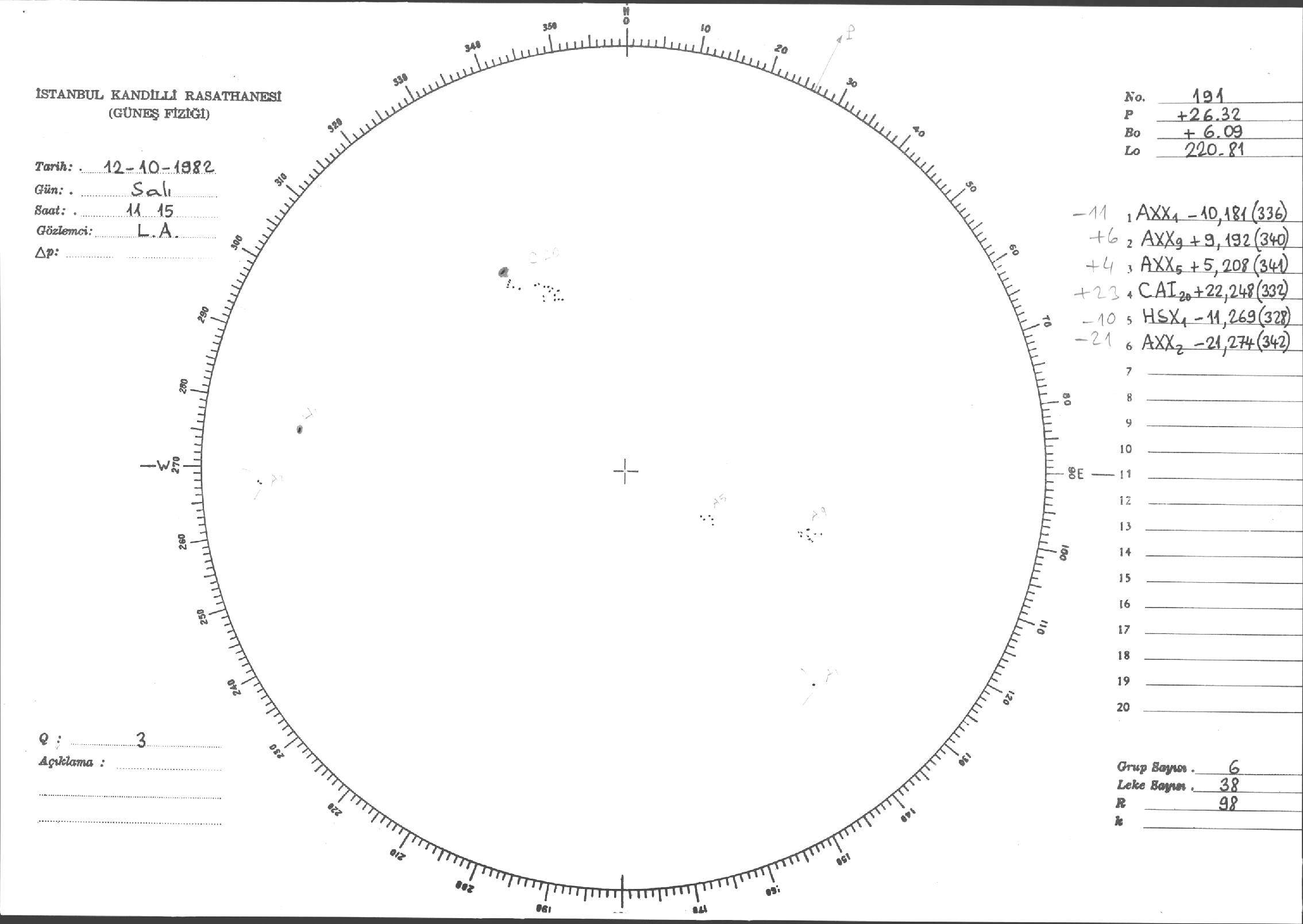 Güneş Lekesi Çizimleri / Kandilli Sunspot Drawings