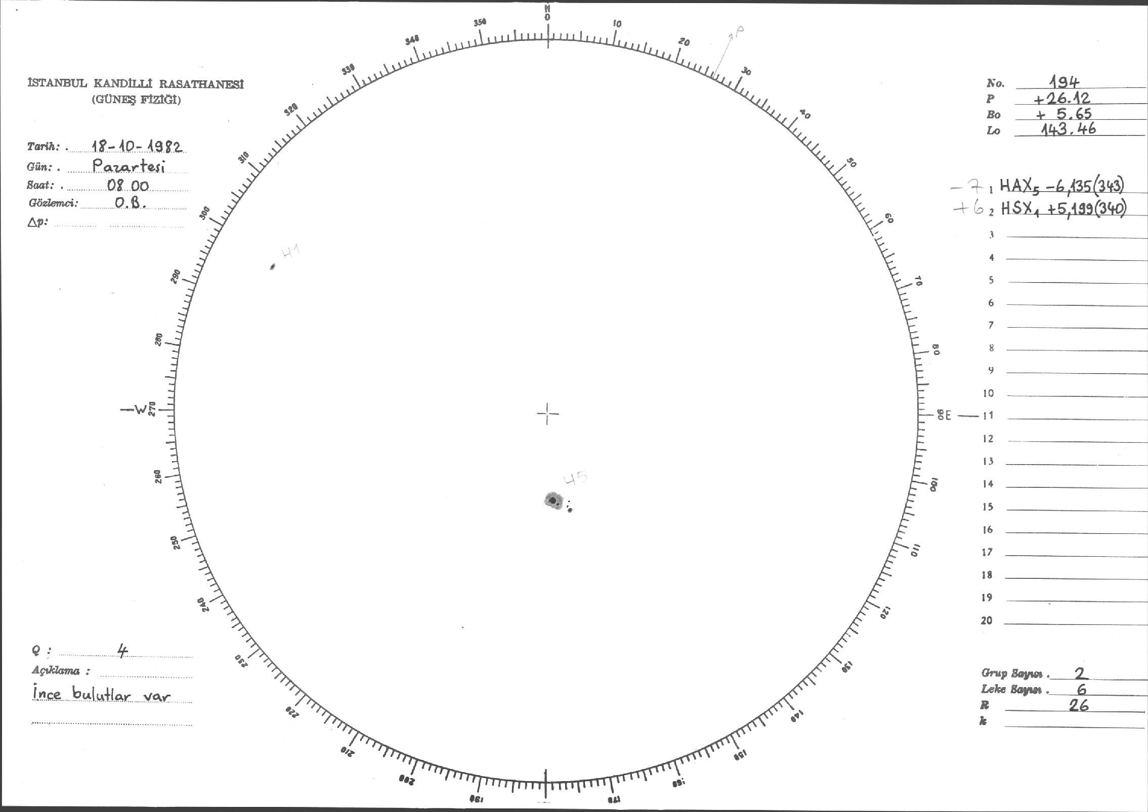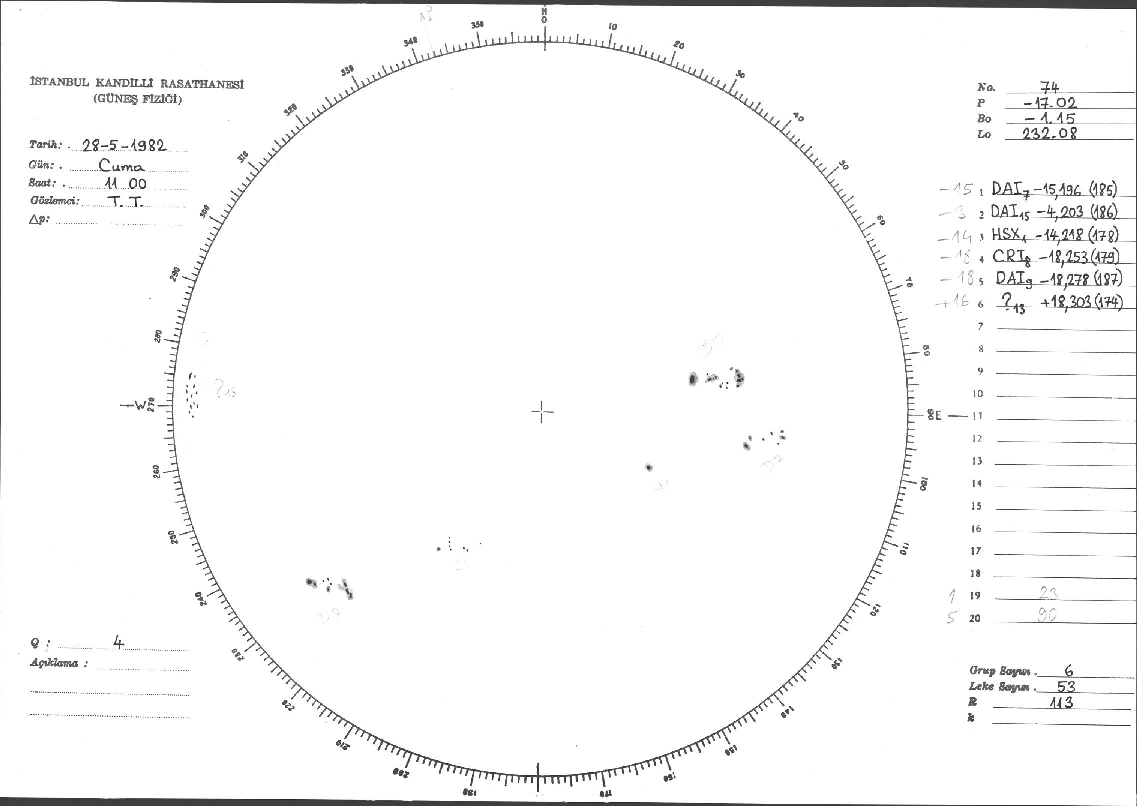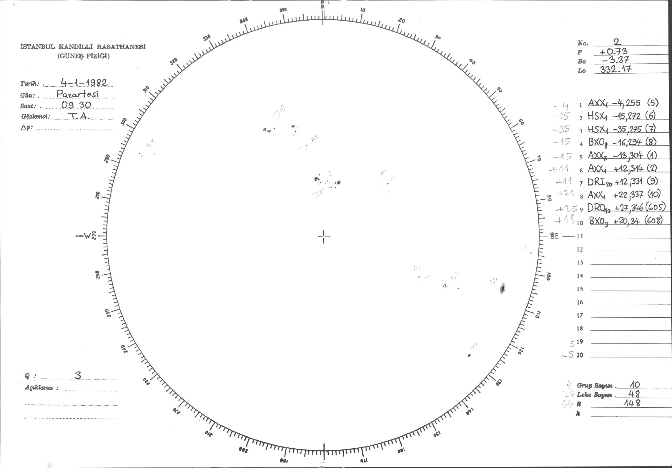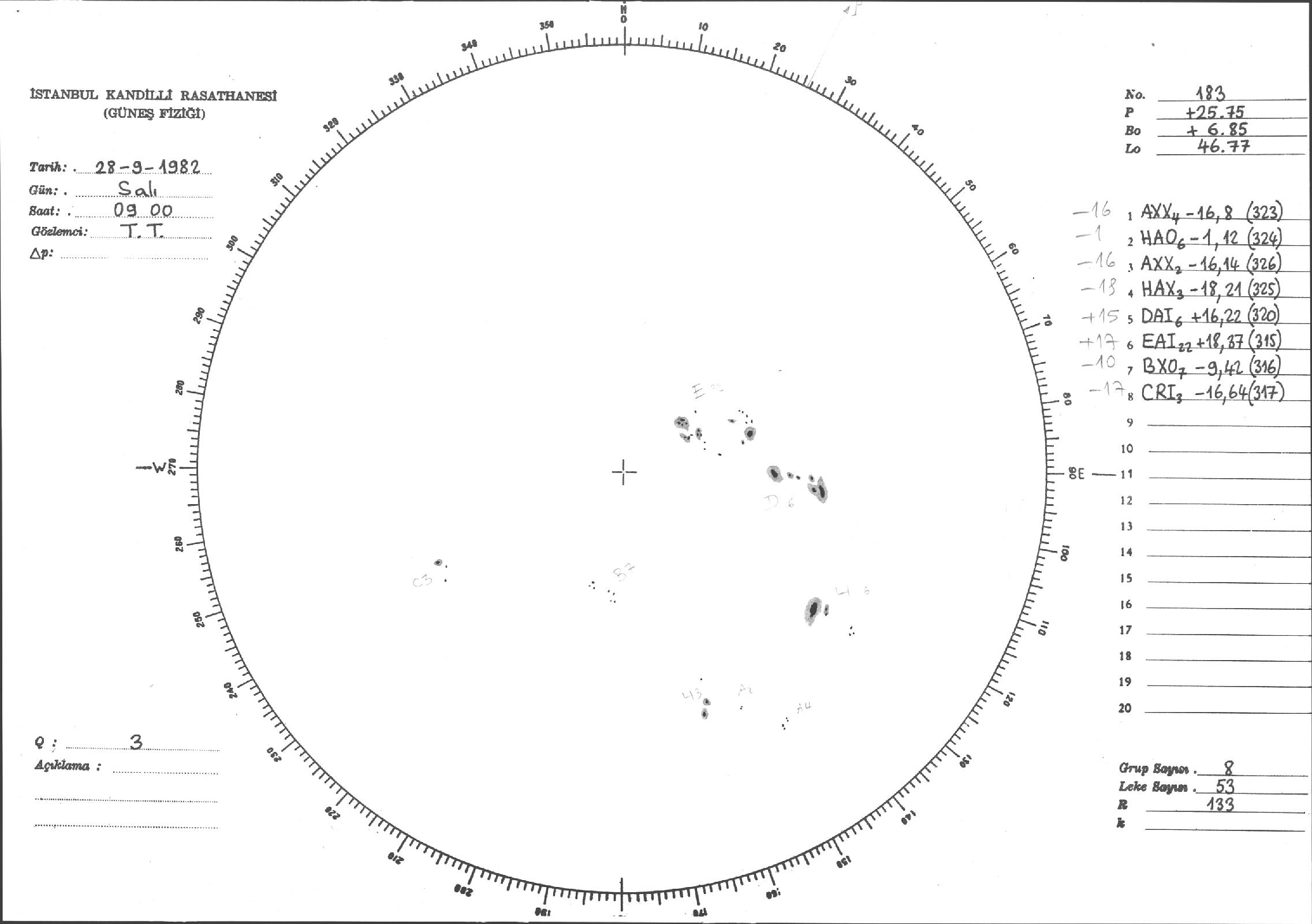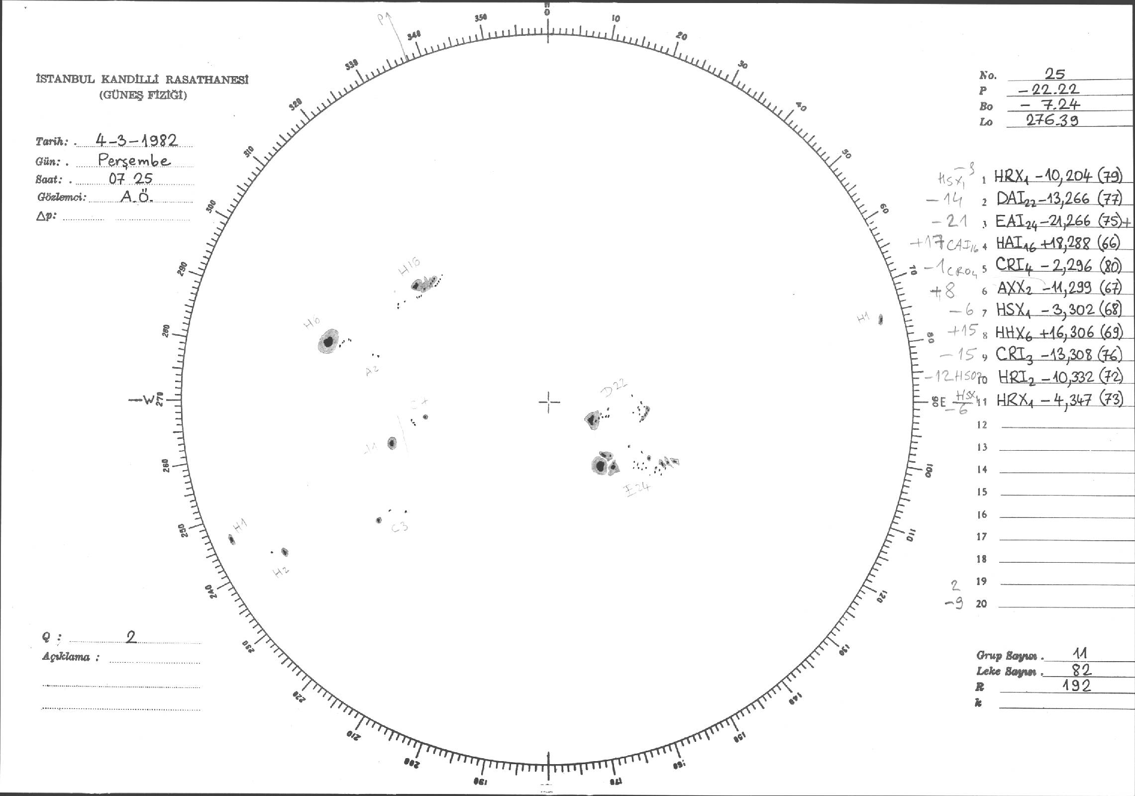 Güneş Lekesi Çizimleri / Kandilli Sunspot Drawings