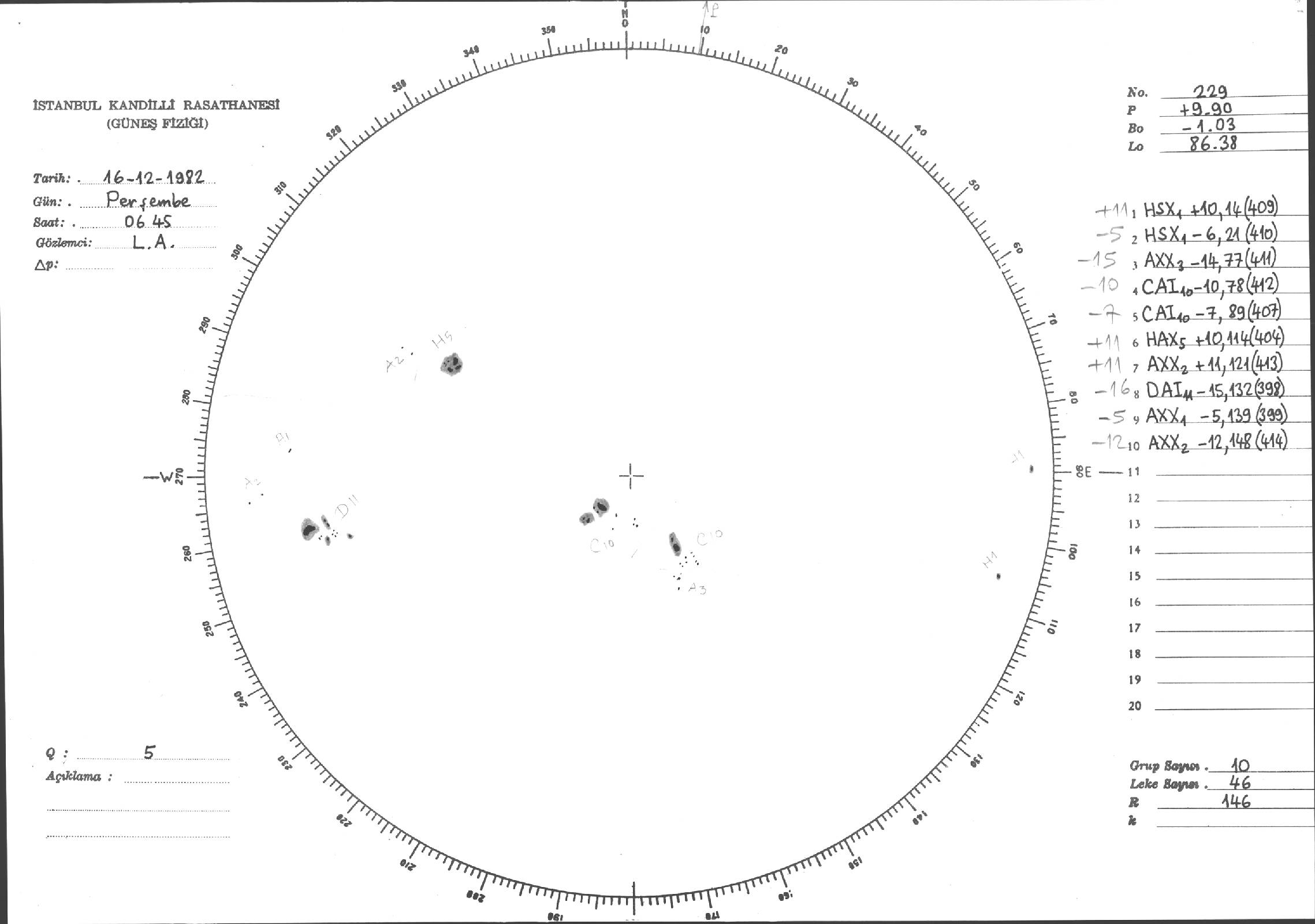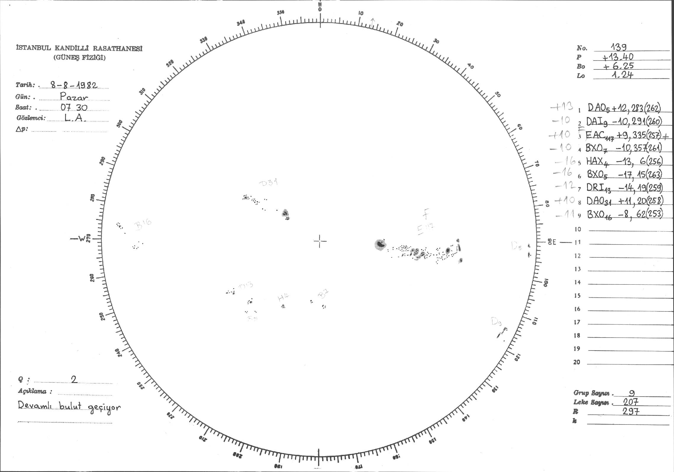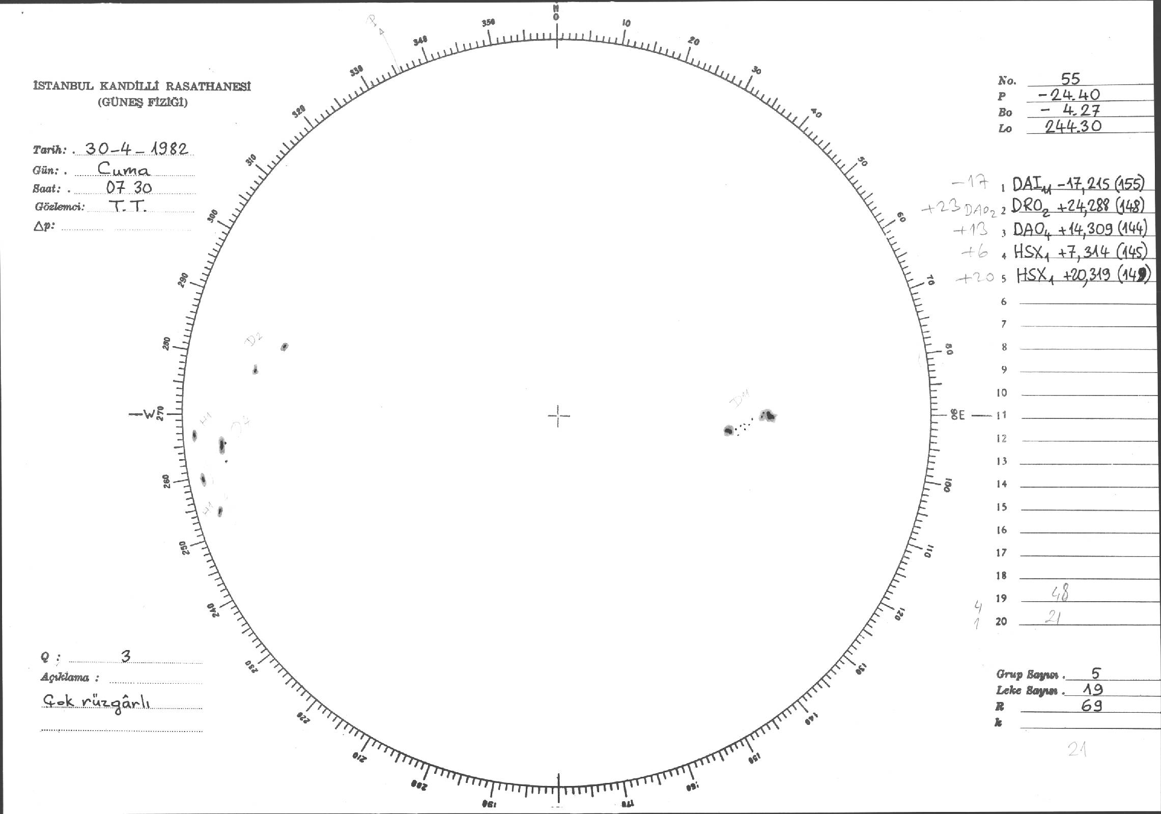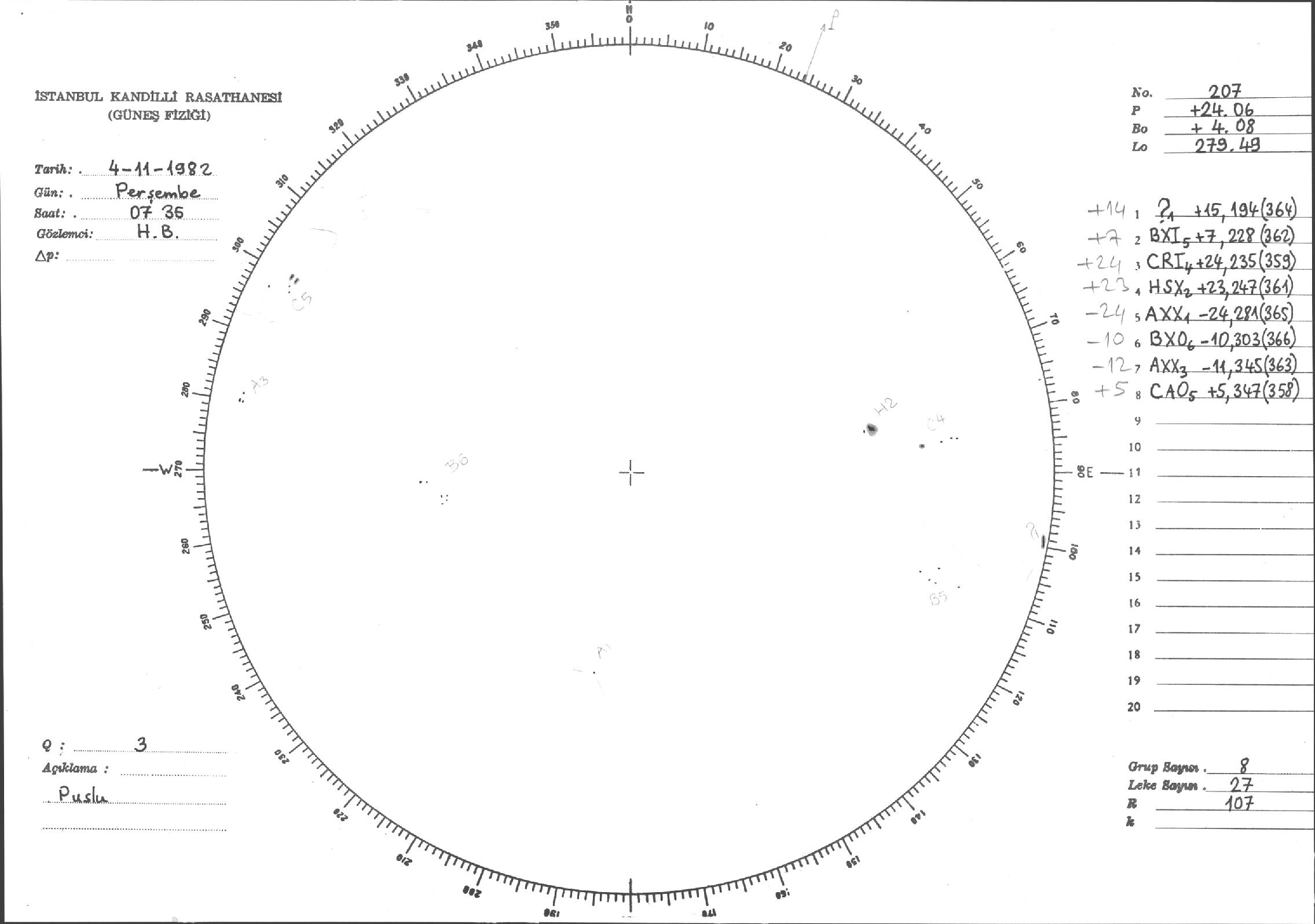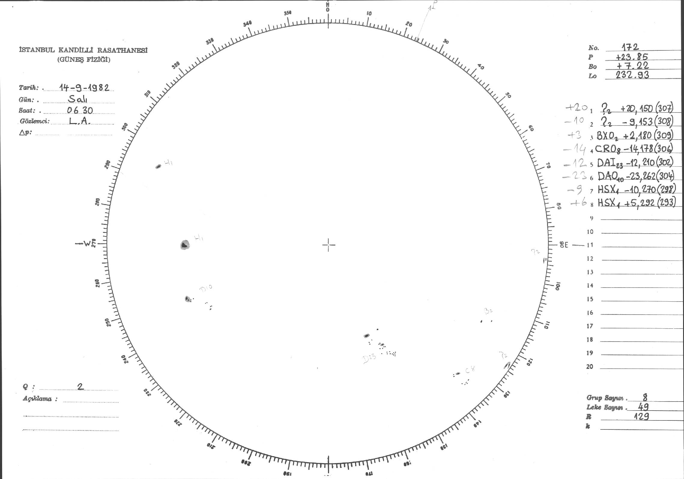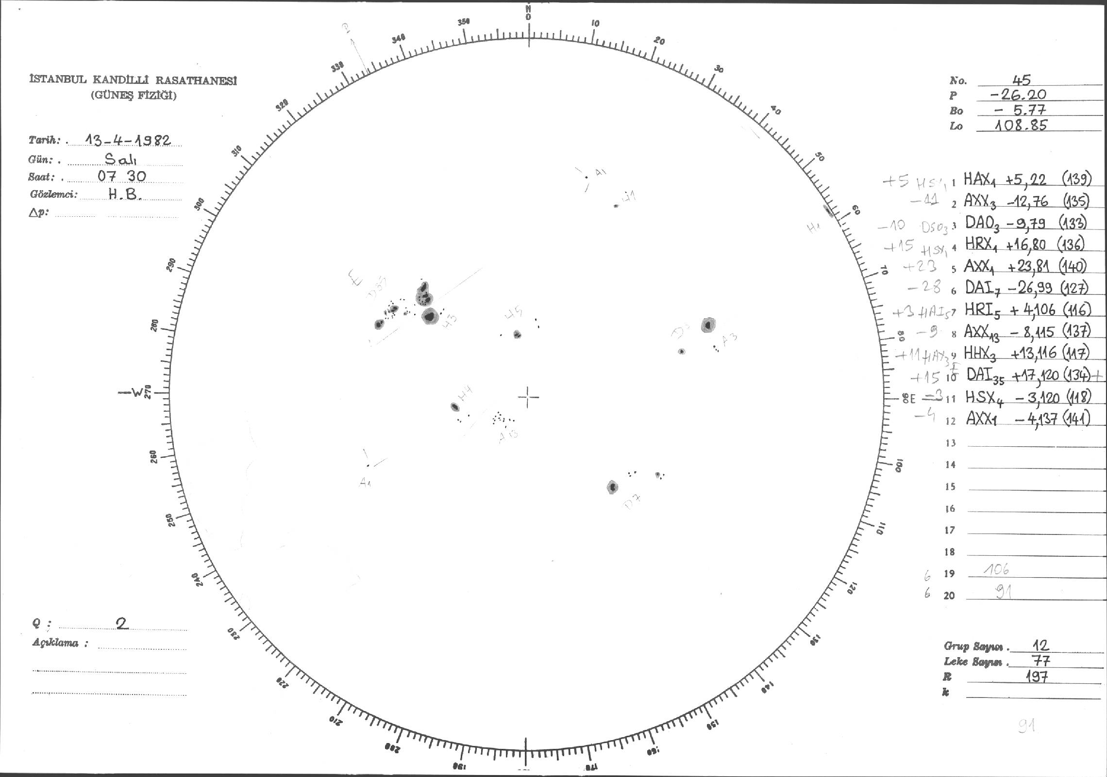 Güneş Lekesi Çizimleri / Kandilli Sunspot Drawings