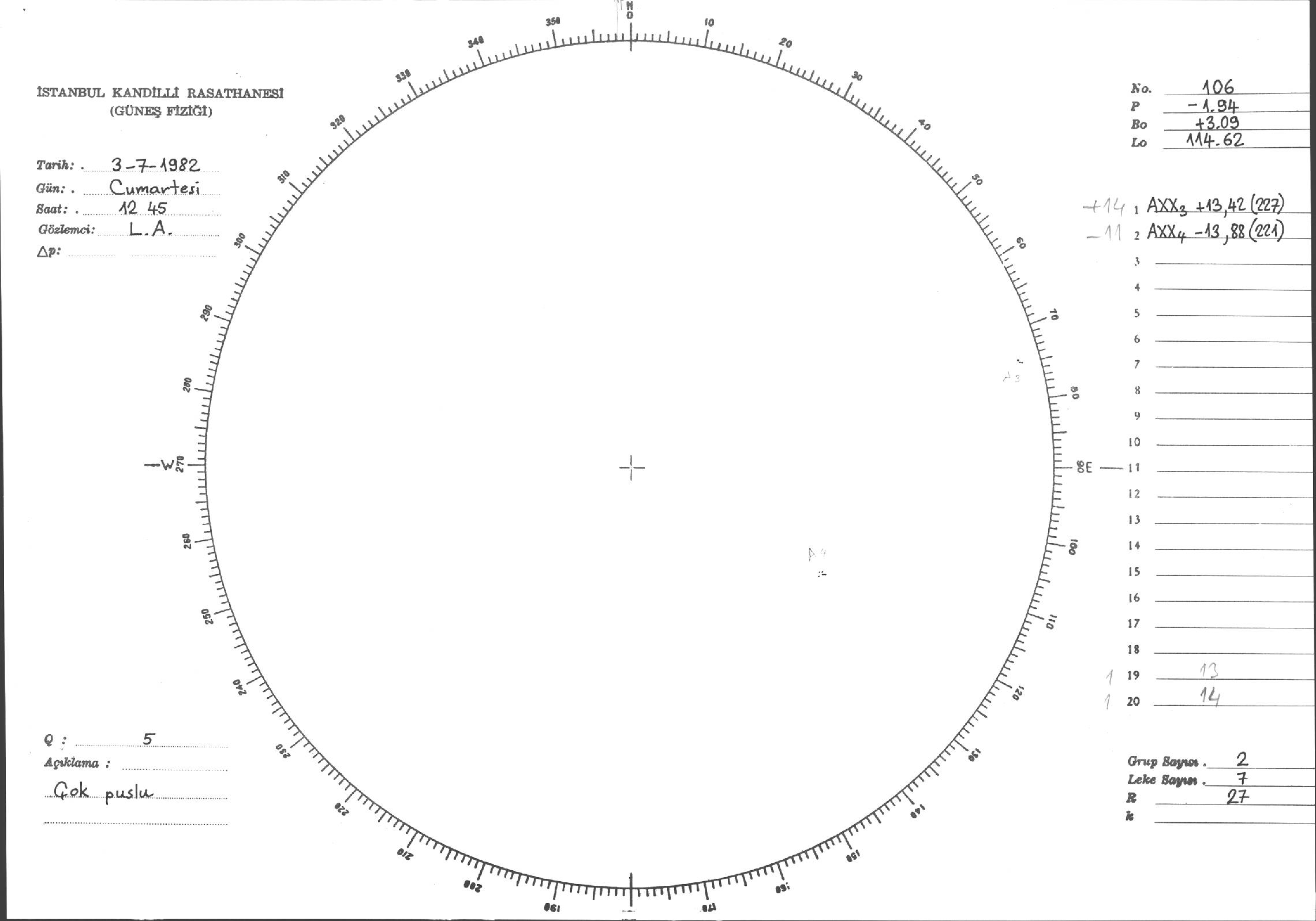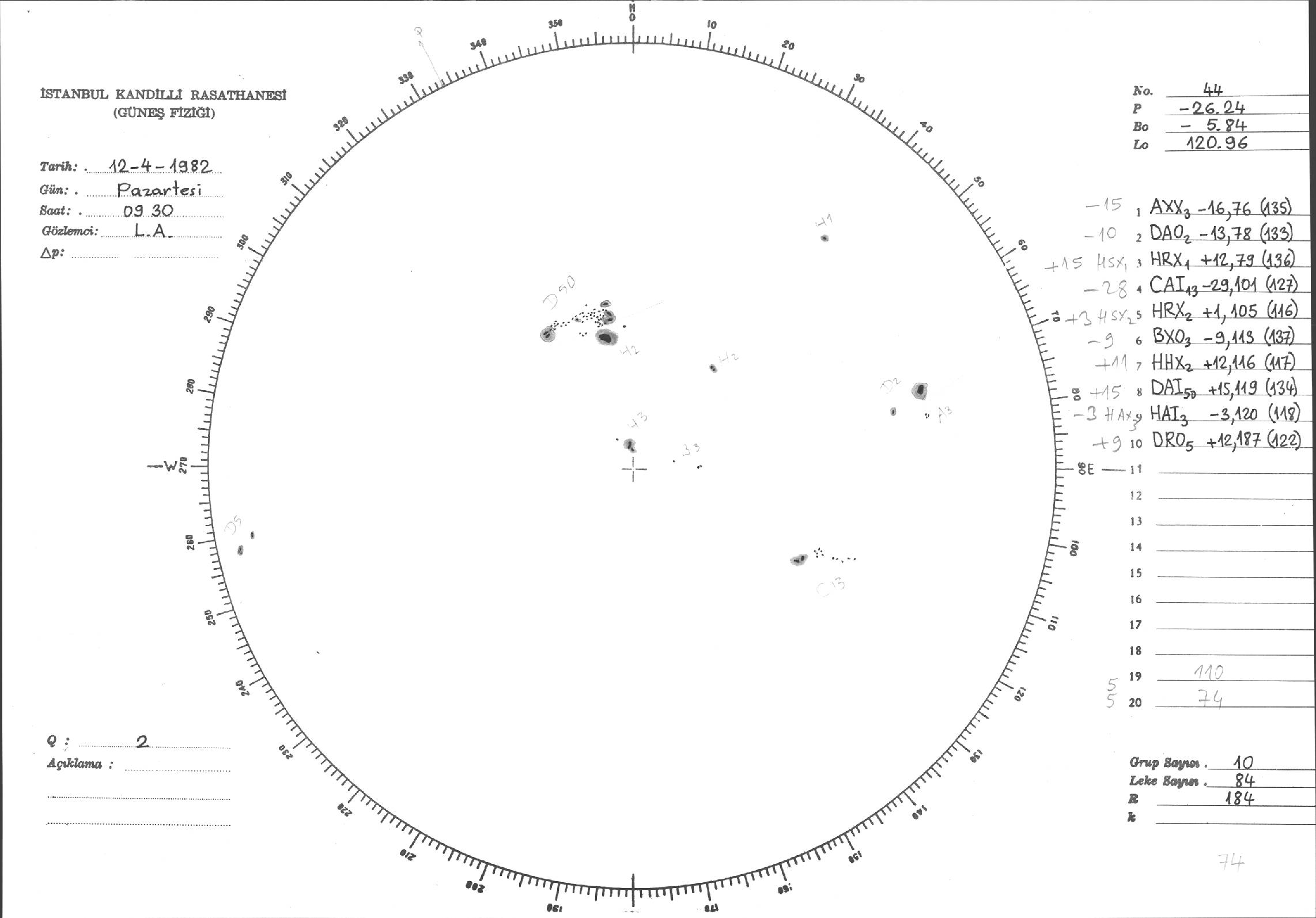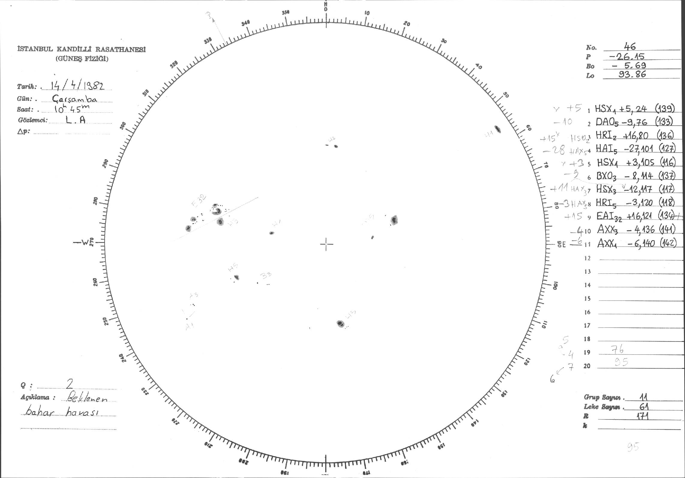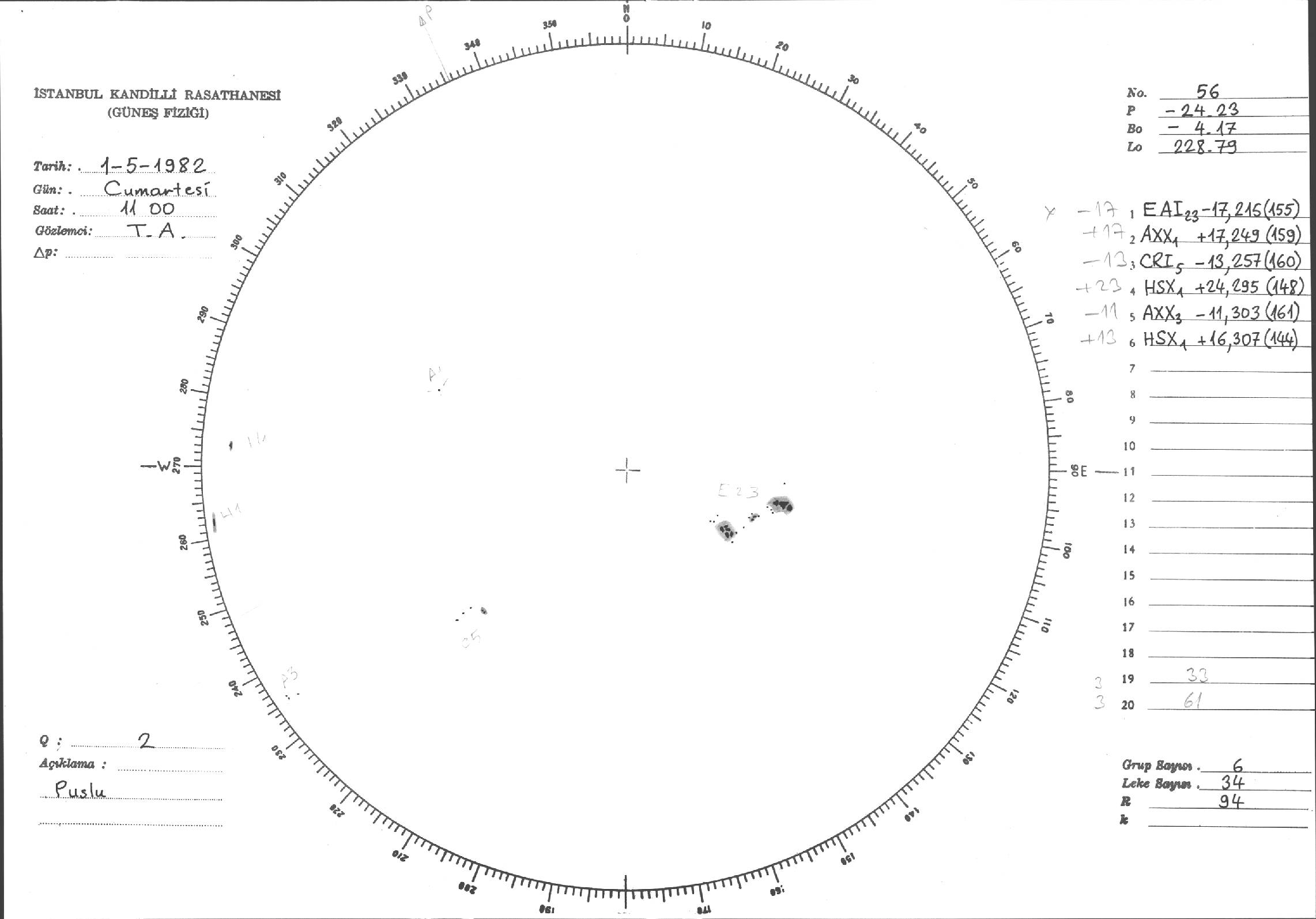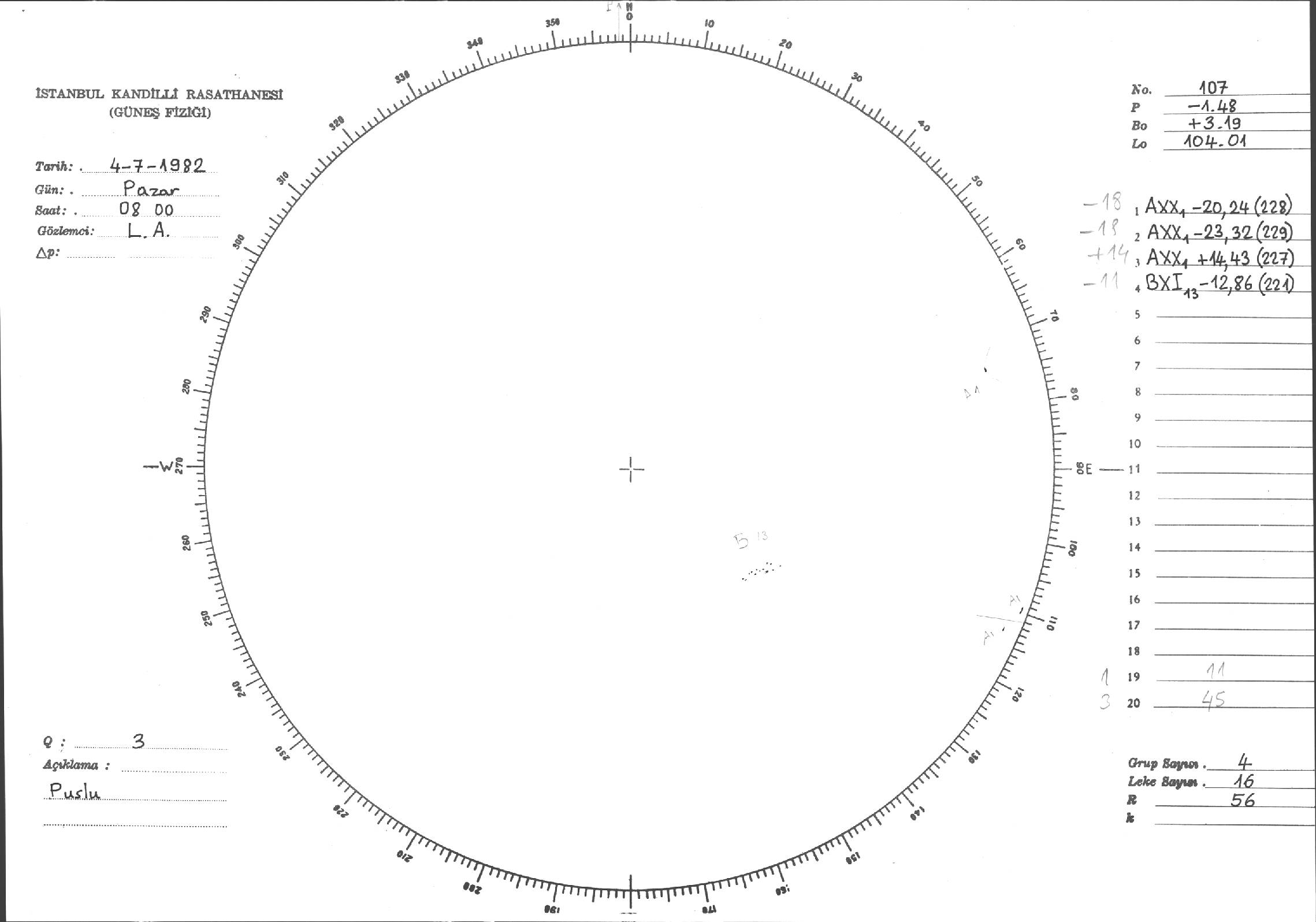 Güneş Lekesi Çizimleri / Kandilli Sunspot Drawings