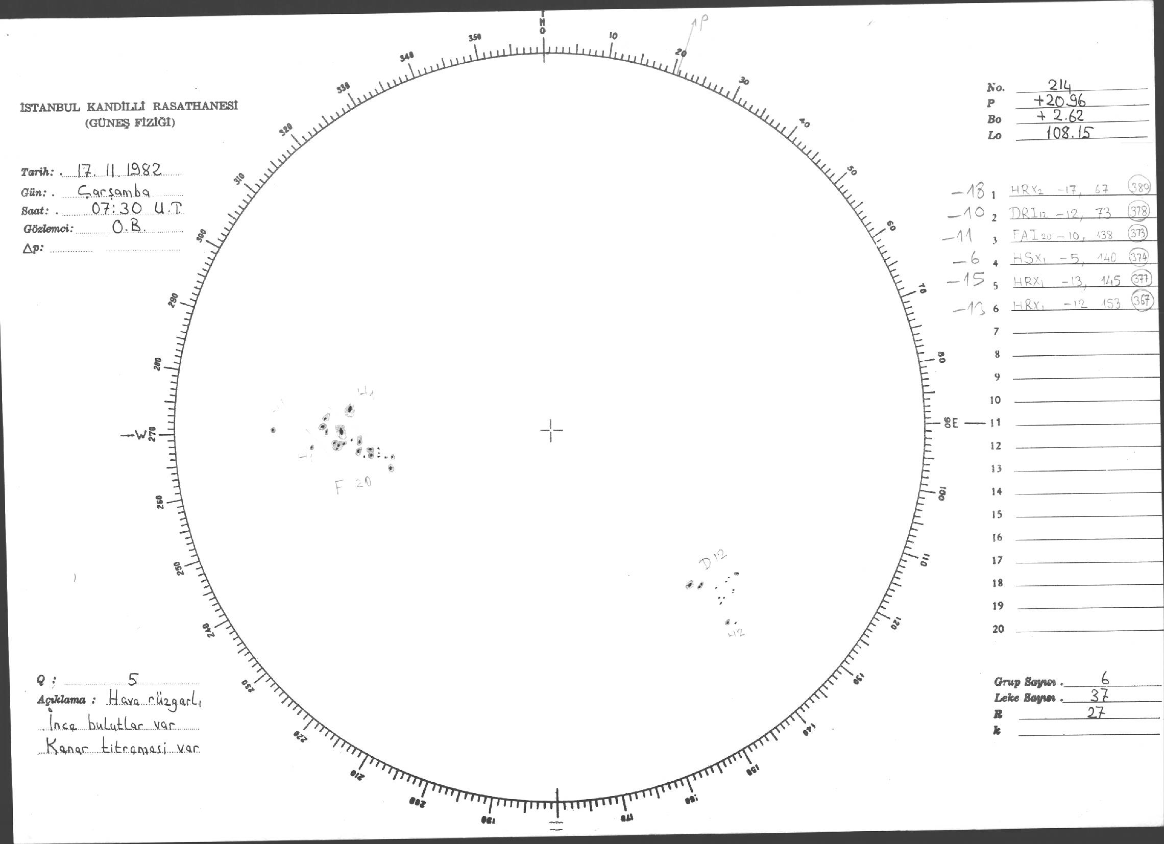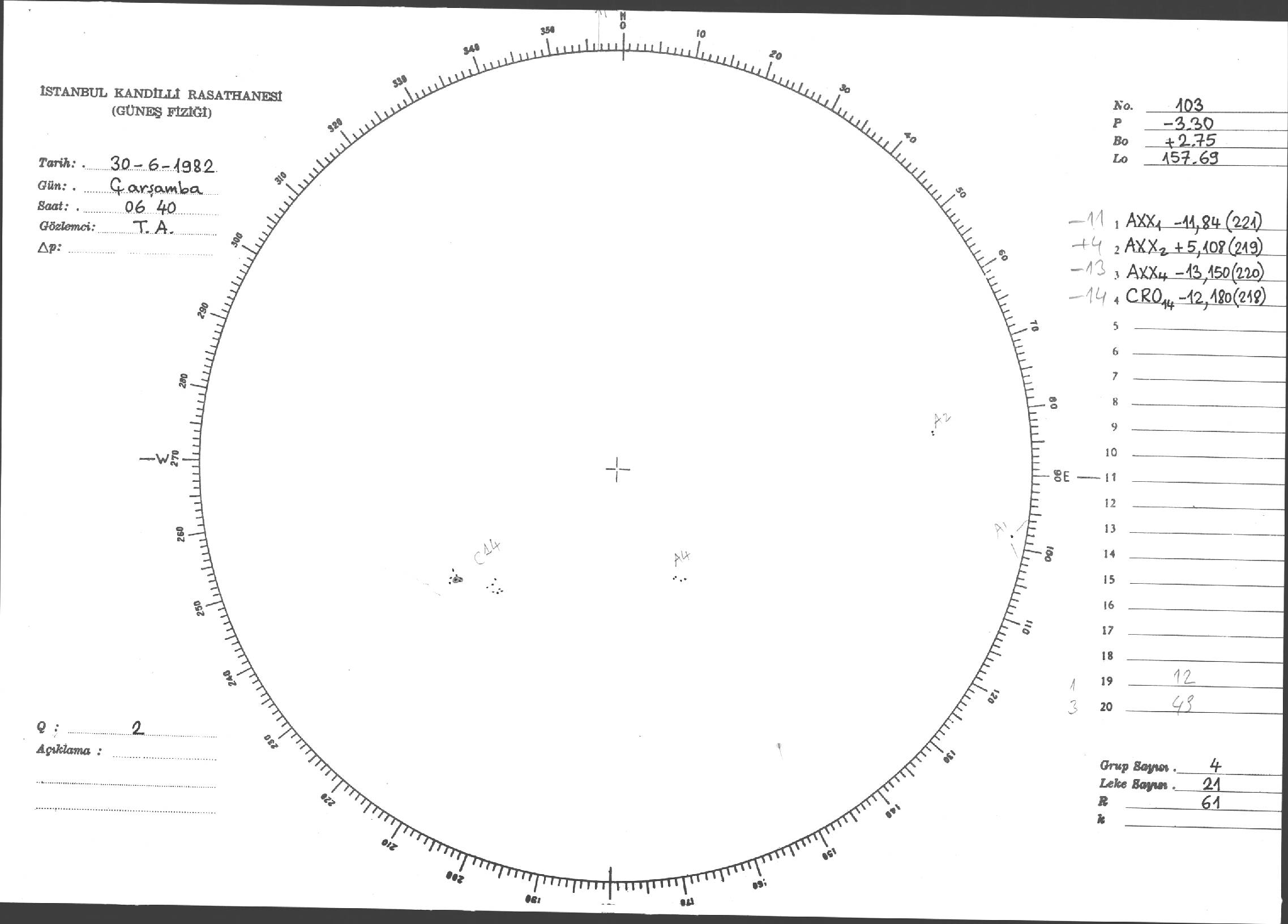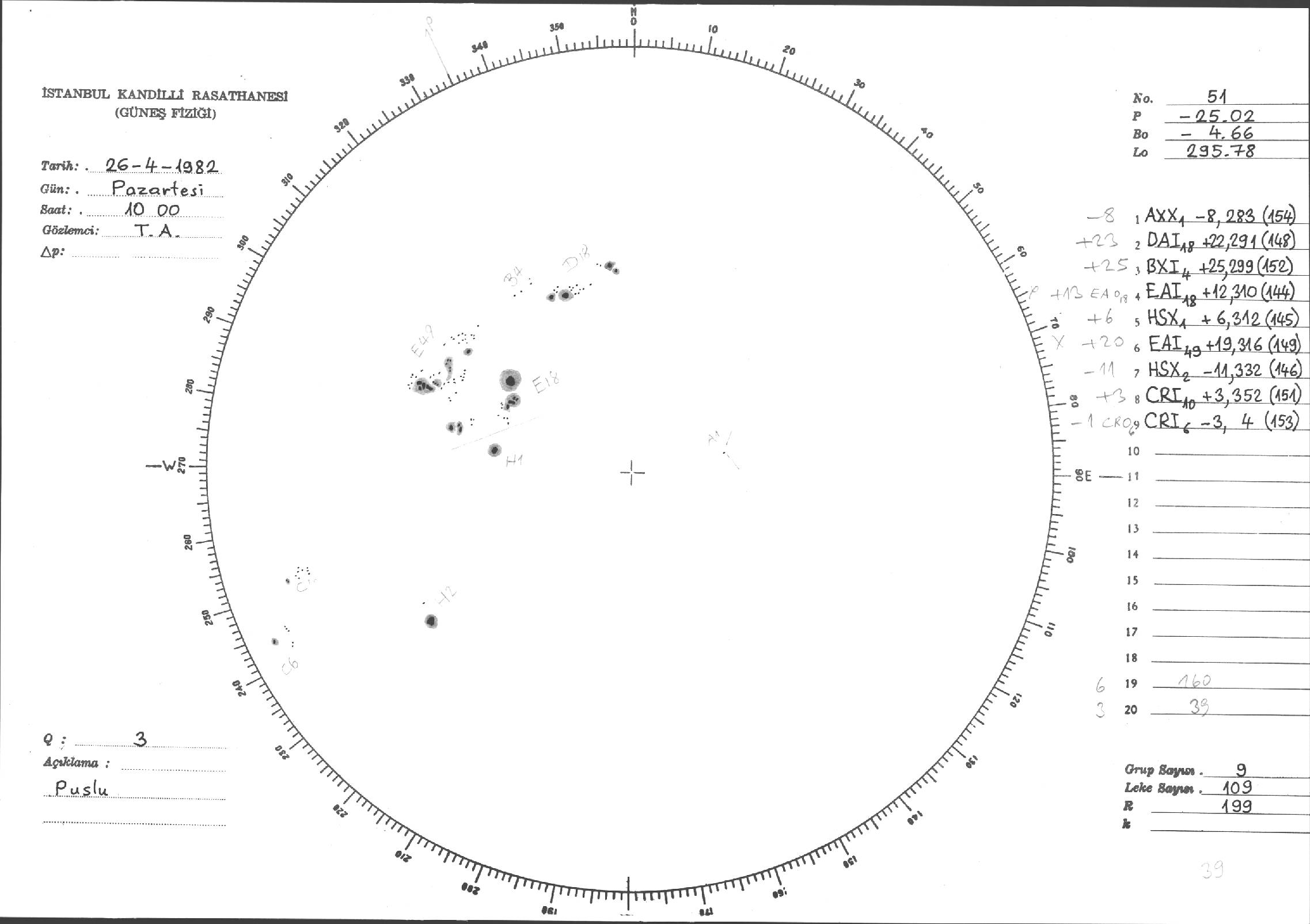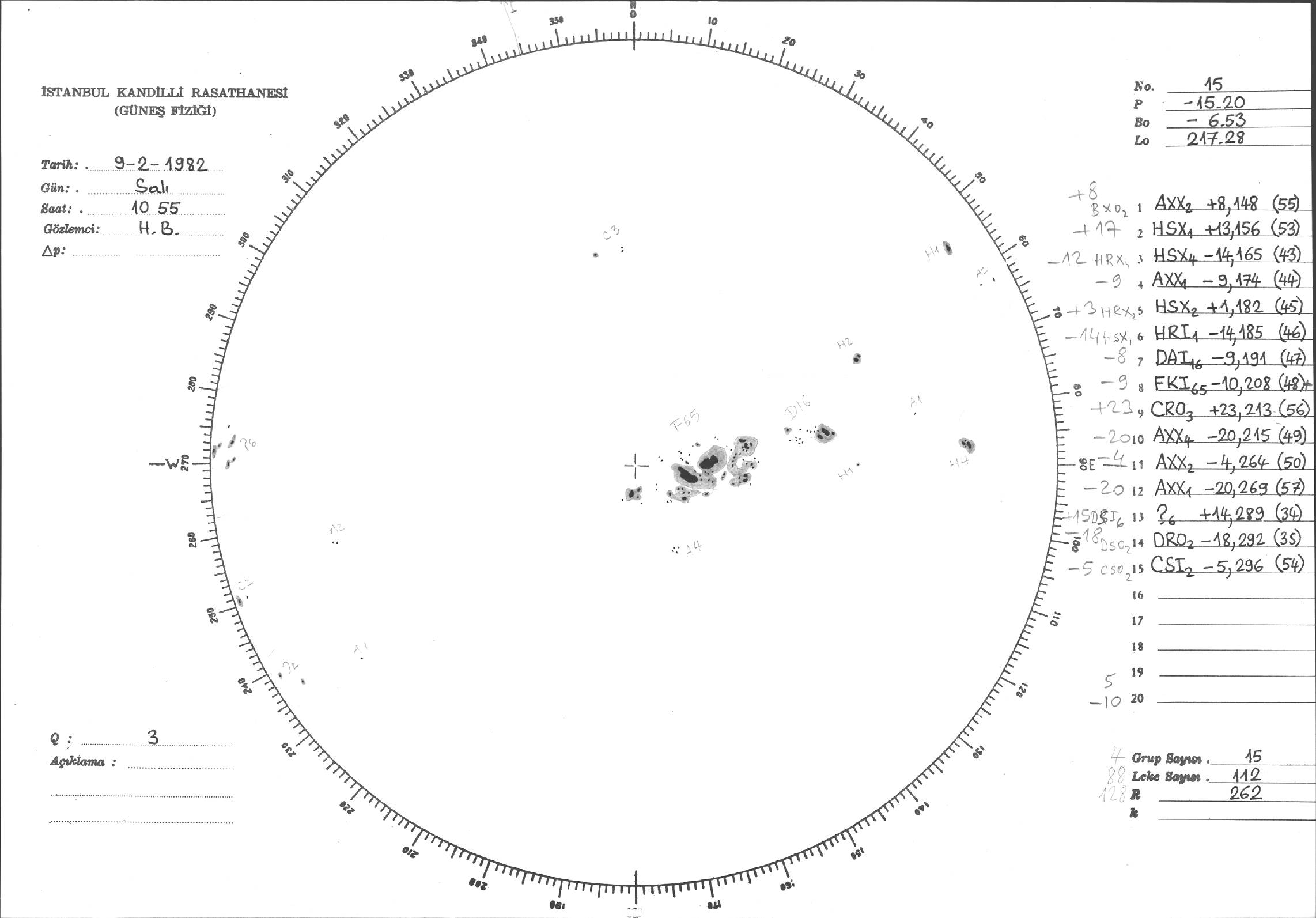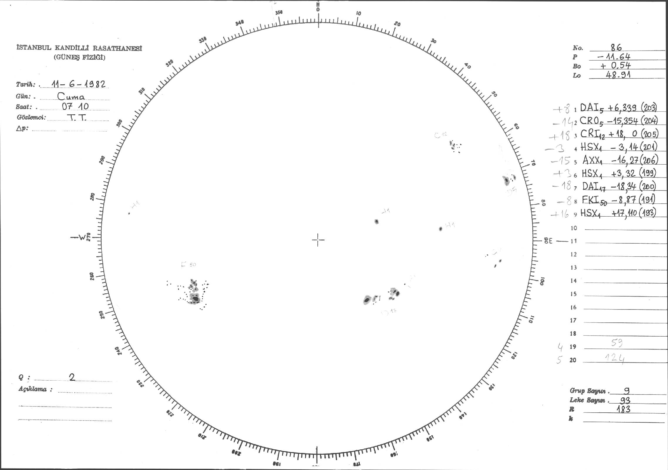 Güneş Lekesi Çizimleri / Kandilli Sunspot Drawings