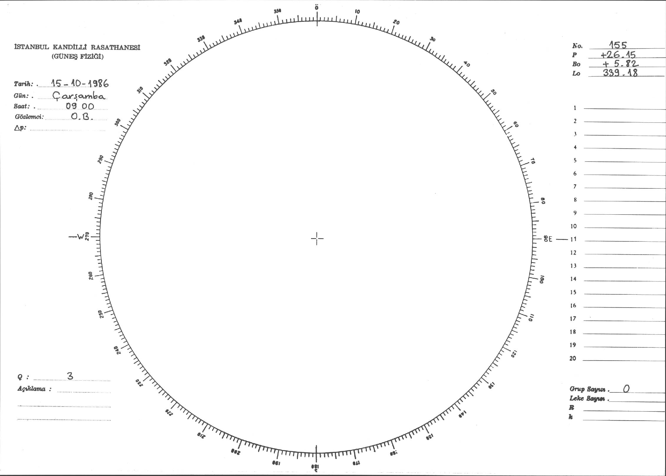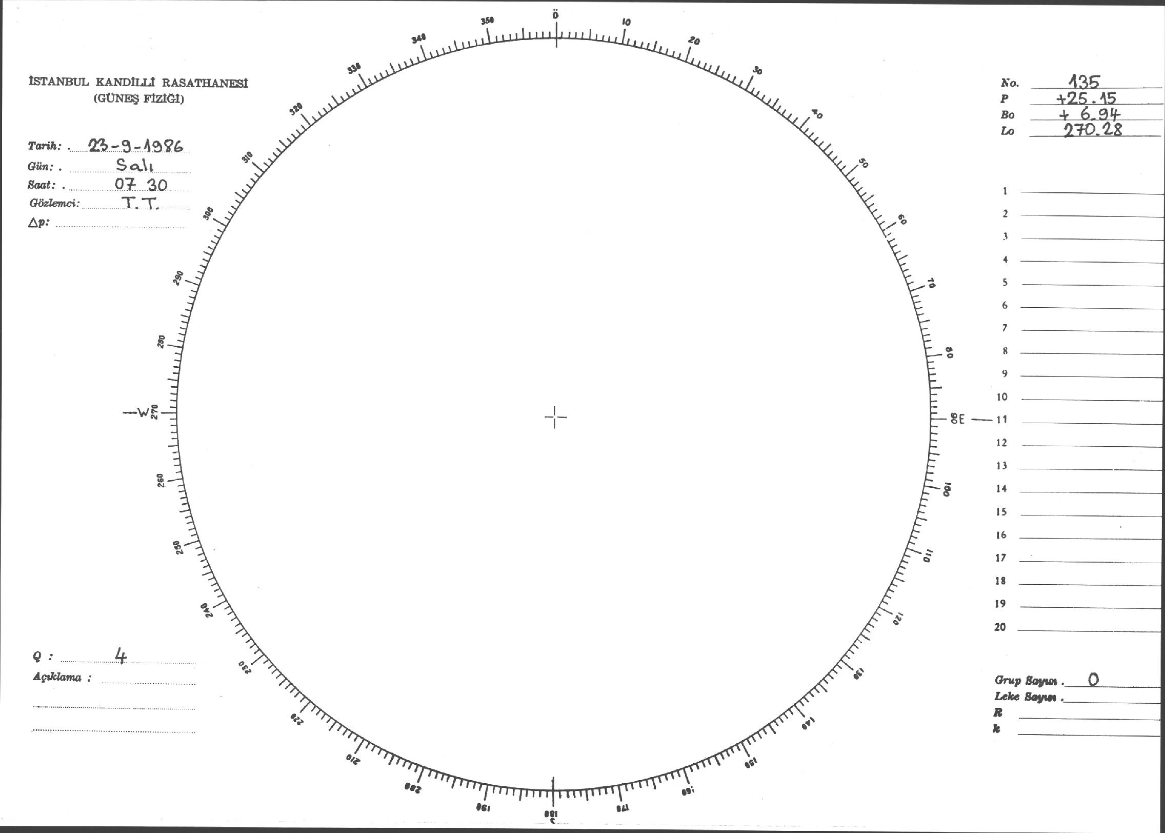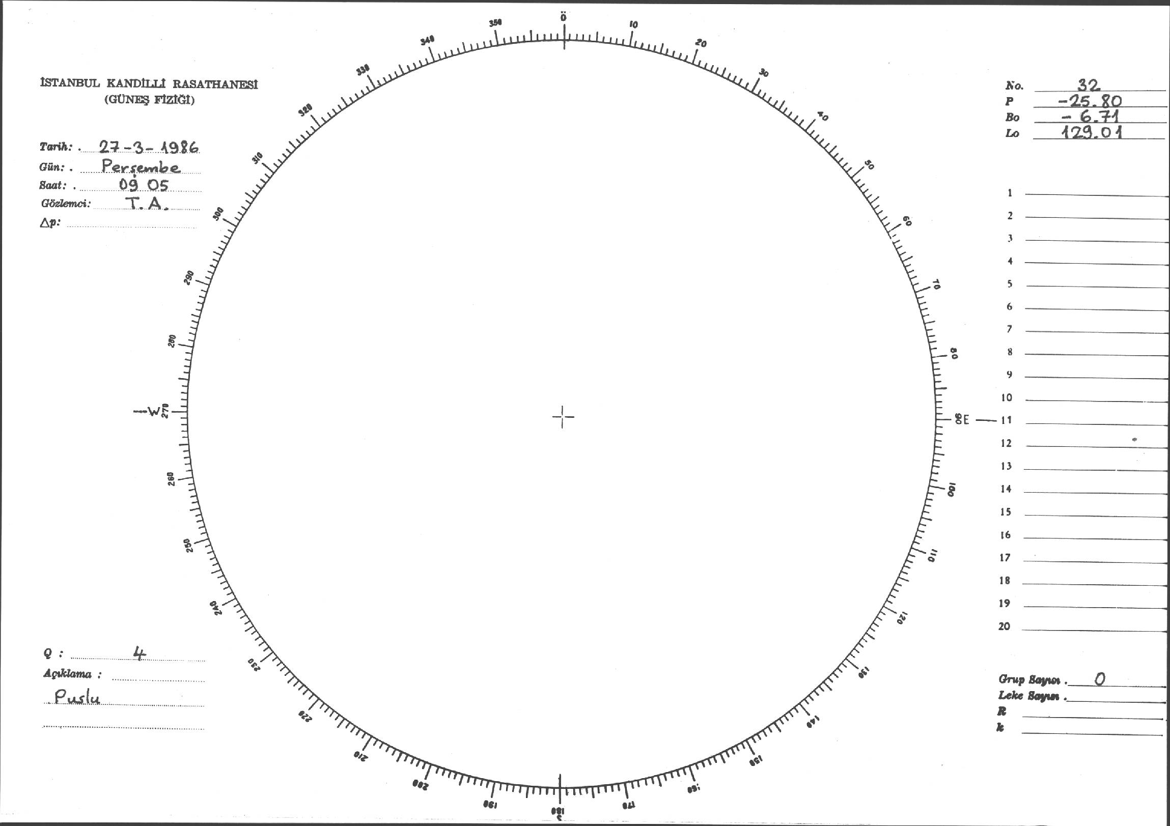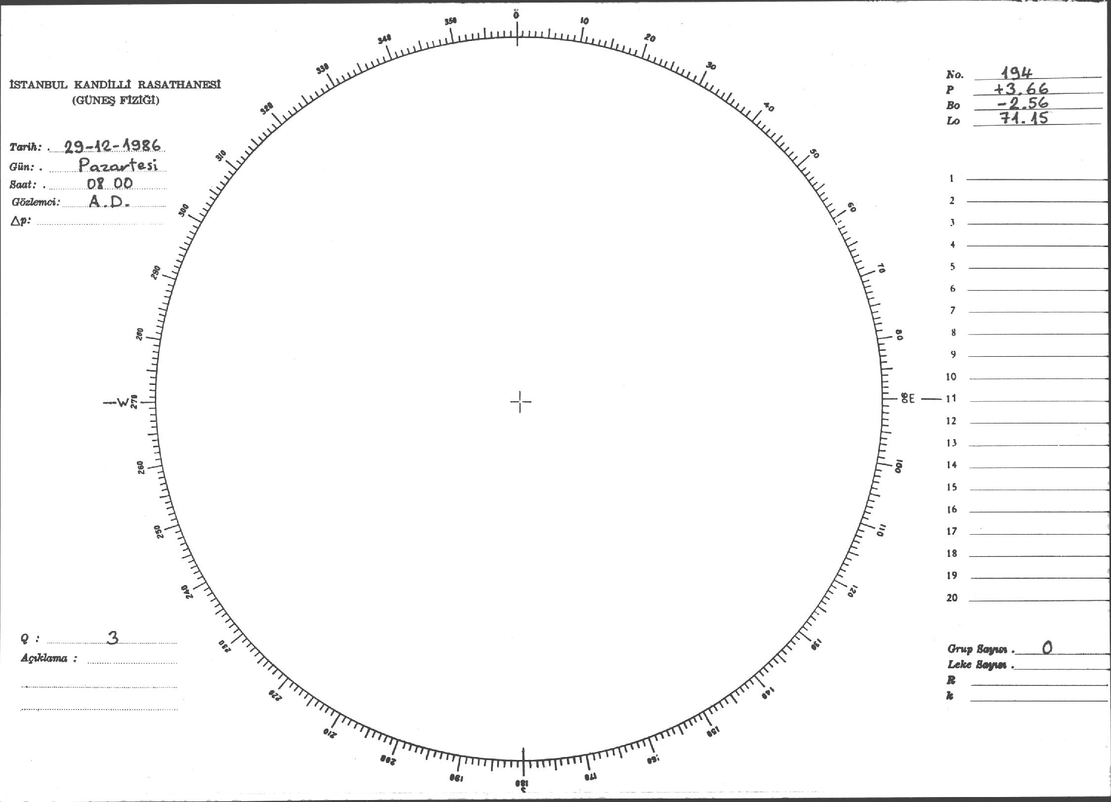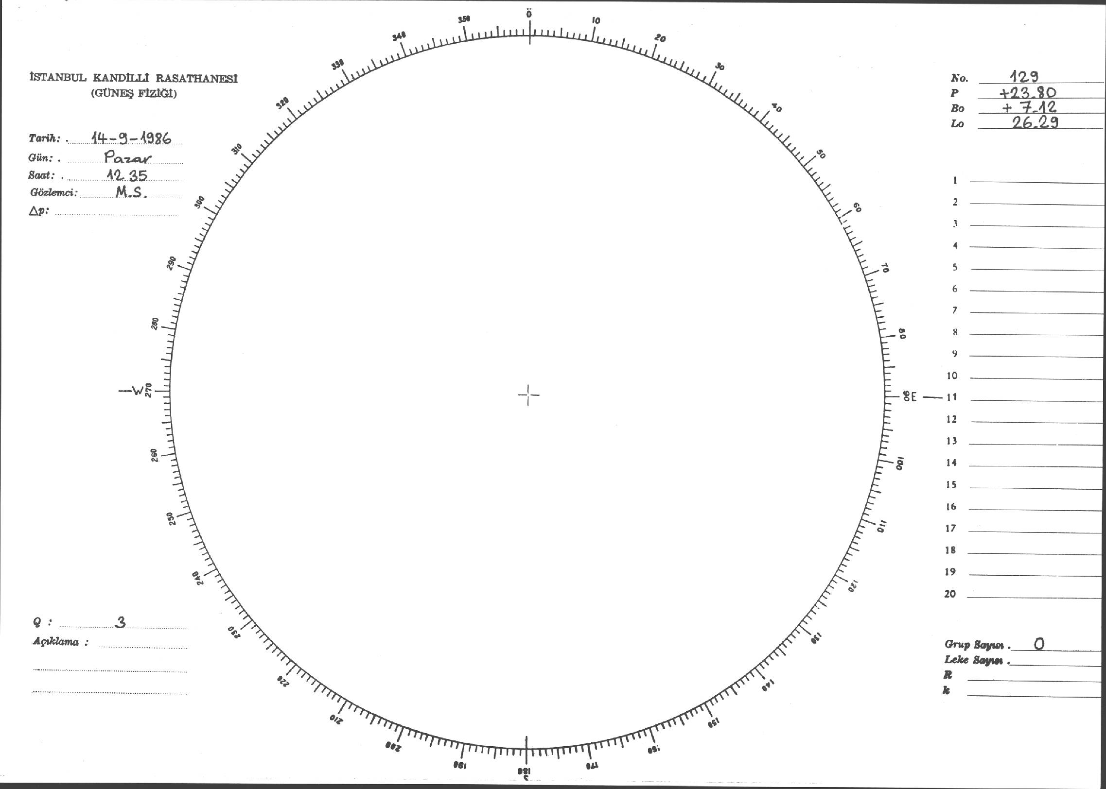 Güneş Lekesi Çizimleri / Kandilli Sunspot Drawings