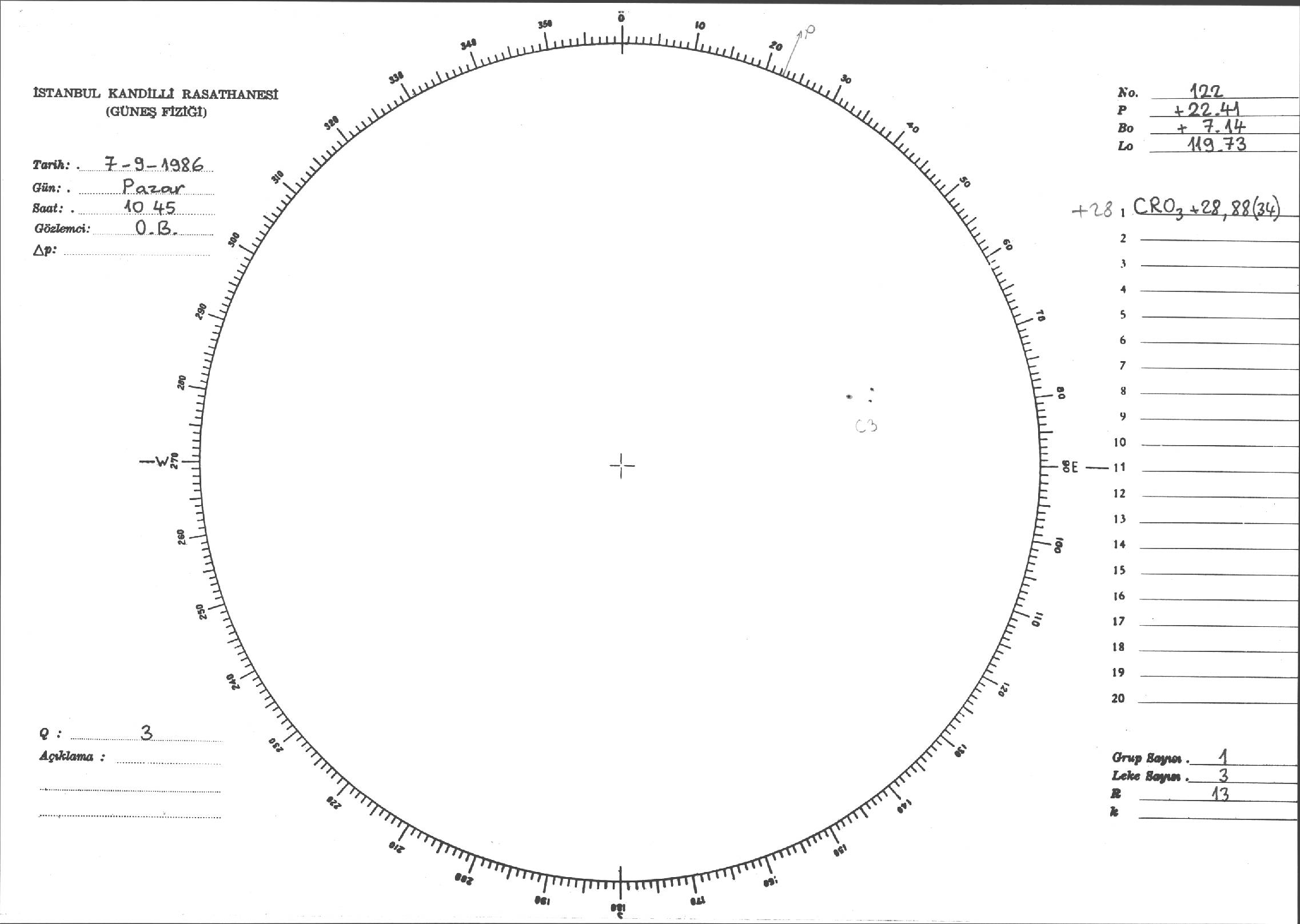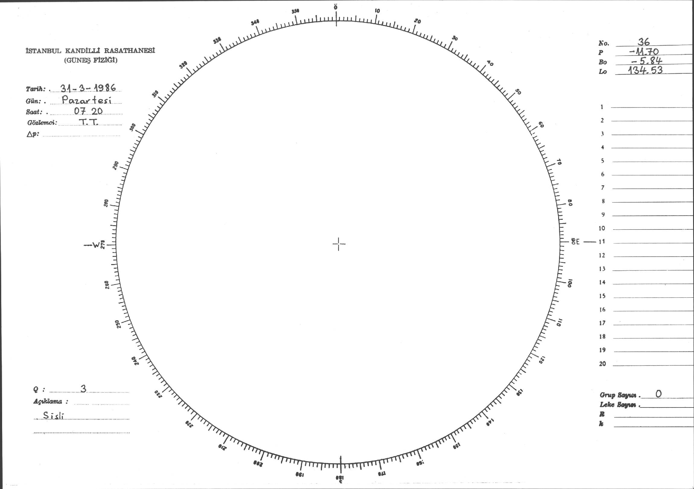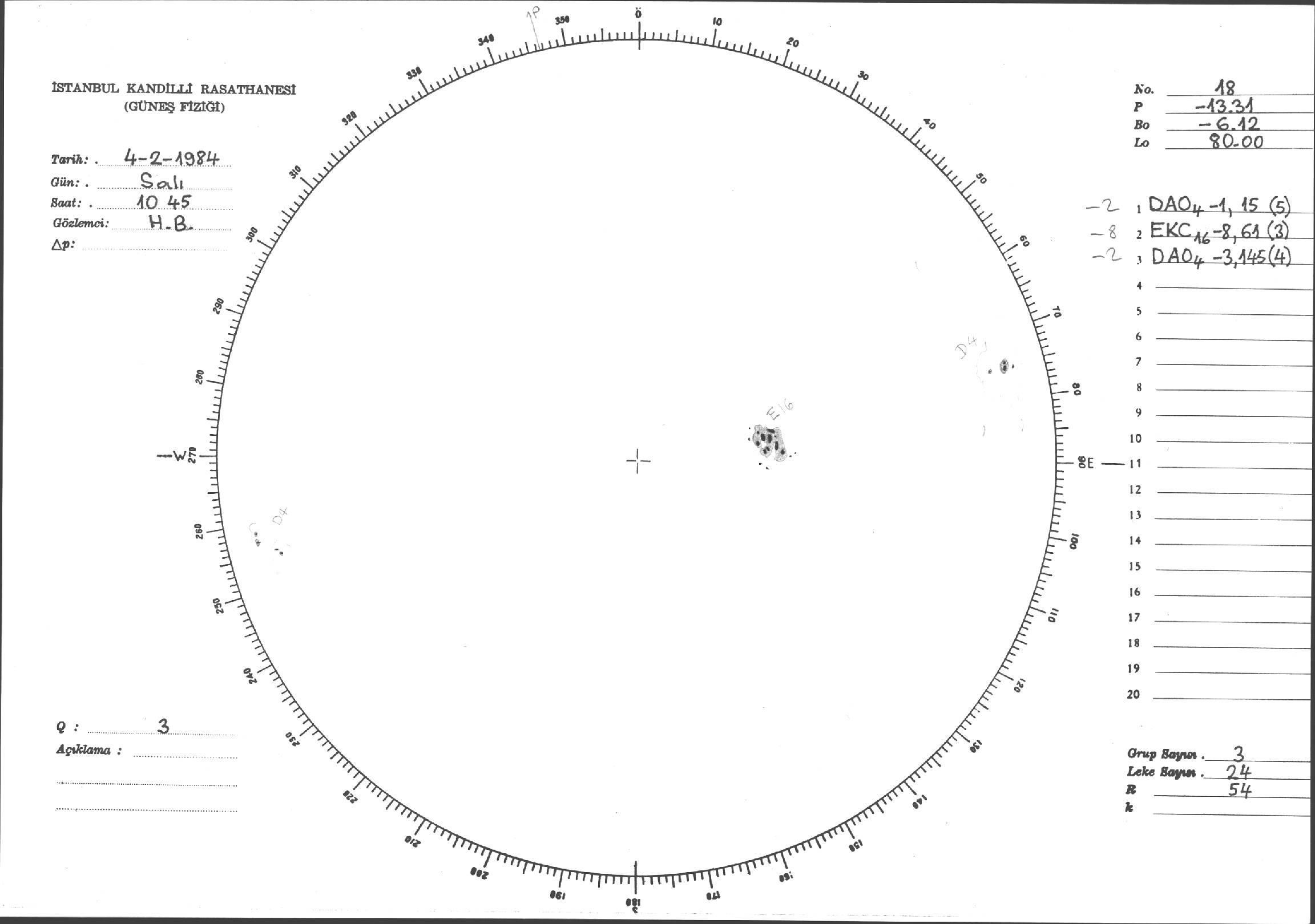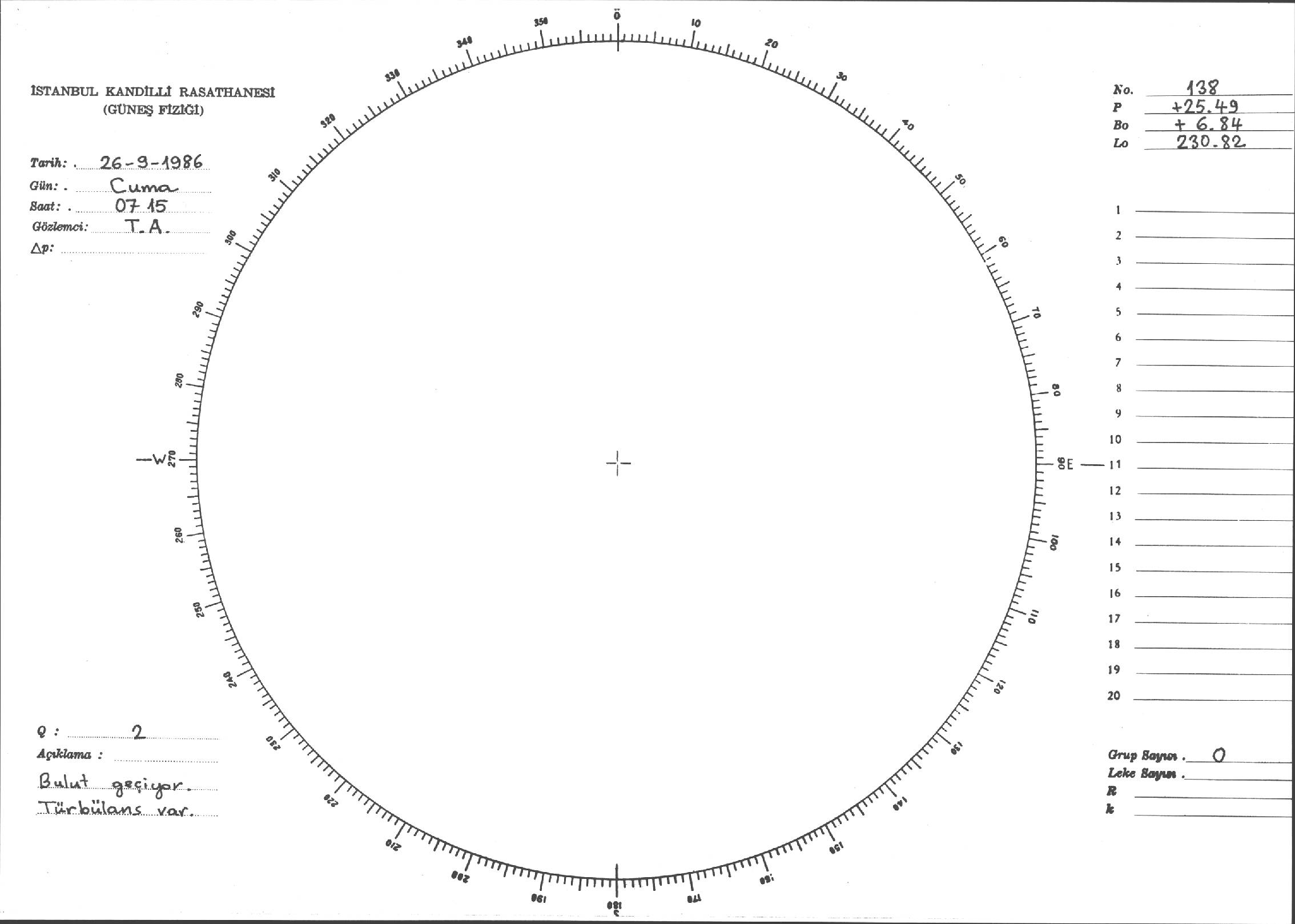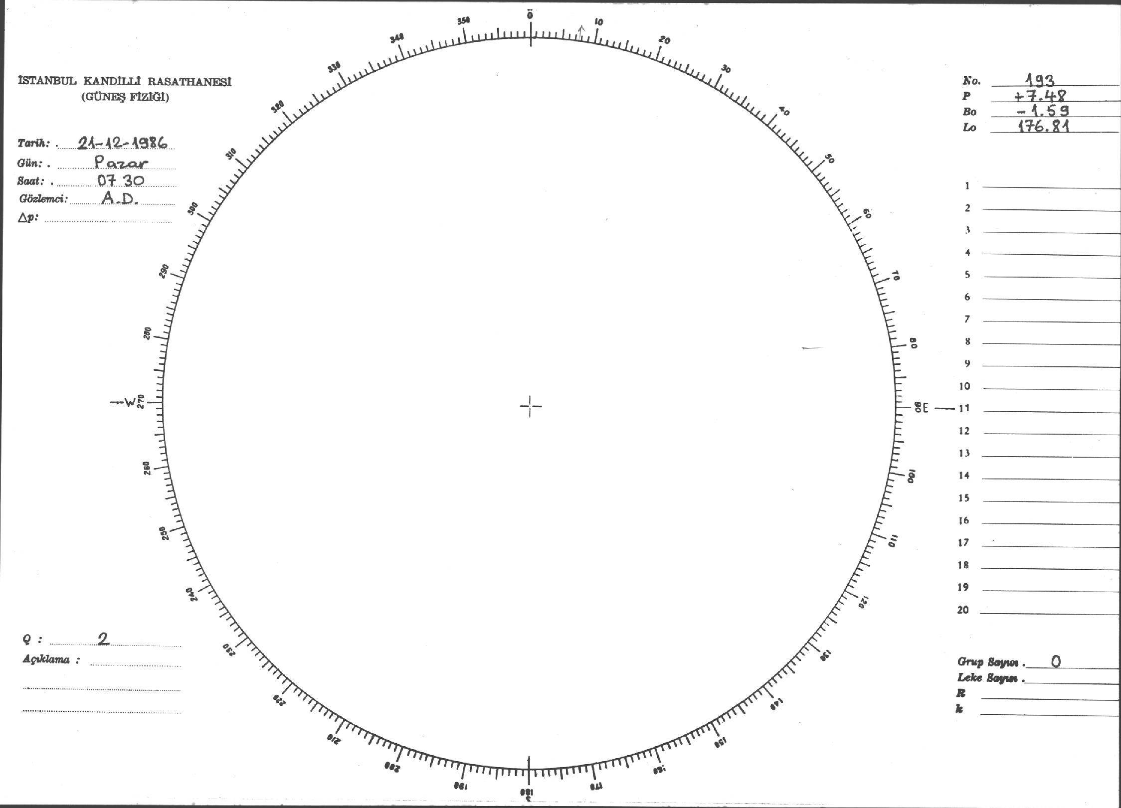 Güneş Lekesi Çizimleri / Kandilli Sunspot Drawings