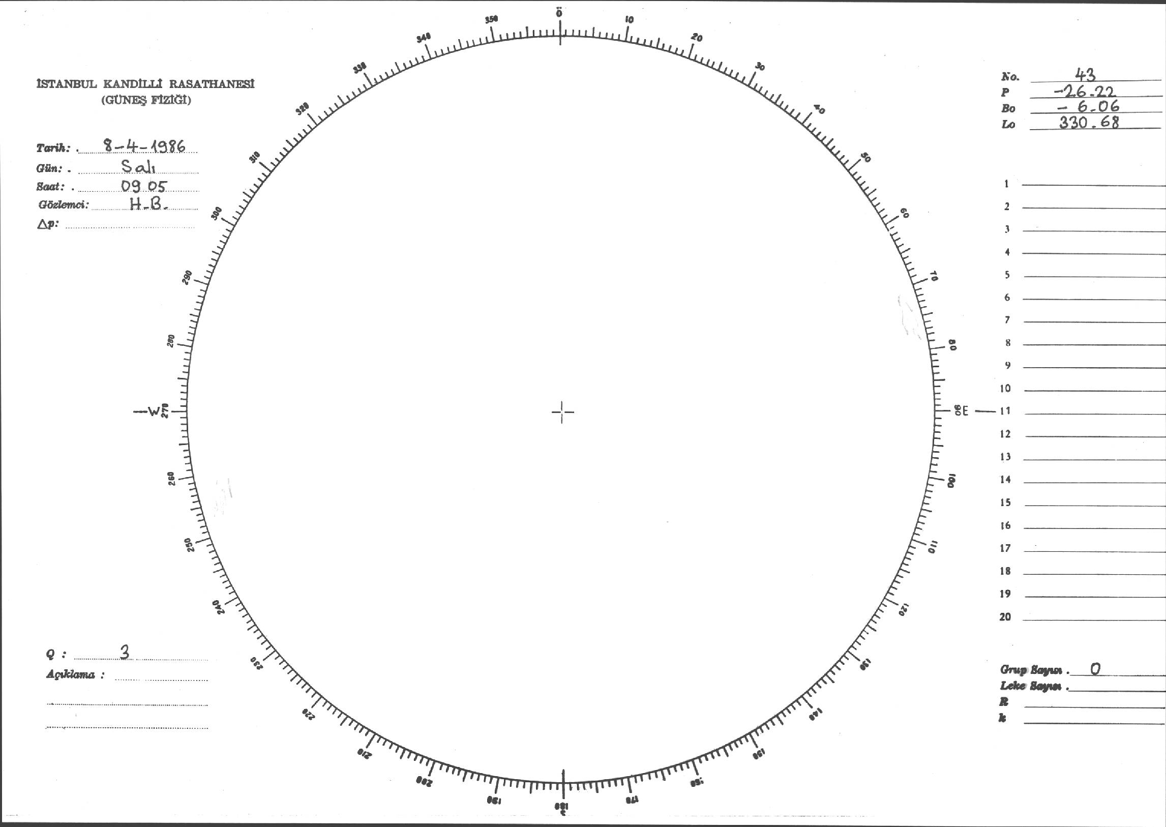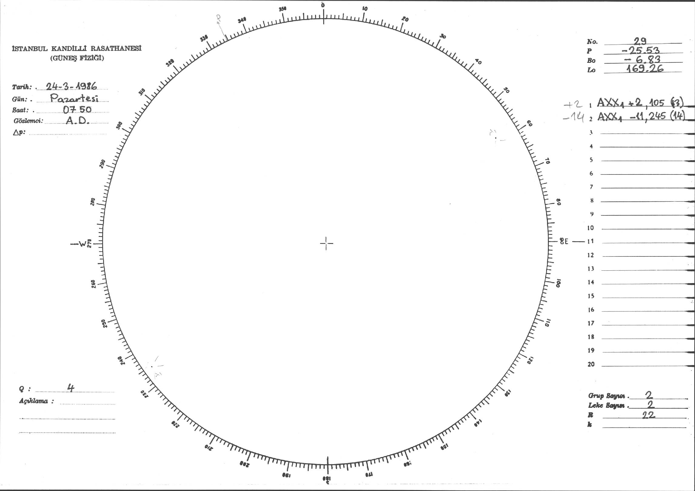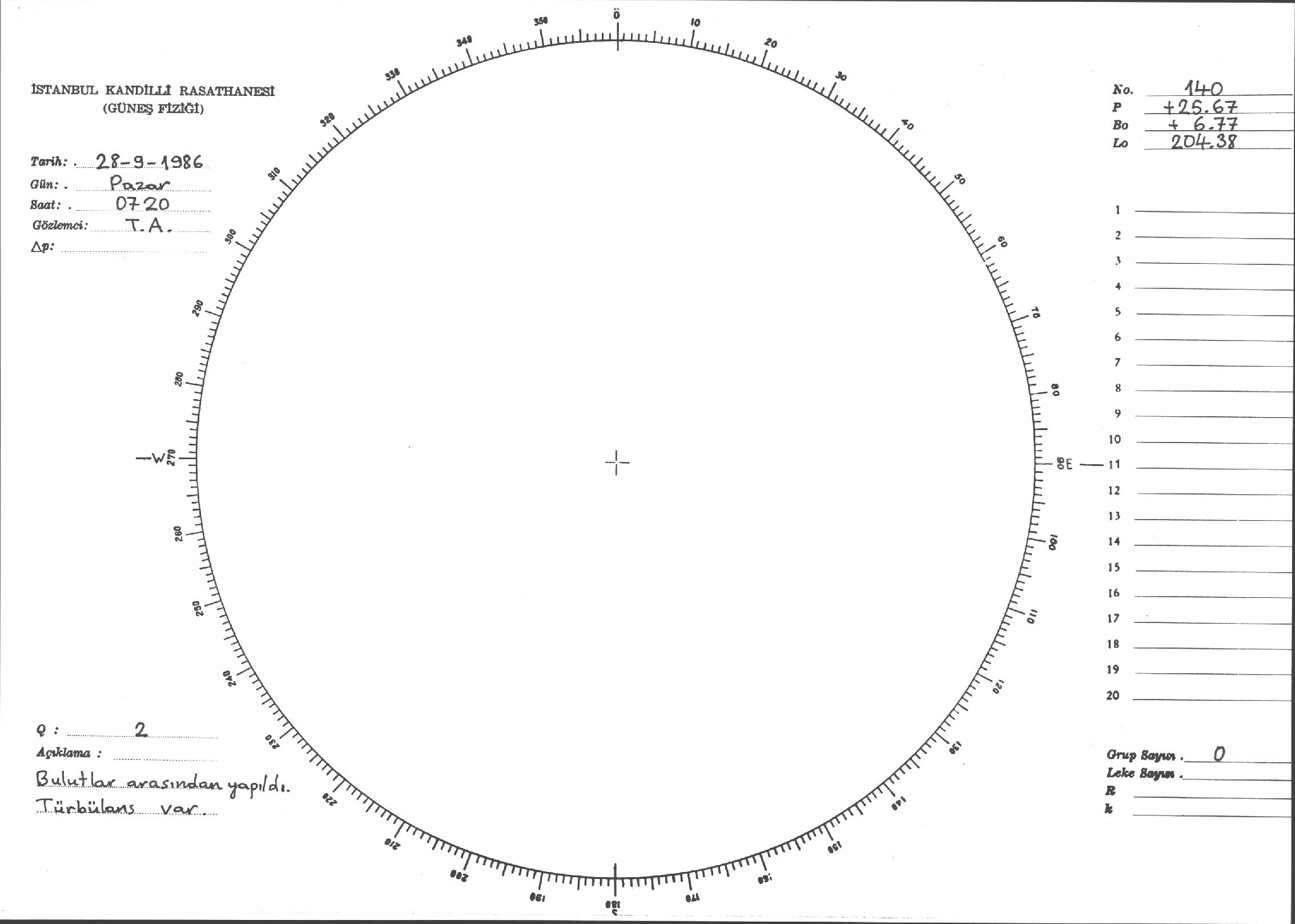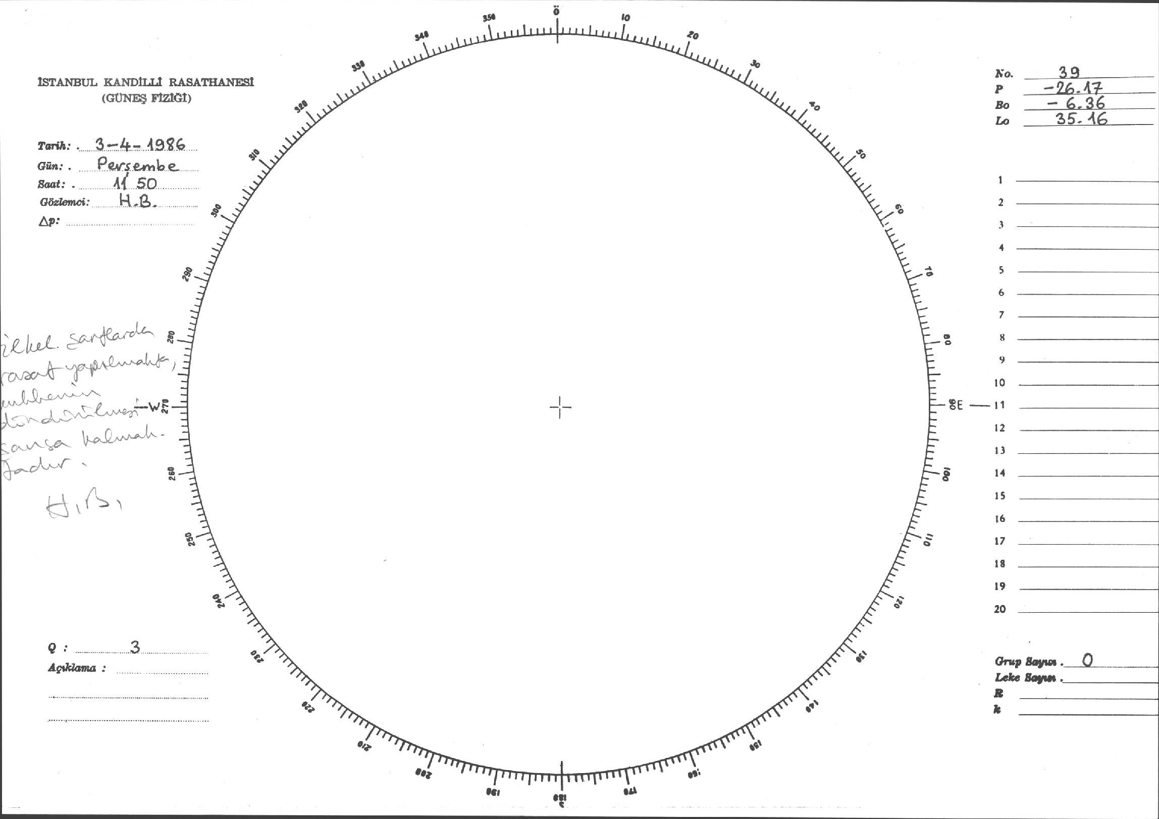 Güneş Lekesi Çizimleri / Kandilli Sunspot Drawings