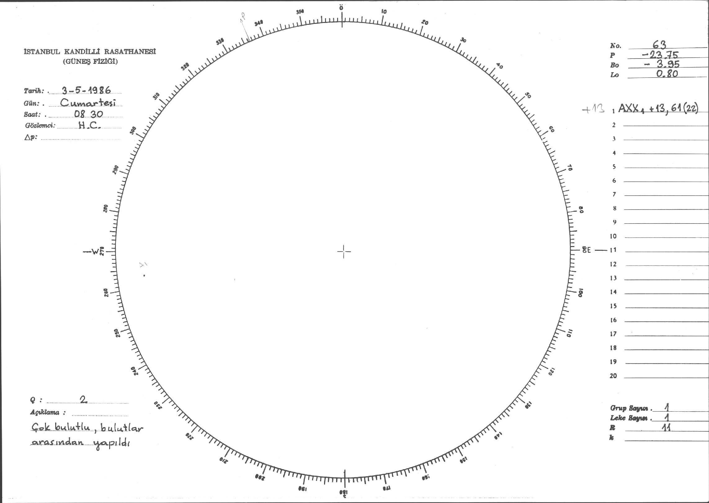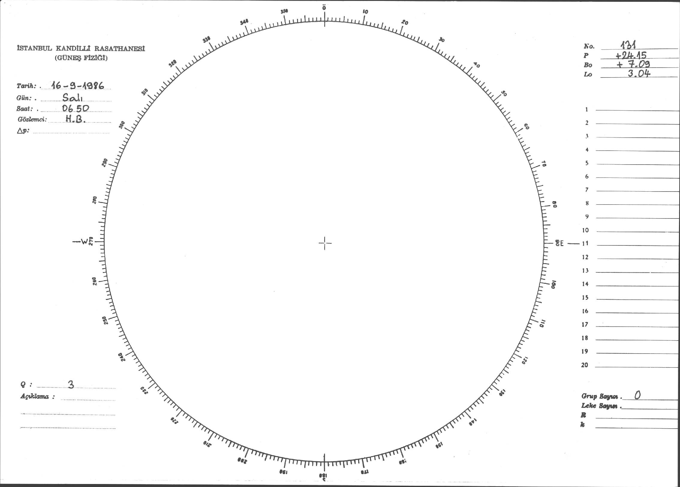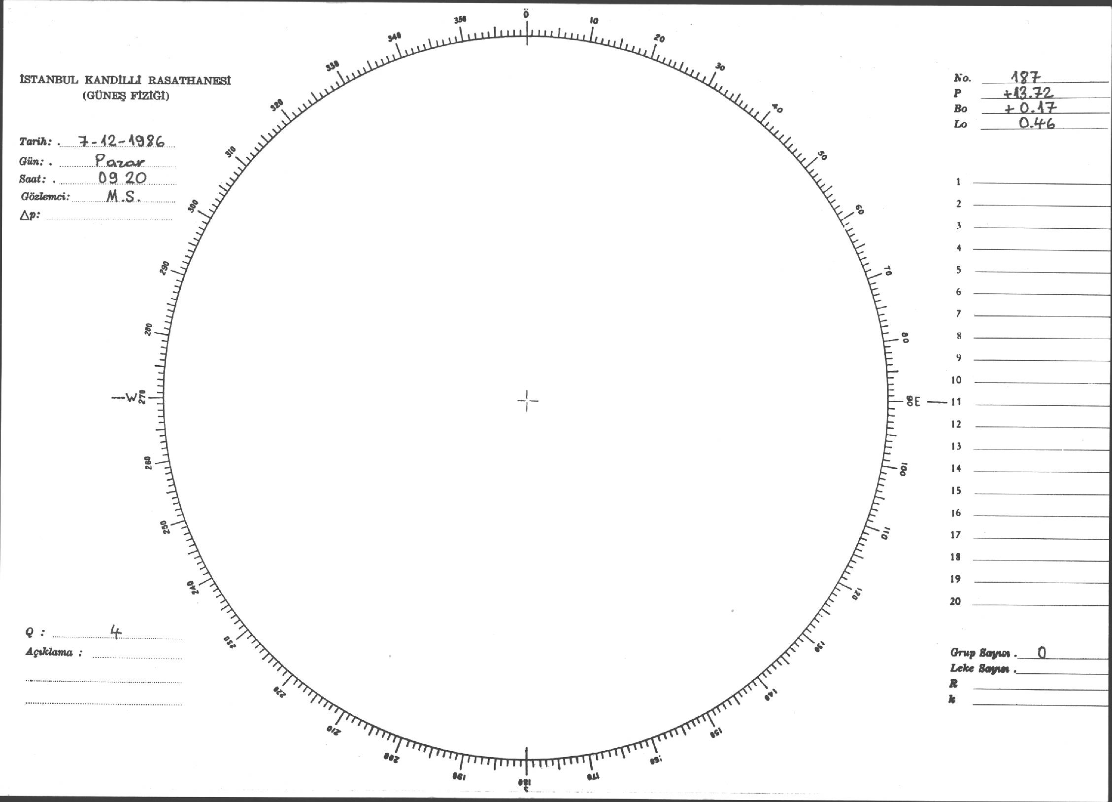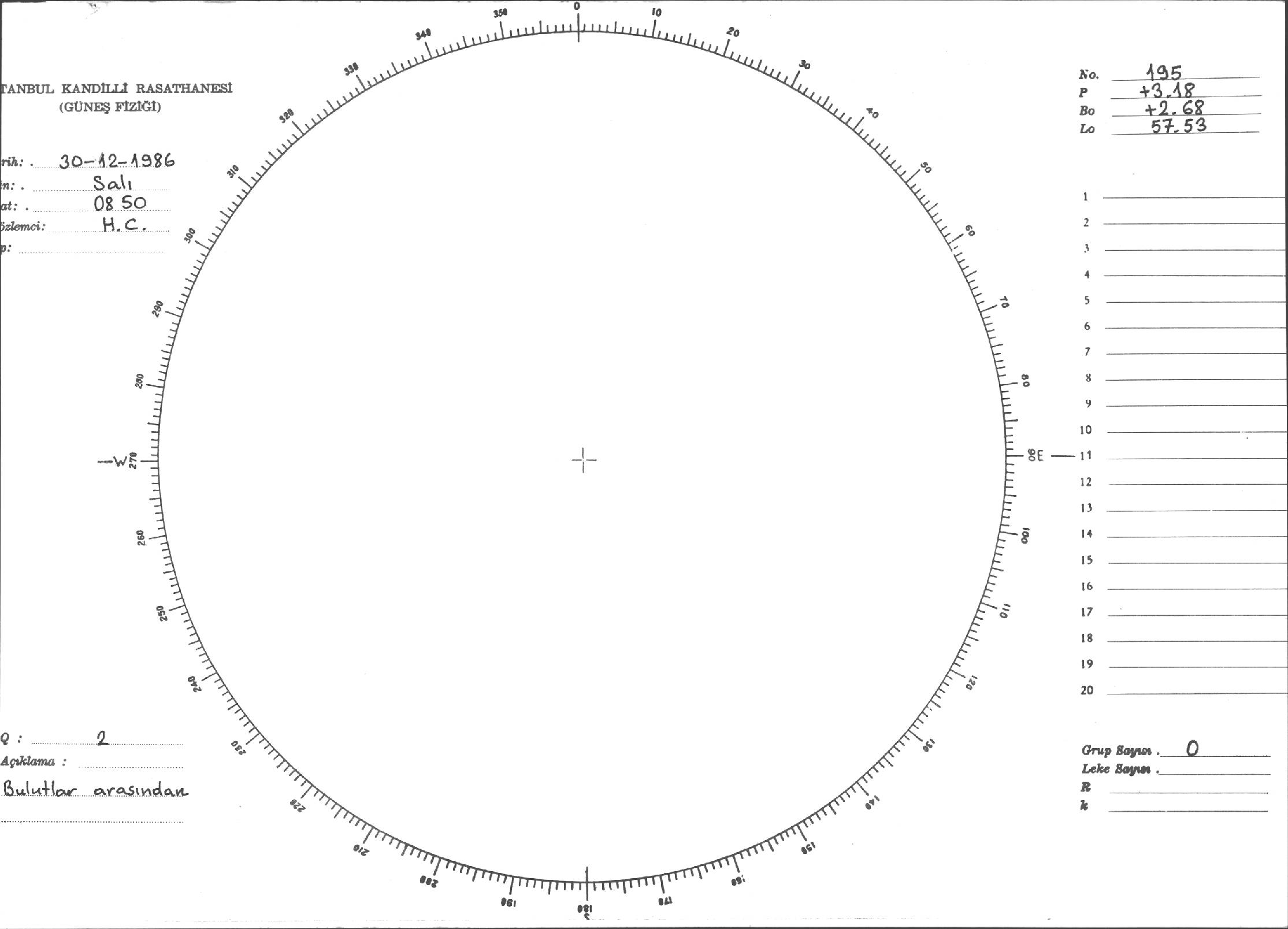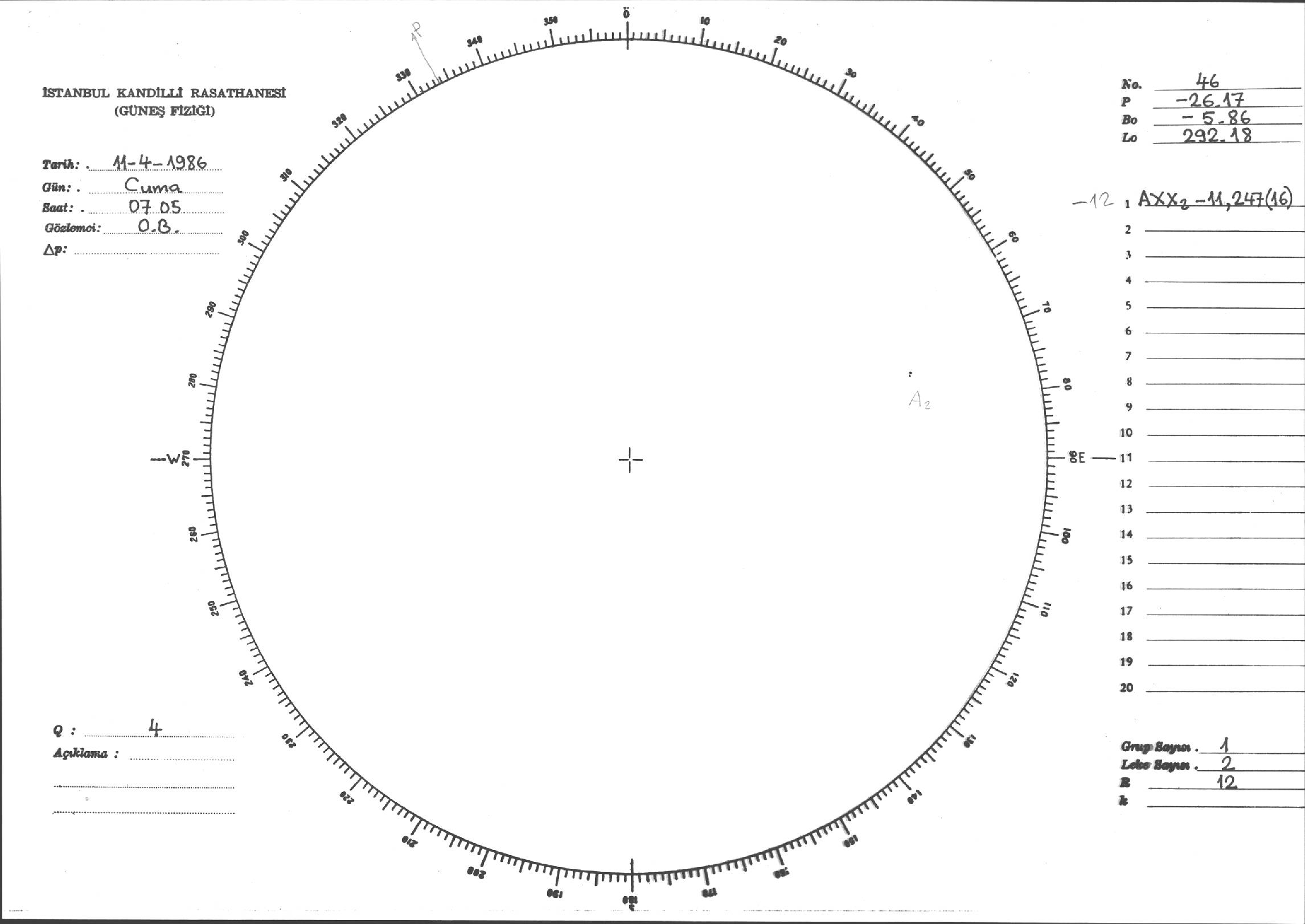 Güneş Lekesi Çizimleri / Kandilli Sunspot Drawings
