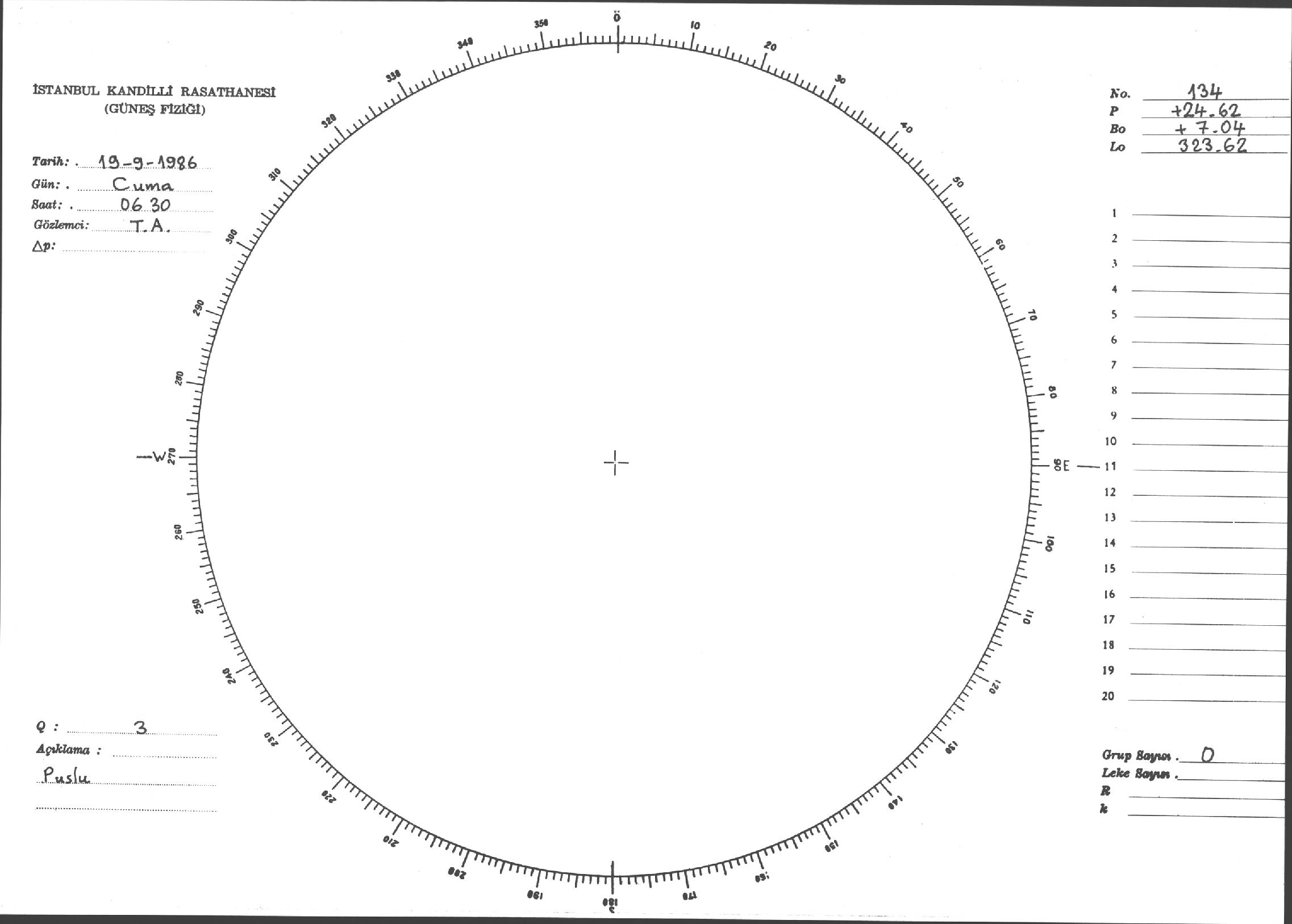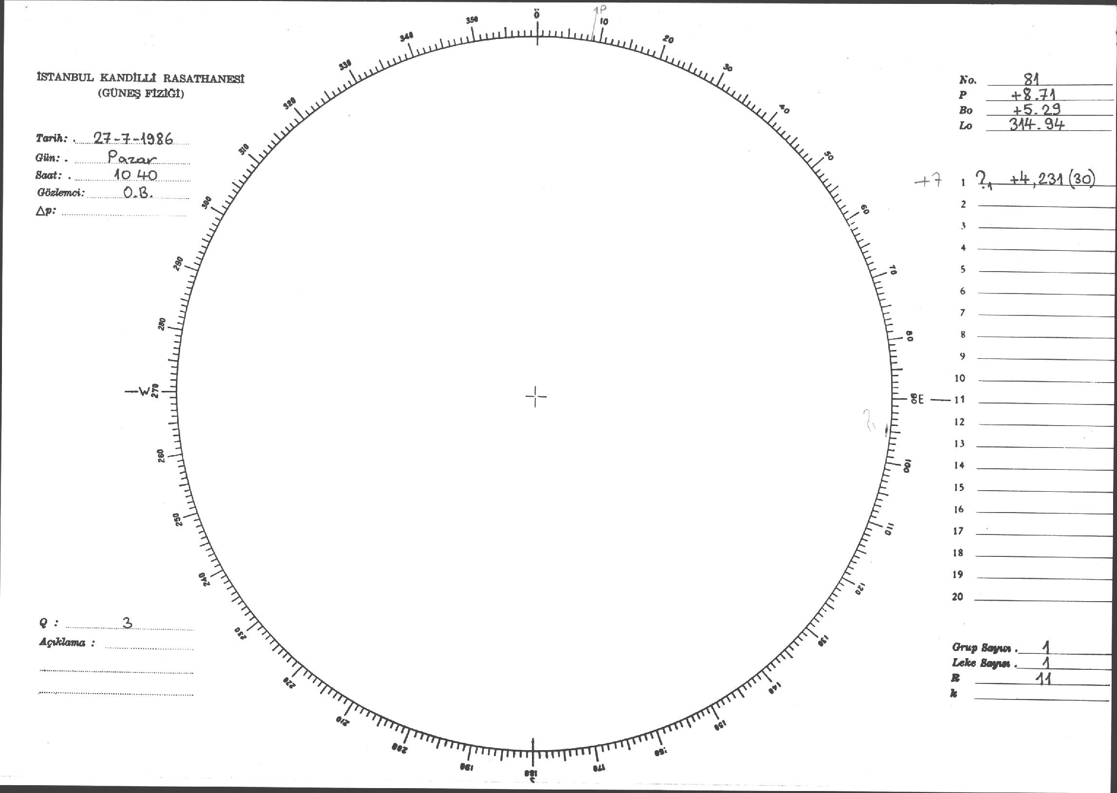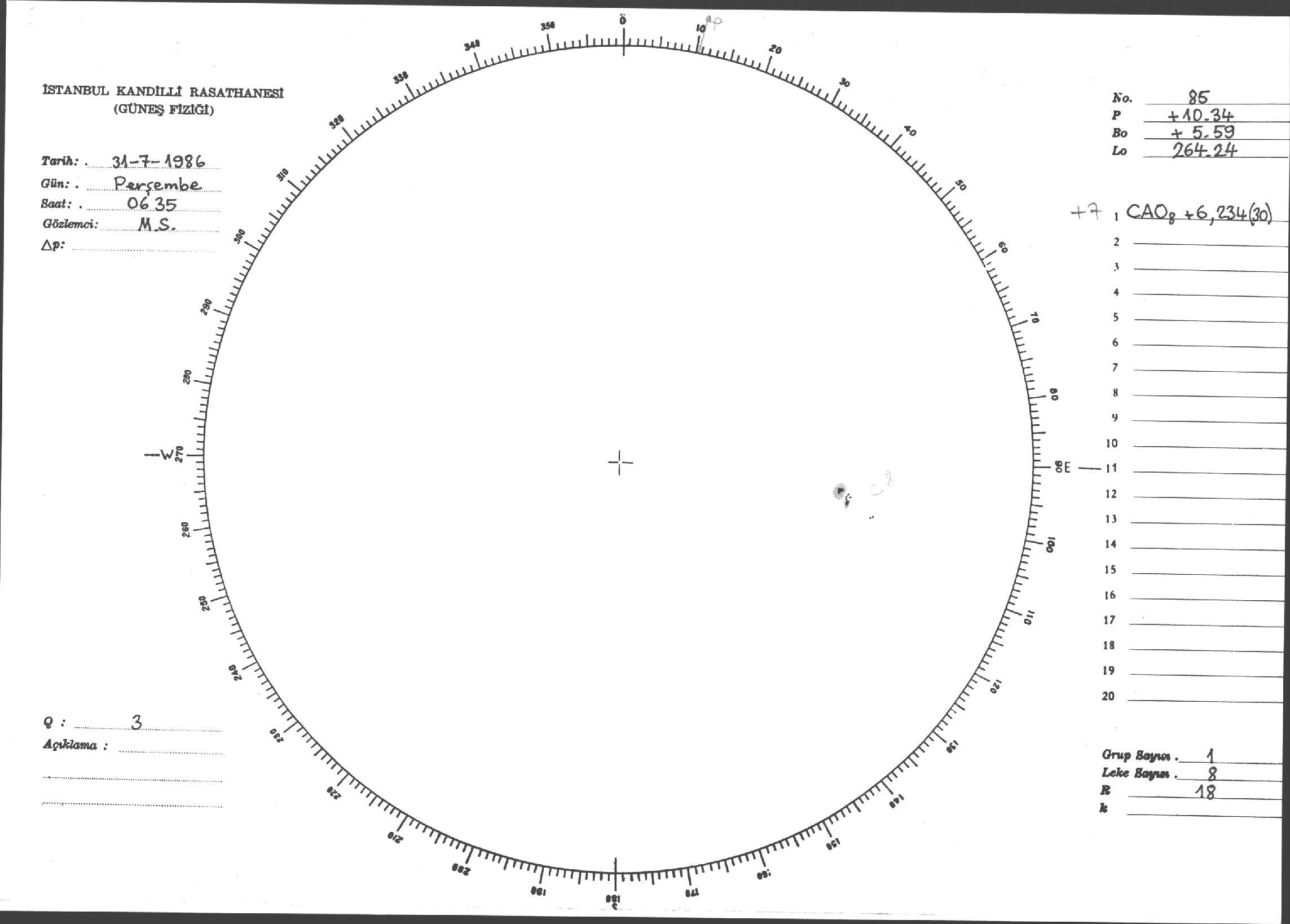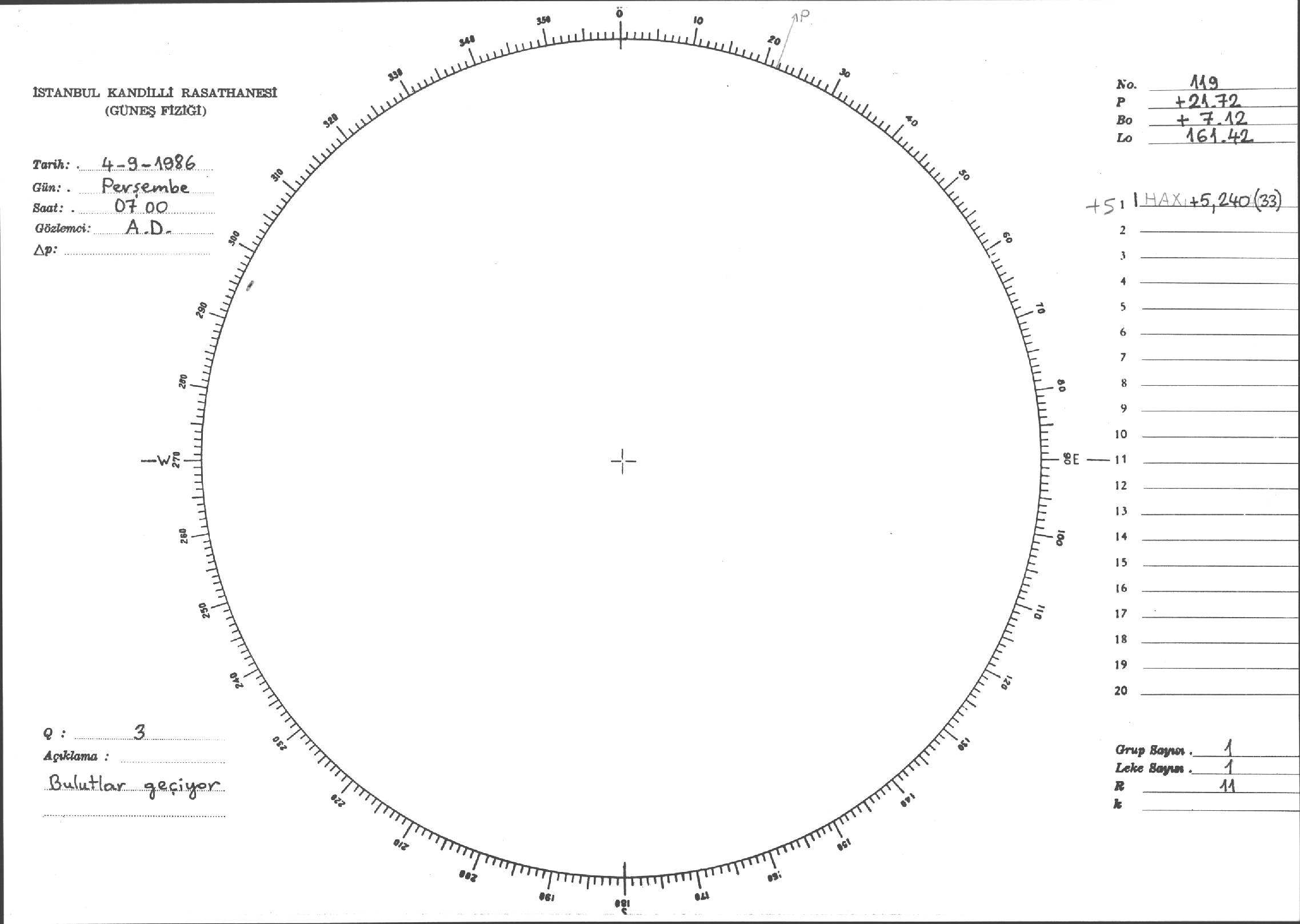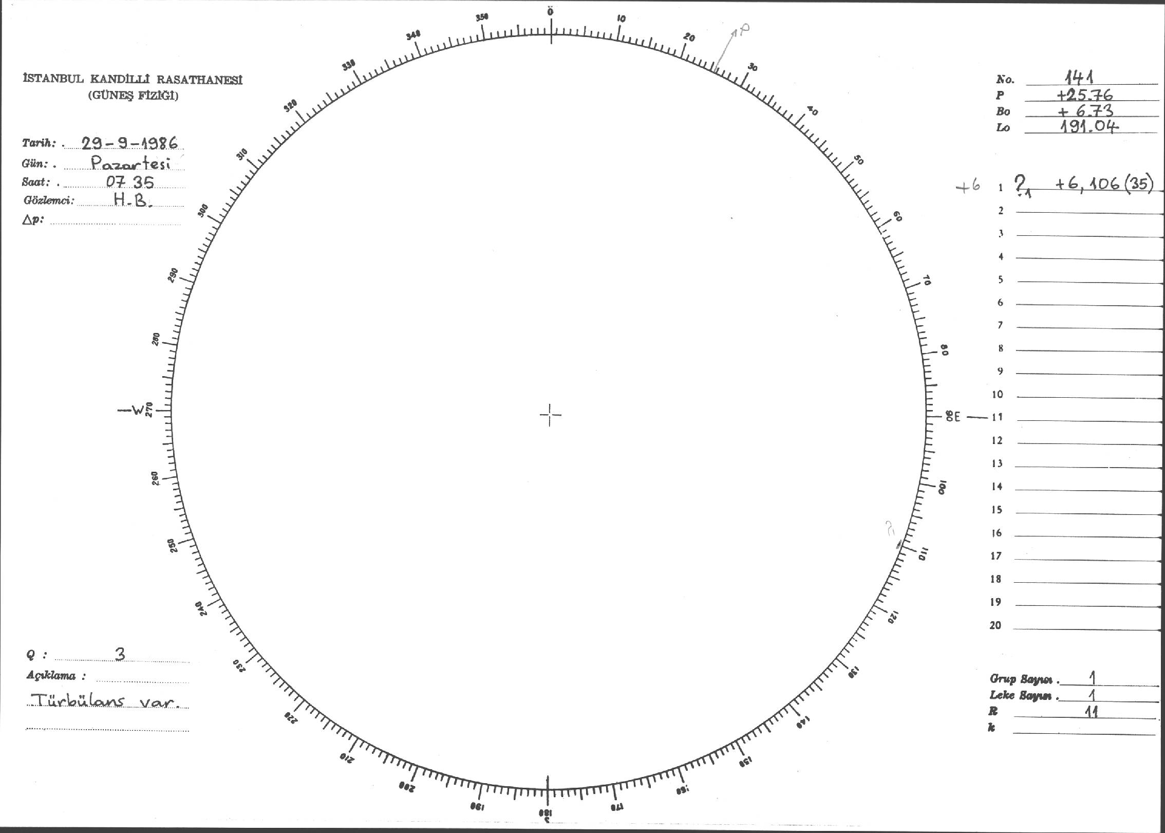 Güneş Lekesi Çizimleri / Kandilli Sunspot Drawings