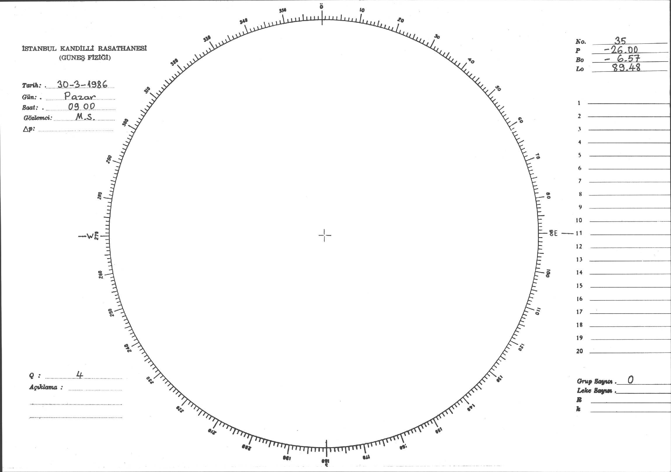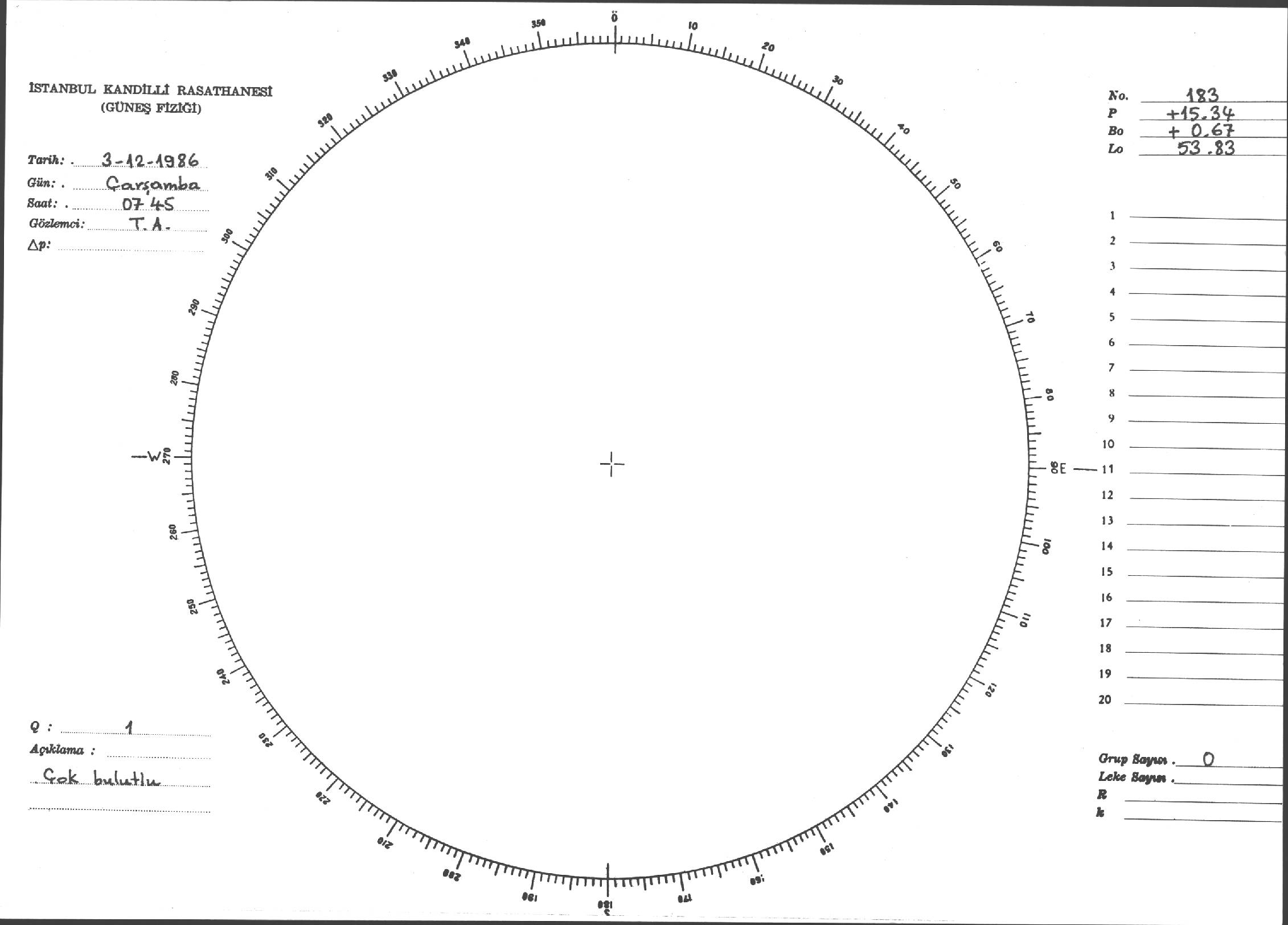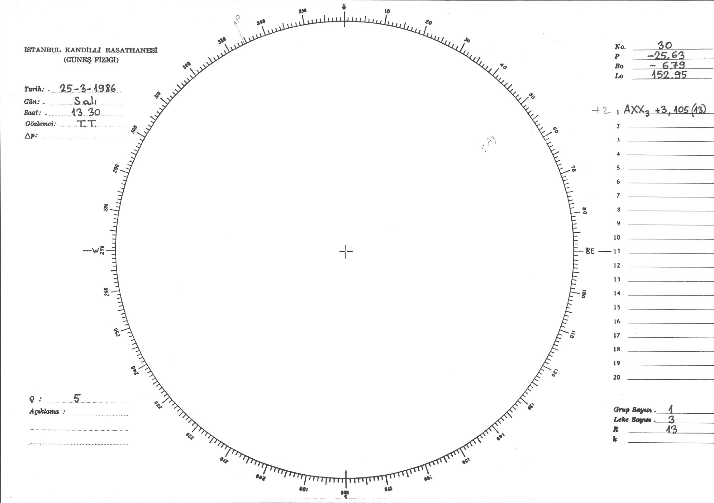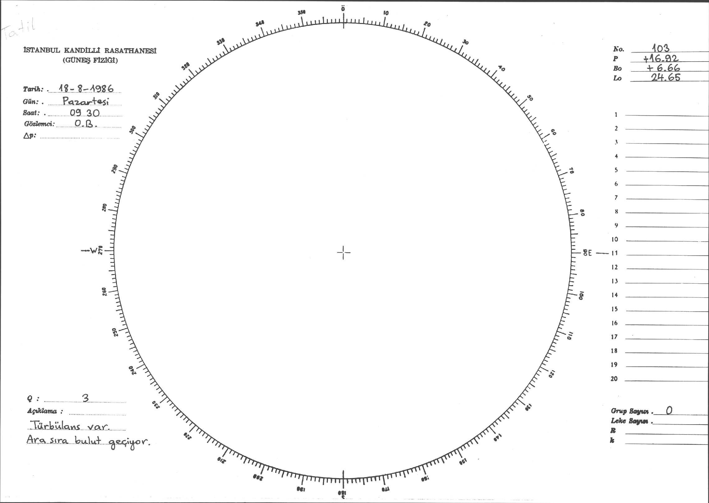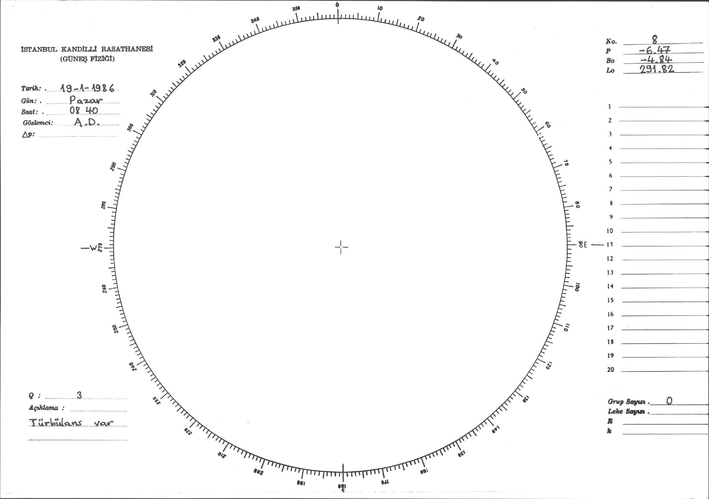 Güneş Lekesi Çizimleri / Kandilli Sunspot Drawings