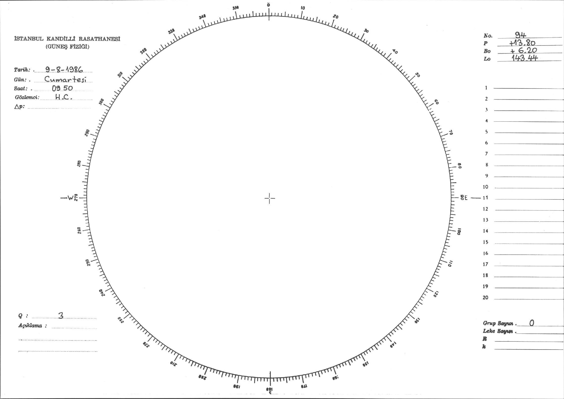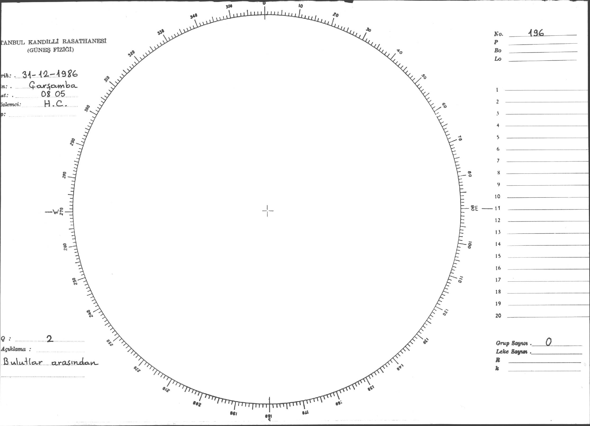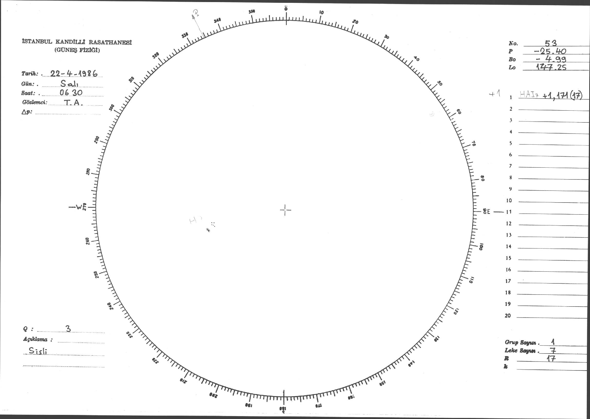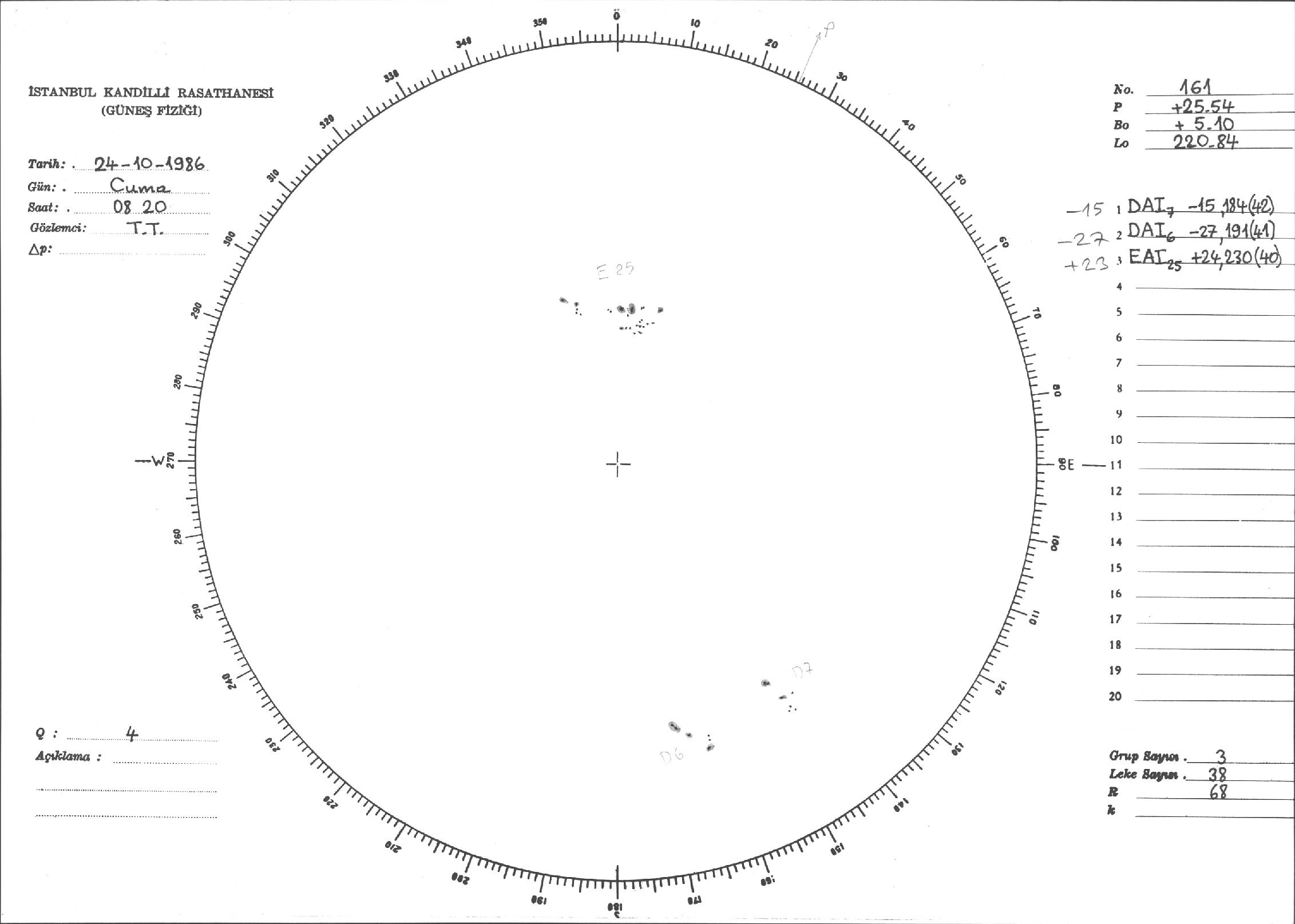 Güneş Lekesi Çizimleri / Kandilli Sunspot Drawings