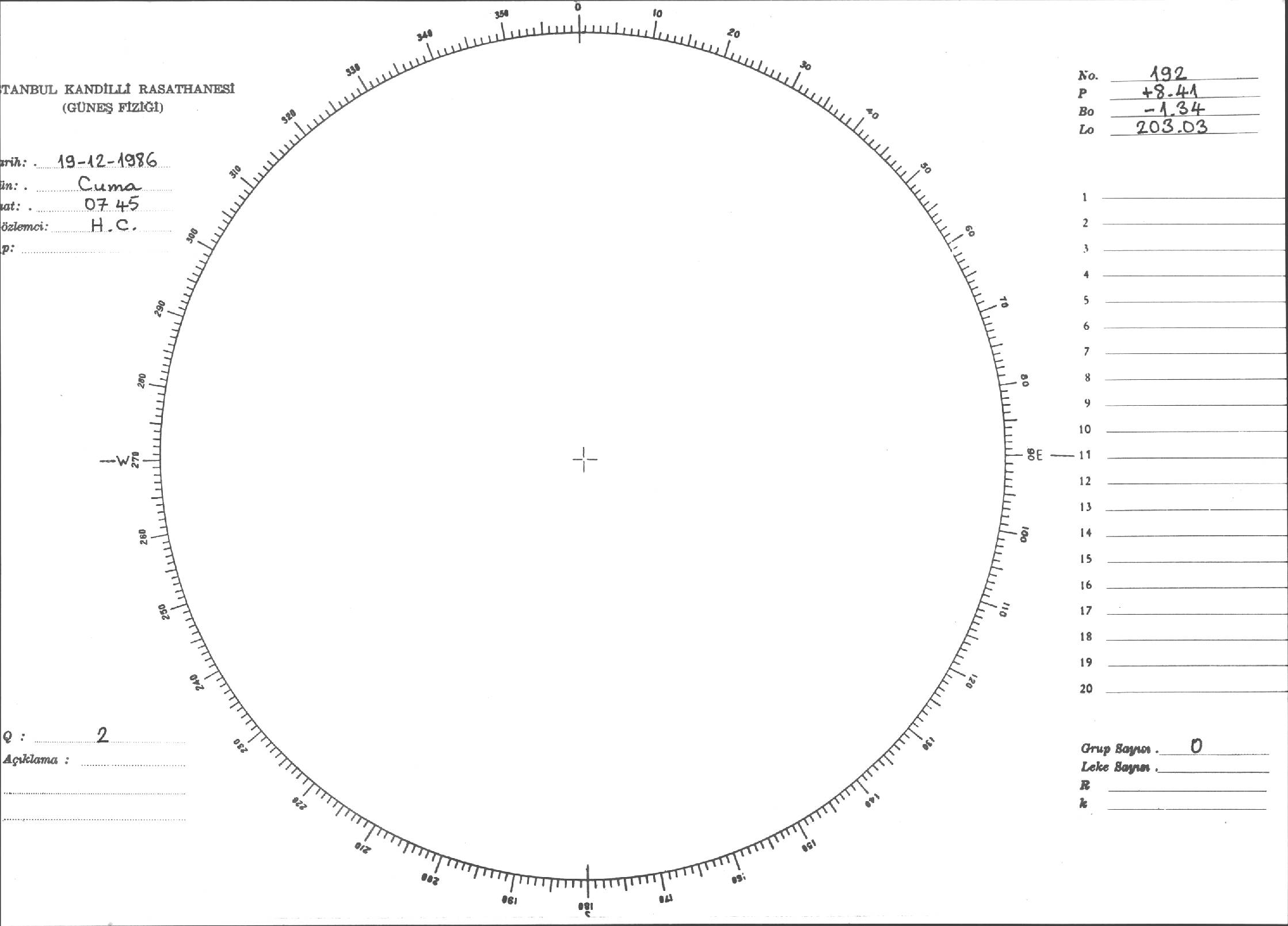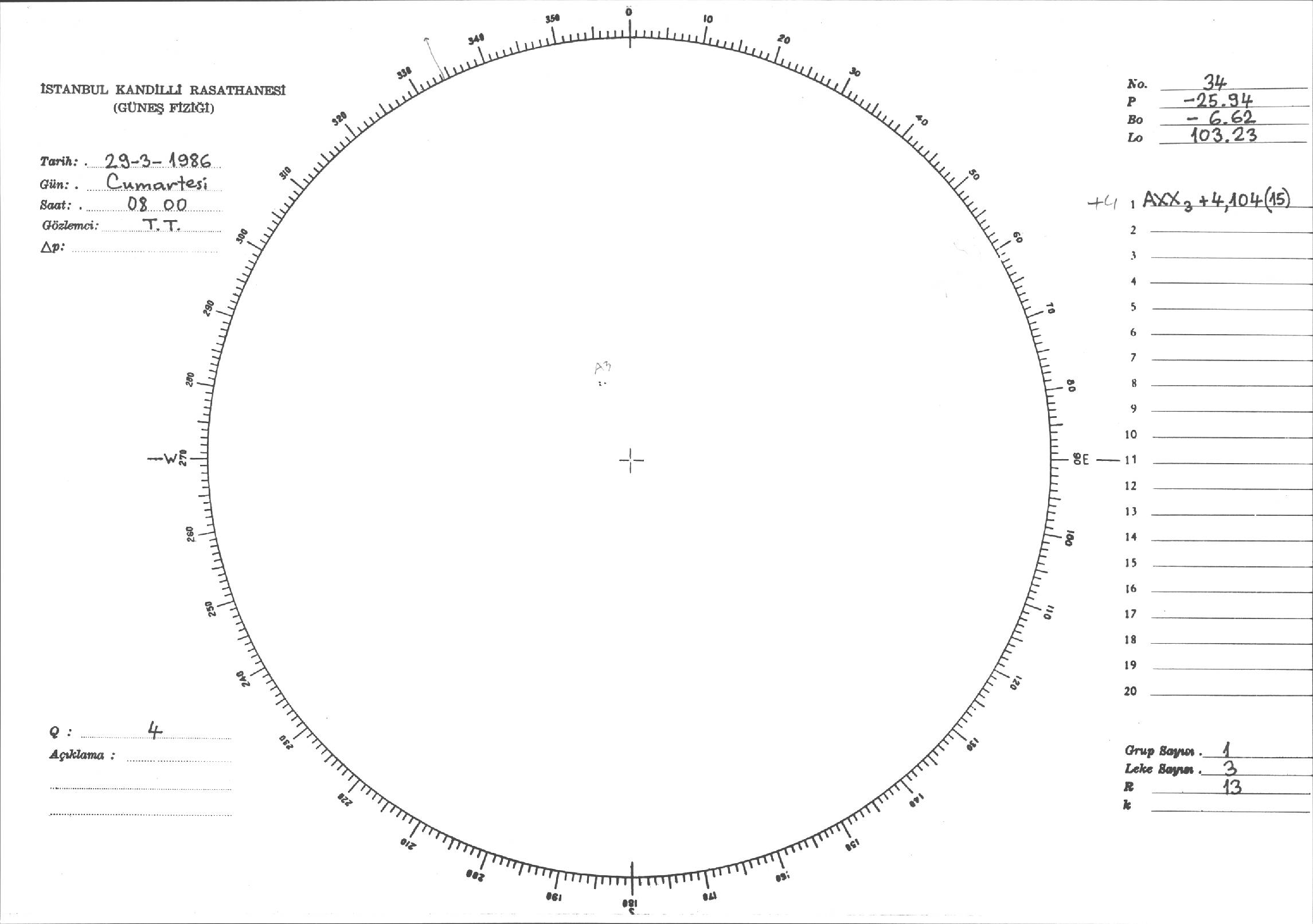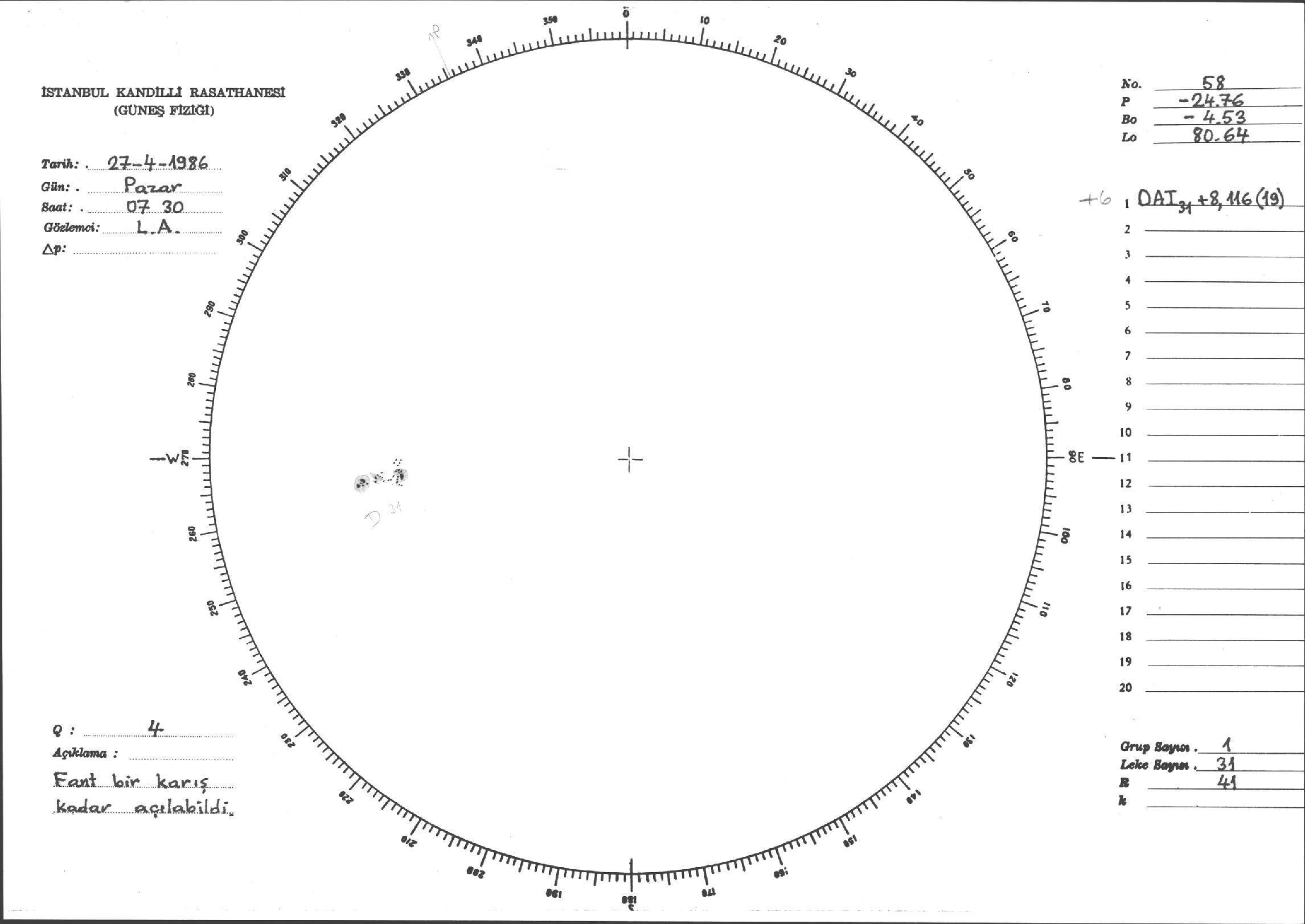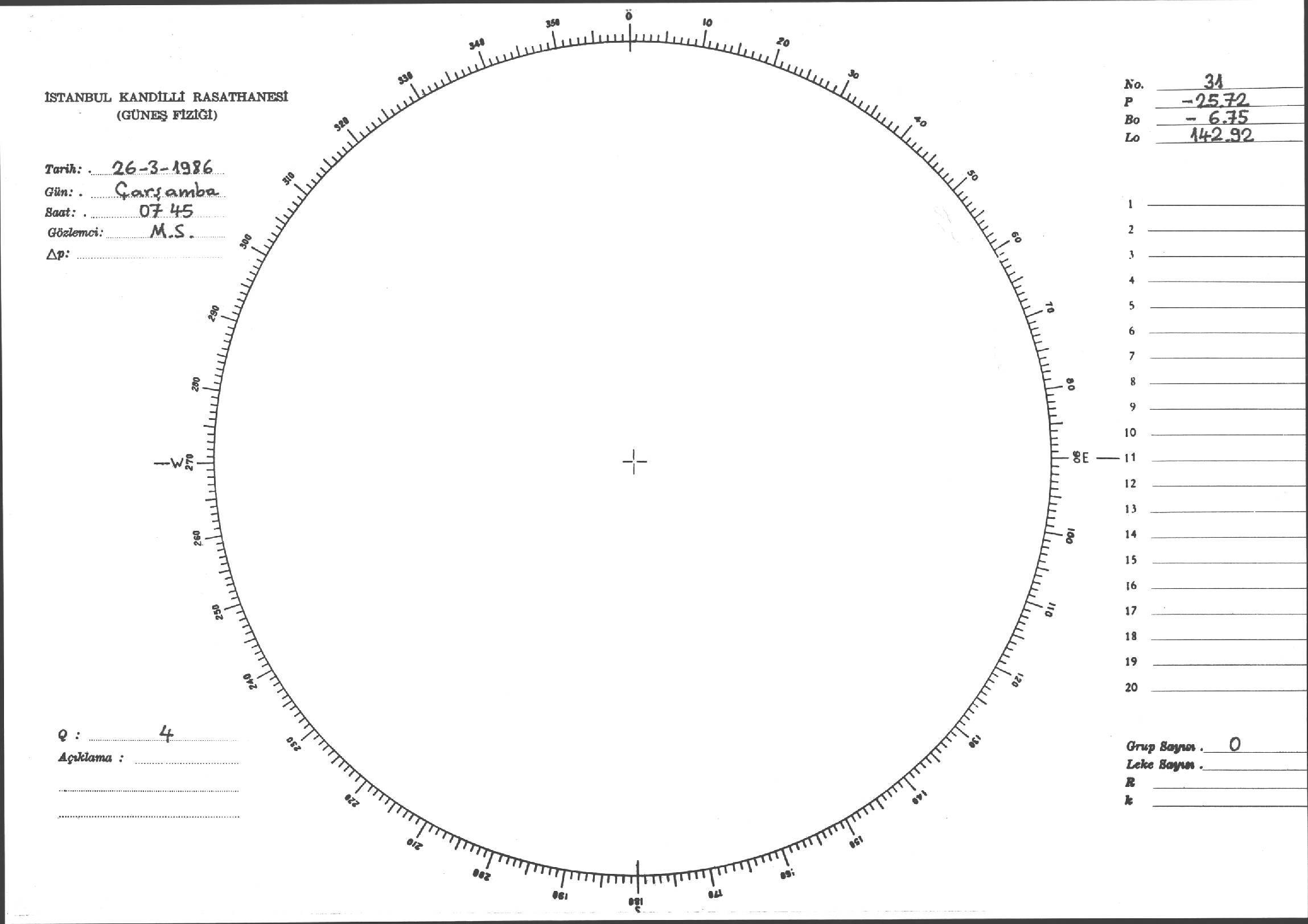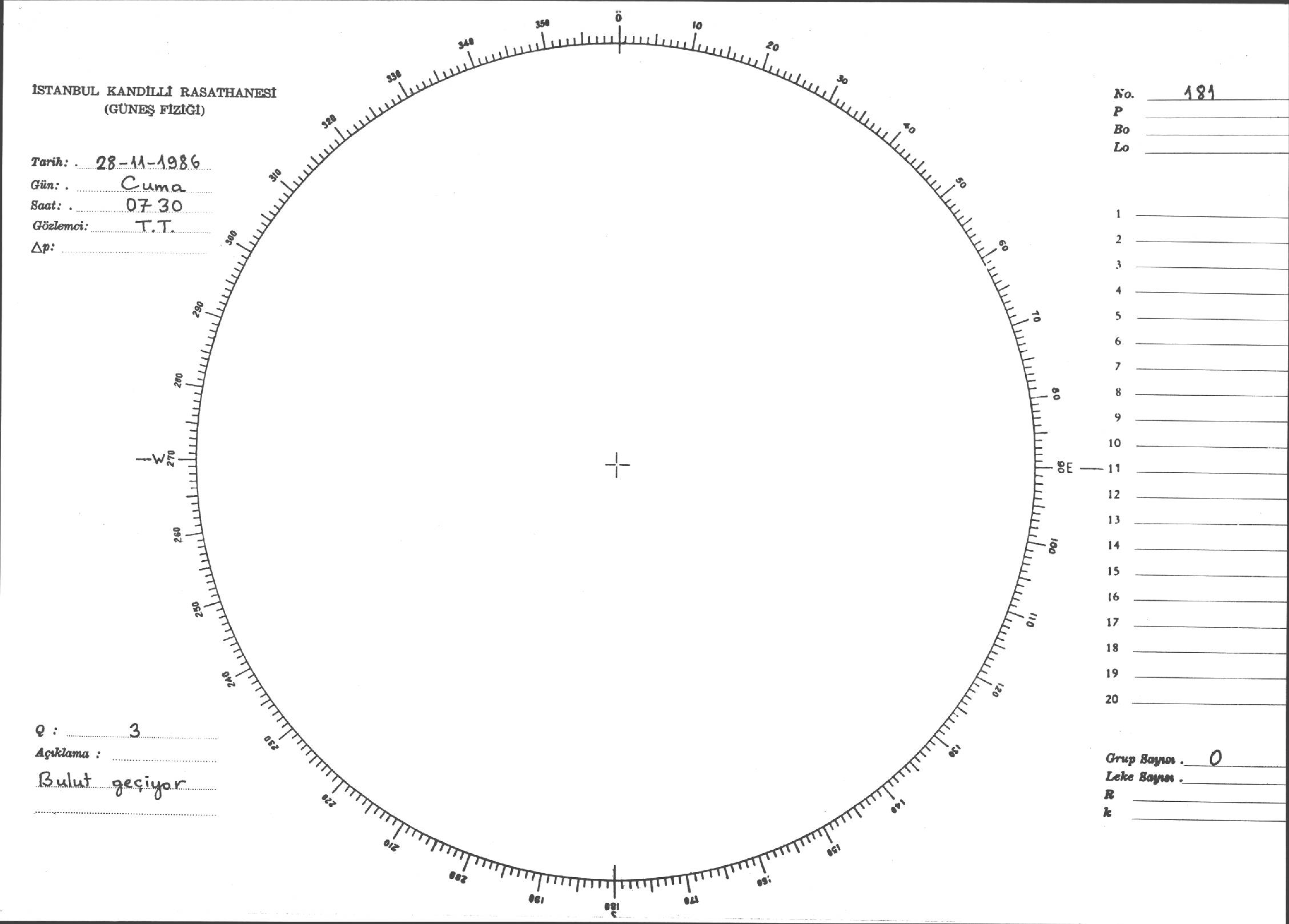 Güneş Lekesi Çizimleri / Kandilli Sunspot Drawings