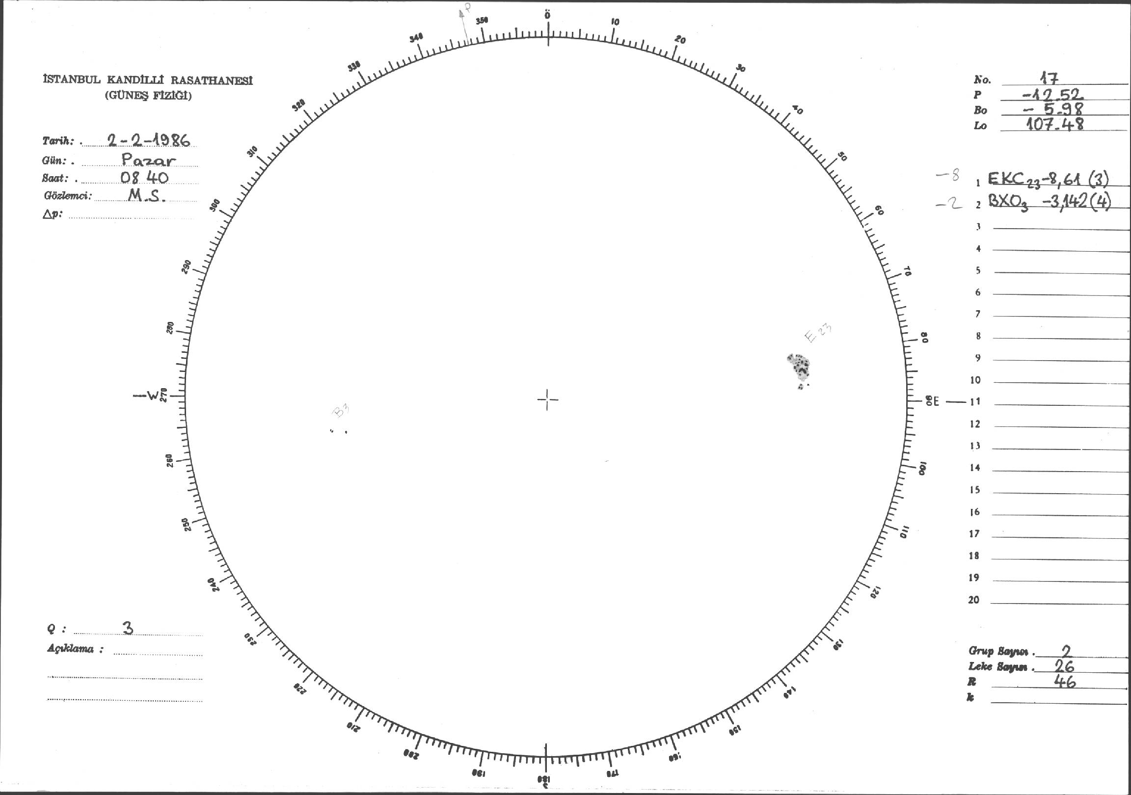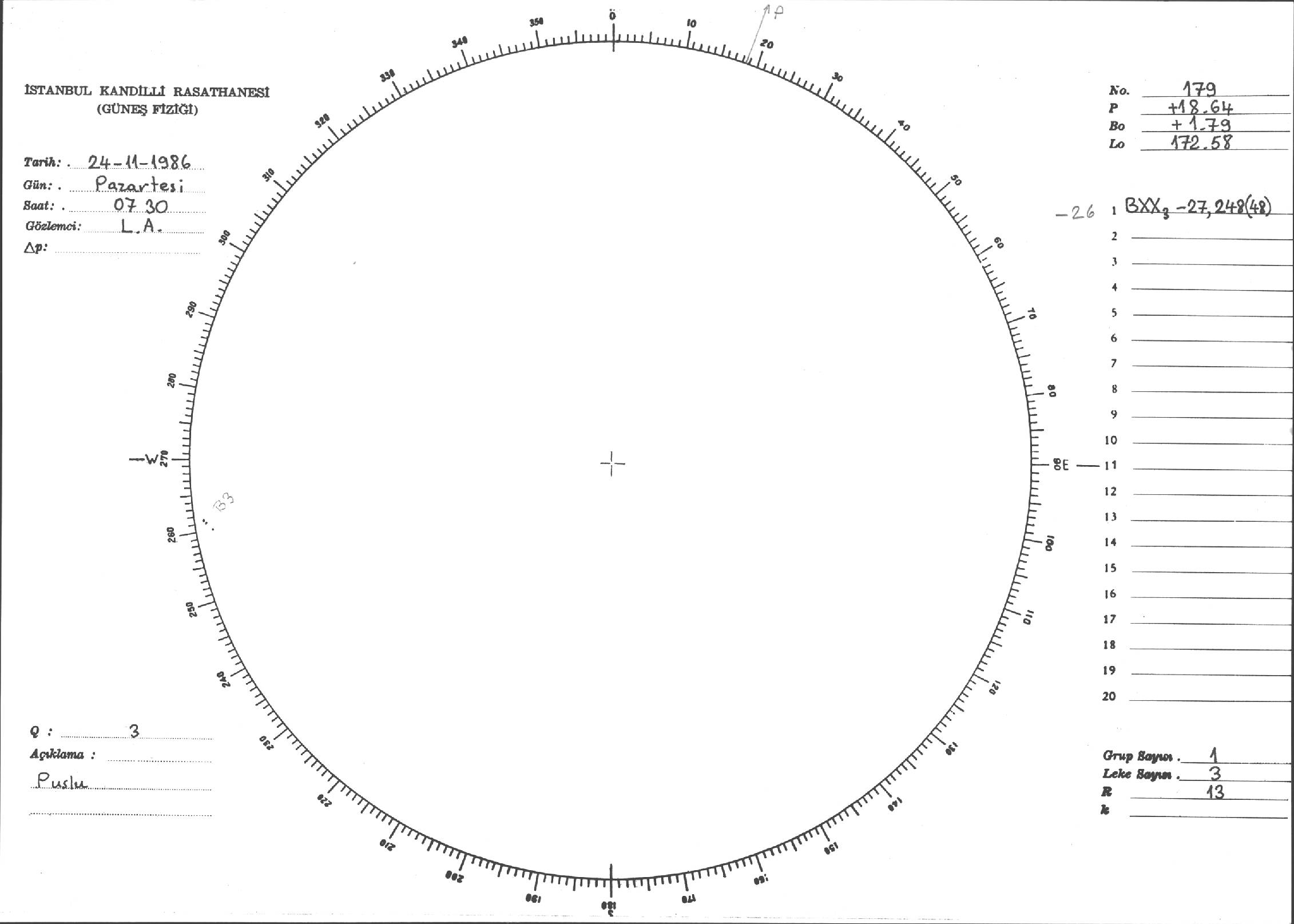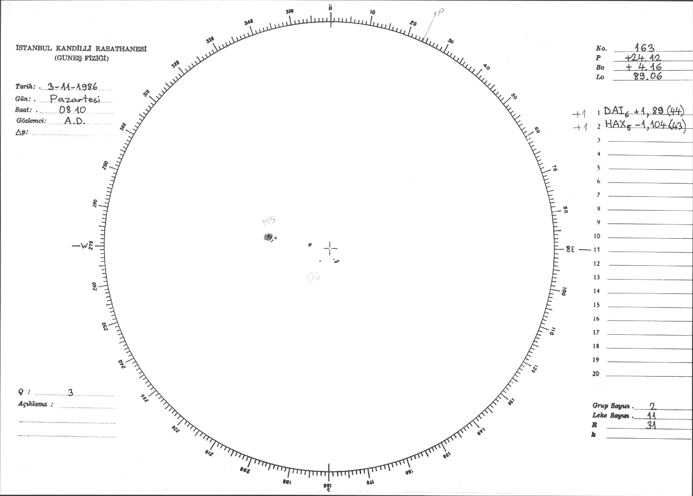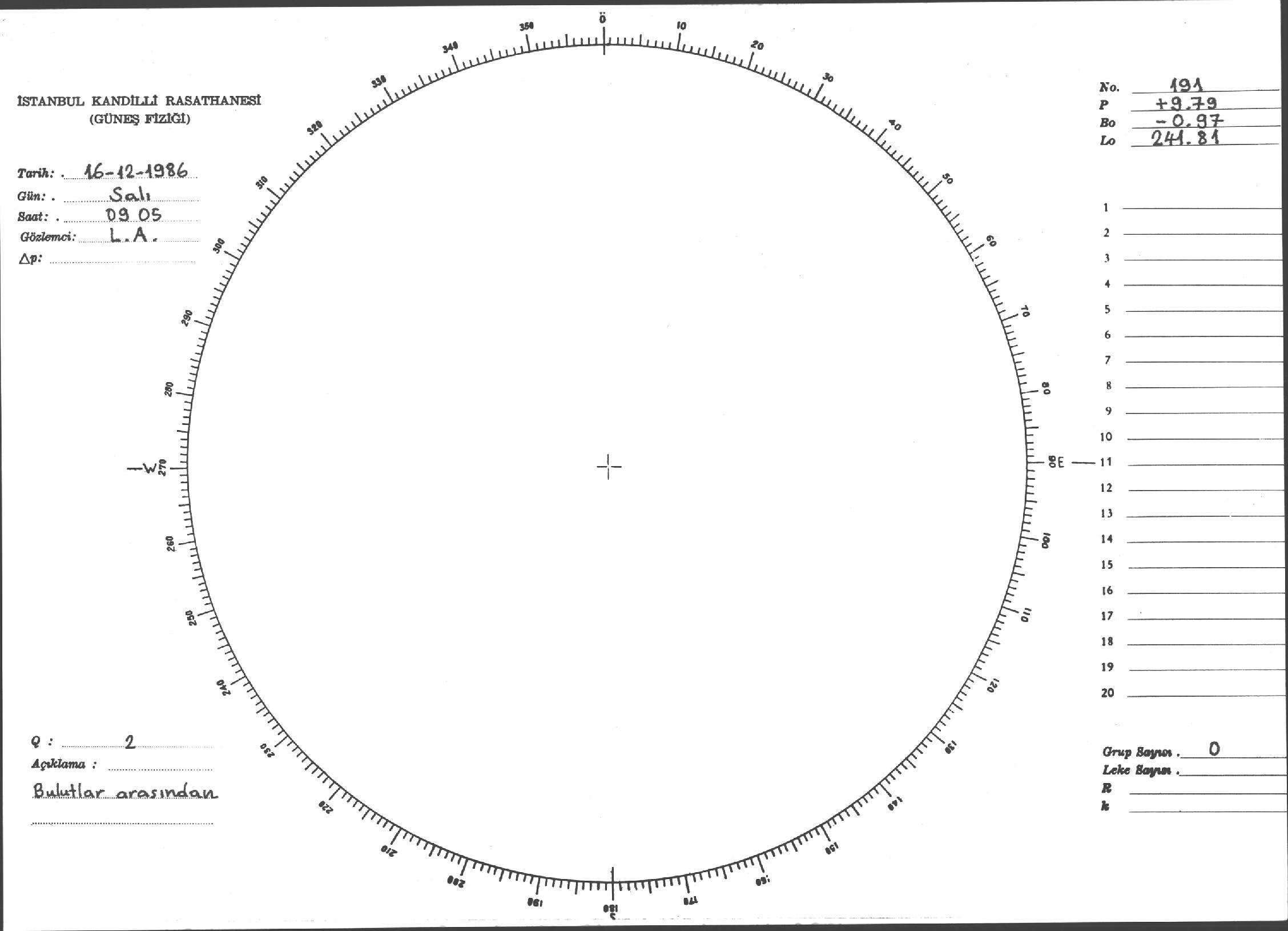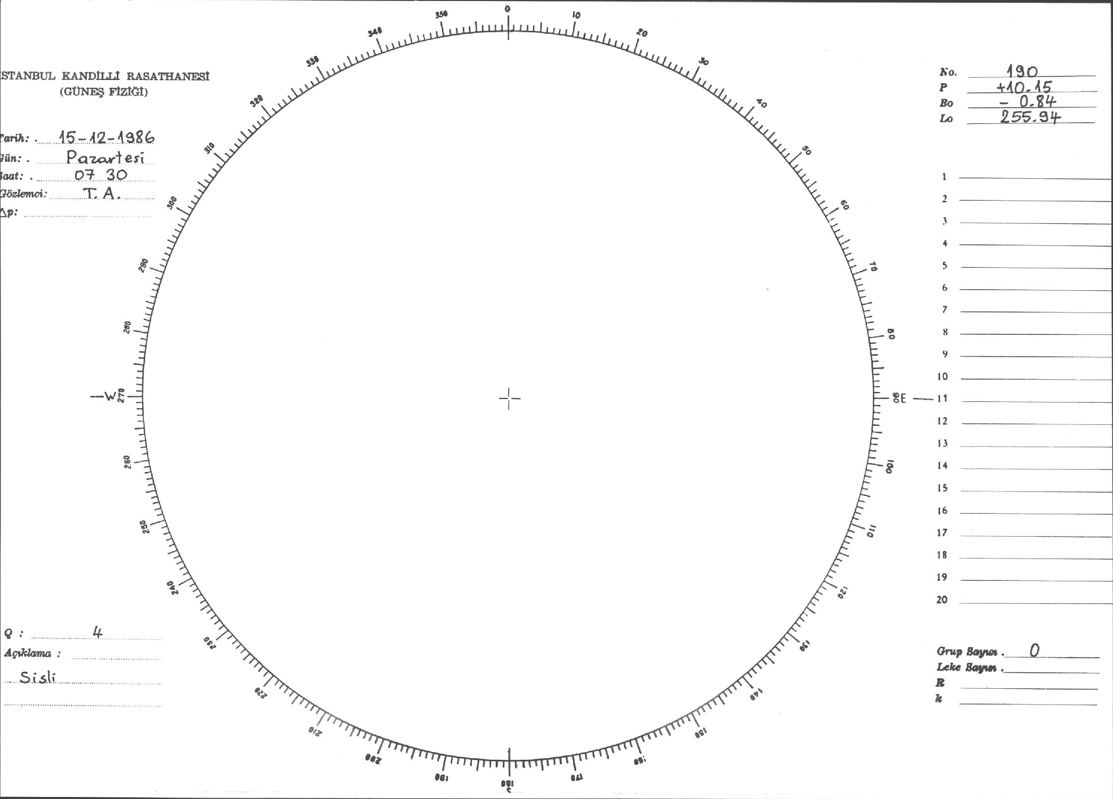 Güneş Lekesi Çizimleri / Kandilli Sunspot Drawings