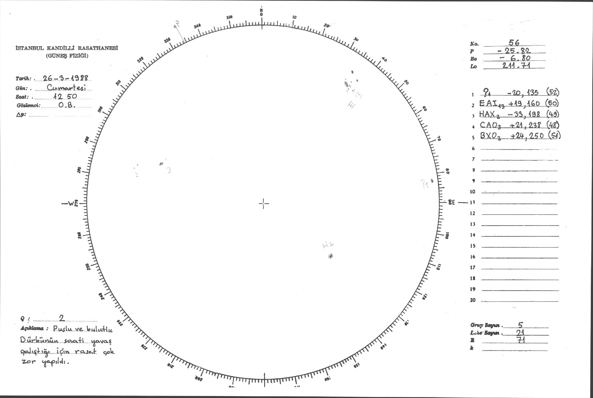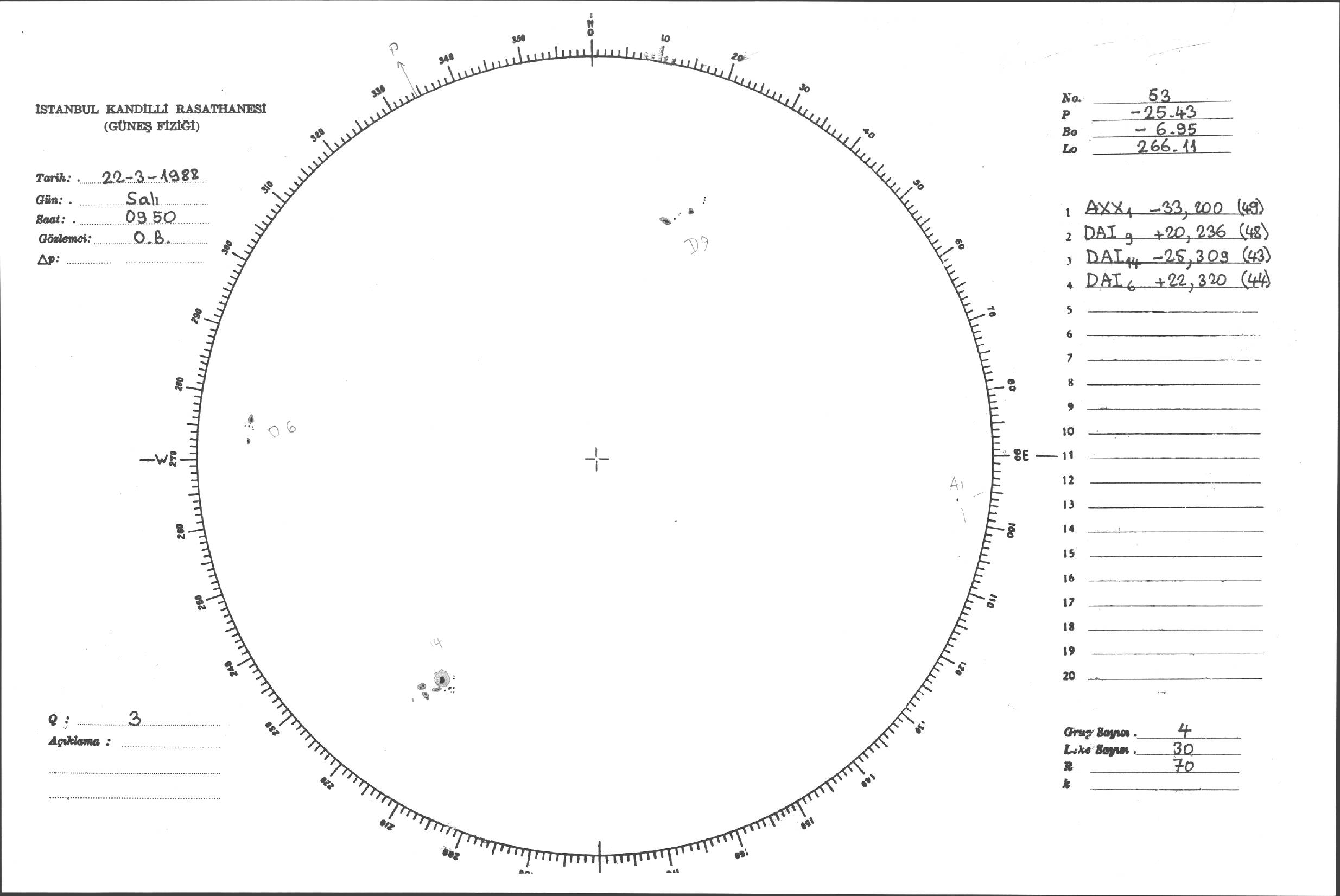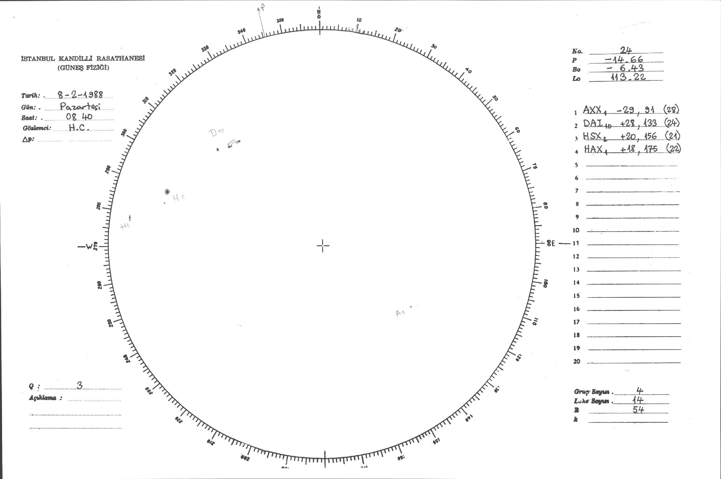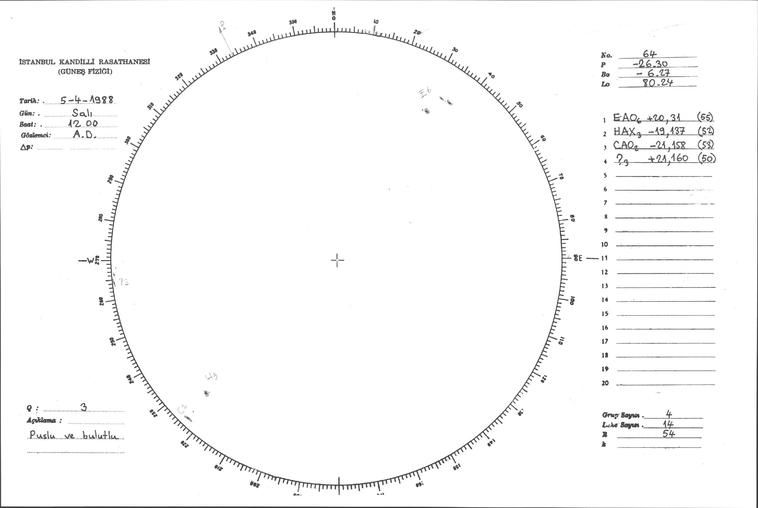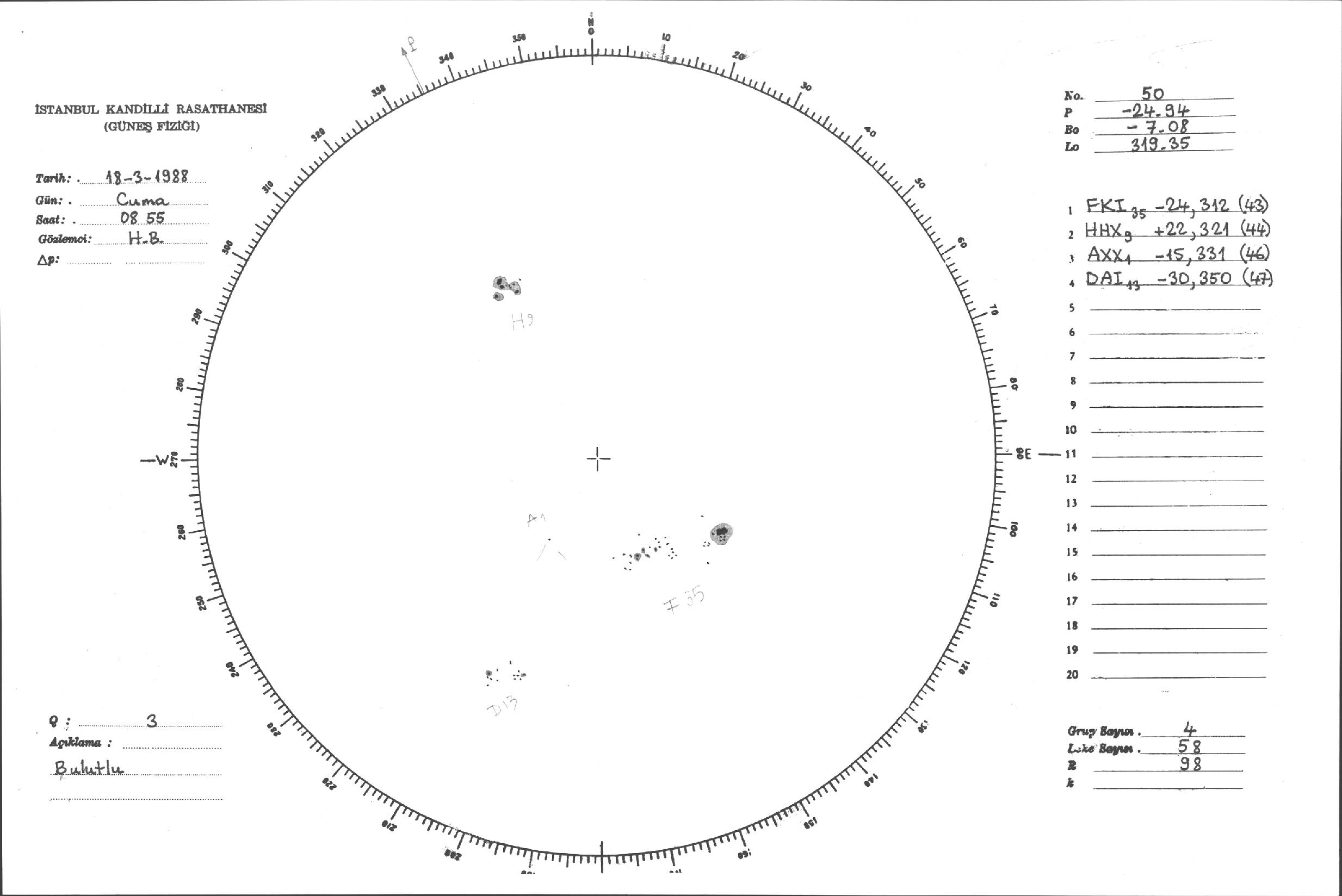 Güneş Lekesi Çizimleri / Kandilli Sunspot Drawings