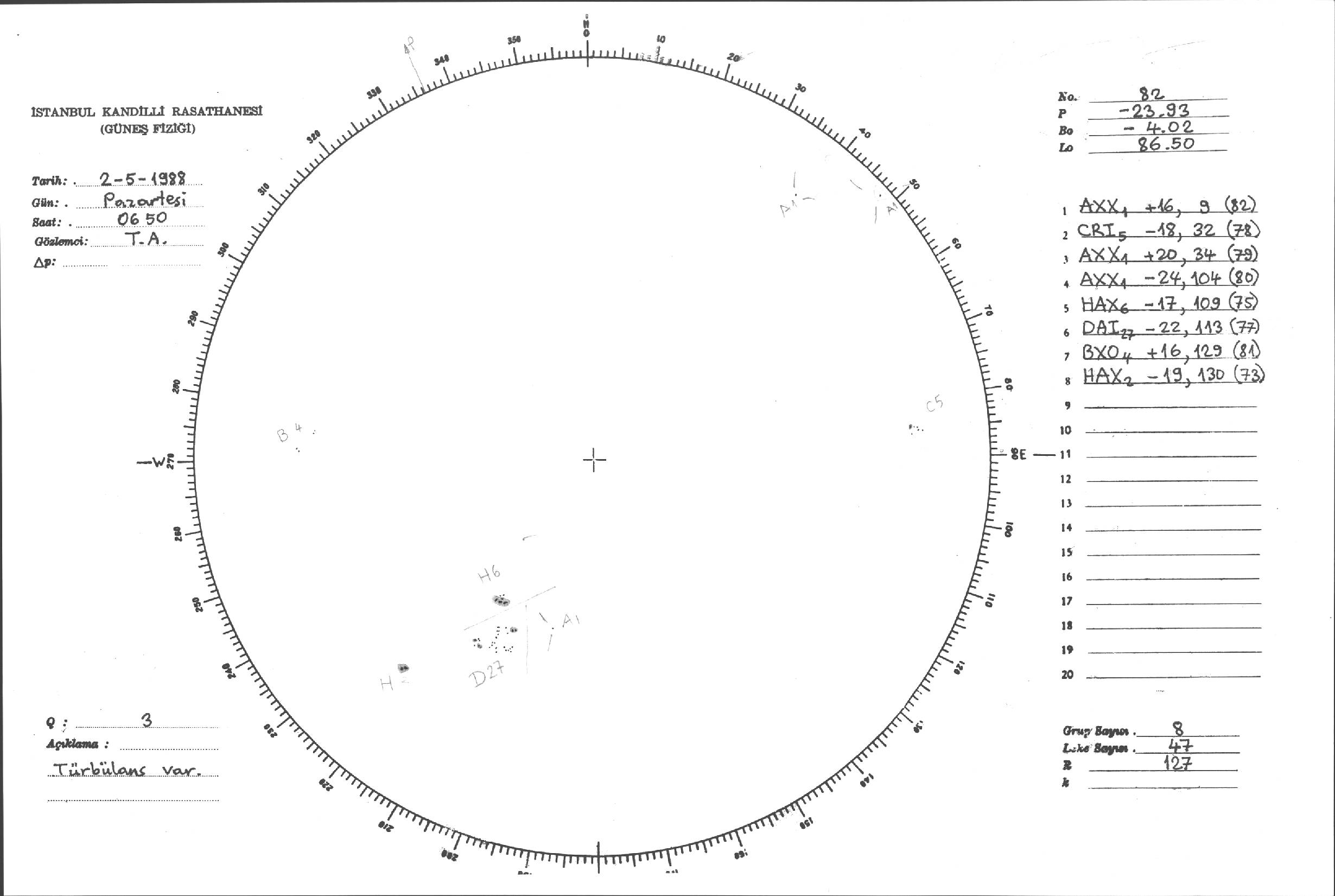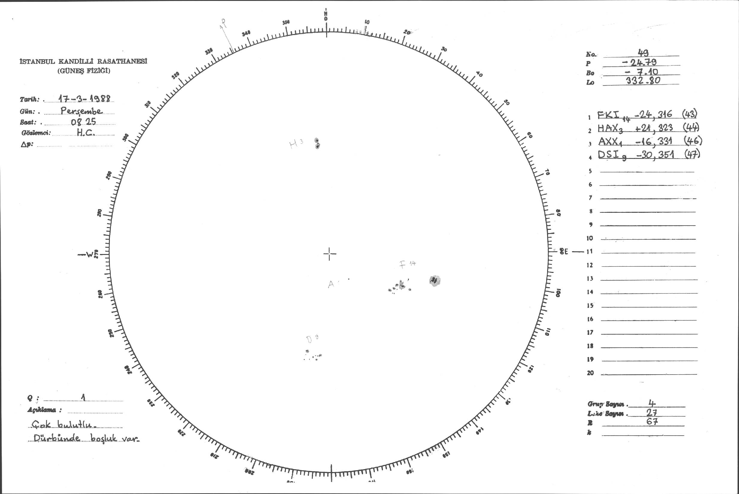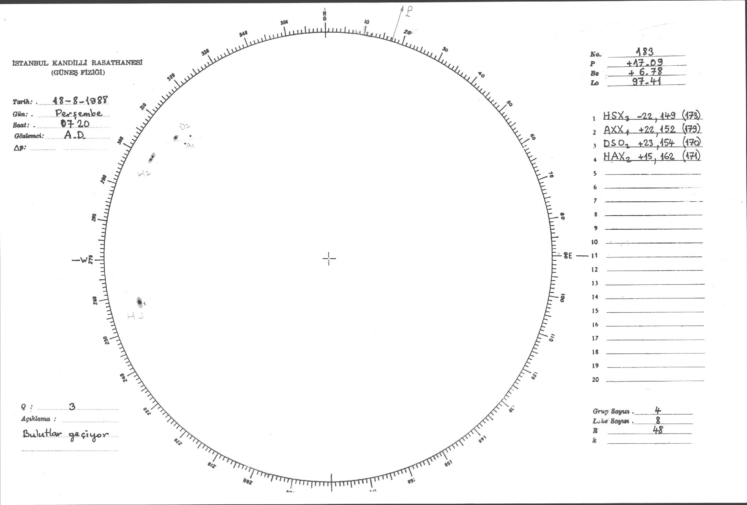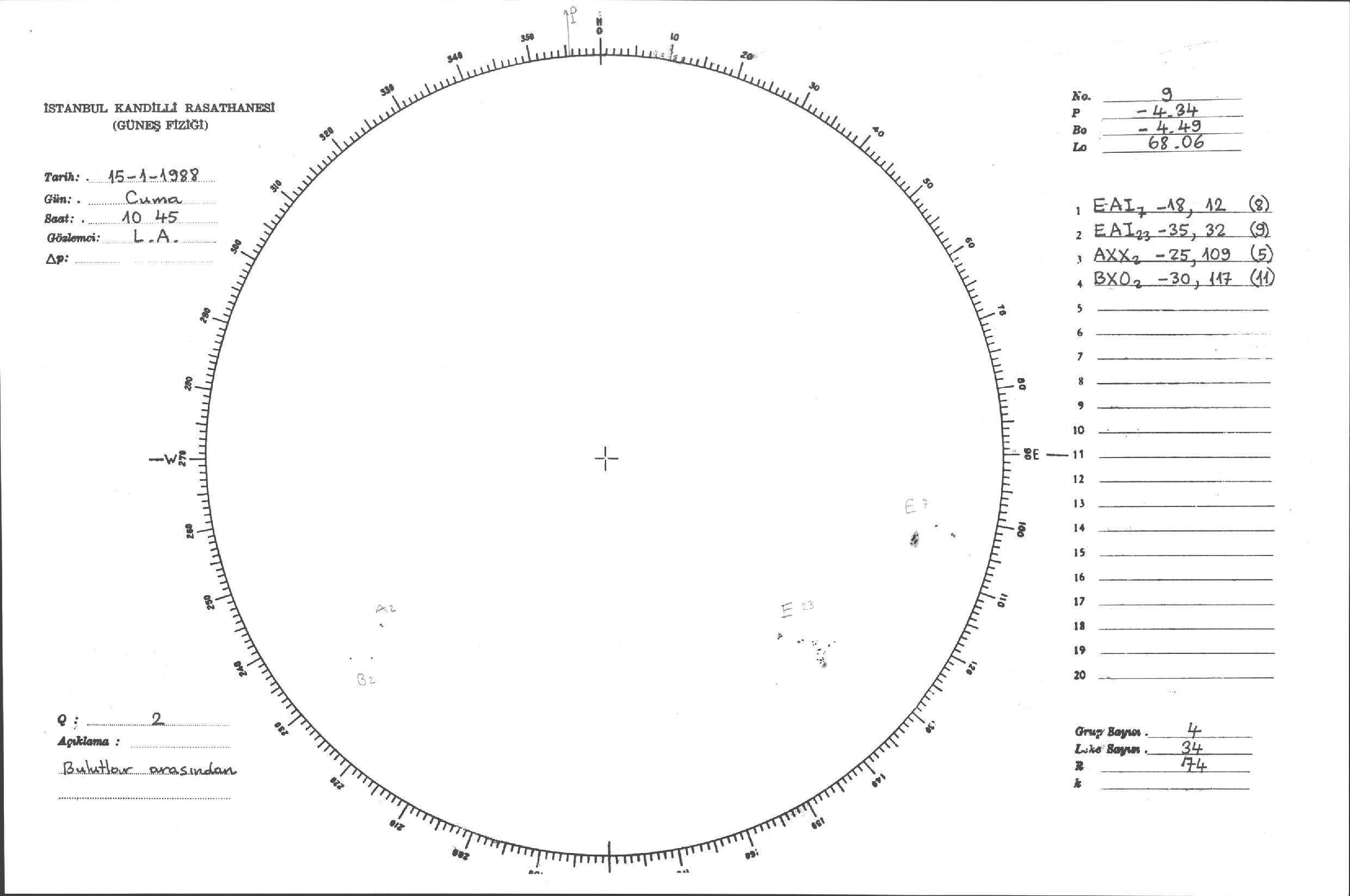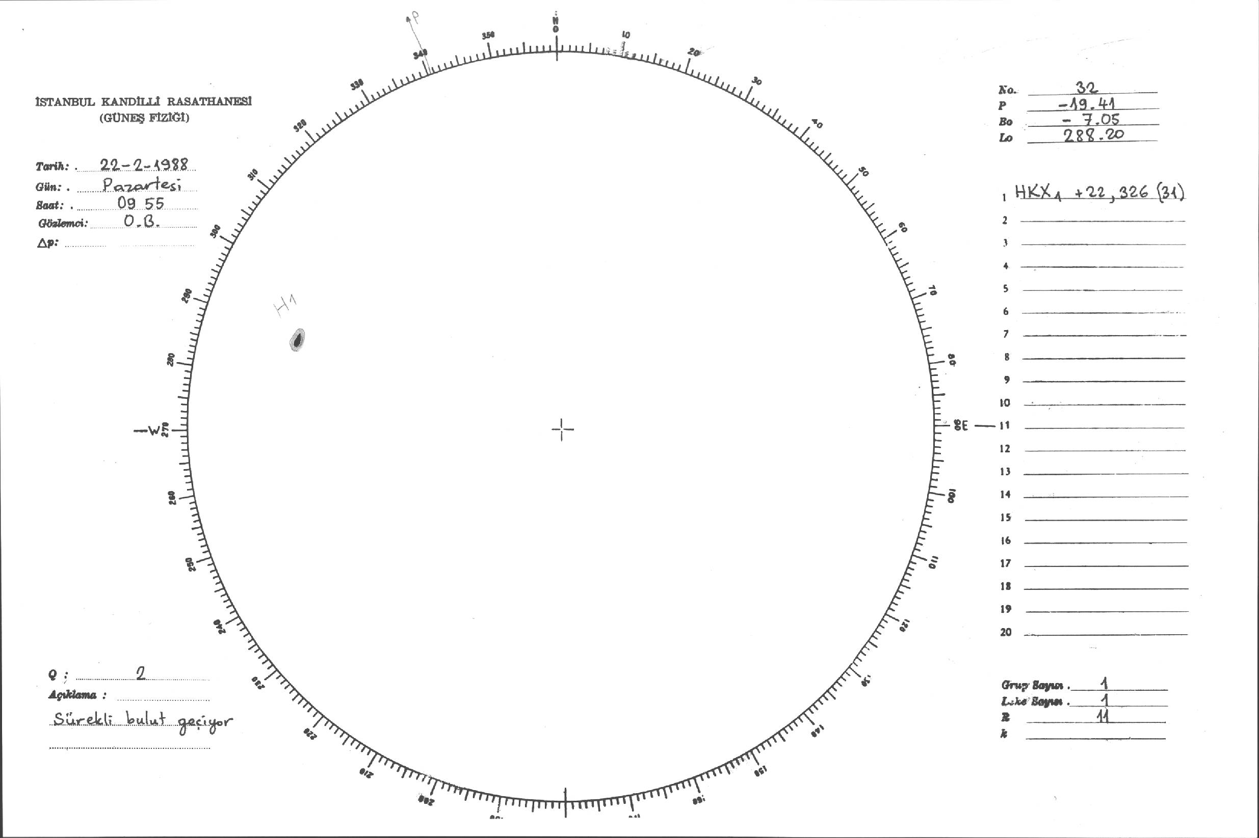 Güneş Lekesi Çizimleri / Kandilli Sunspot Drawings