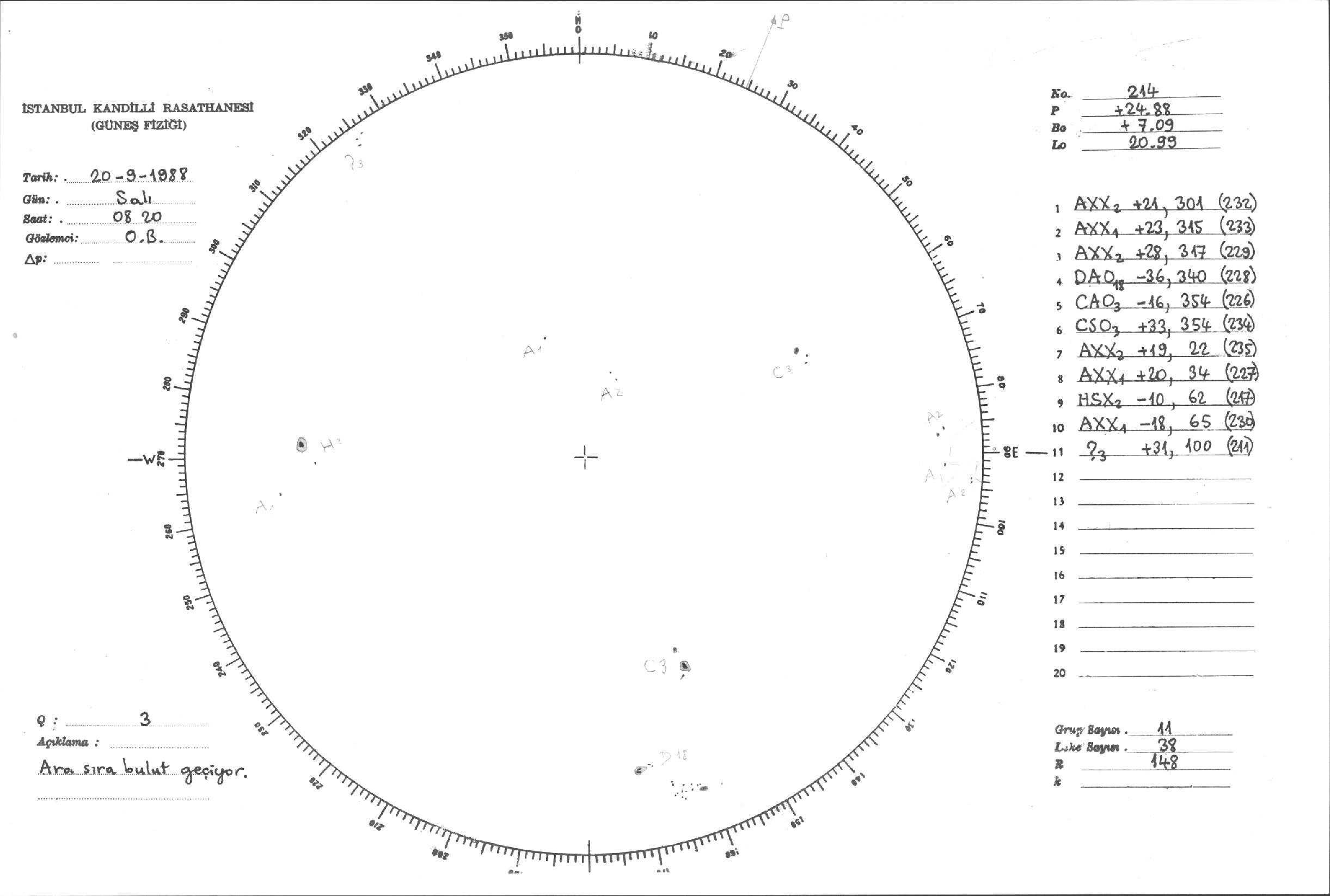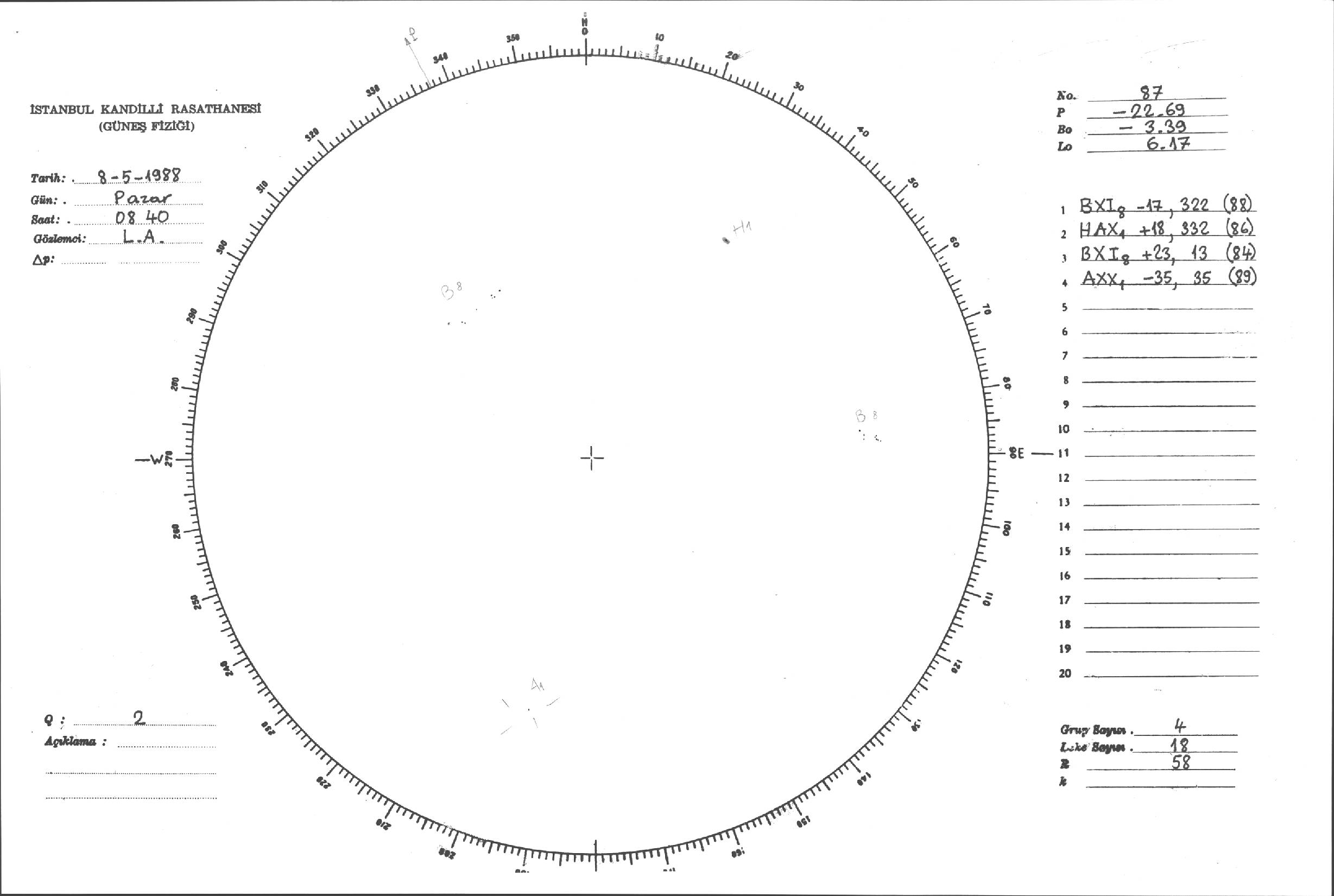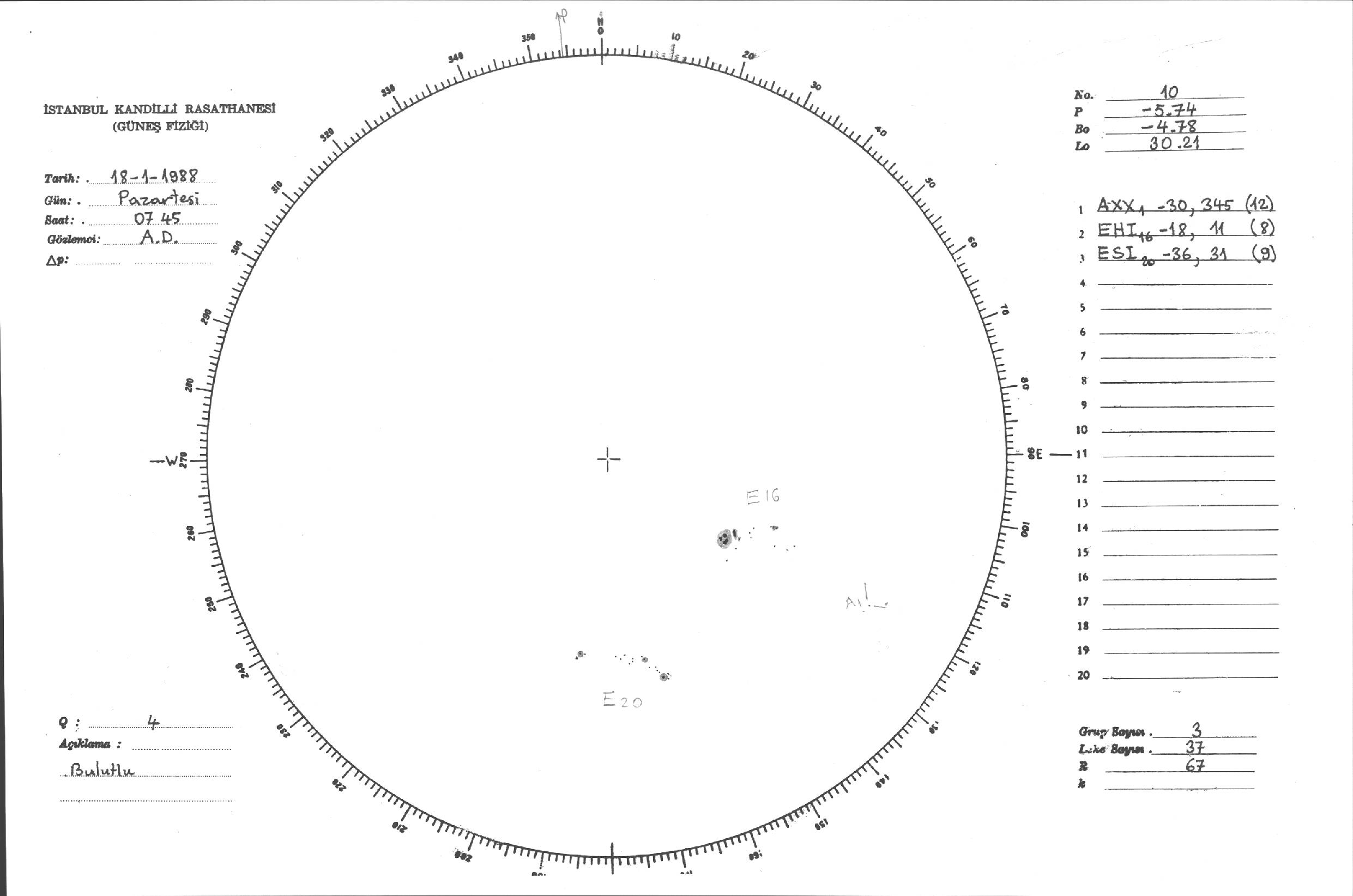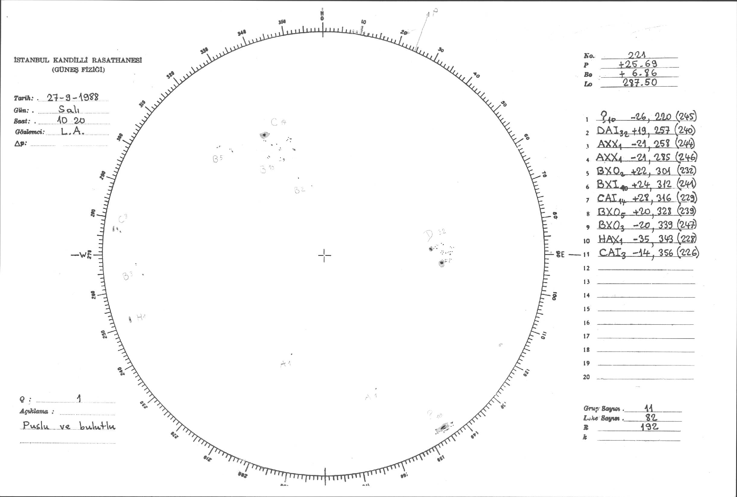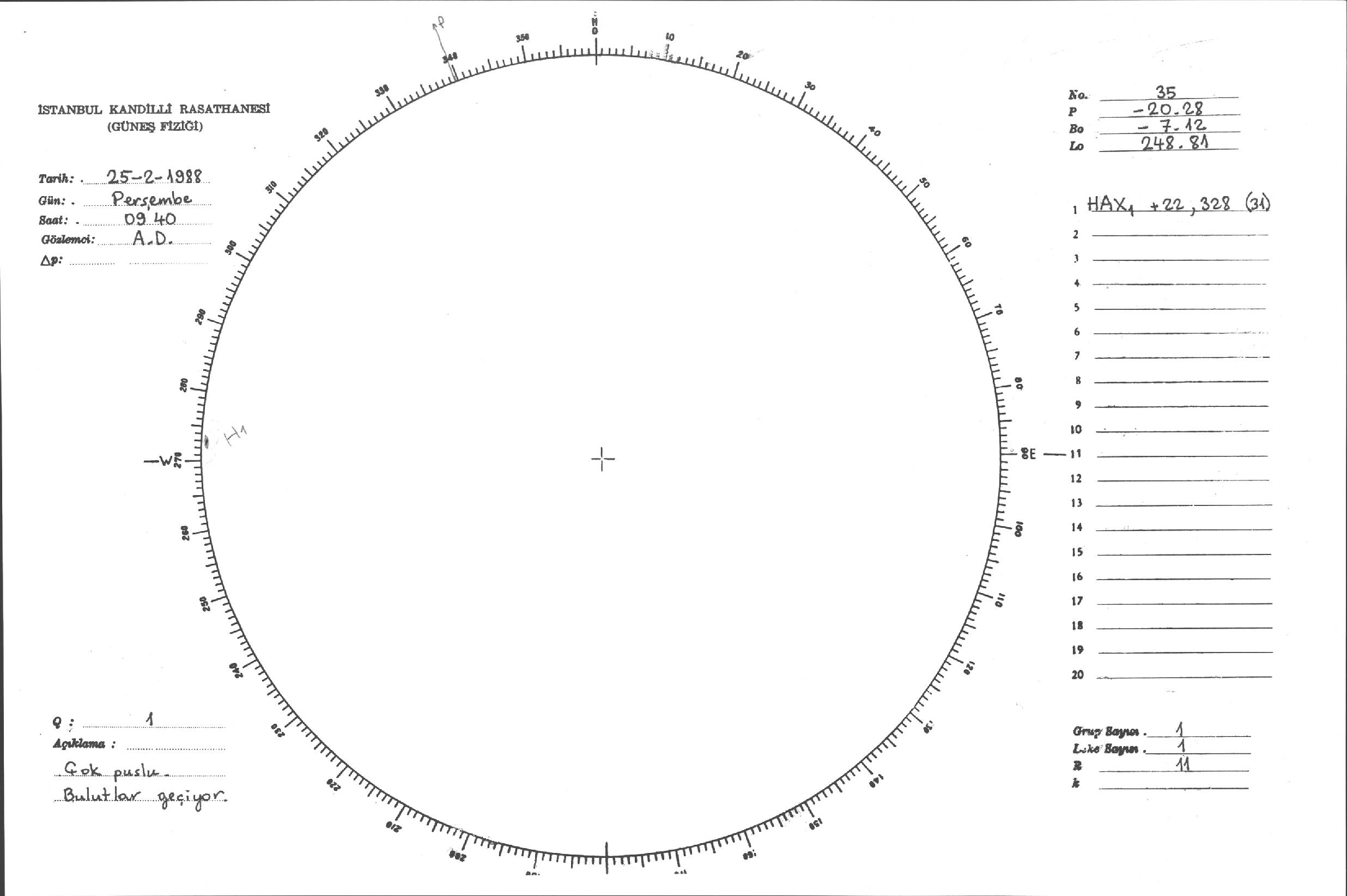 Güneş Lekesi Çizimleri / Kandilli Sunspot Drawings