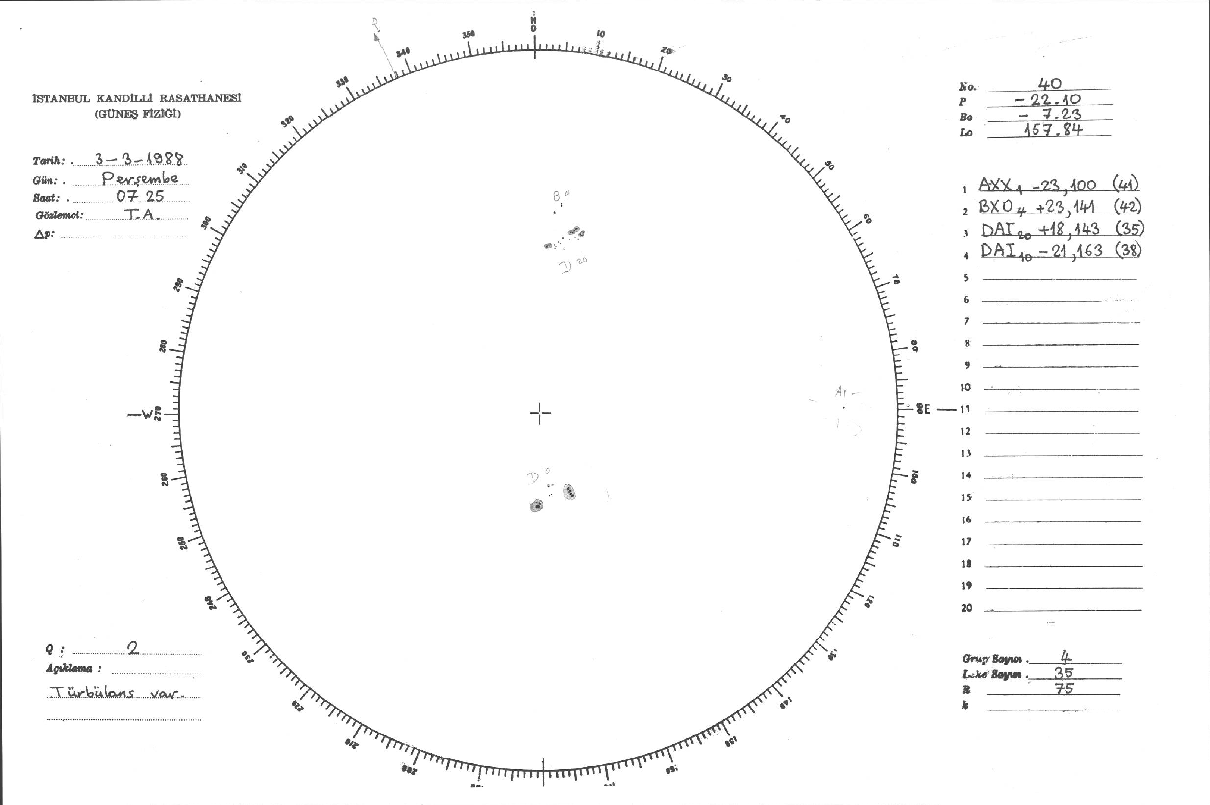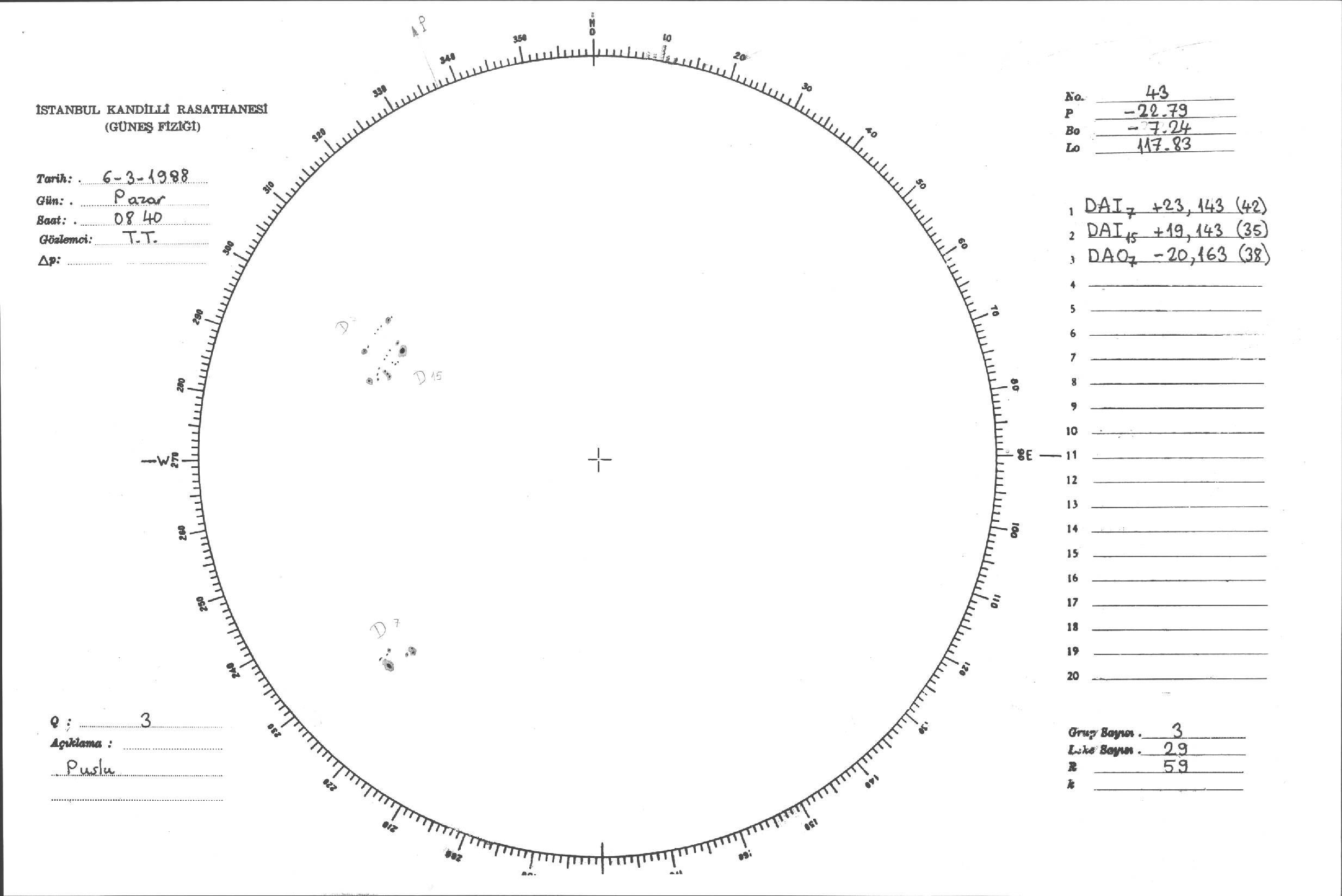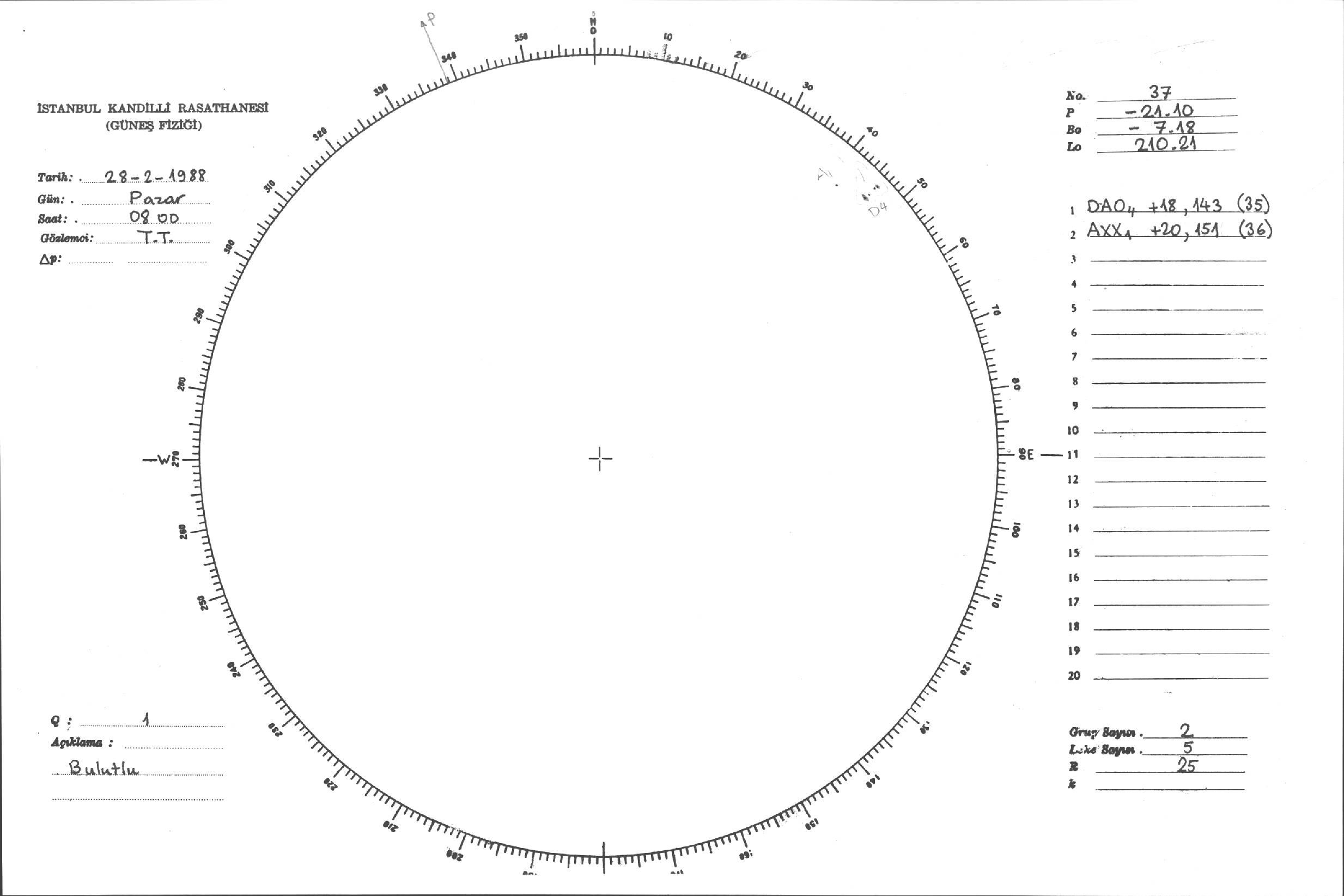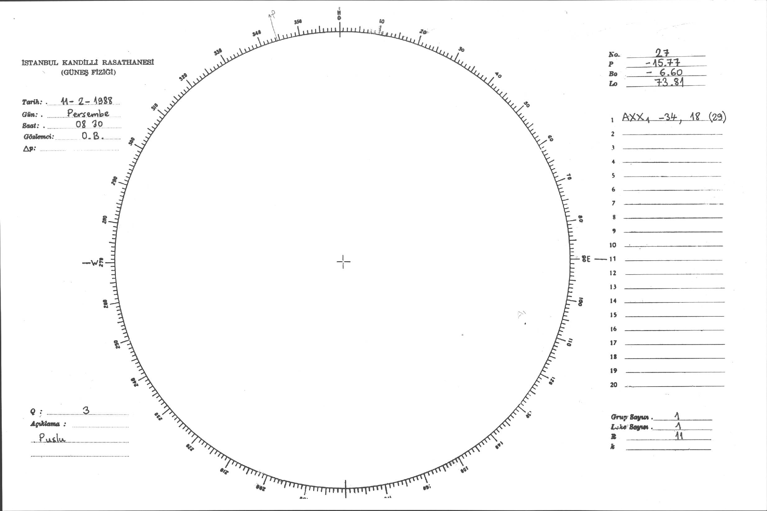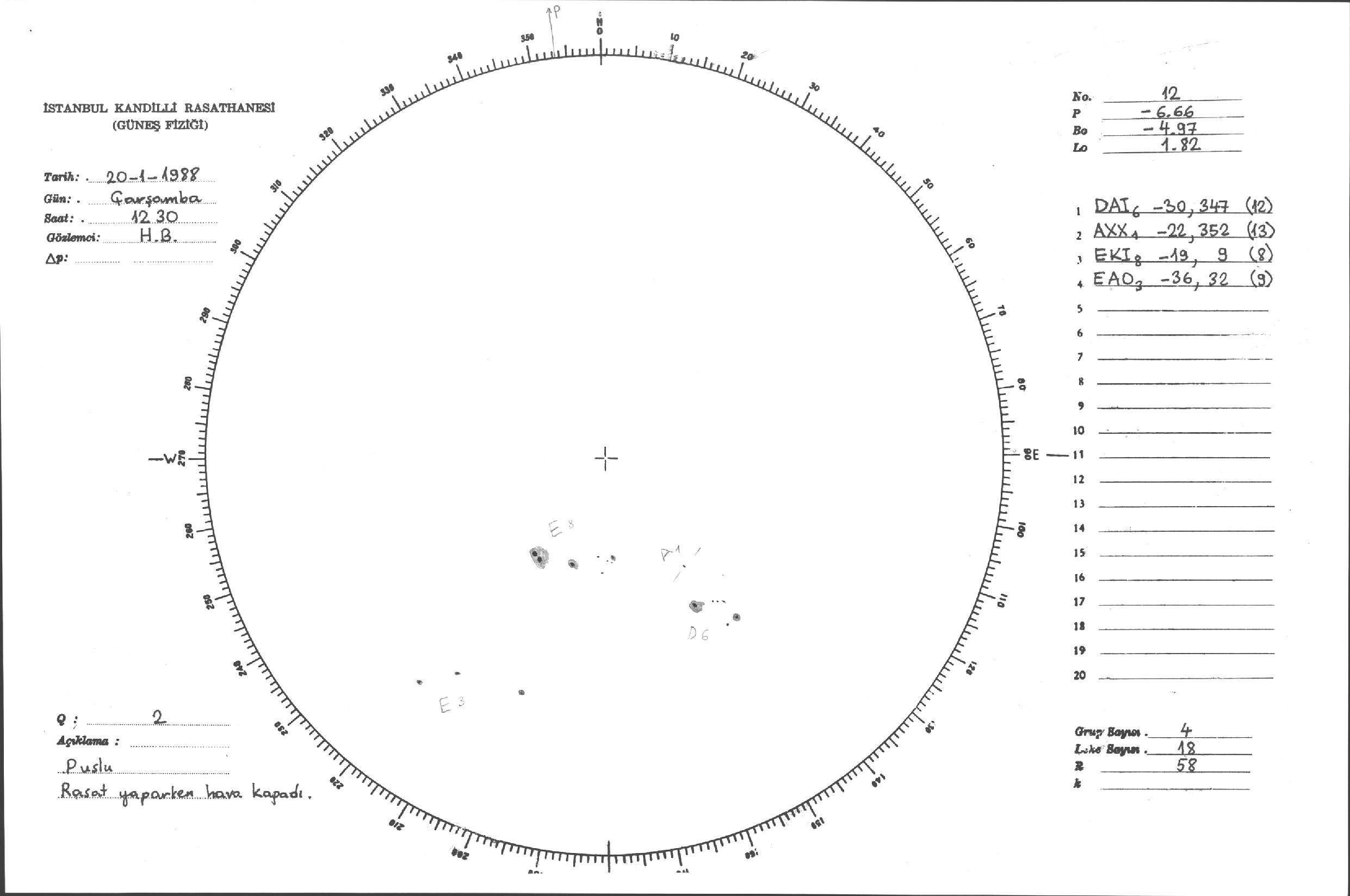 Güneş Lekesi Çizimleri / Kandilli Sunspot Drawings