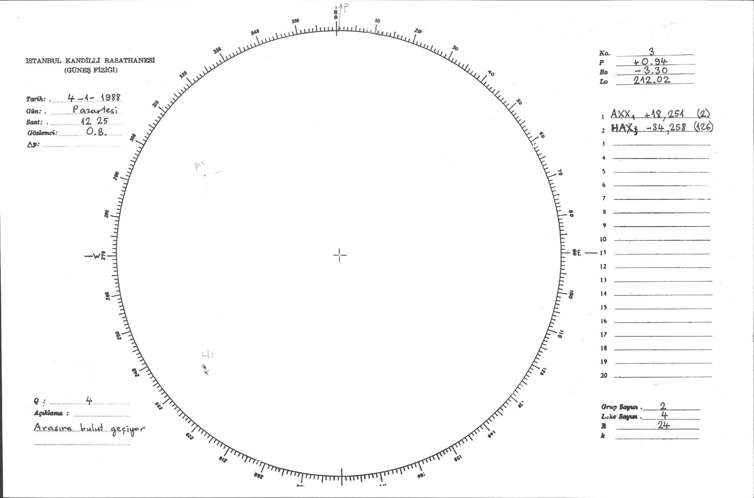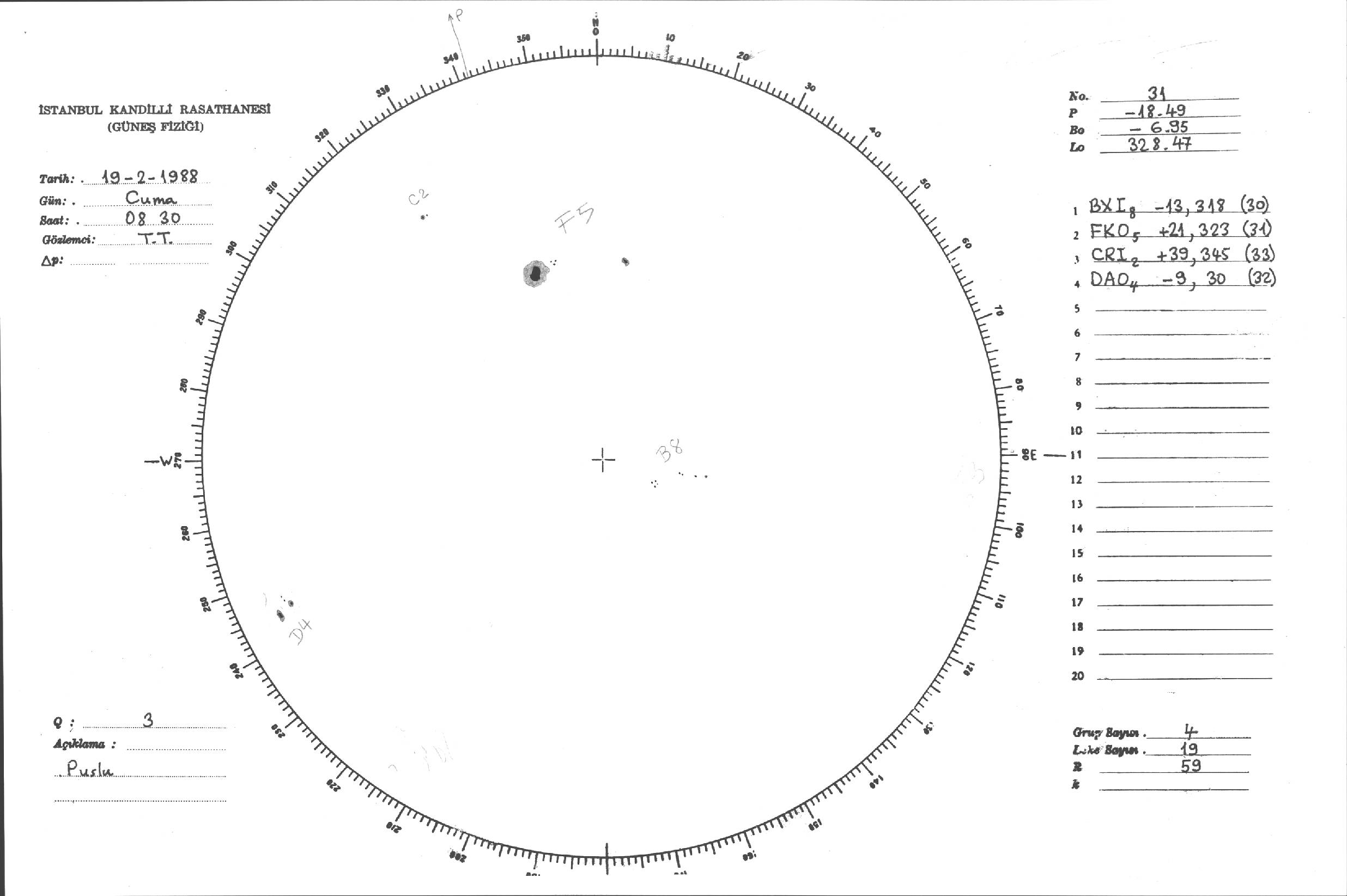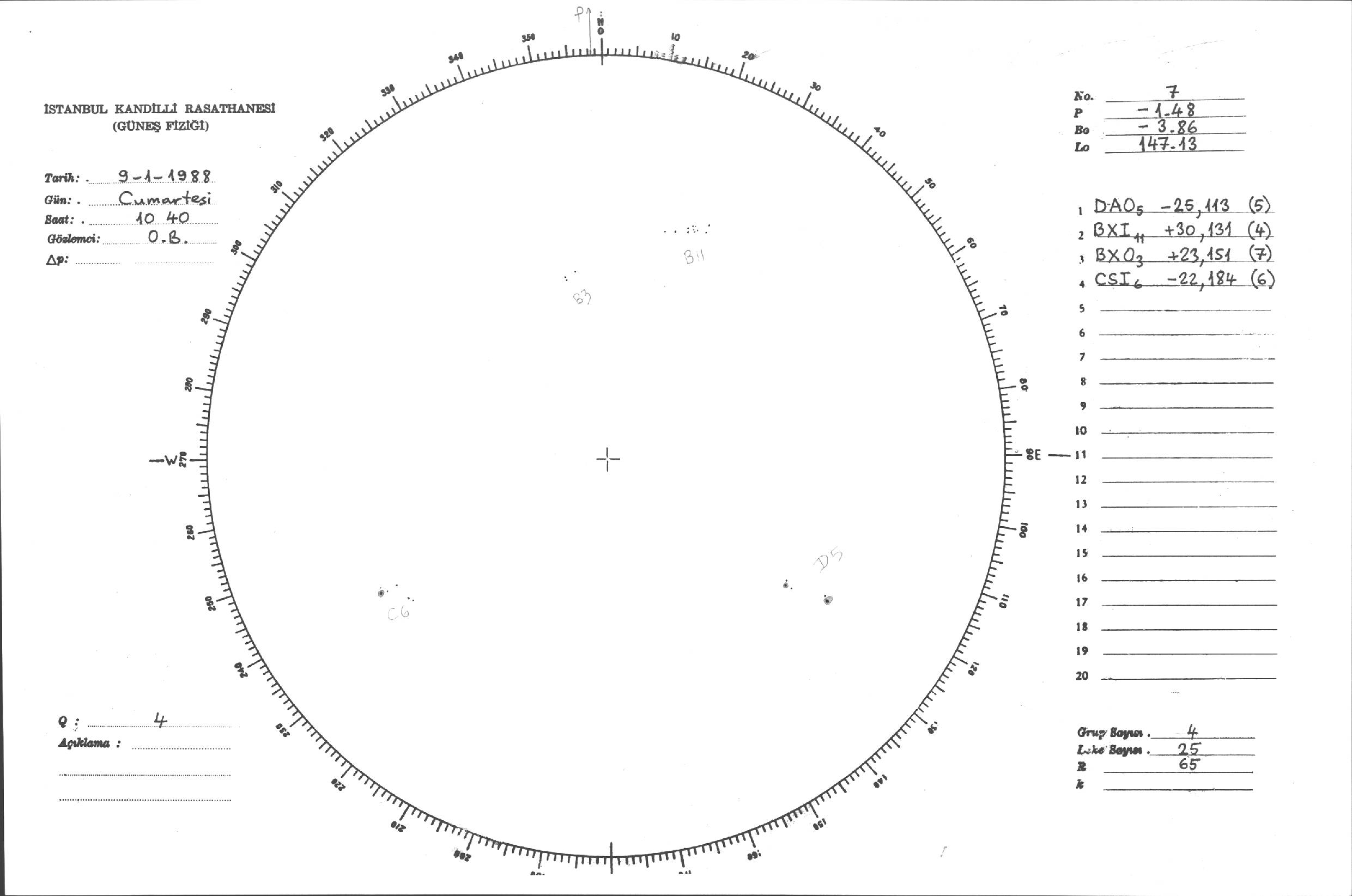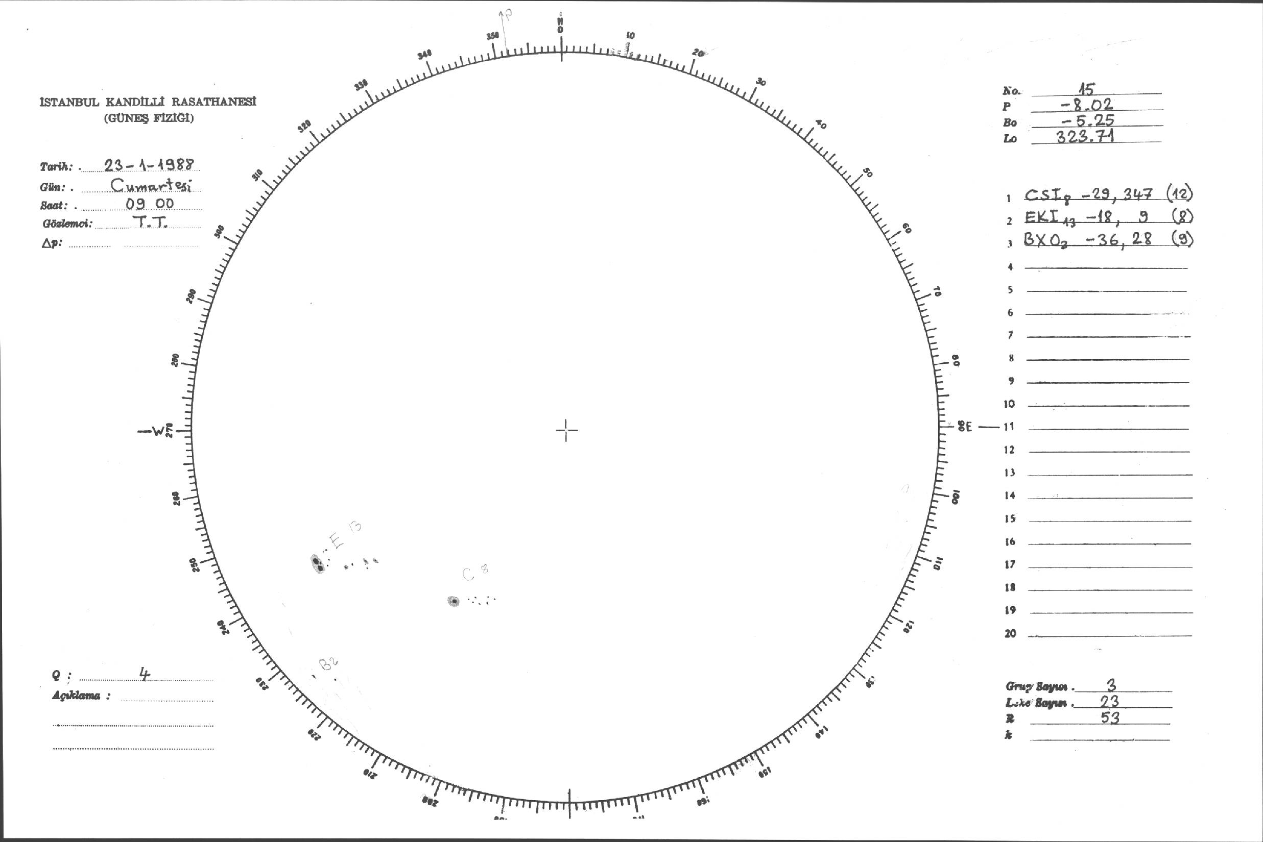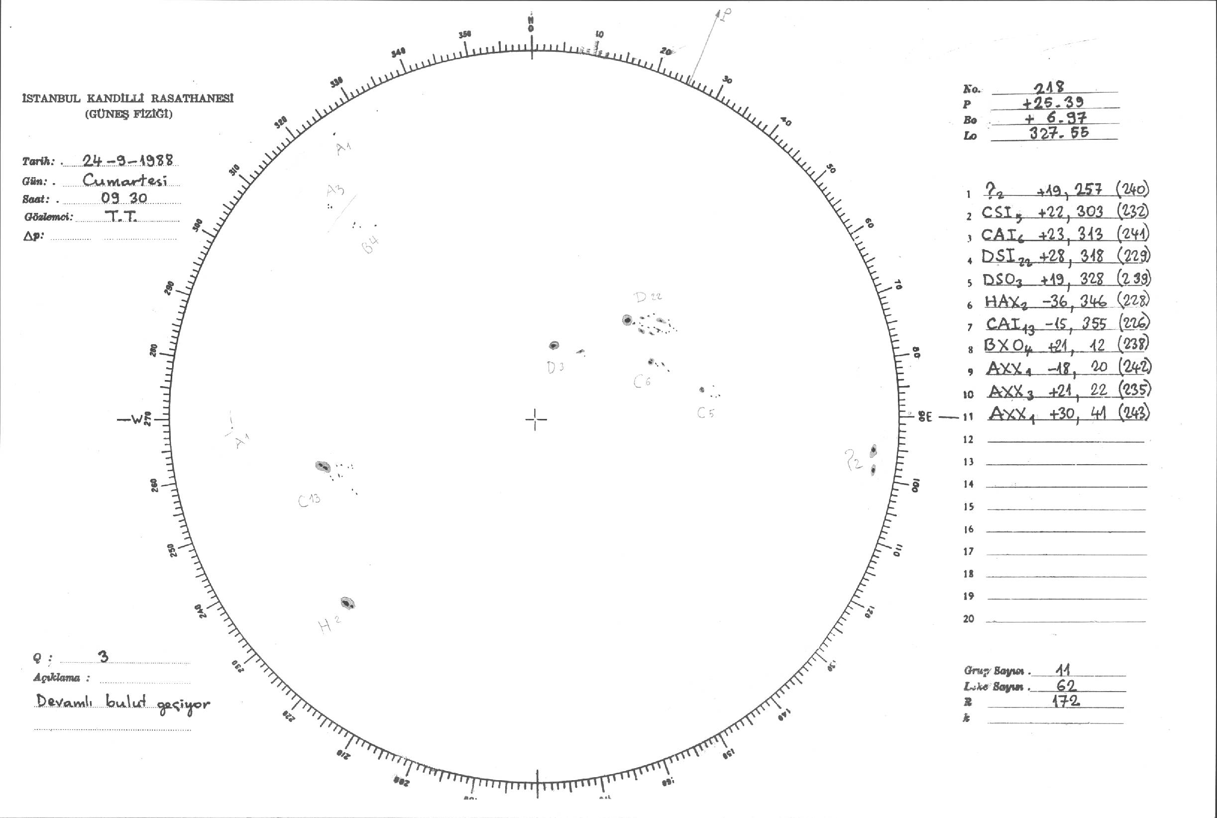 Güneş Lekesi Çizimleri / Kandilli Sunspot Drawings