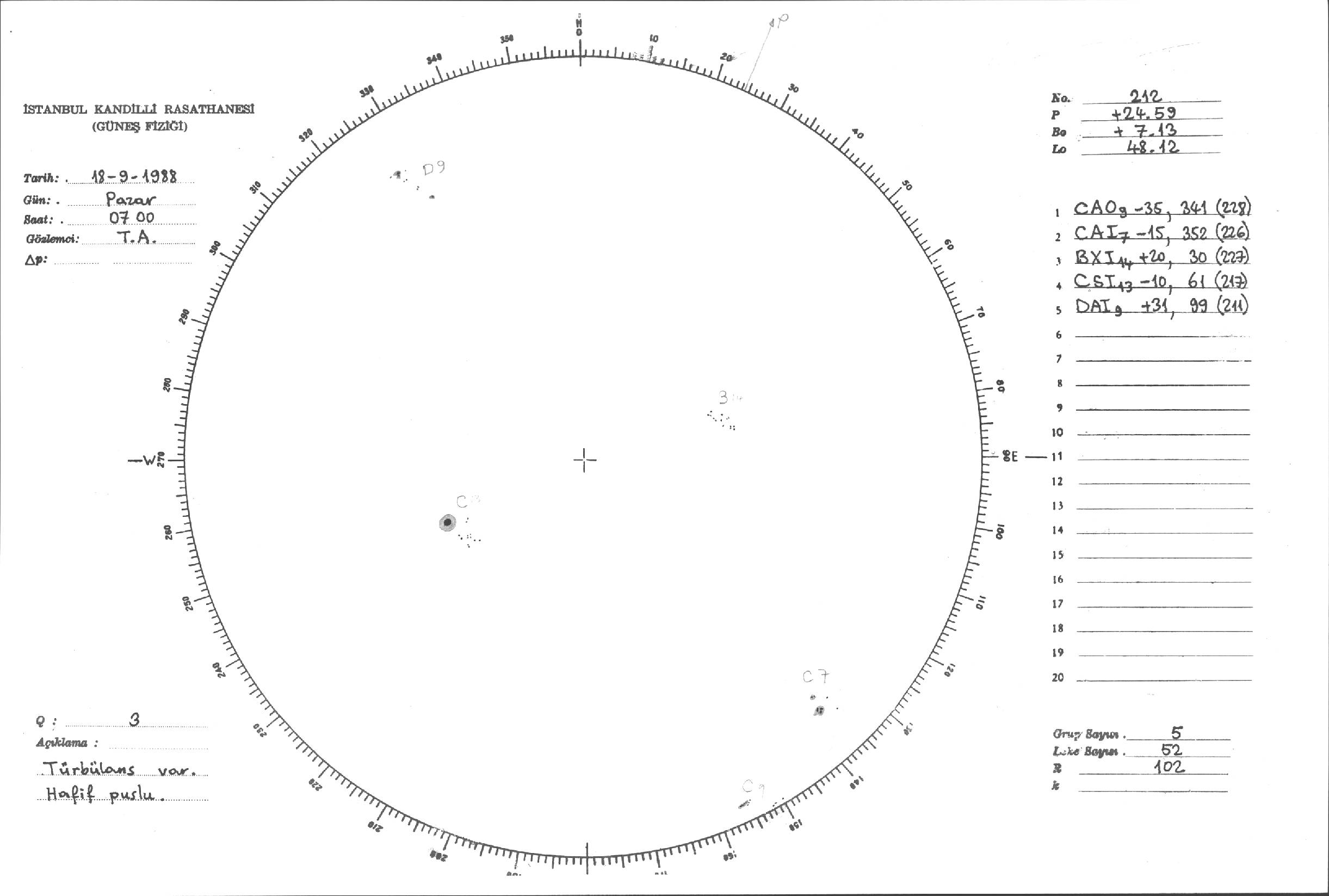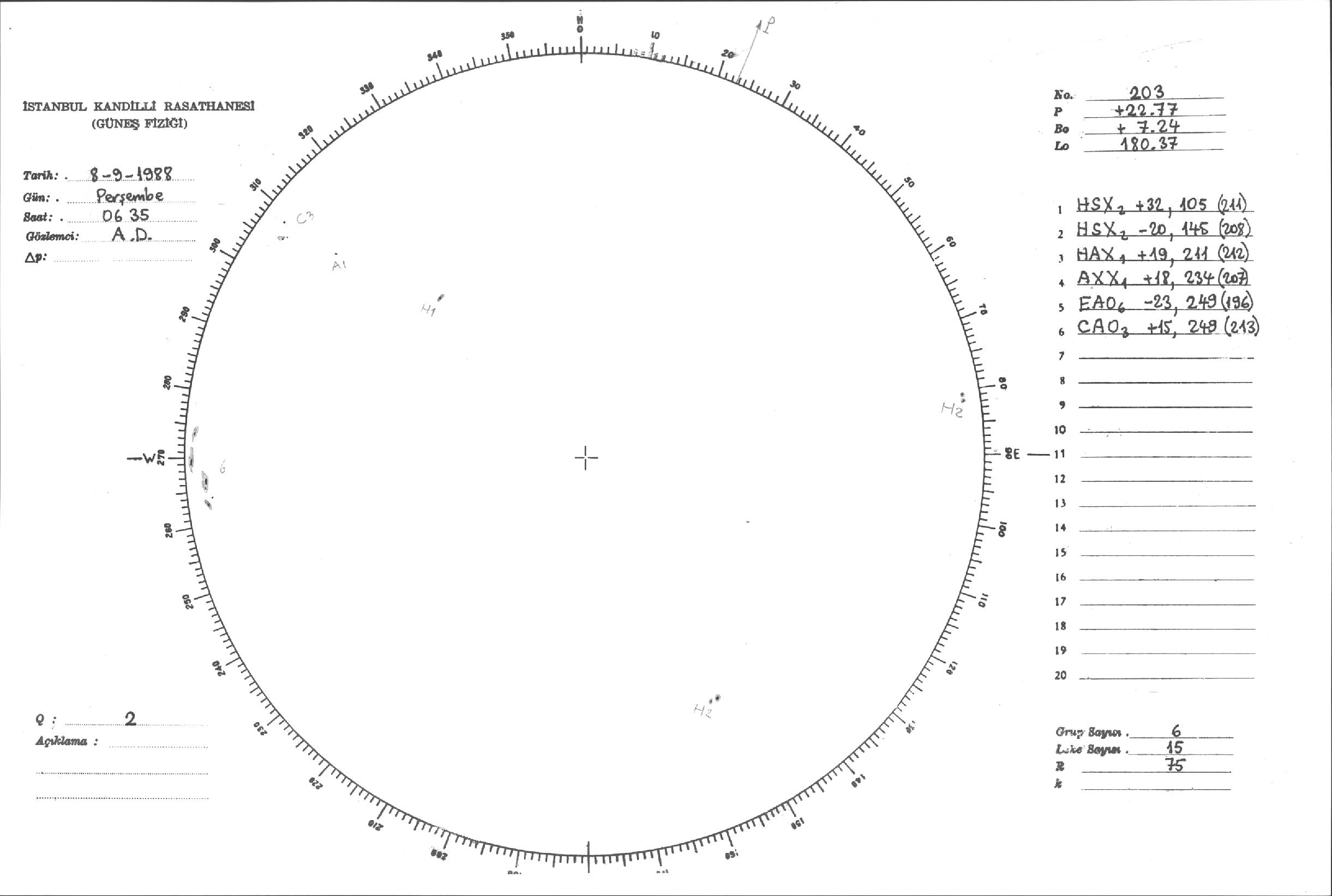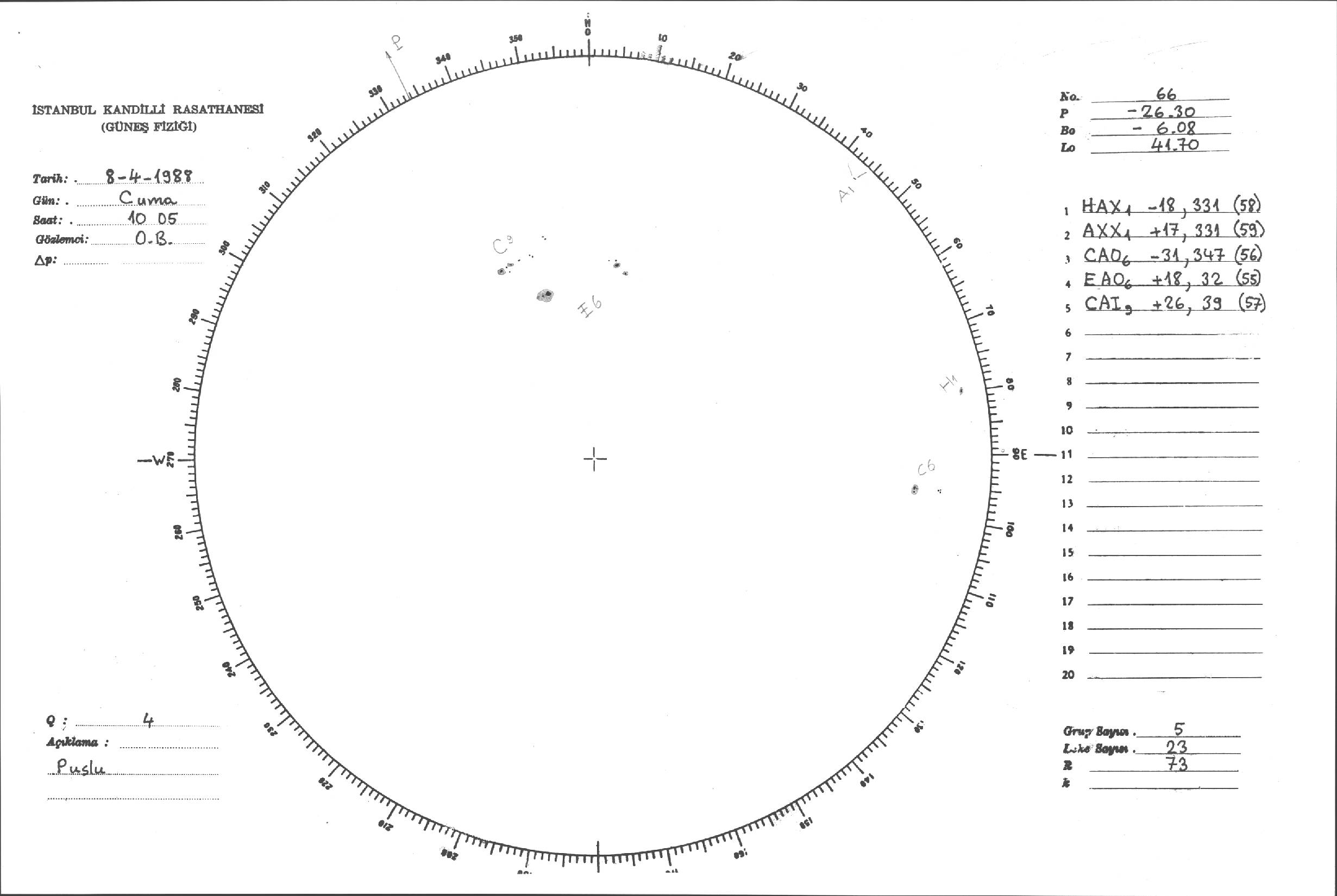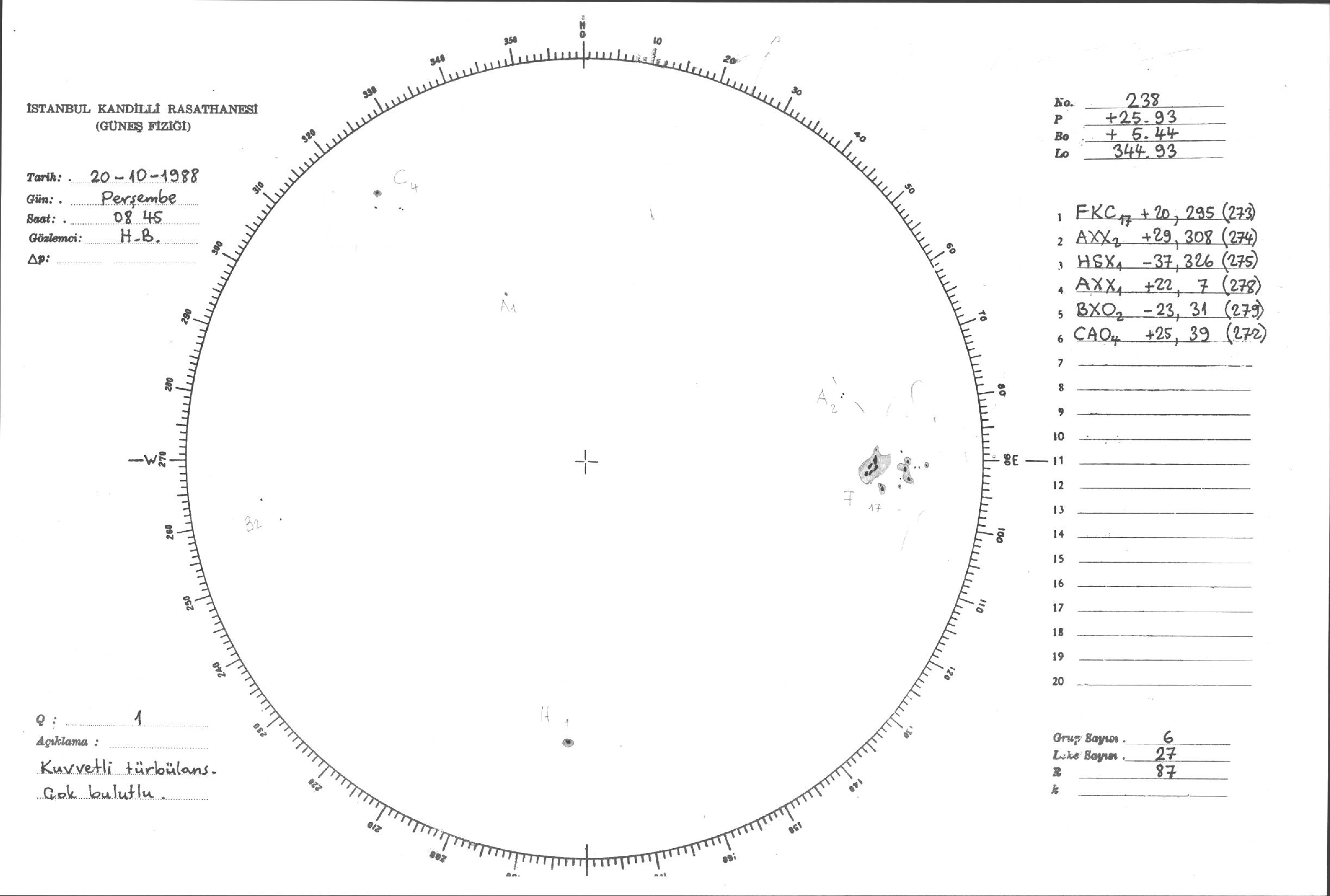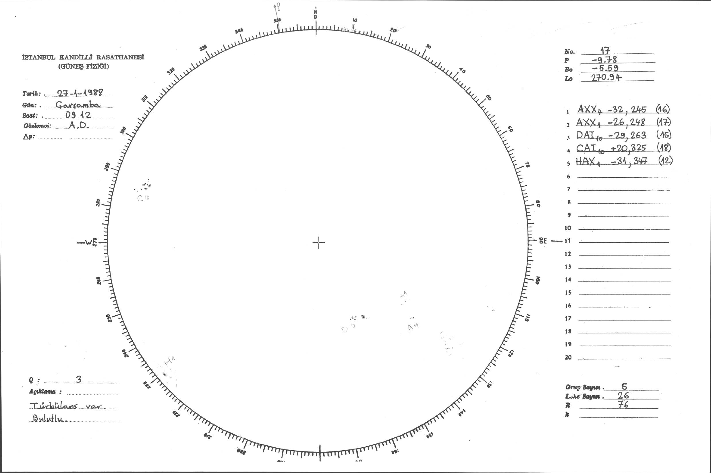 Güneş Lekesi Çizimleri / Kandilli Sunspot Drawings