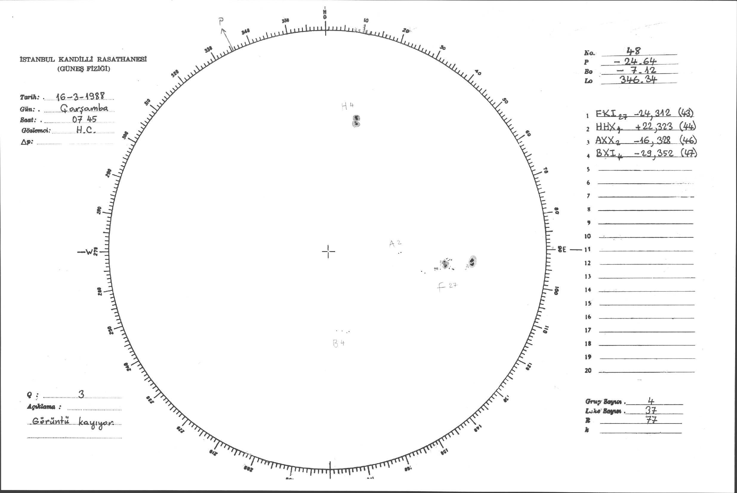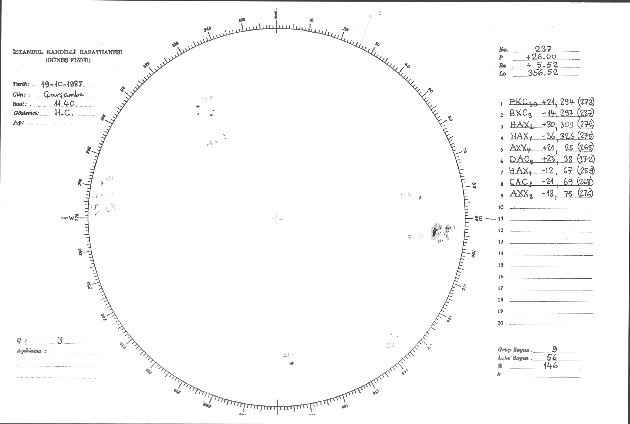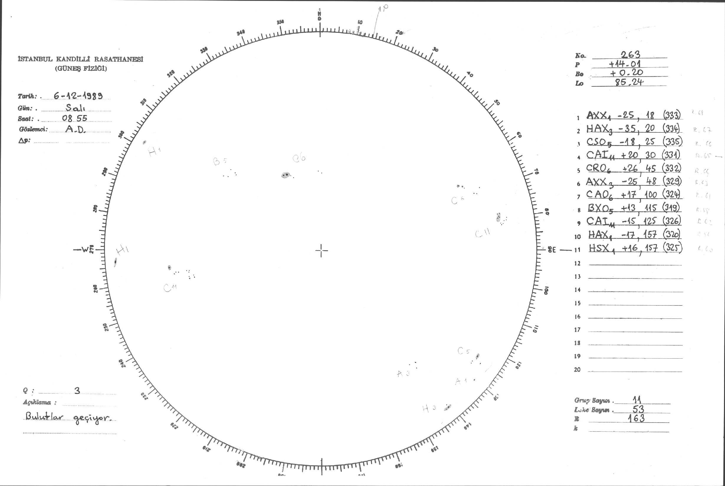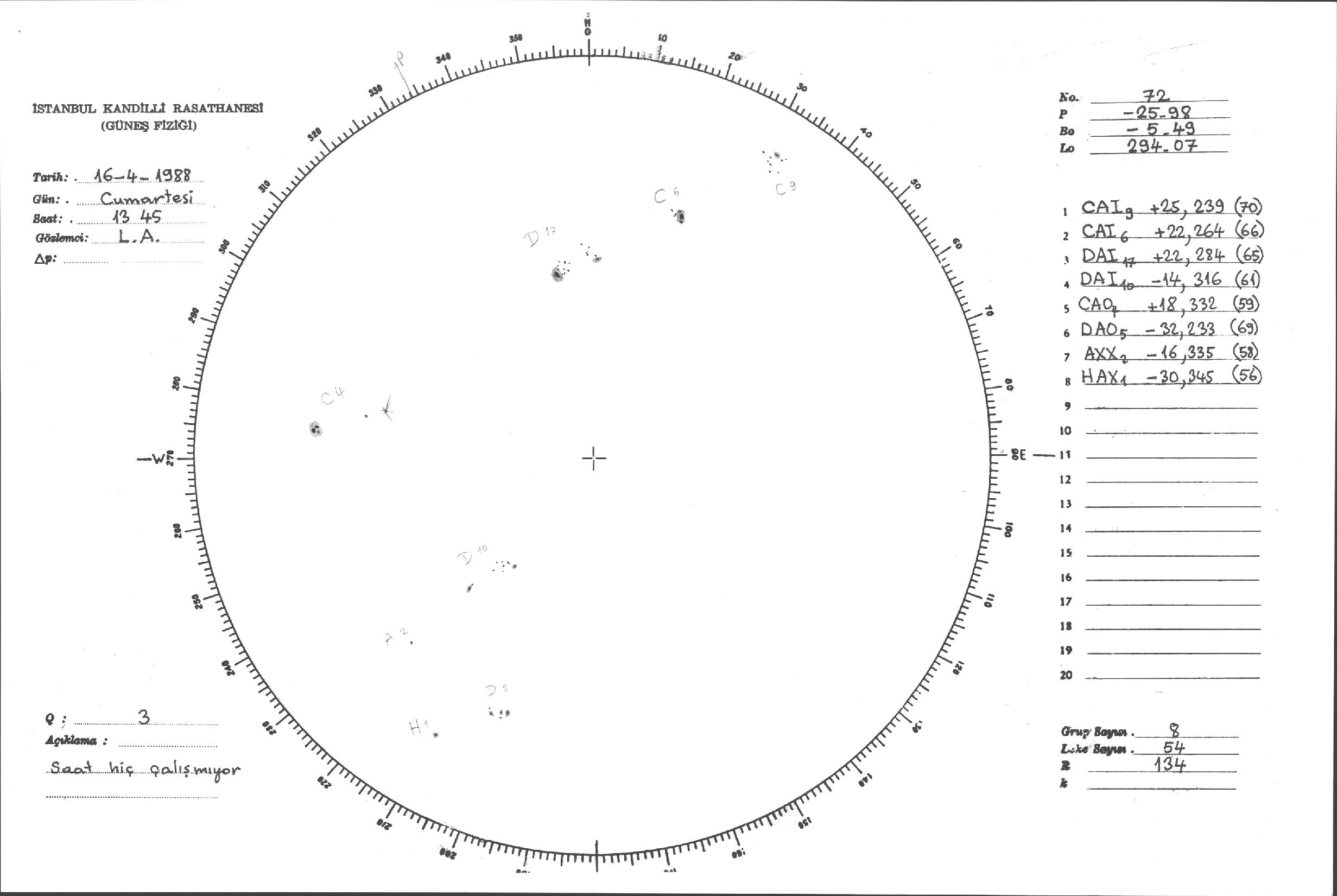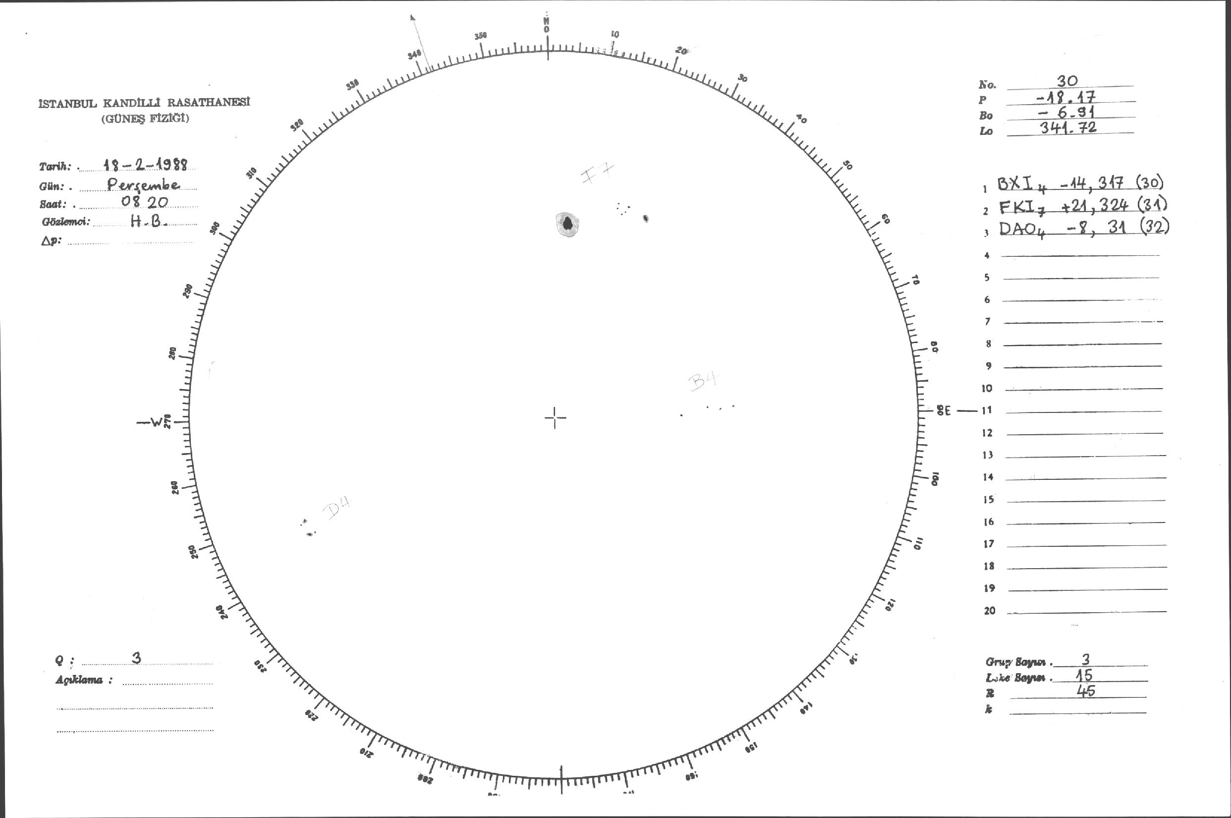Güneş Lekesi Çizimleri / Kandilli Sunspot Drawings