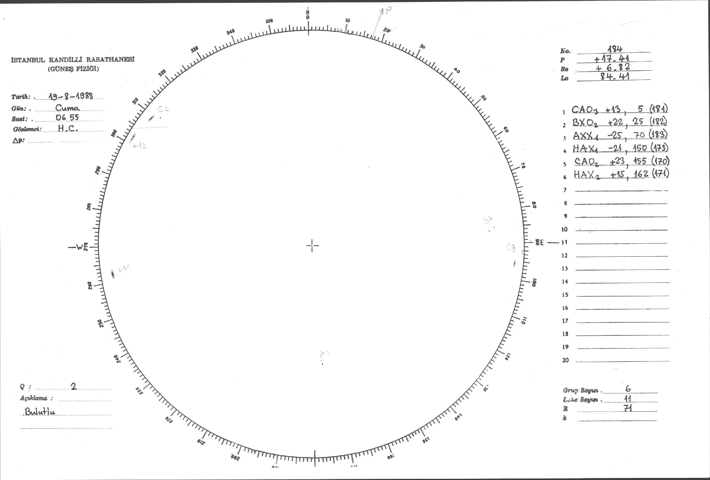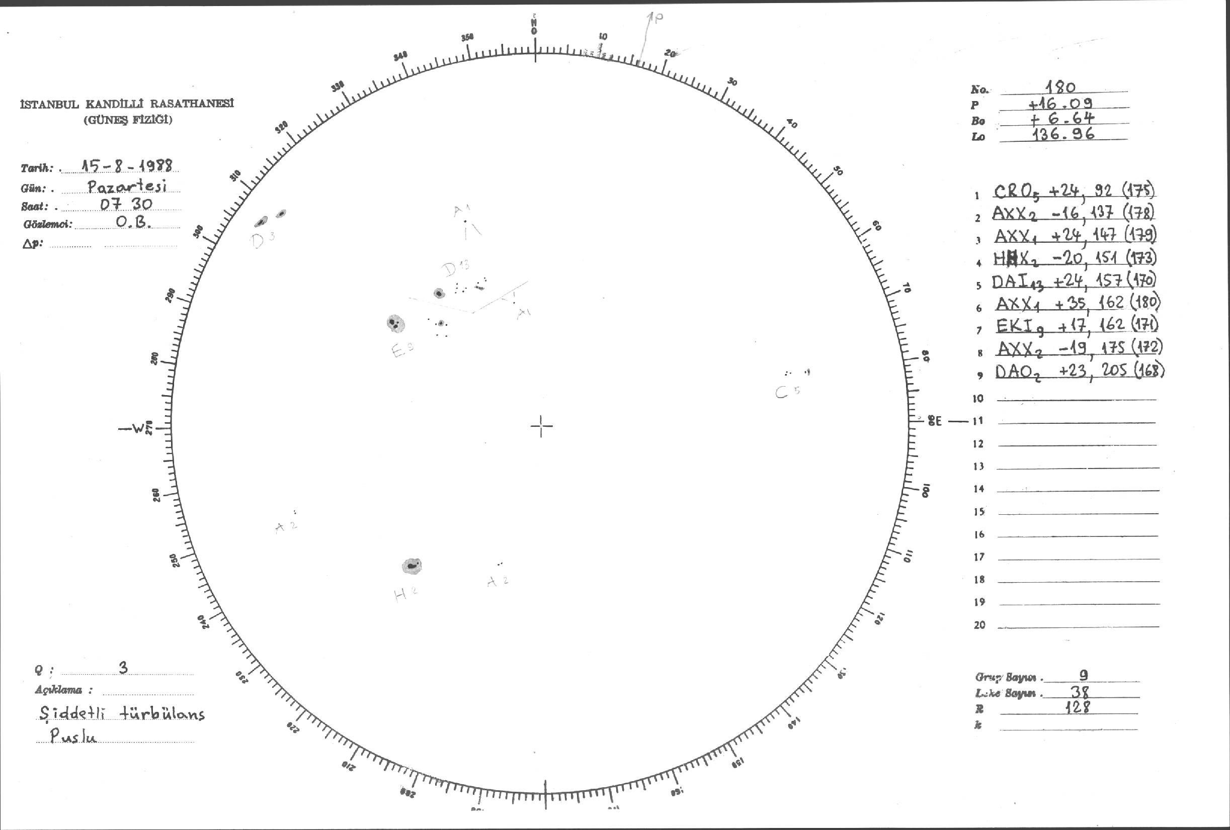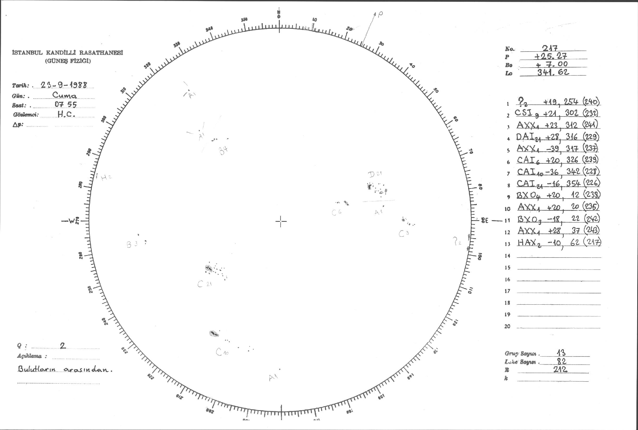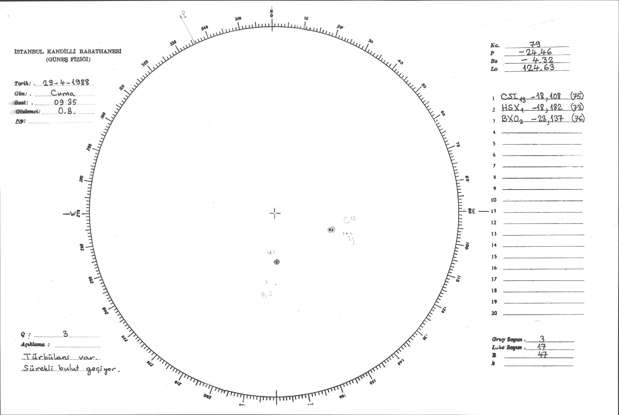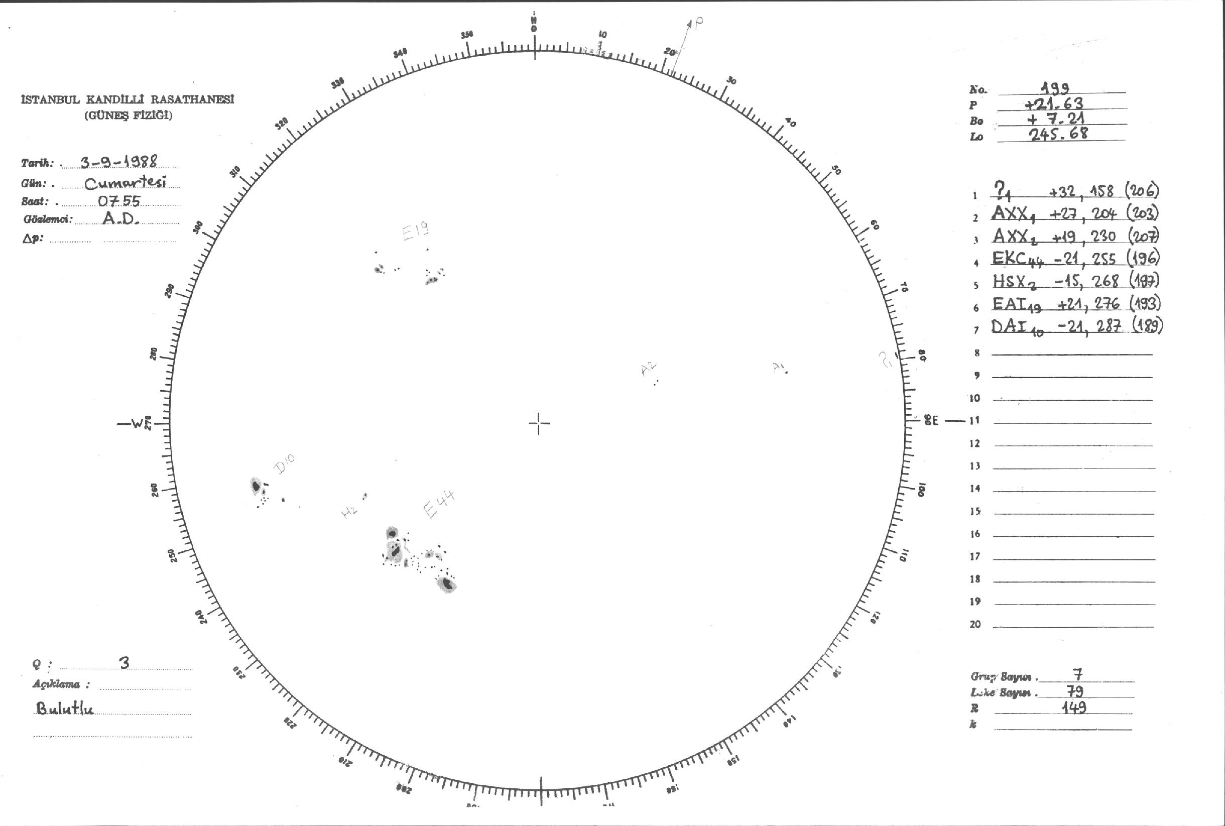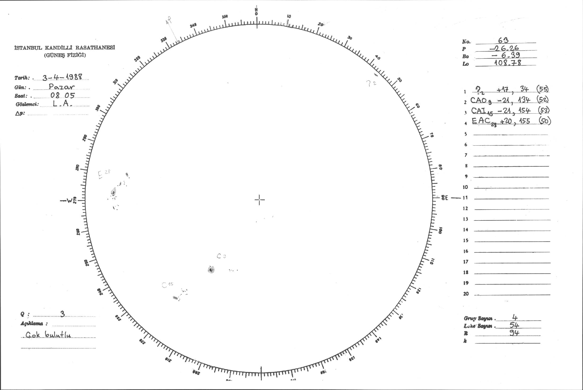 Güneş Lekesi Çizimleri / Kandilli Sunspot Drawings