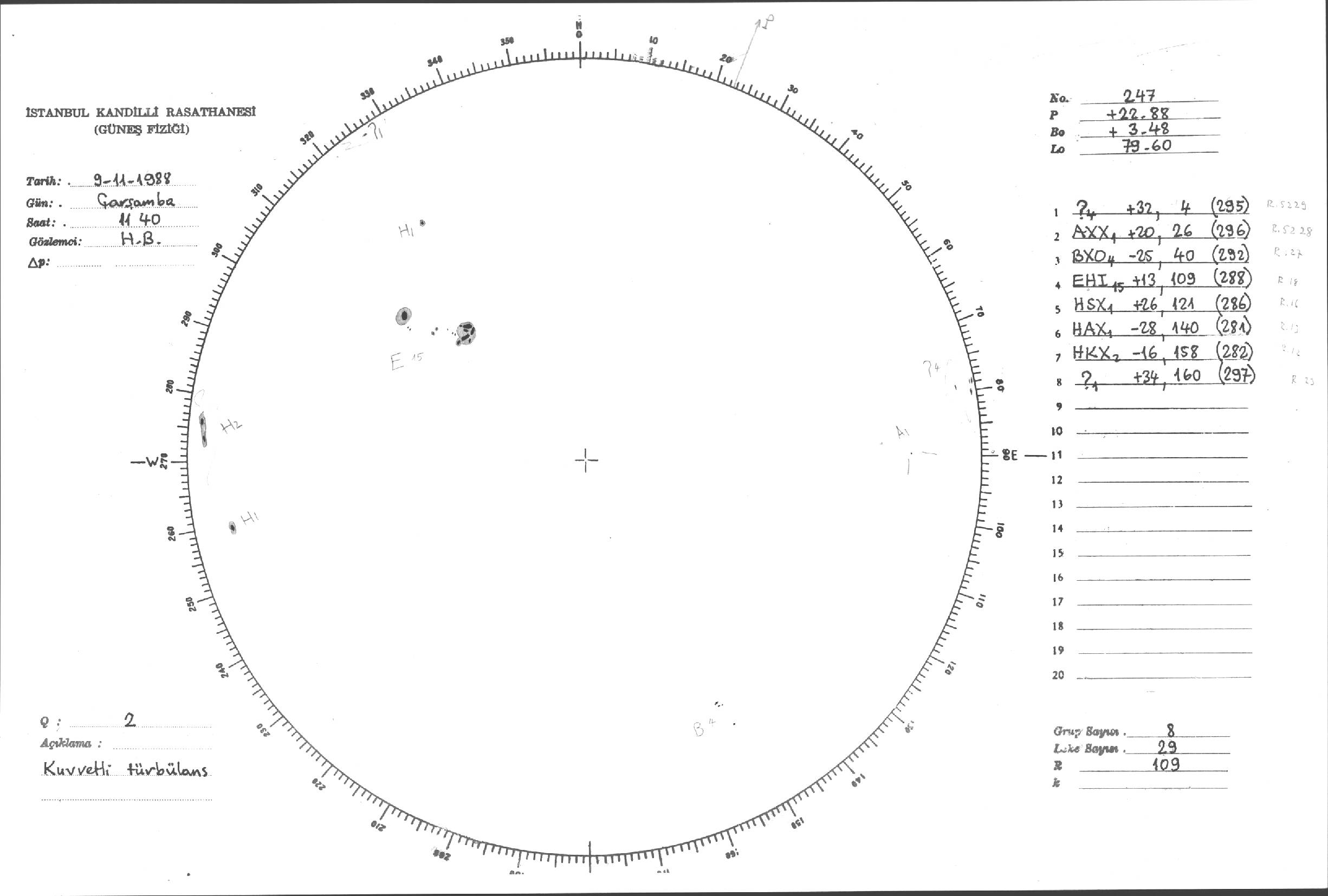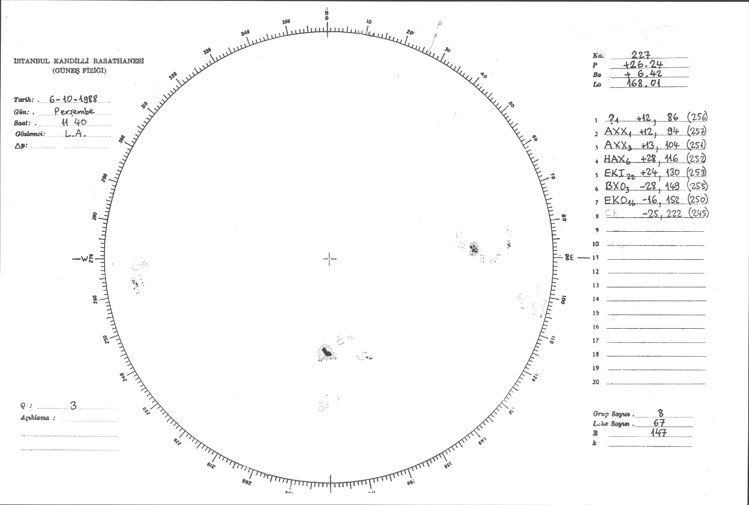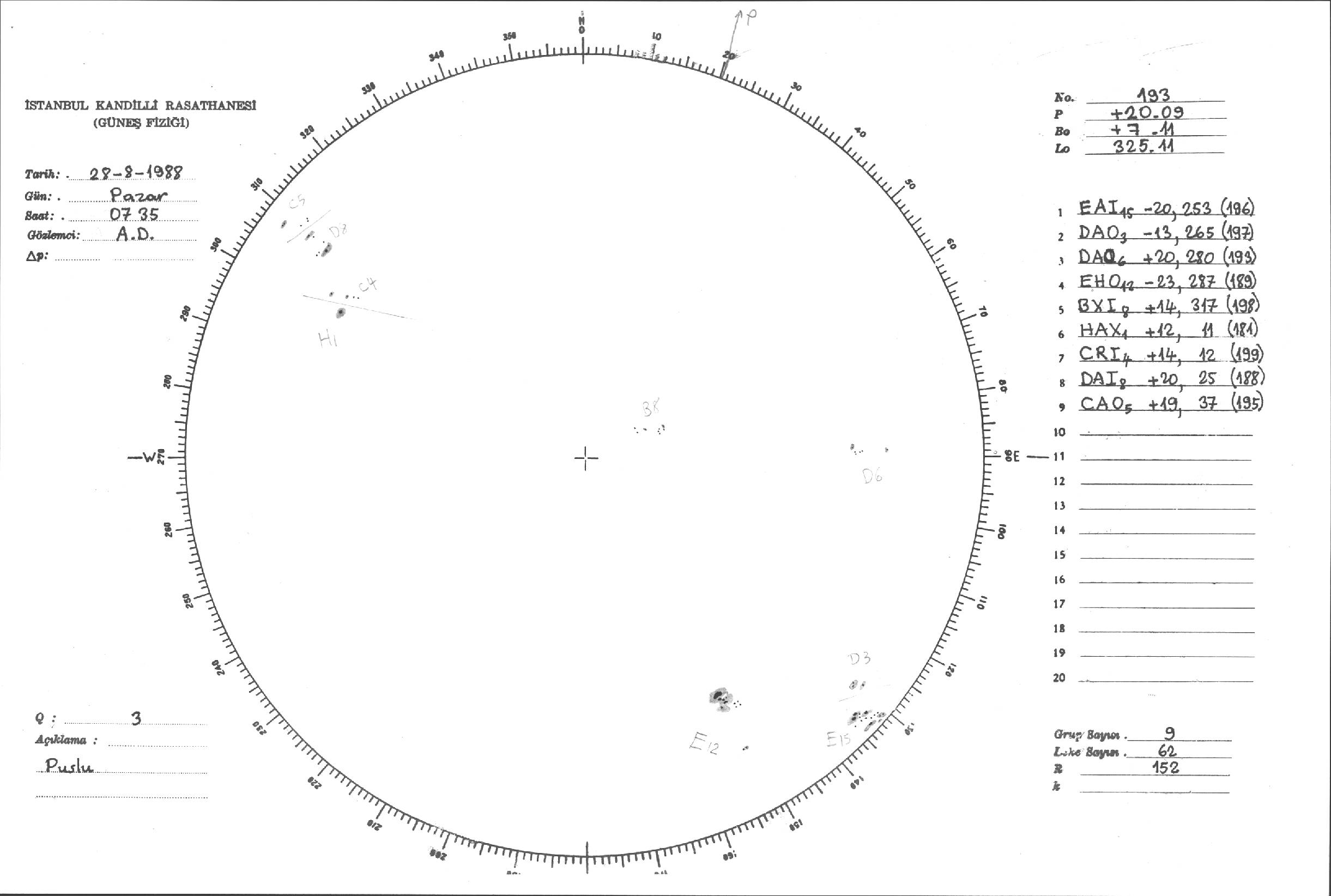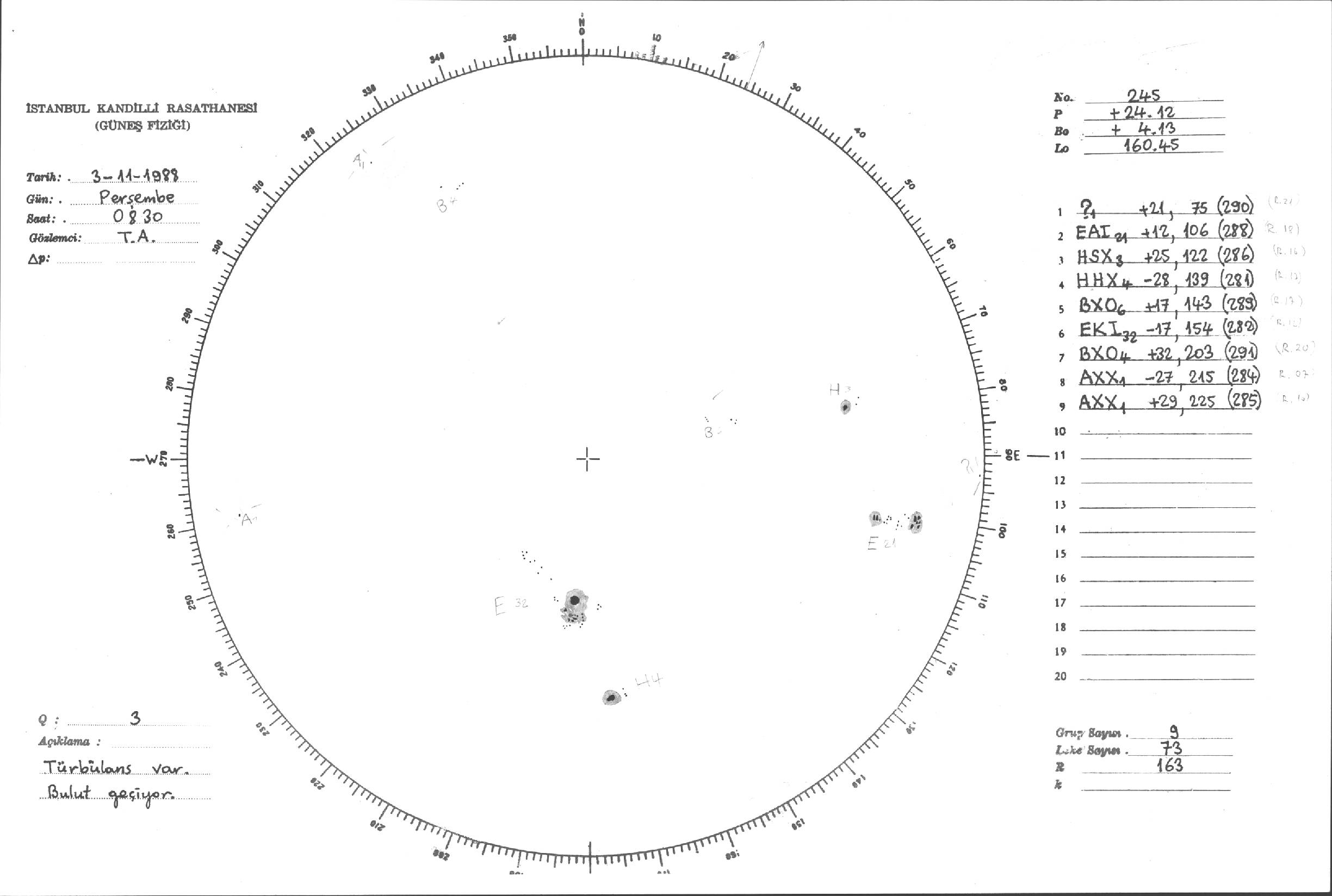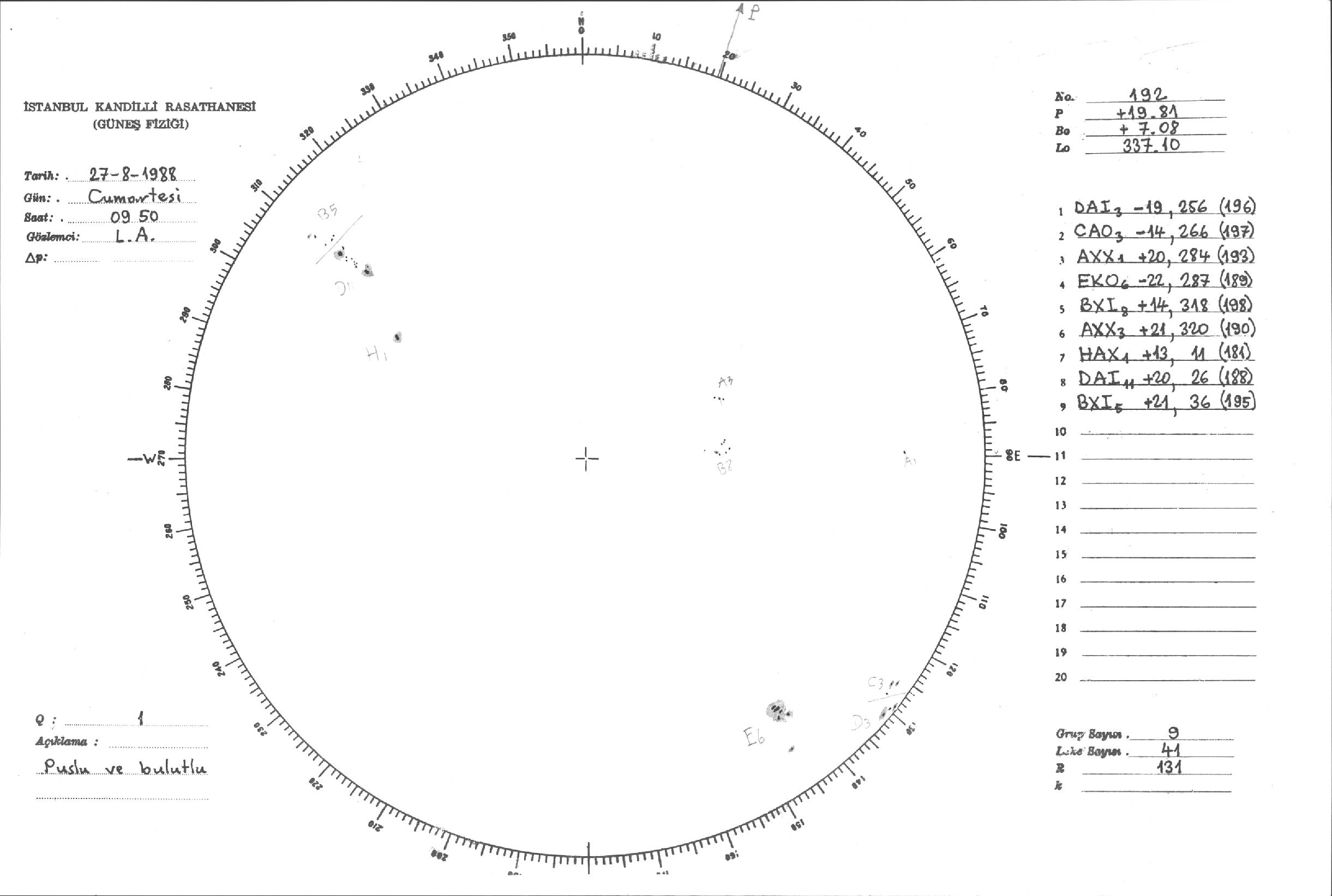 Güneş Lekesi Çizimleri / Kandilli Sunspot Drawings