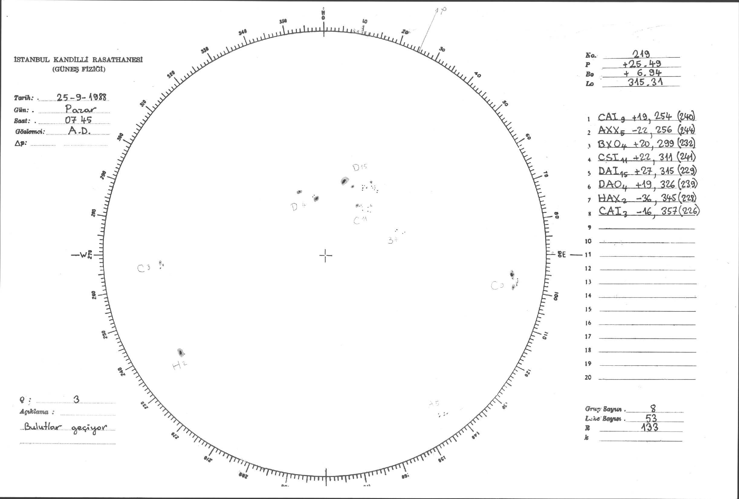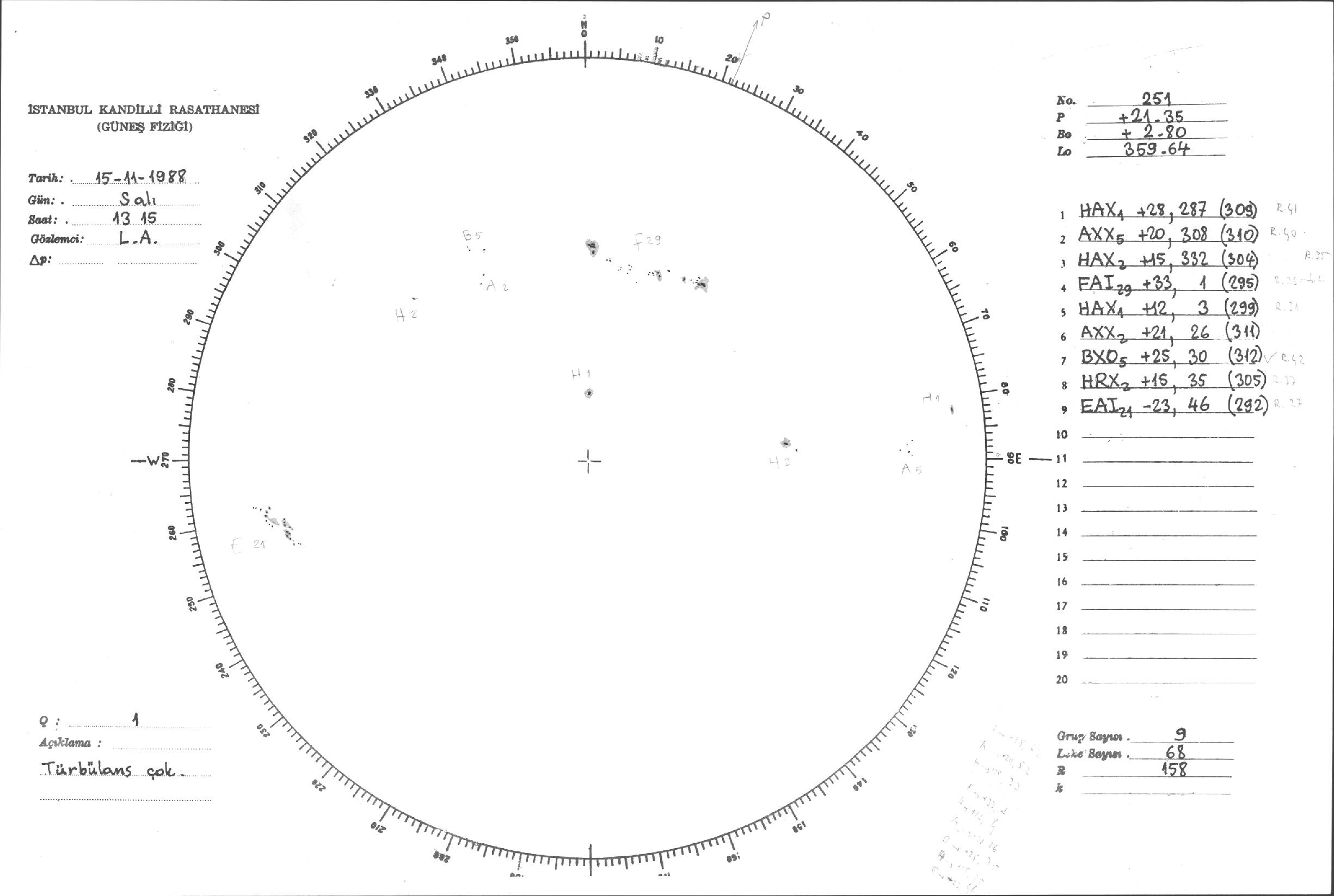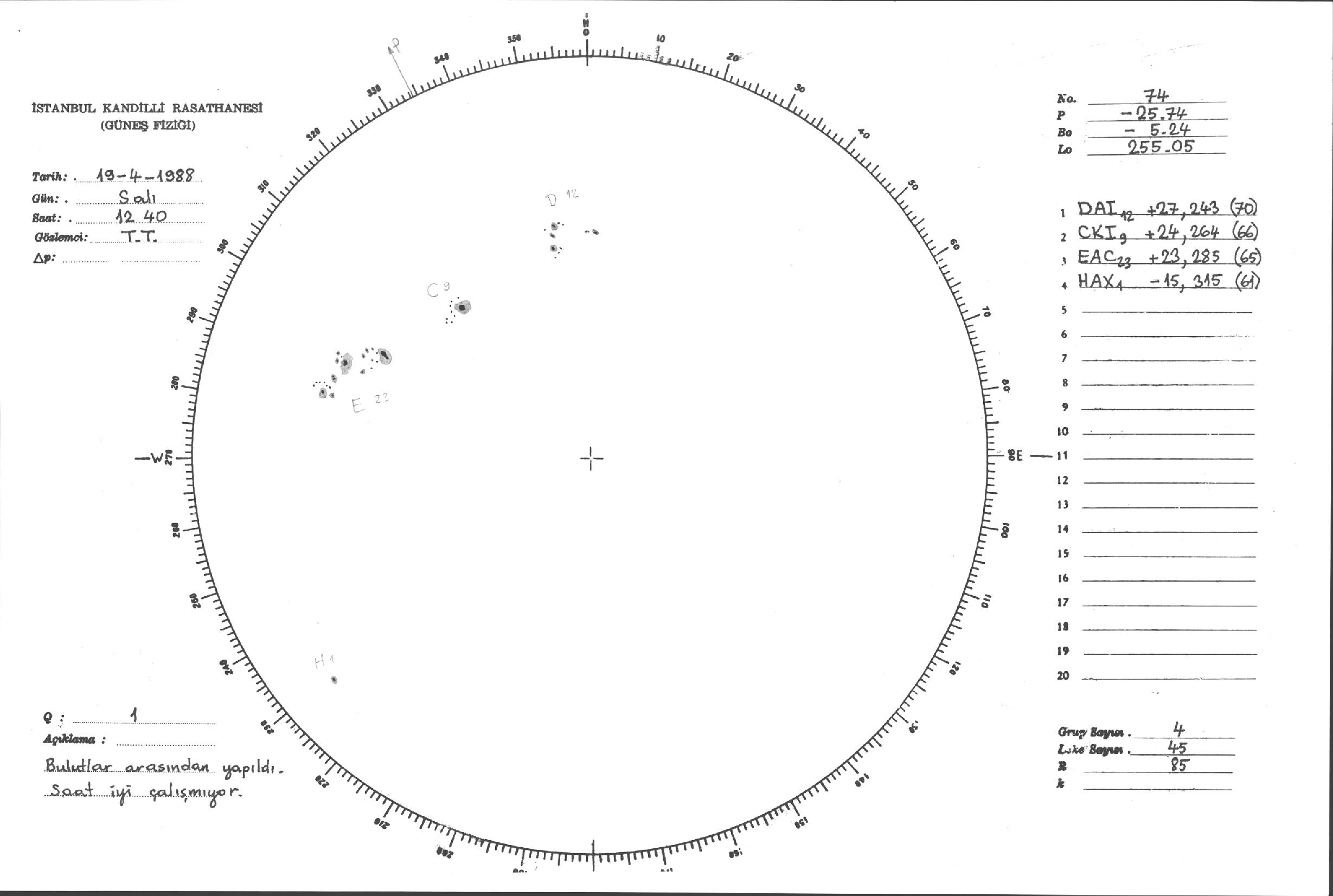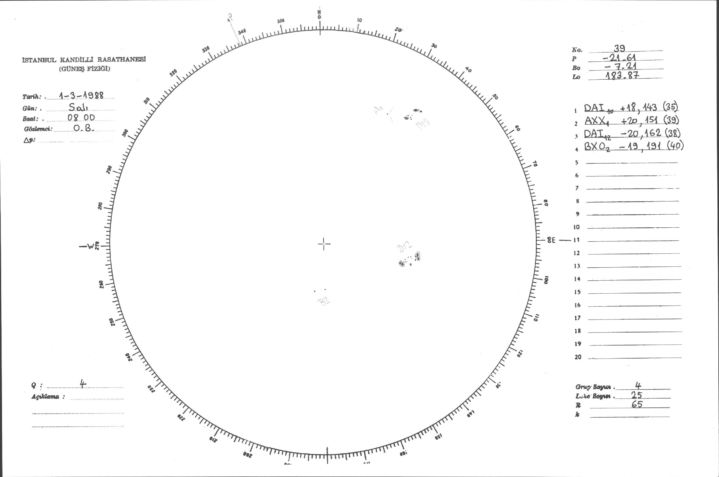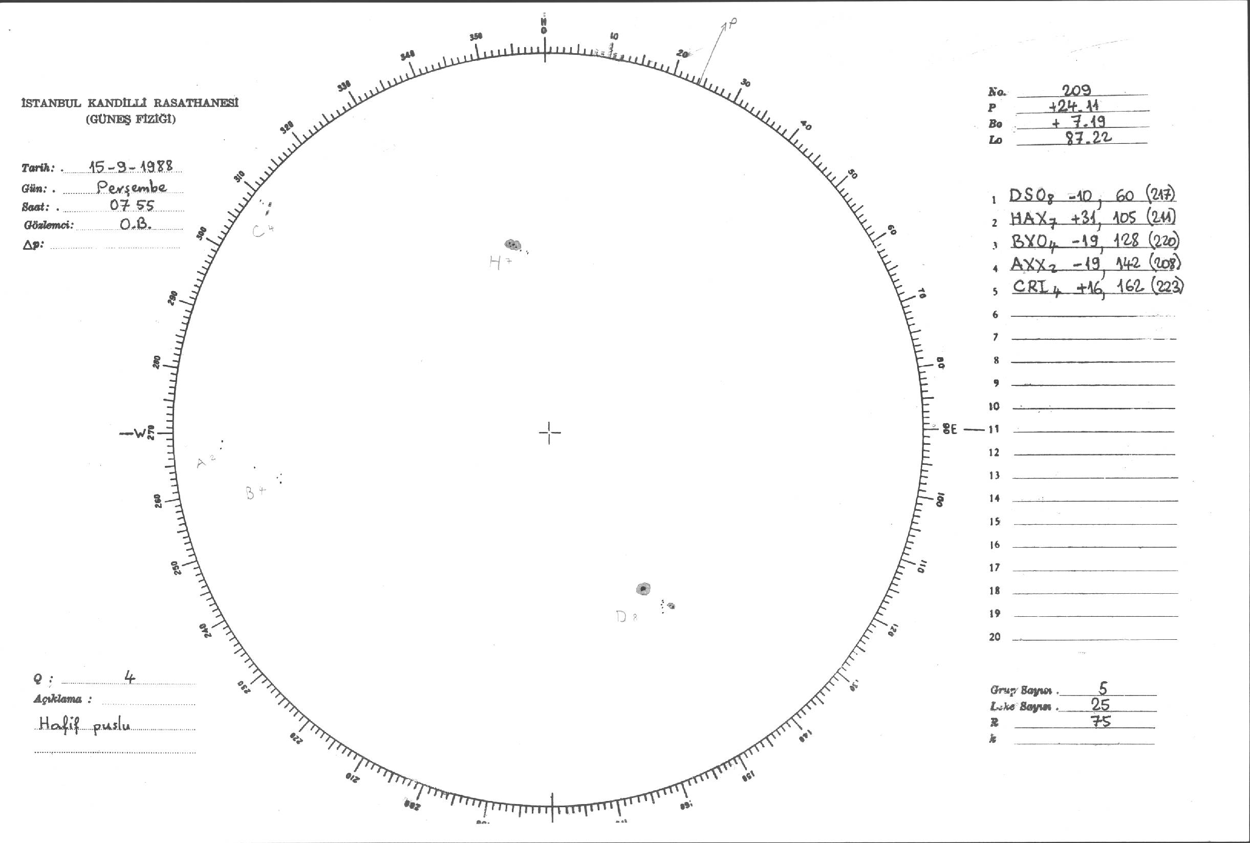 Güneş Lekesi Çizimleri / Kandilli Sunspot Drawings
