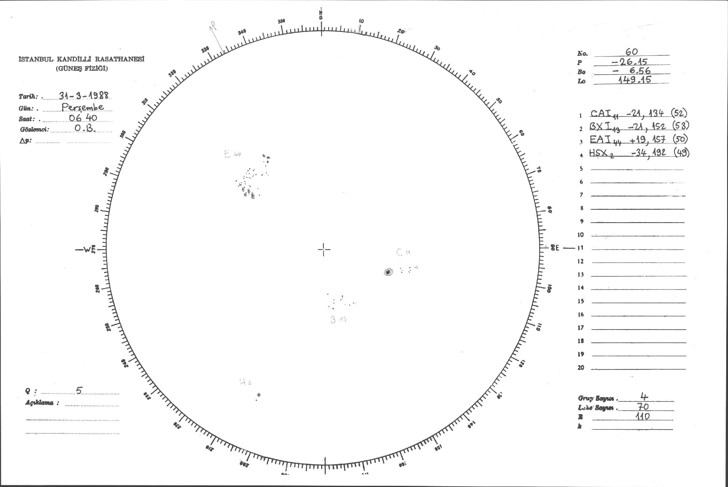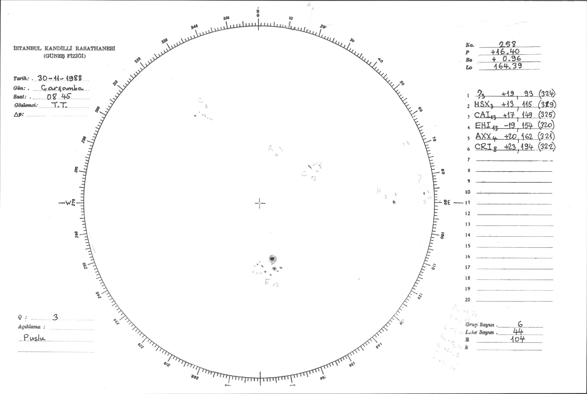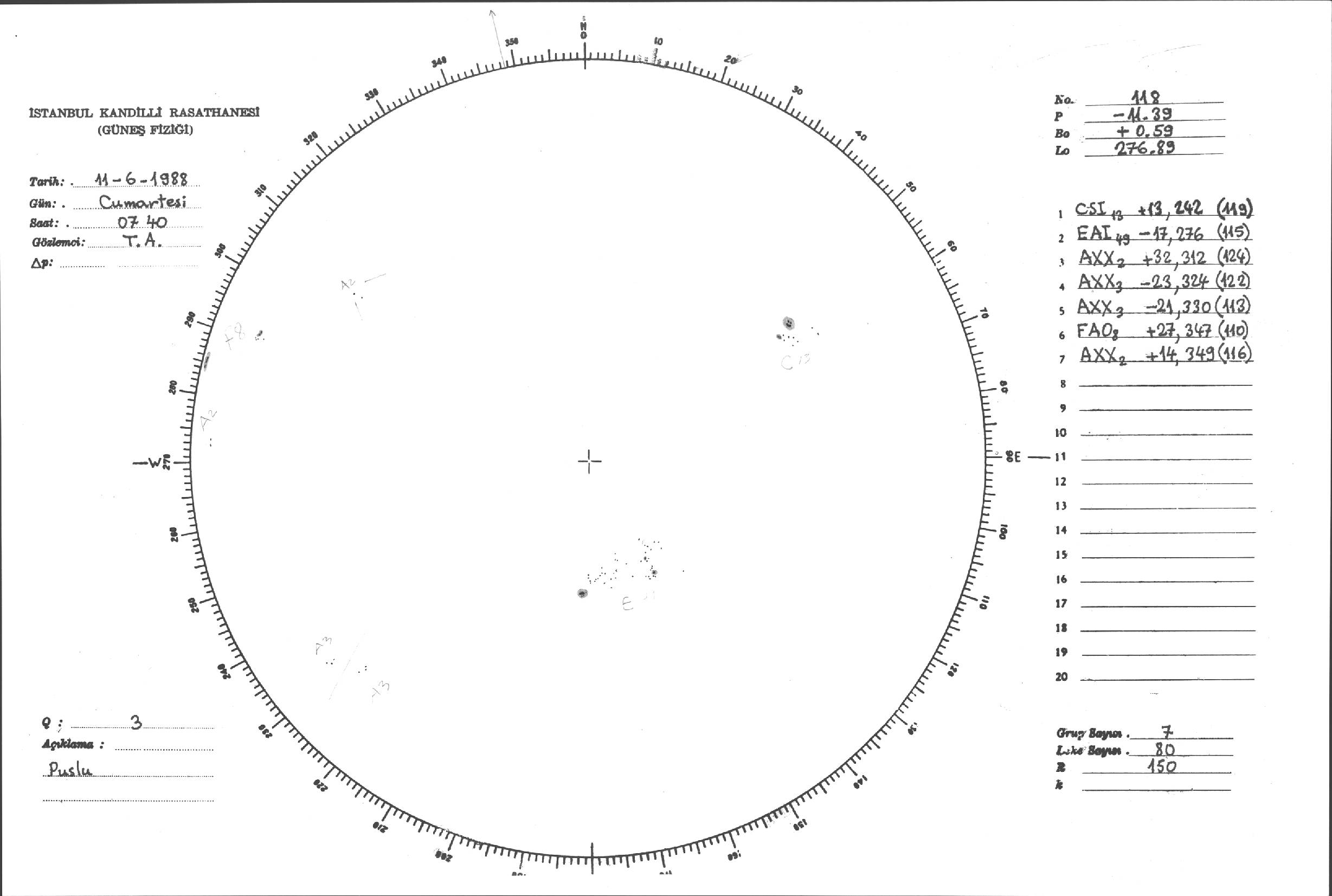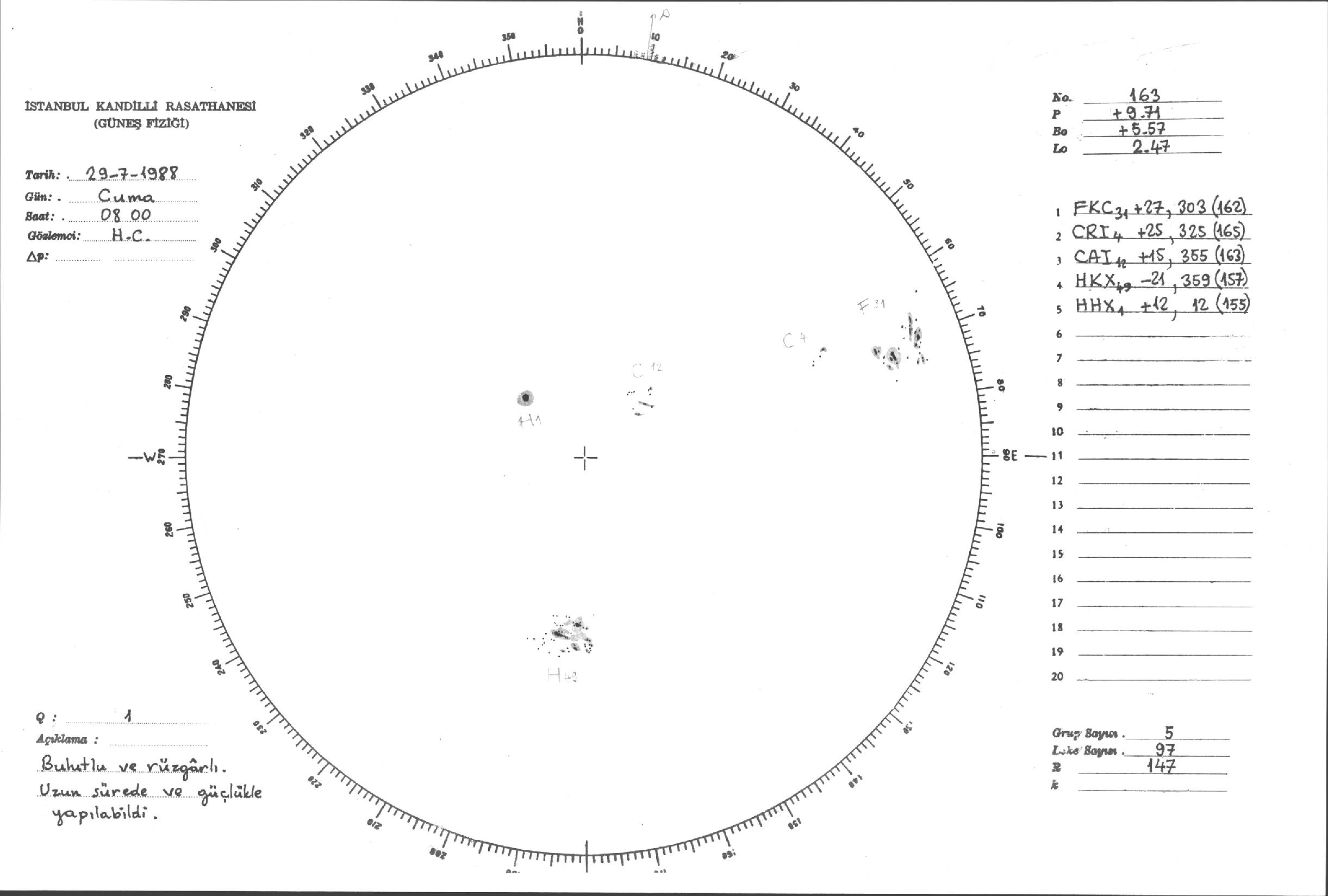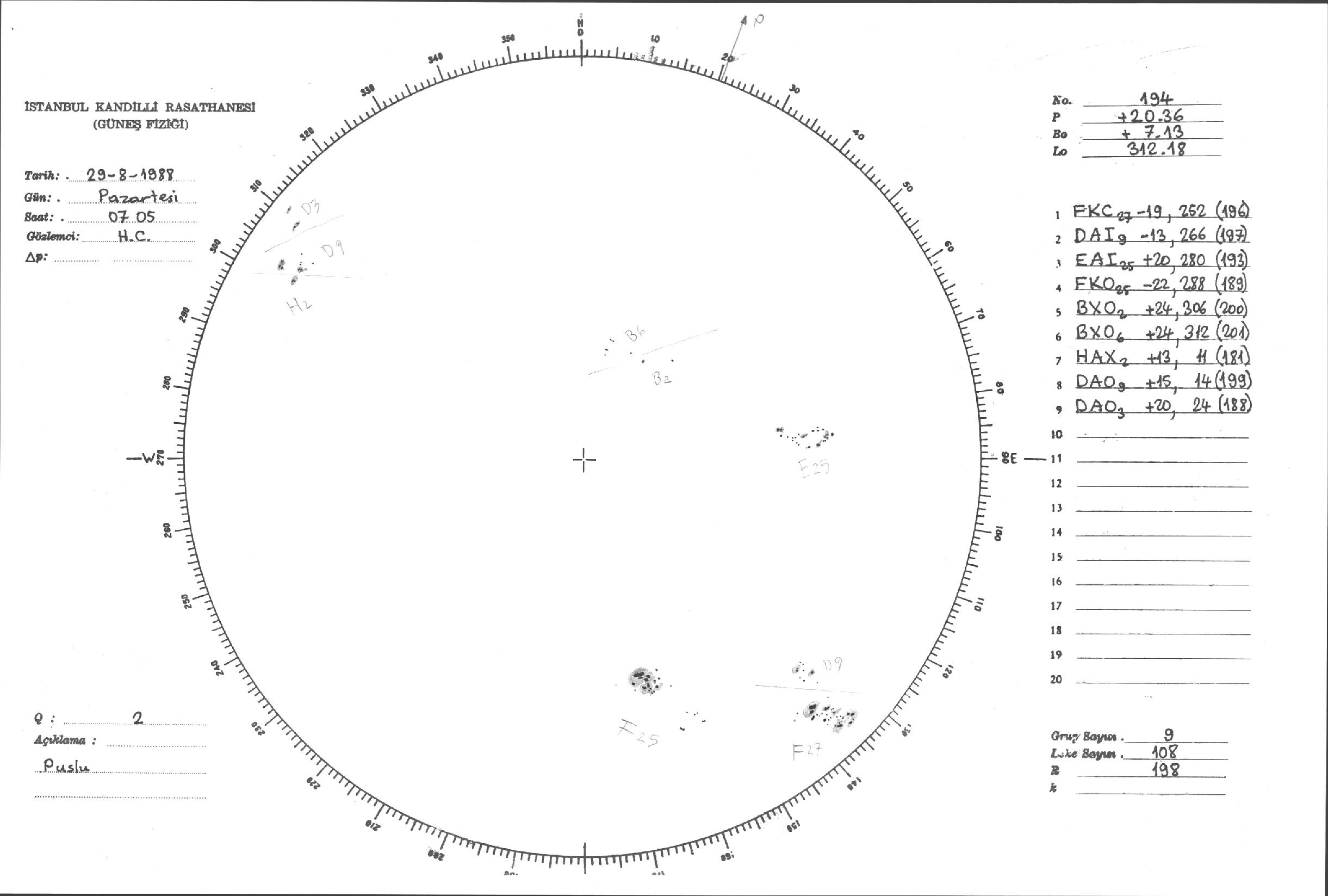 Güneş Lekesi Çizimleri / Kandilli Sunspot Drawings