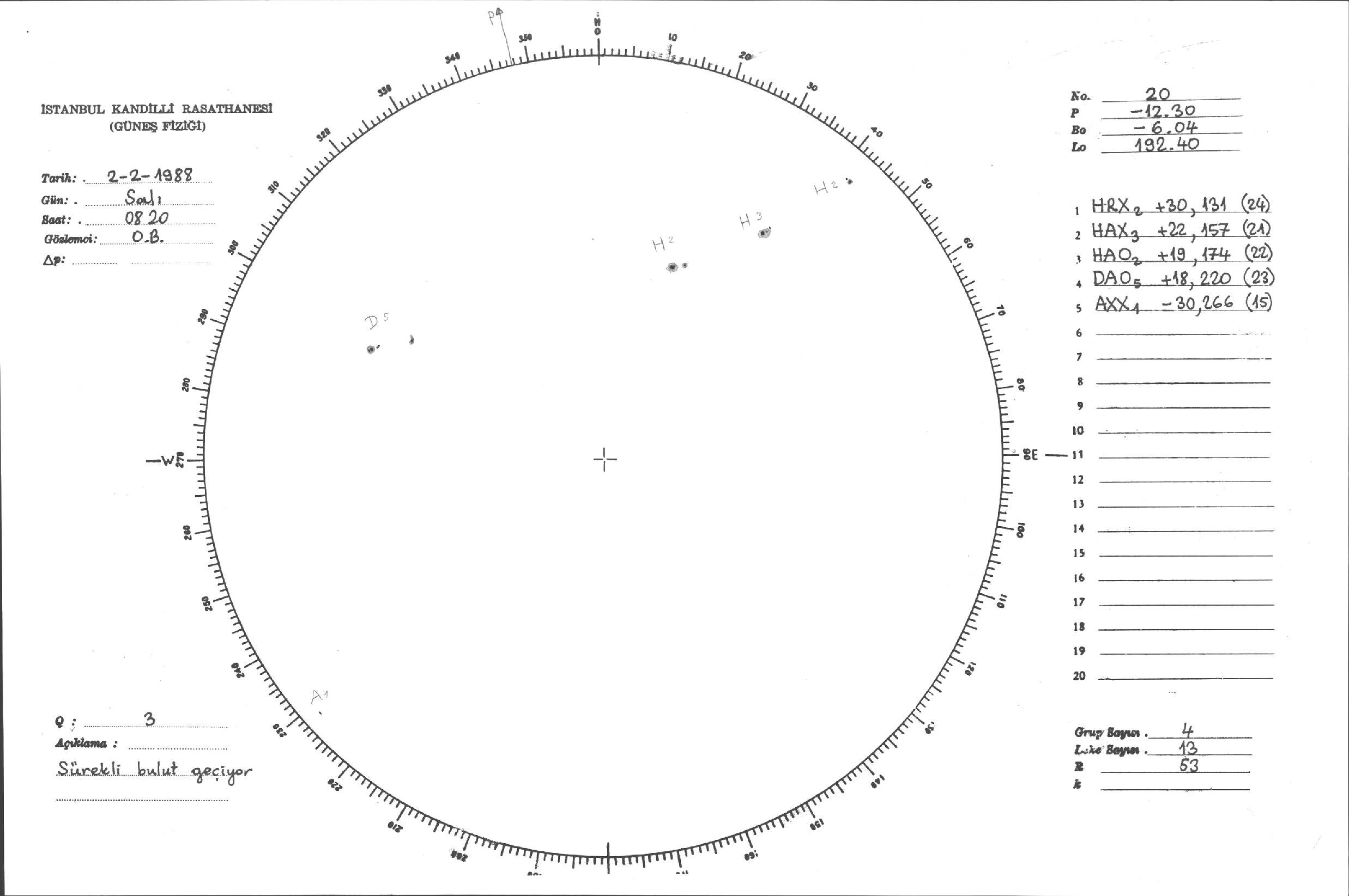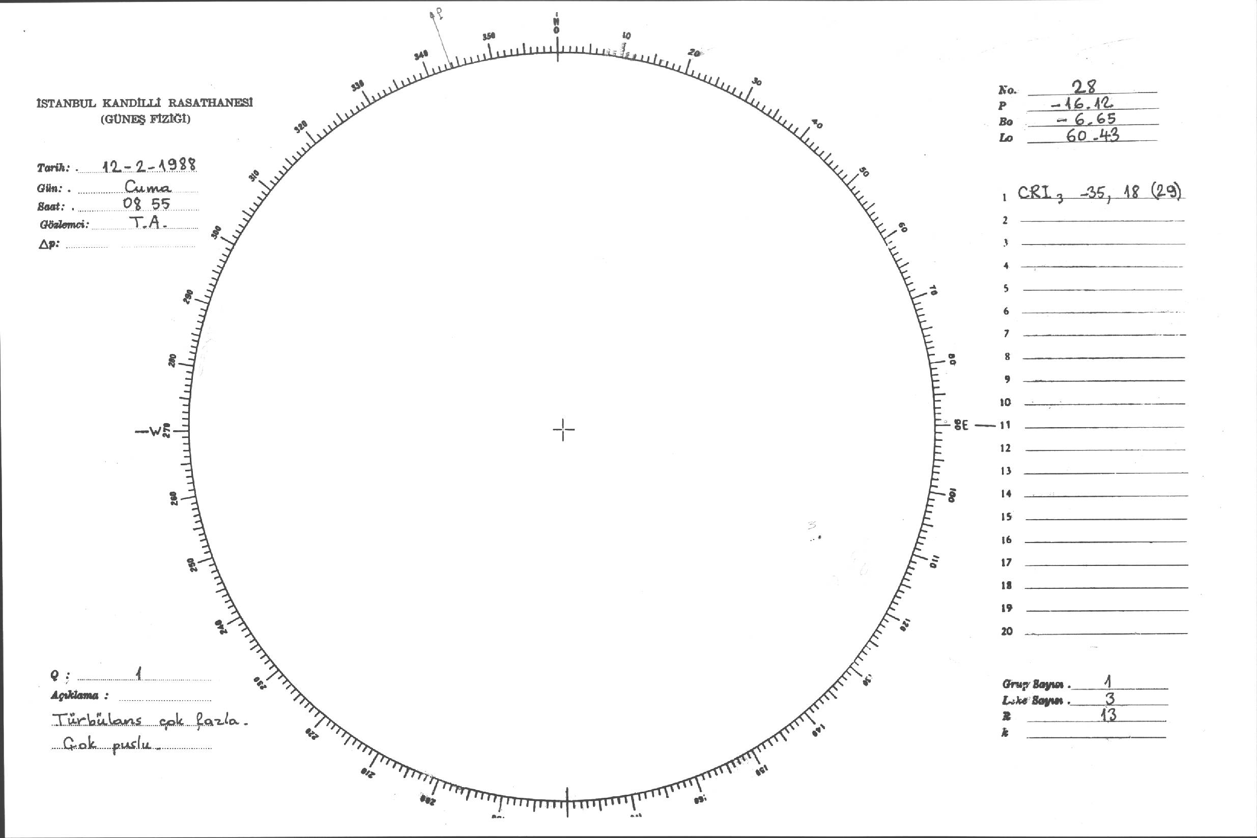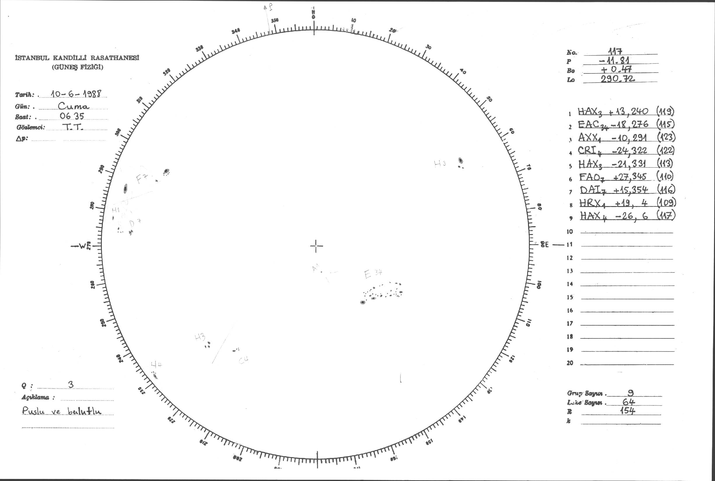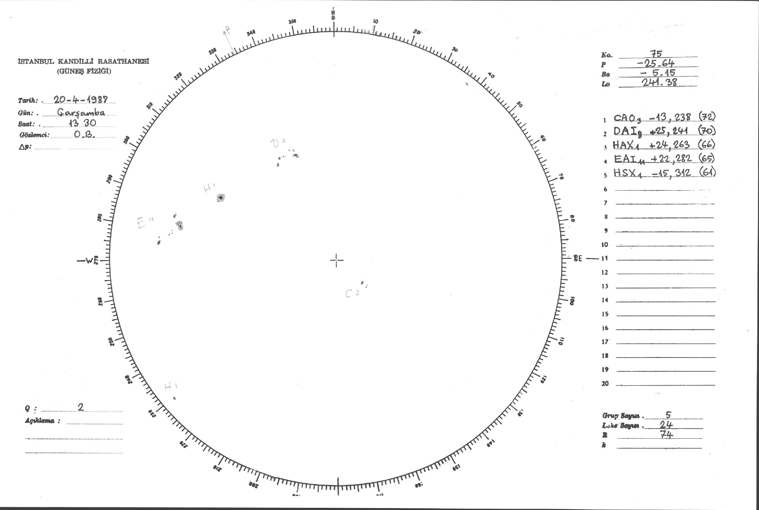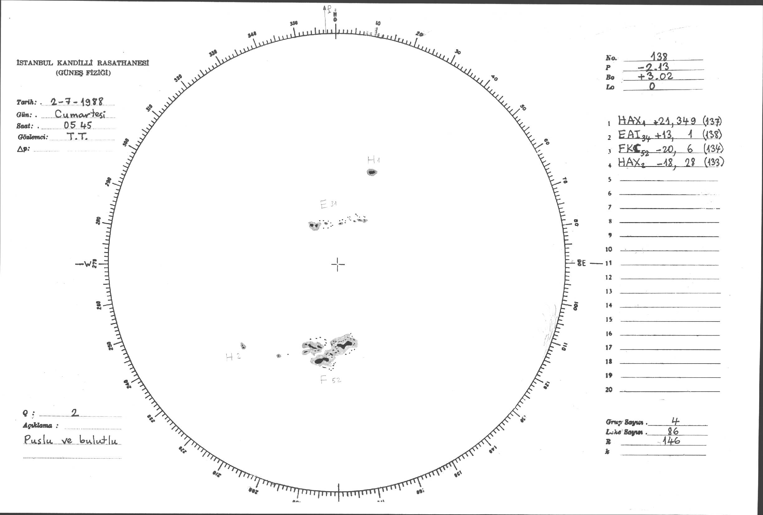 Güneş Lekesi Çizimleri / Kandilli Sunspot Drawings