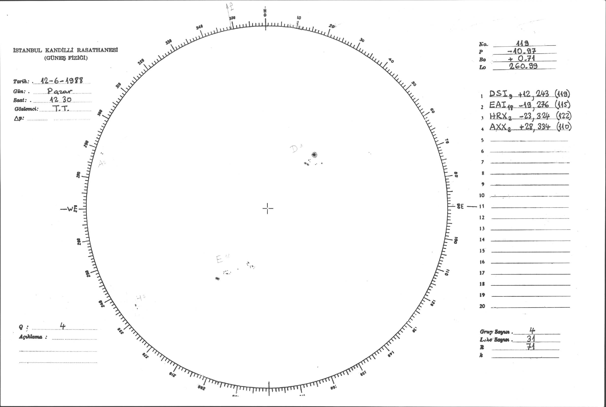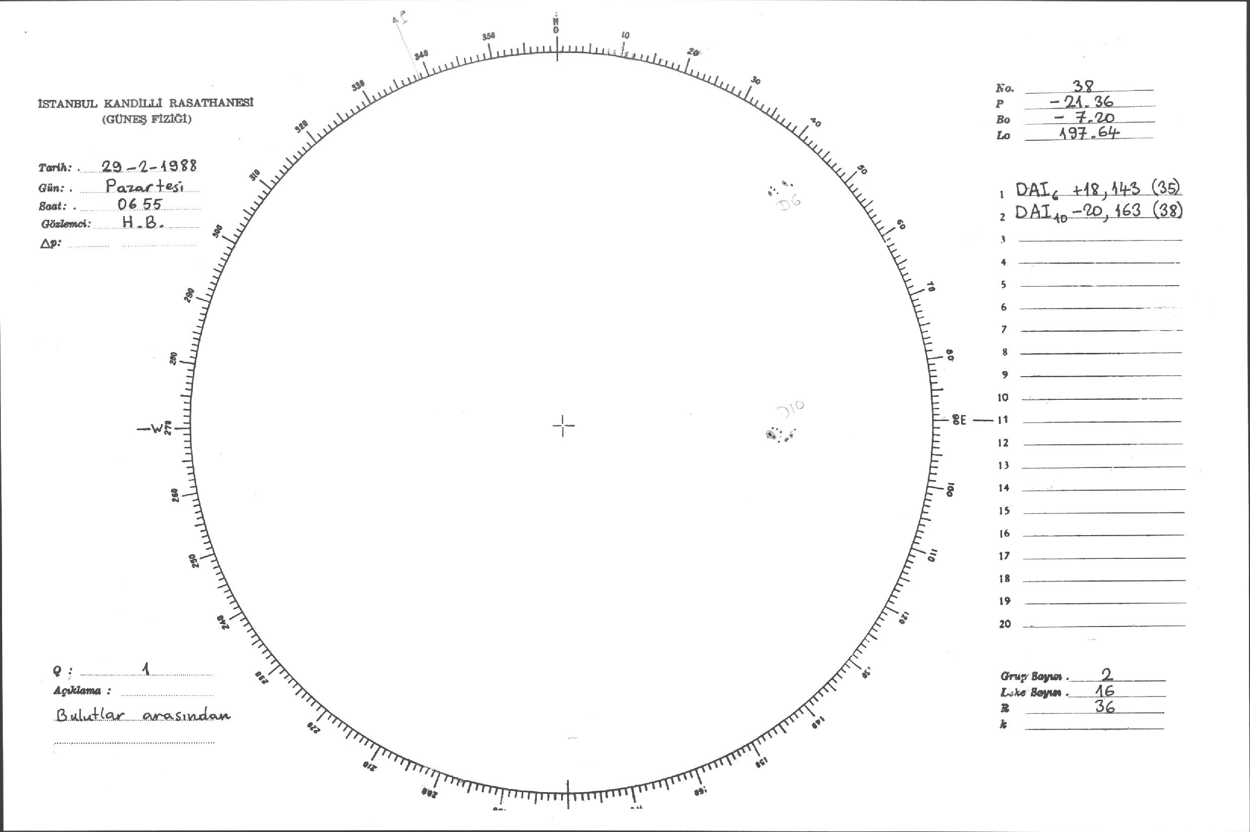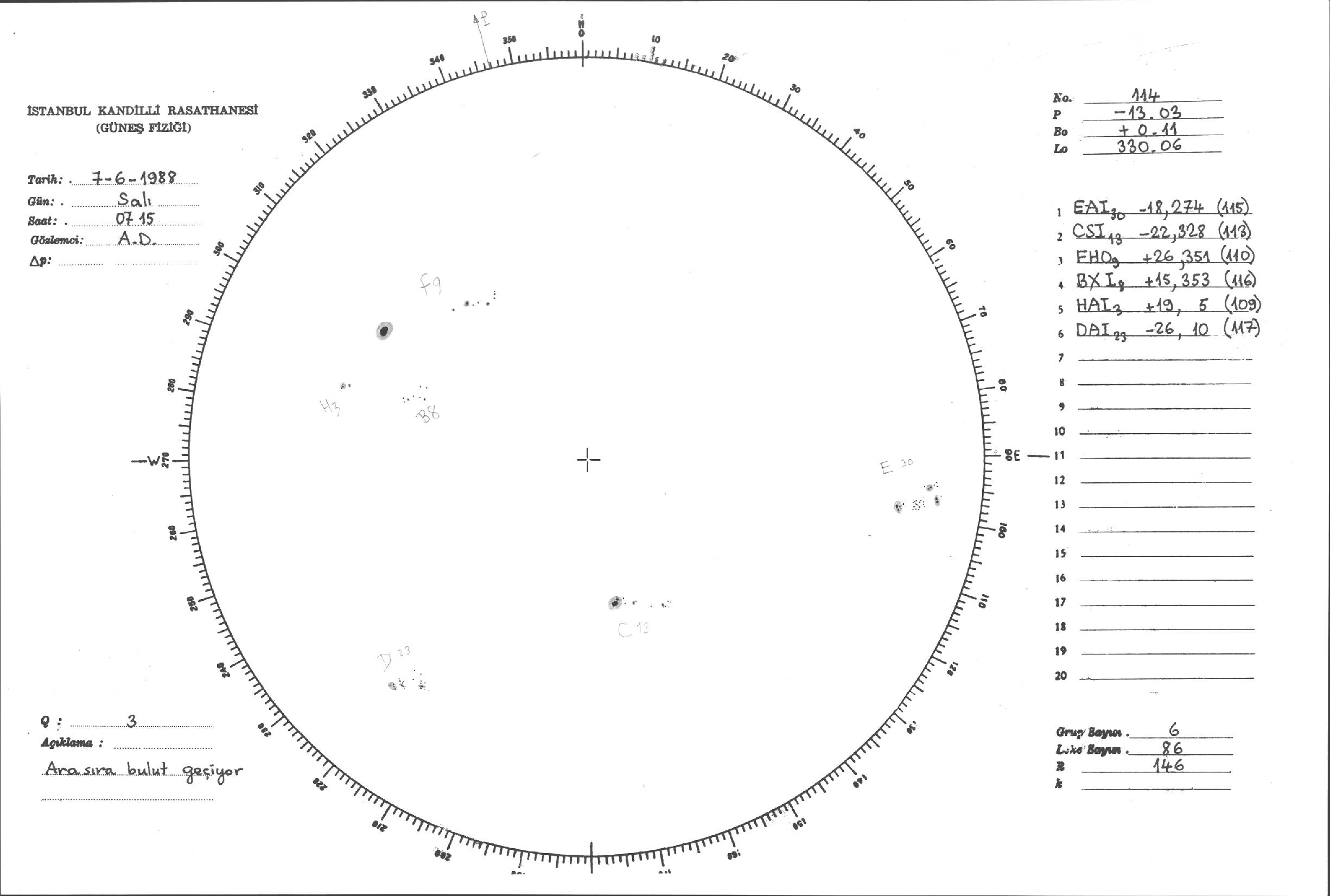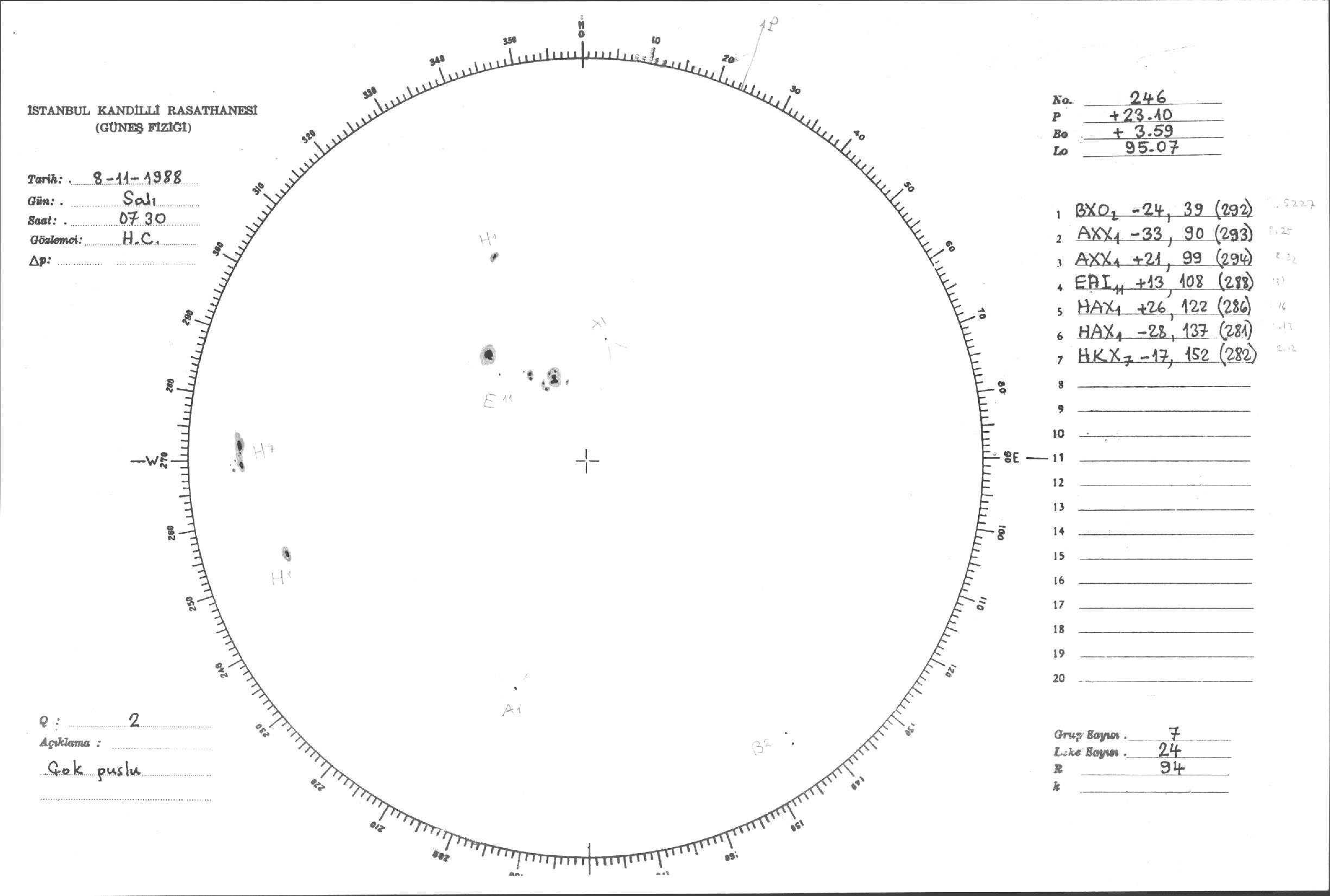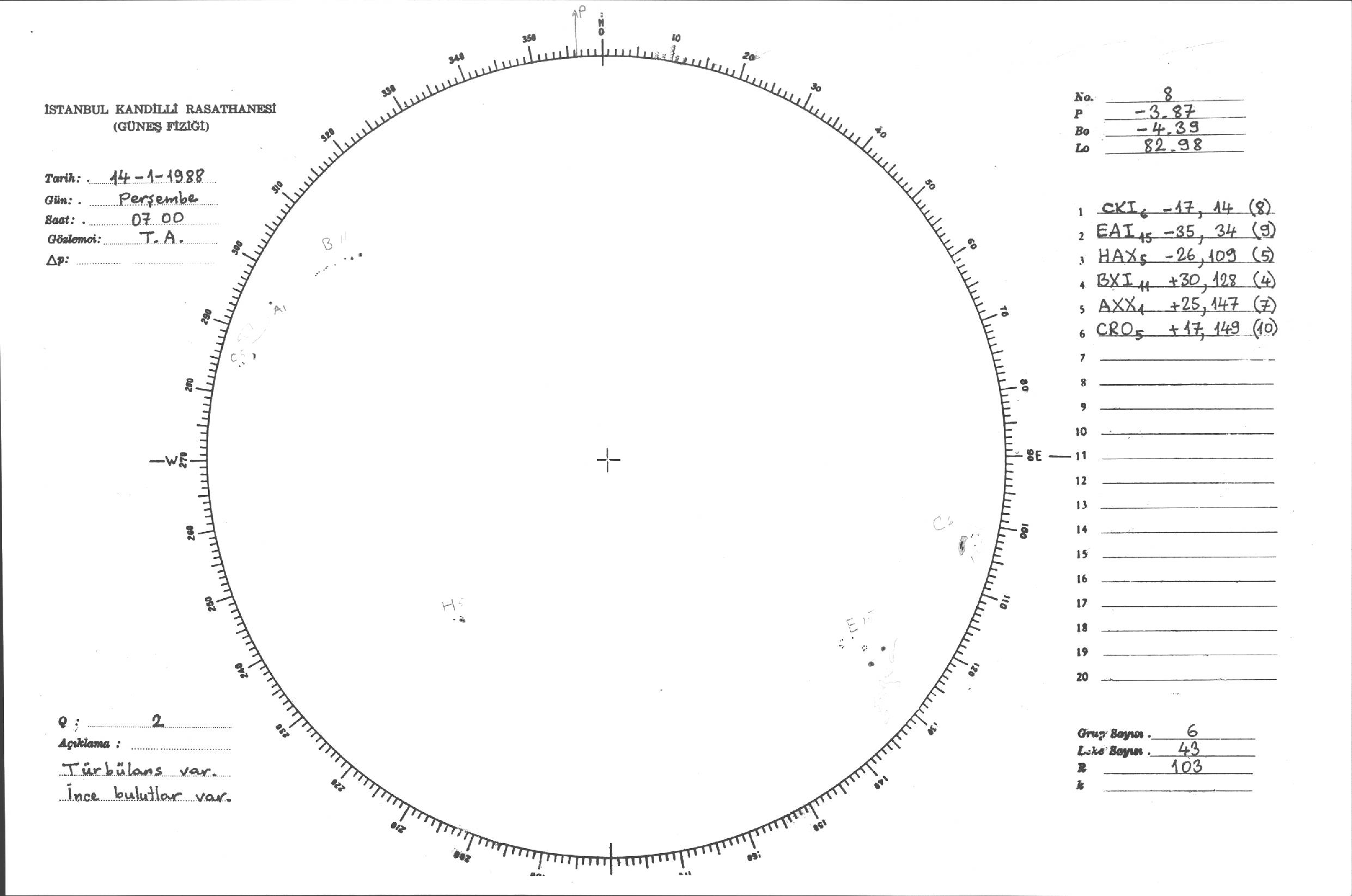 Güneş Lekesi Çizimleri / Kandilli Sunspot Drawings