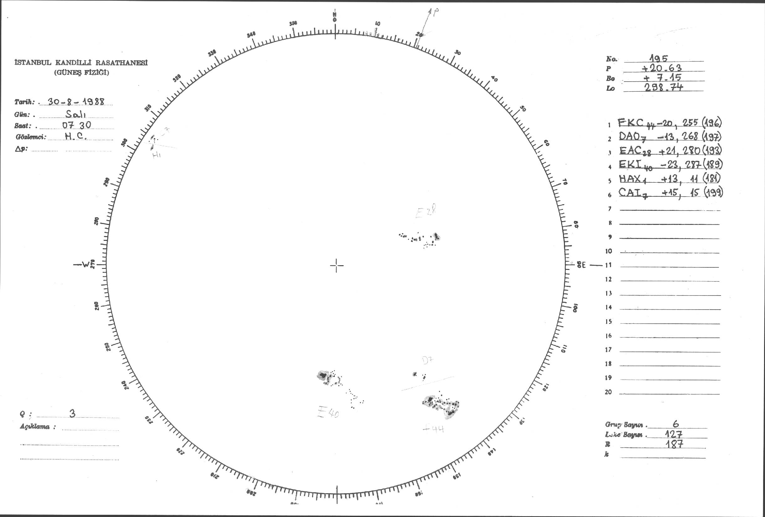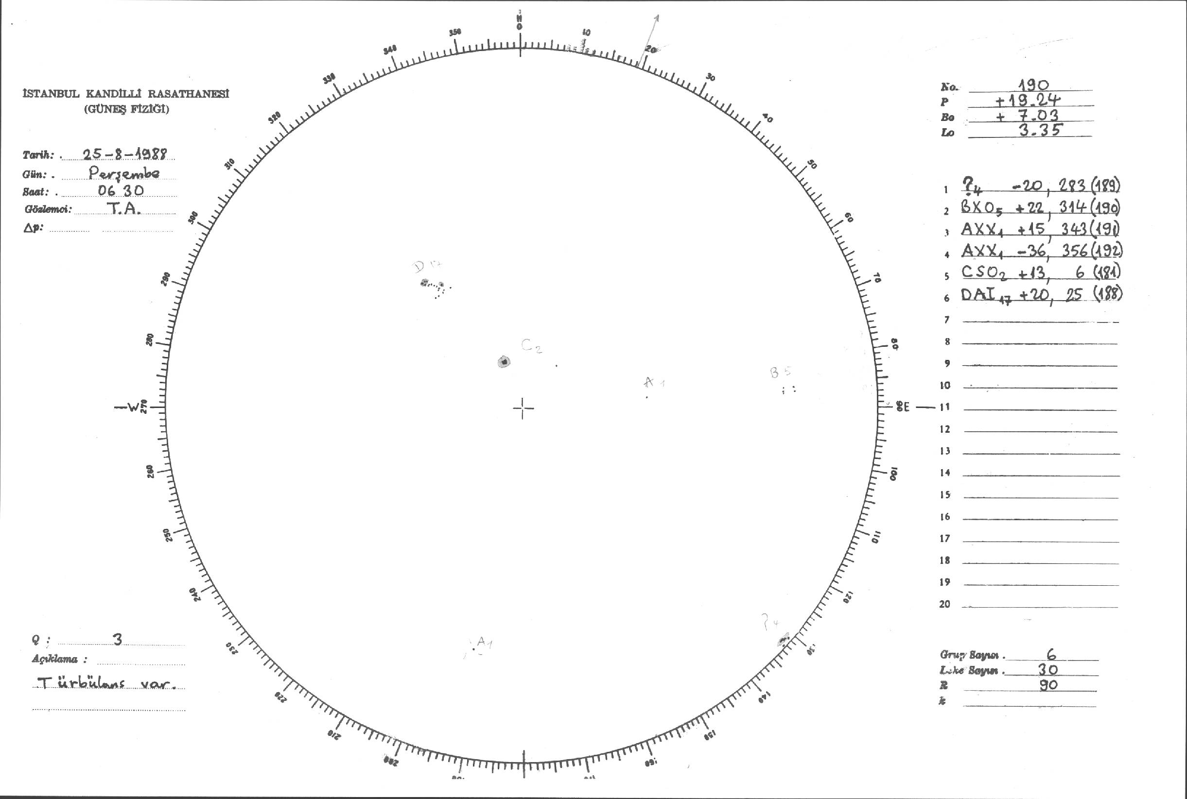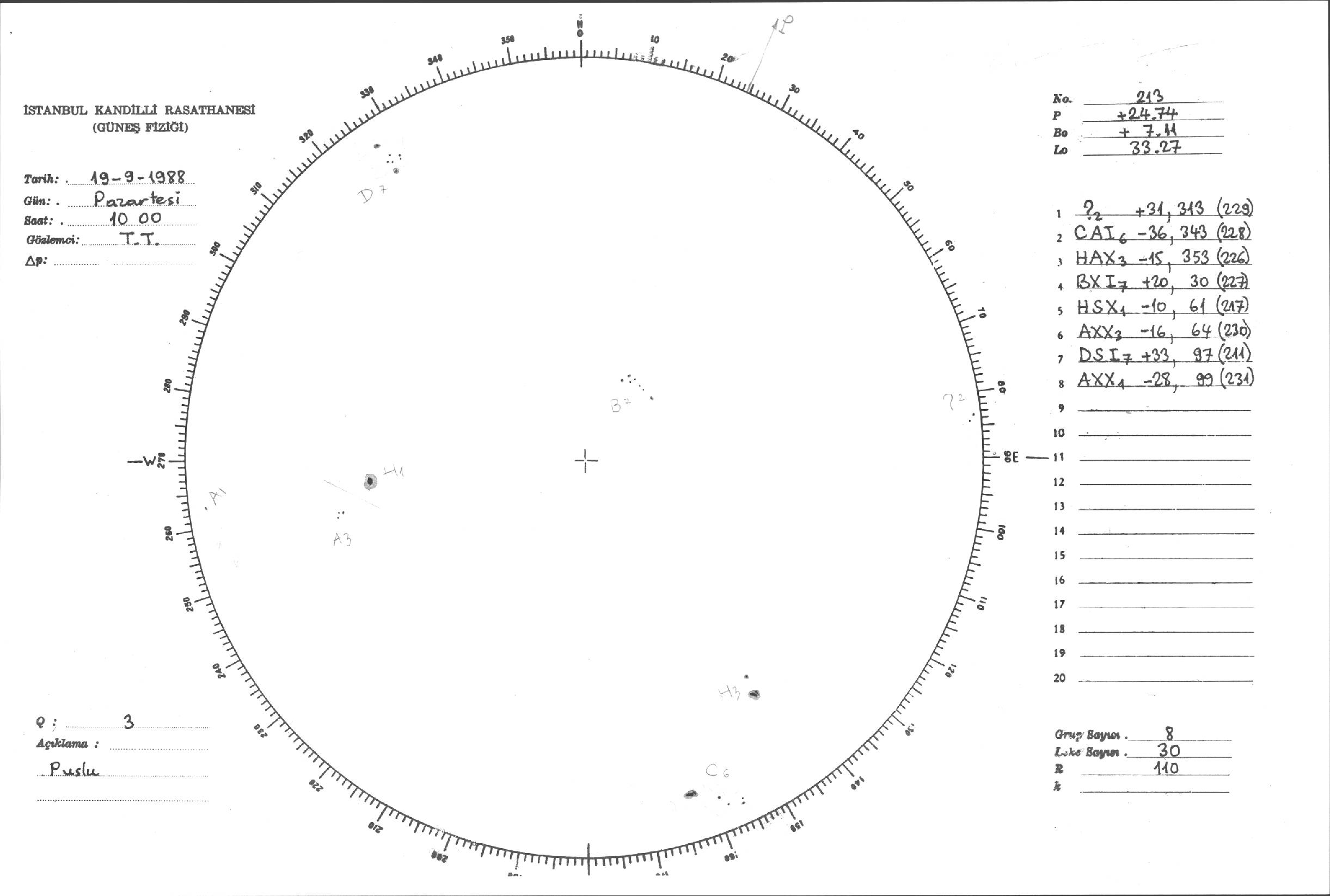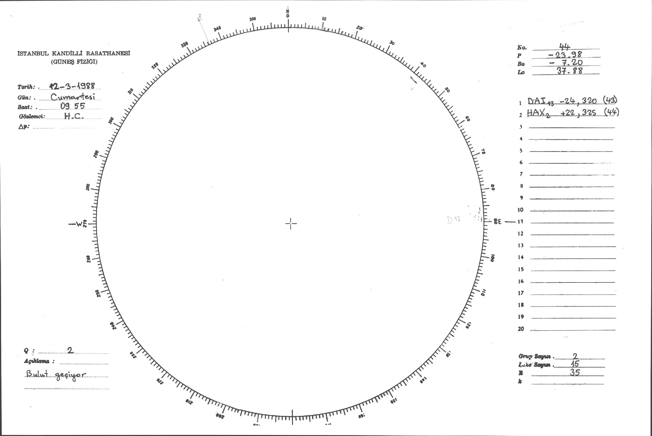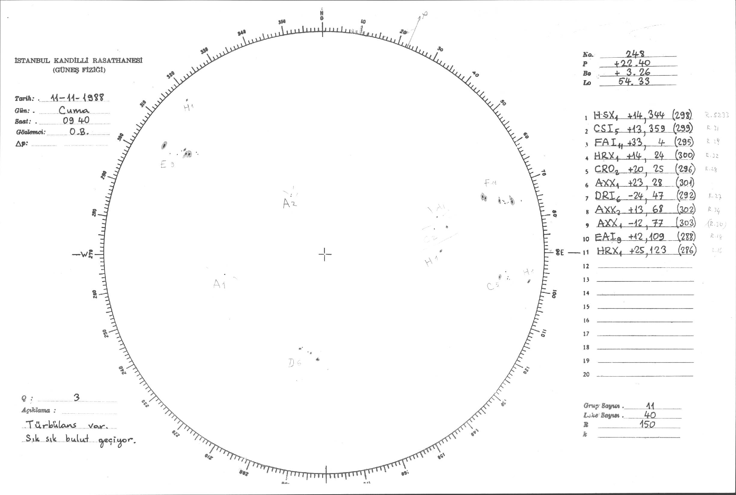 Güneş Lekesi Çizimleri / Kandilli Sunspot Drawings