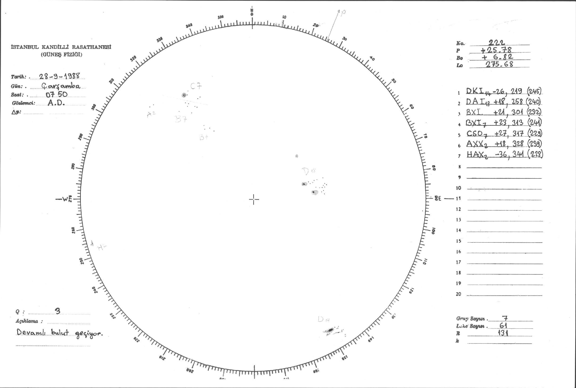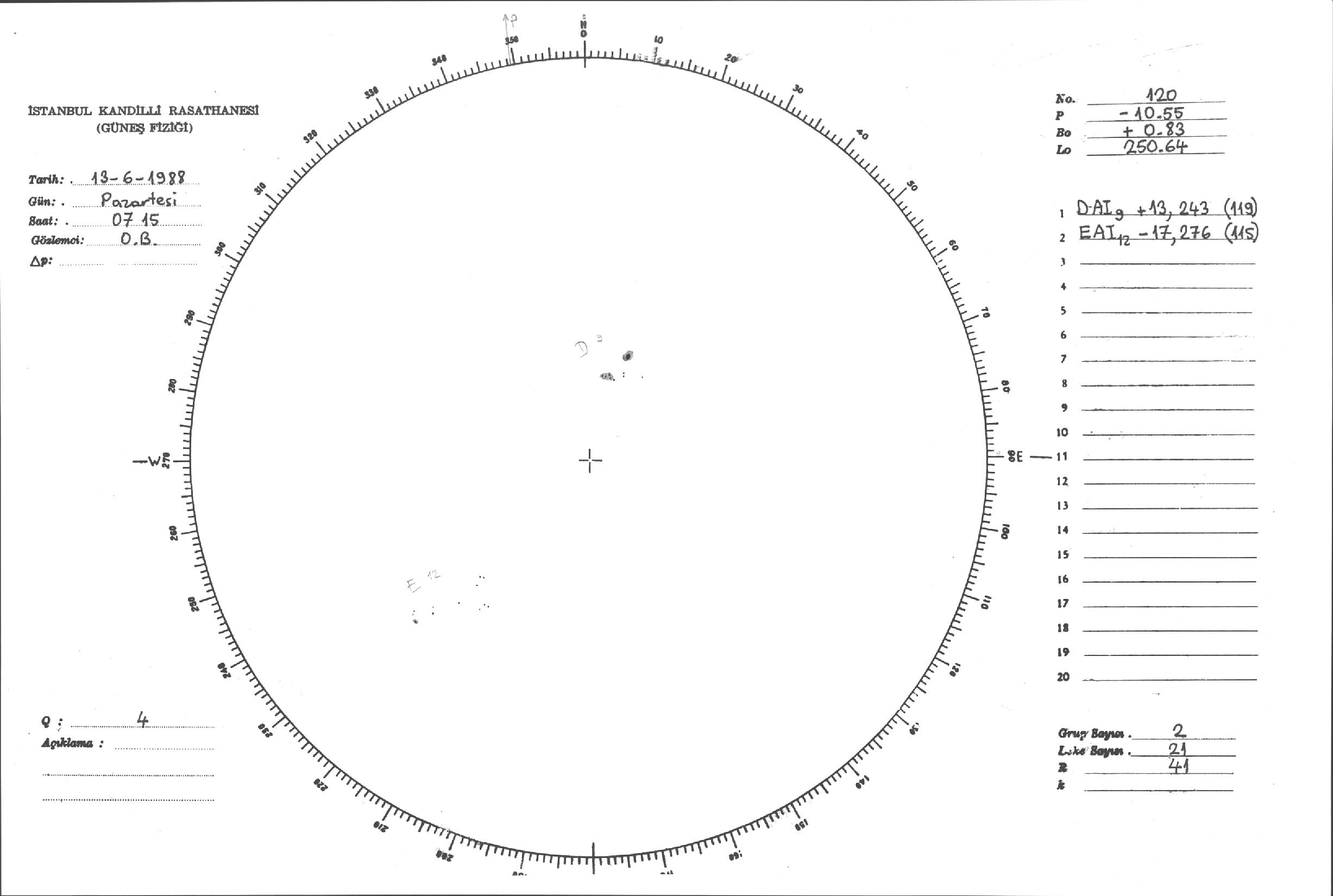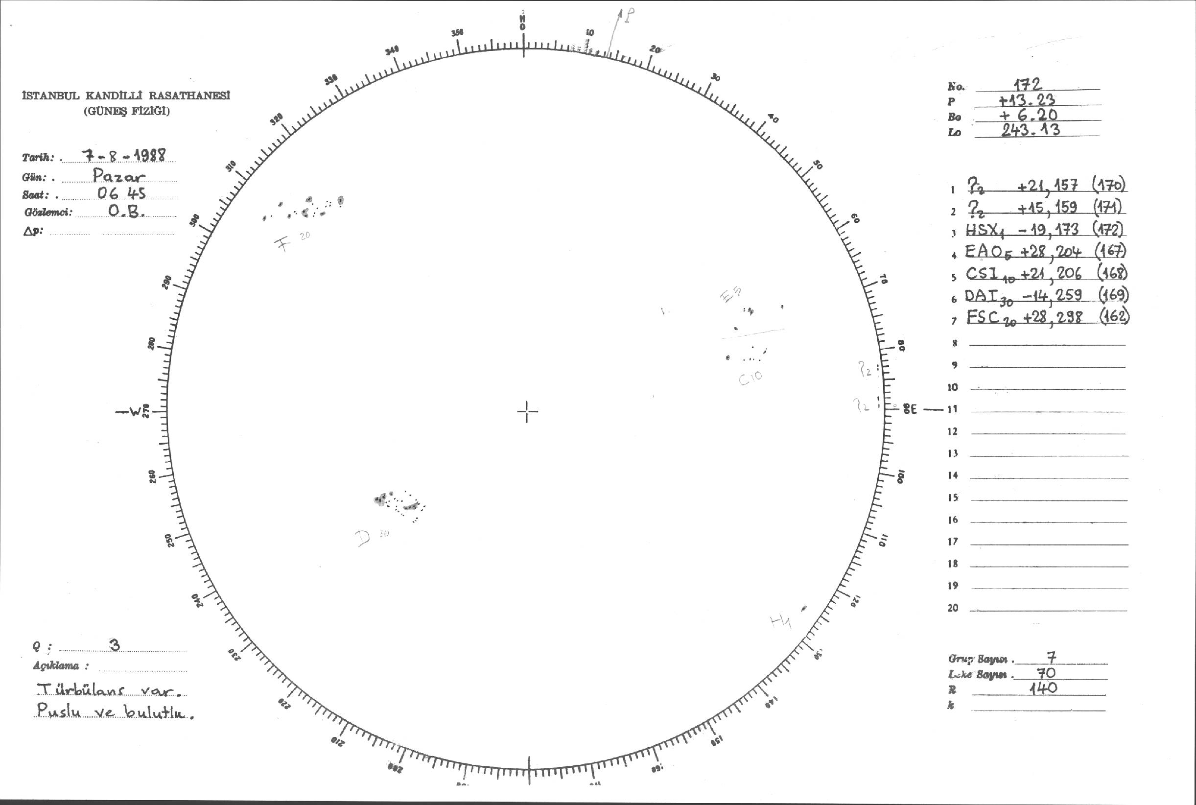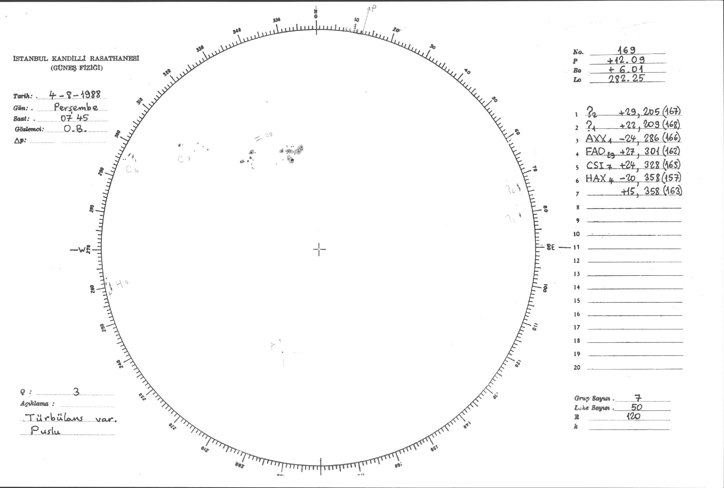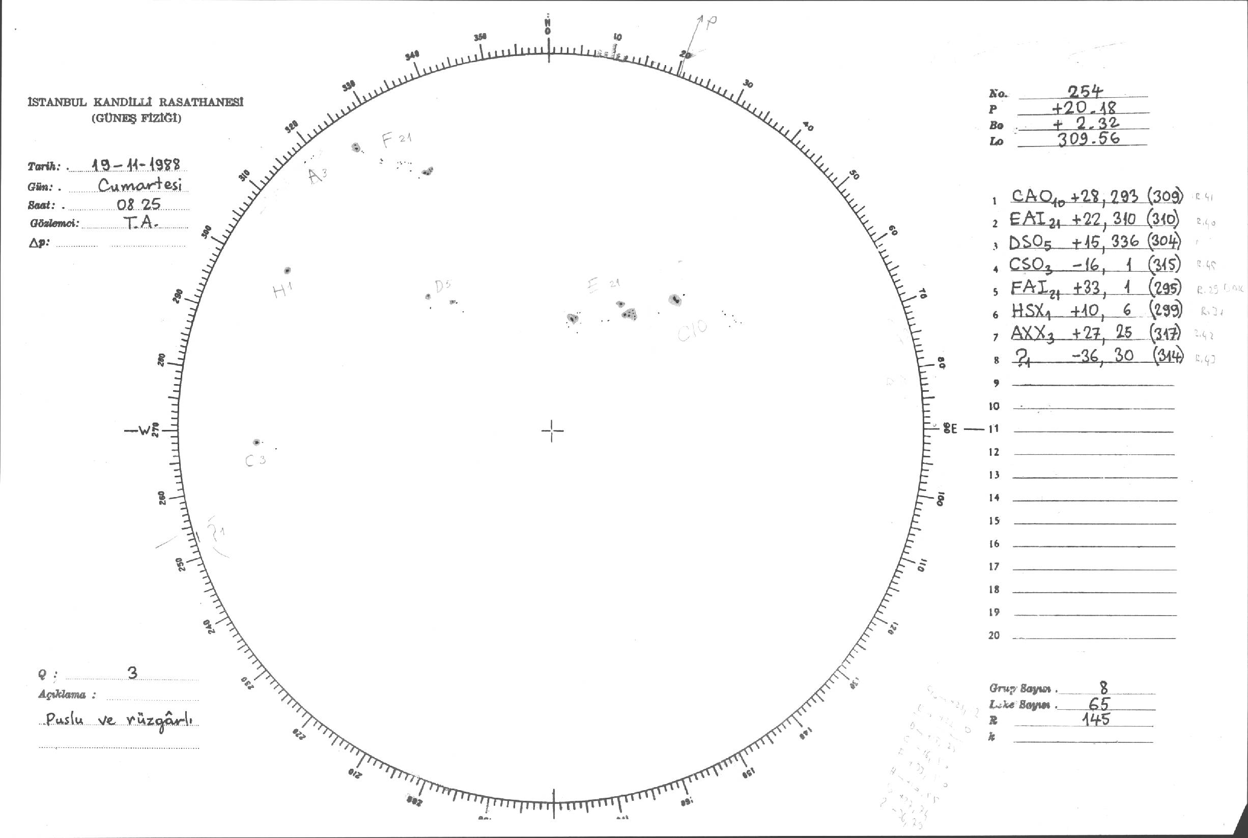 Güneş Lekesi Çizimleri / Kandilli Sunspot Drawings