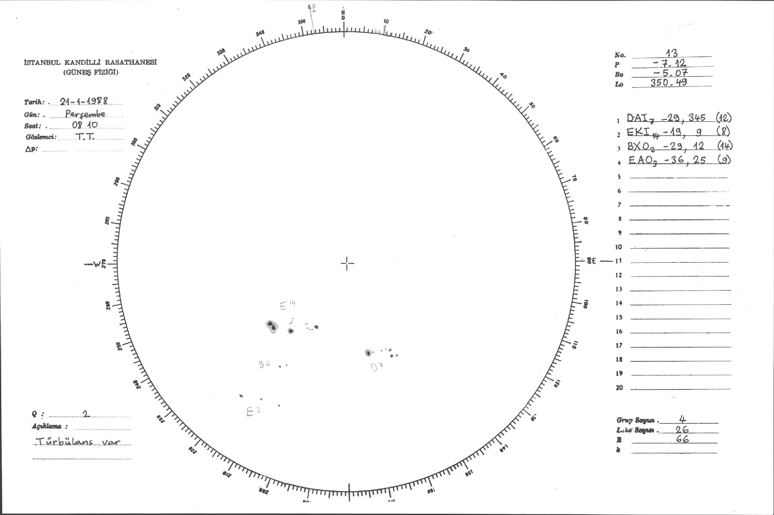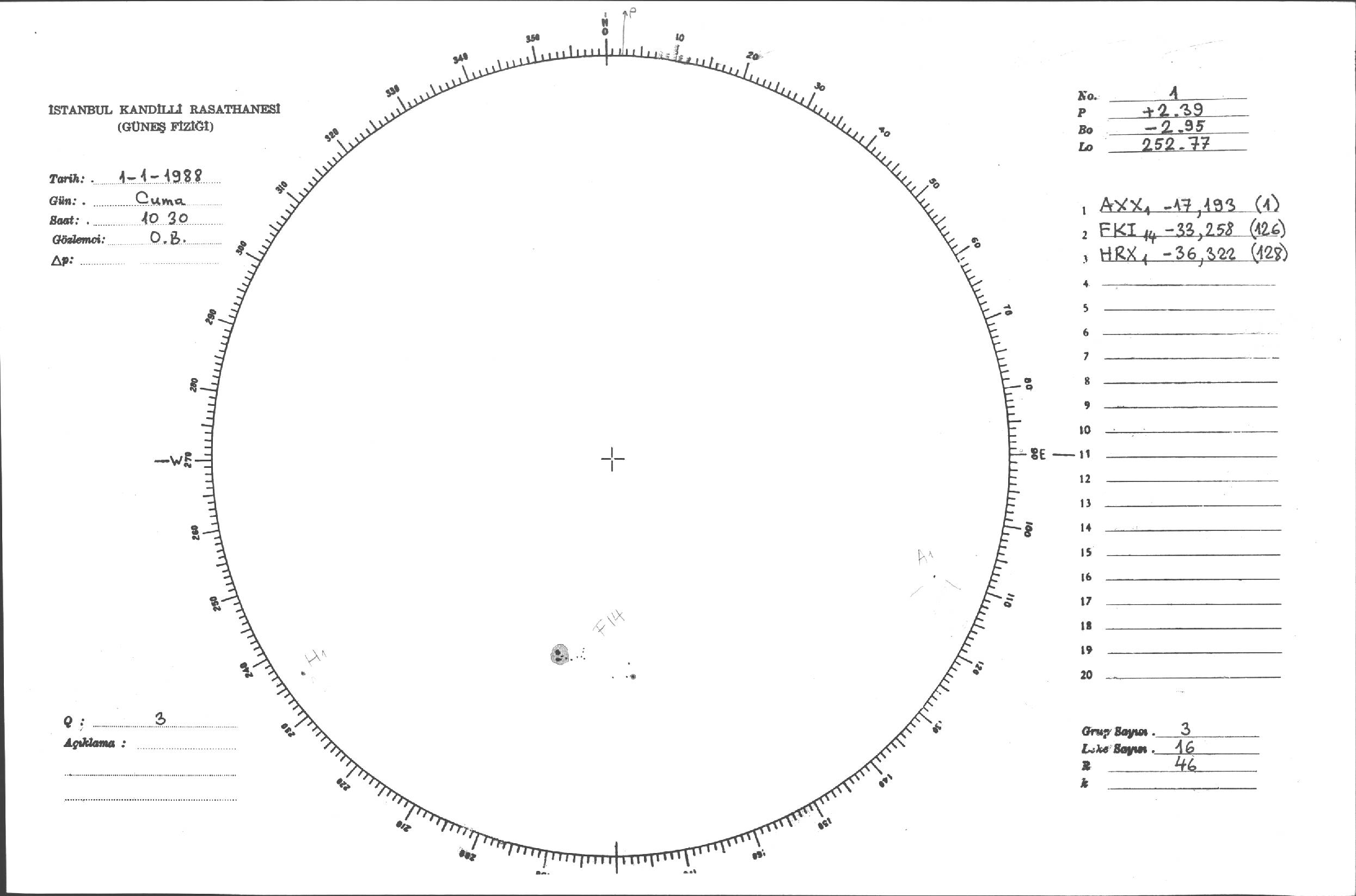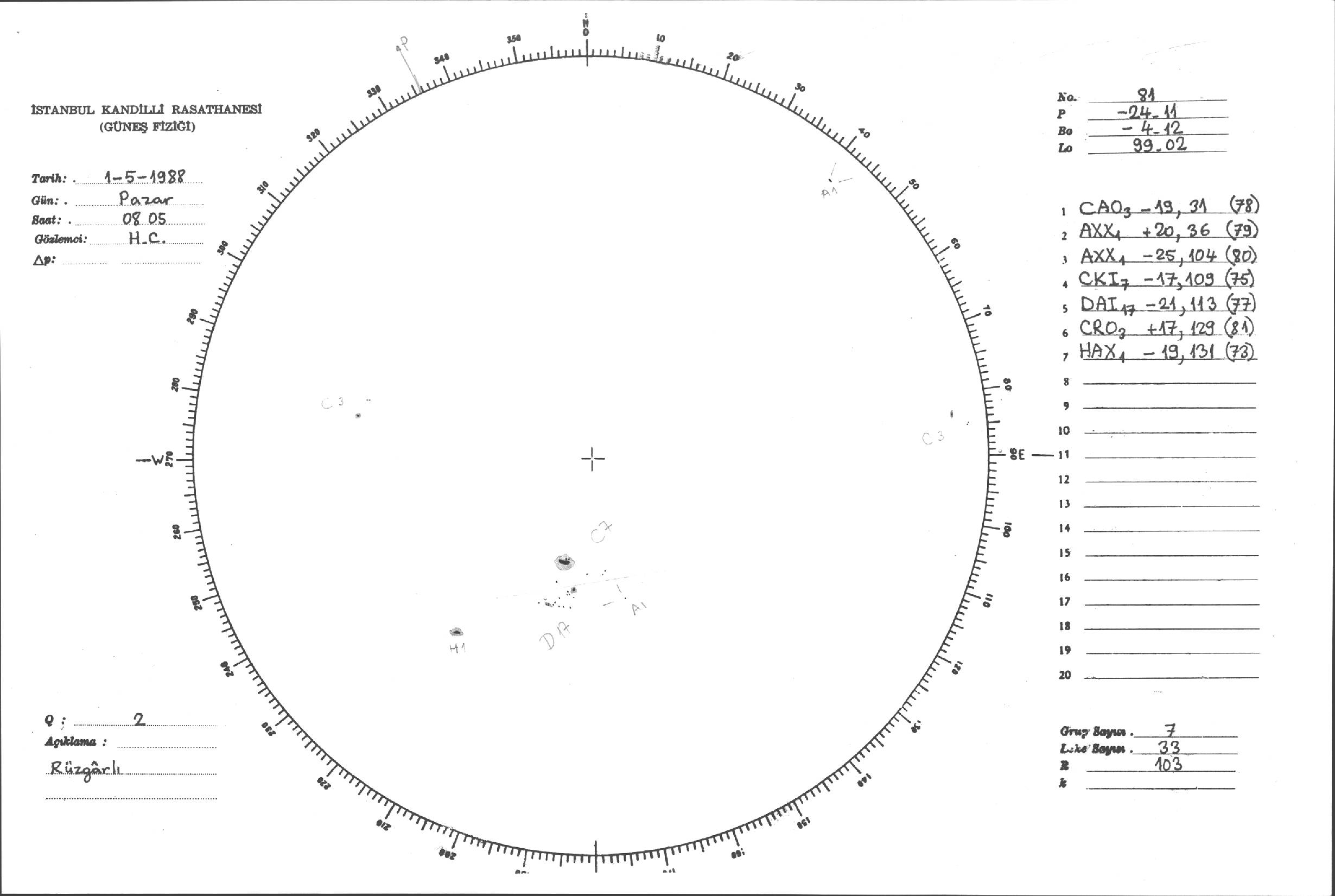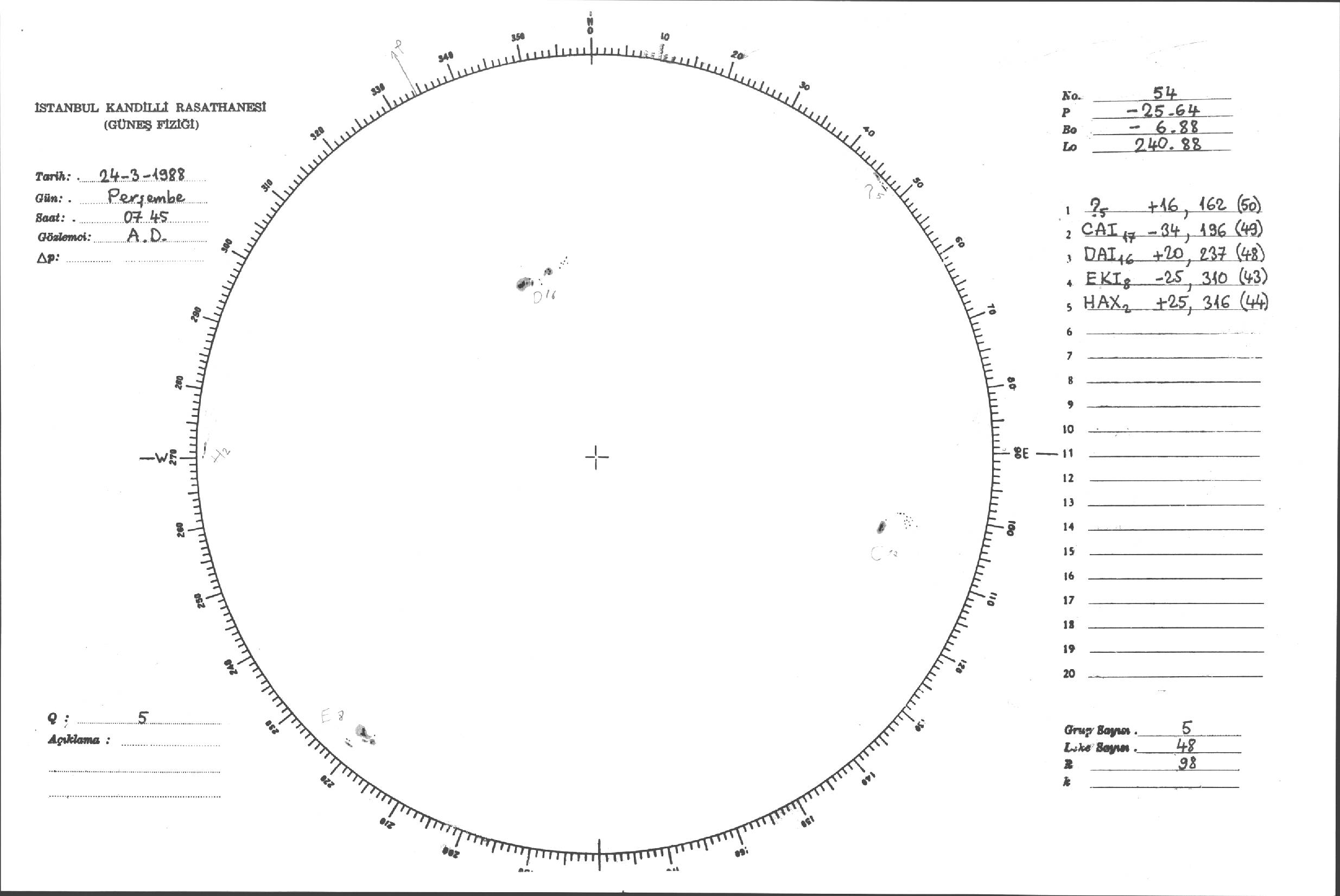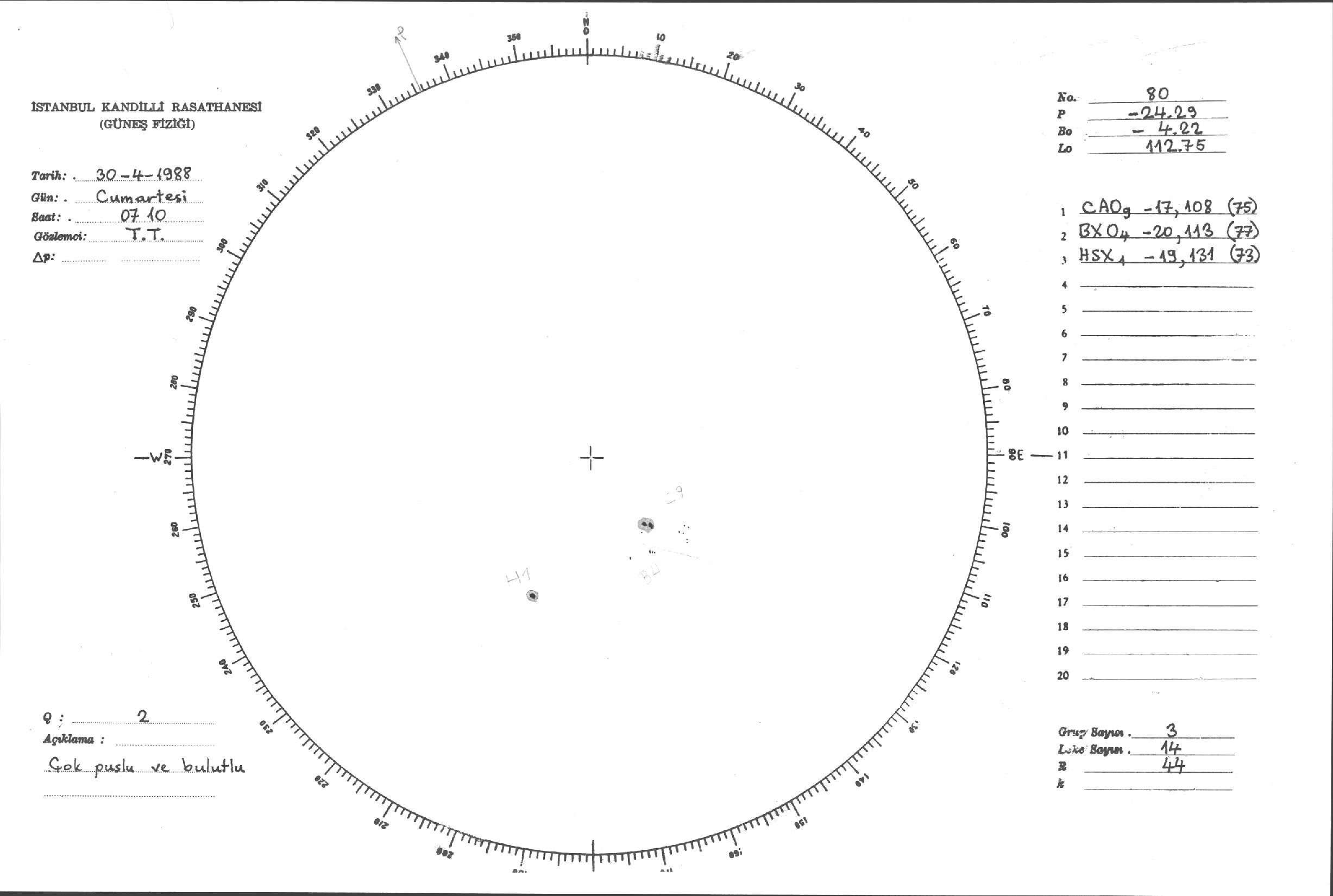 Güneş Lekesi Çizimleri / Kandilli Sunspot Drawings
