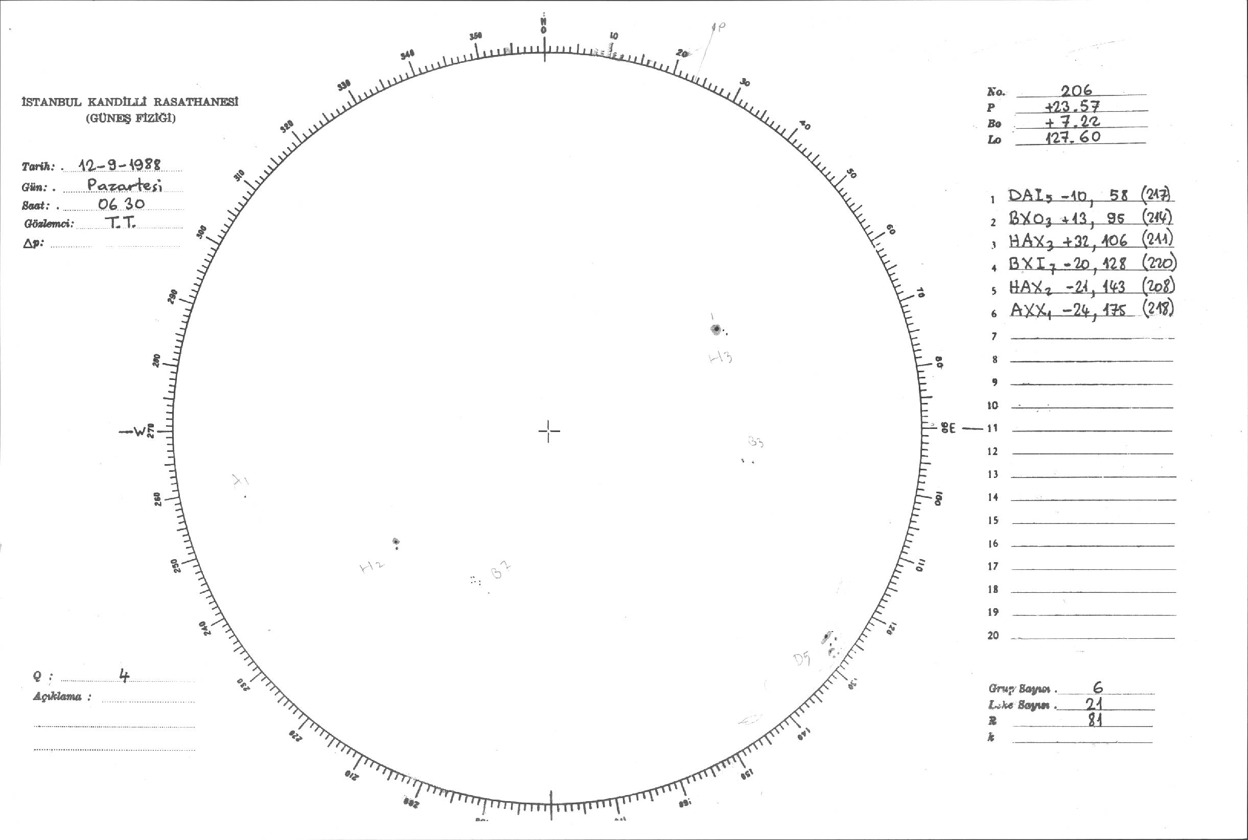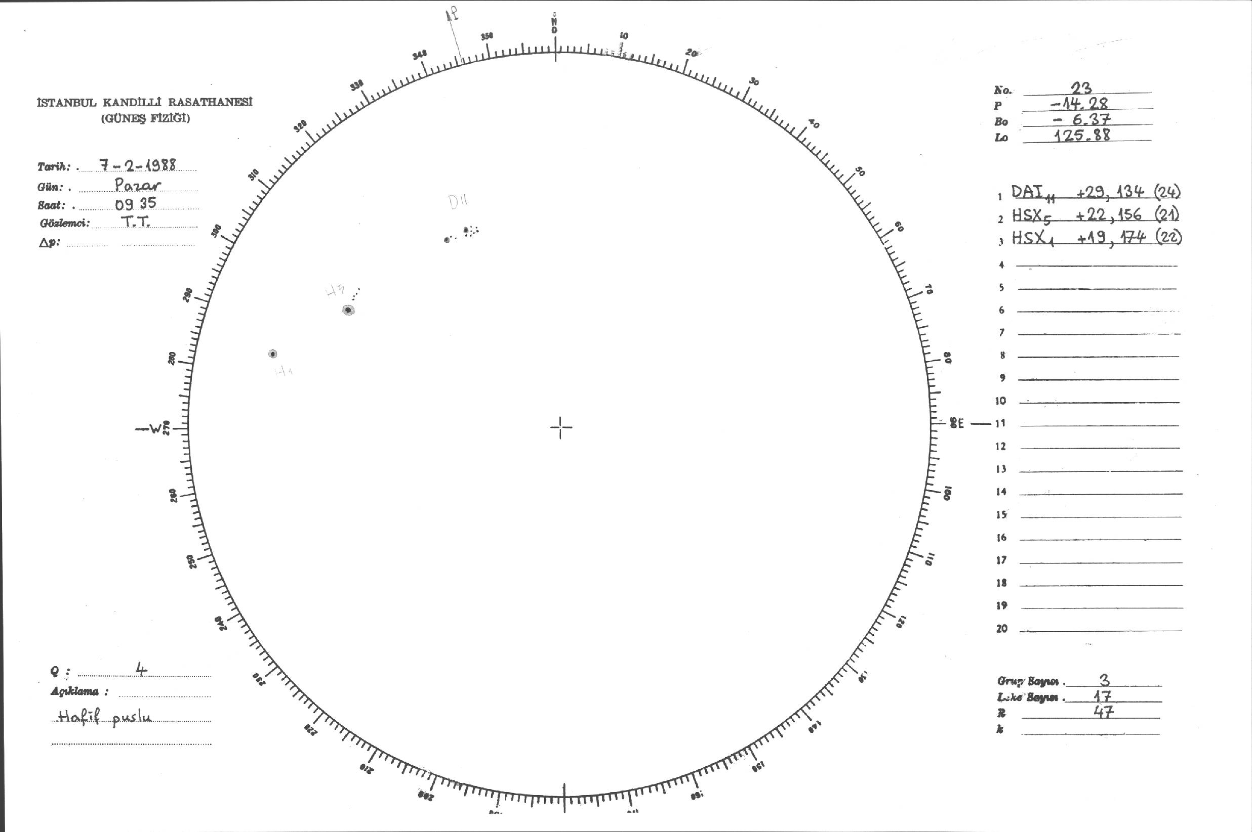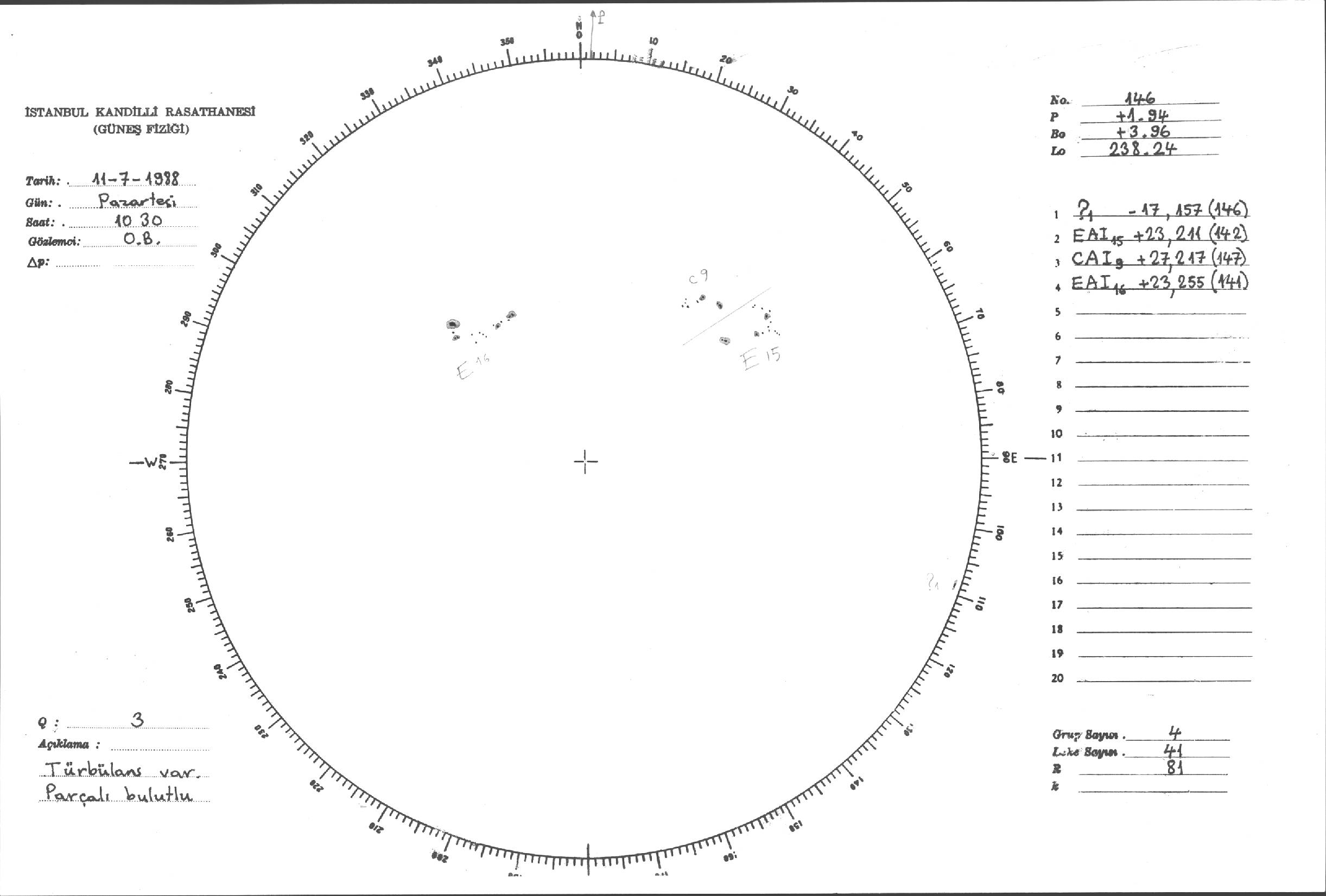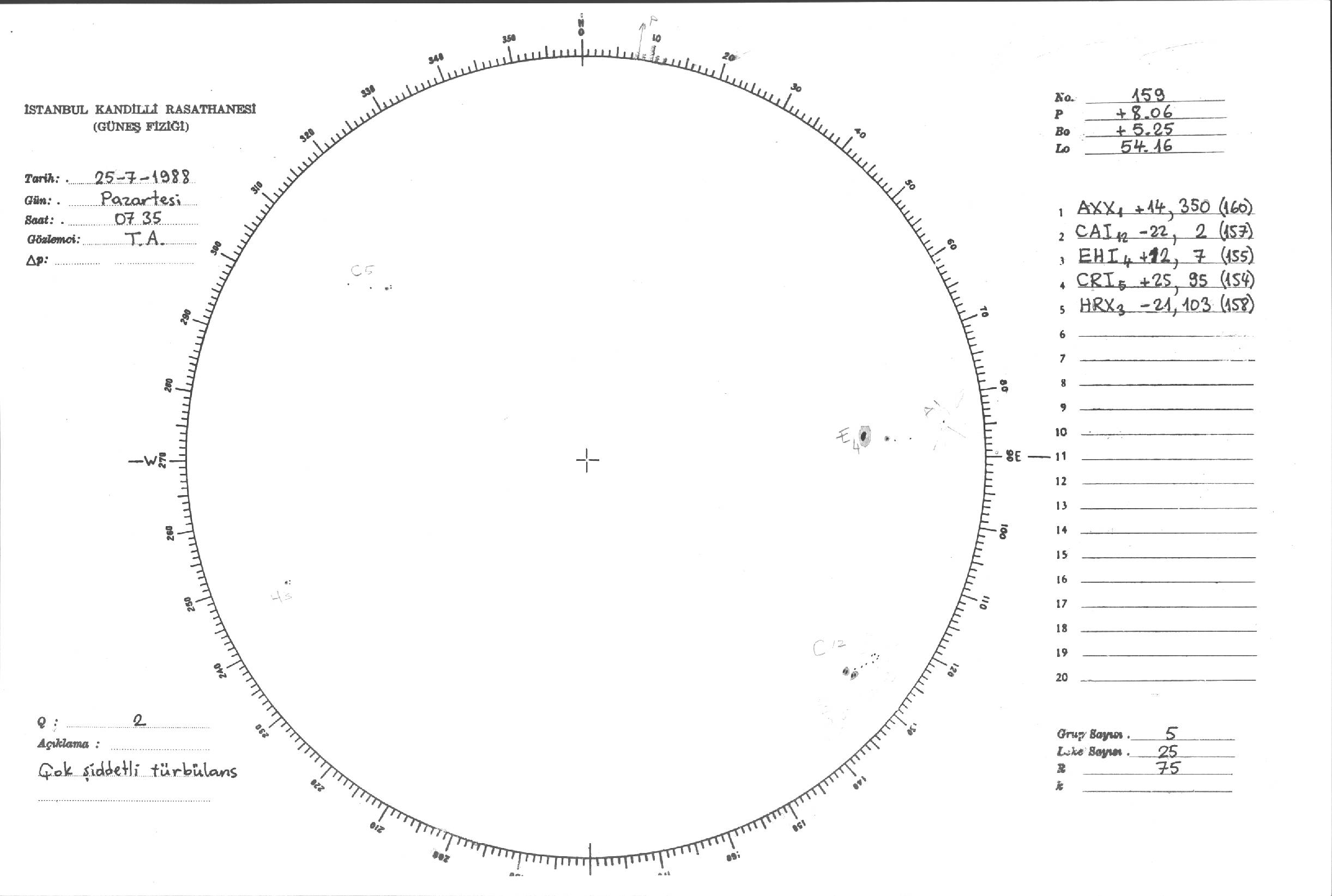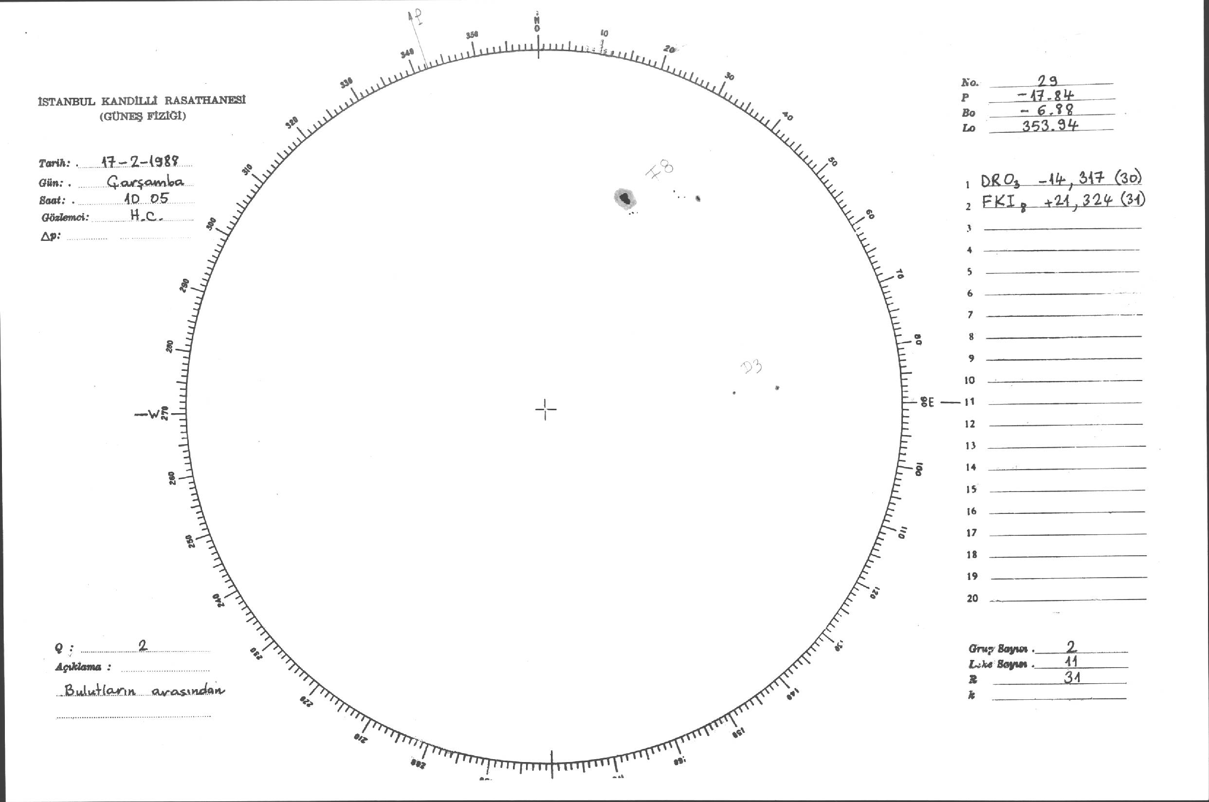 Güneş Lekesi Çizimleri / Kandilli Sunspot Drawings
