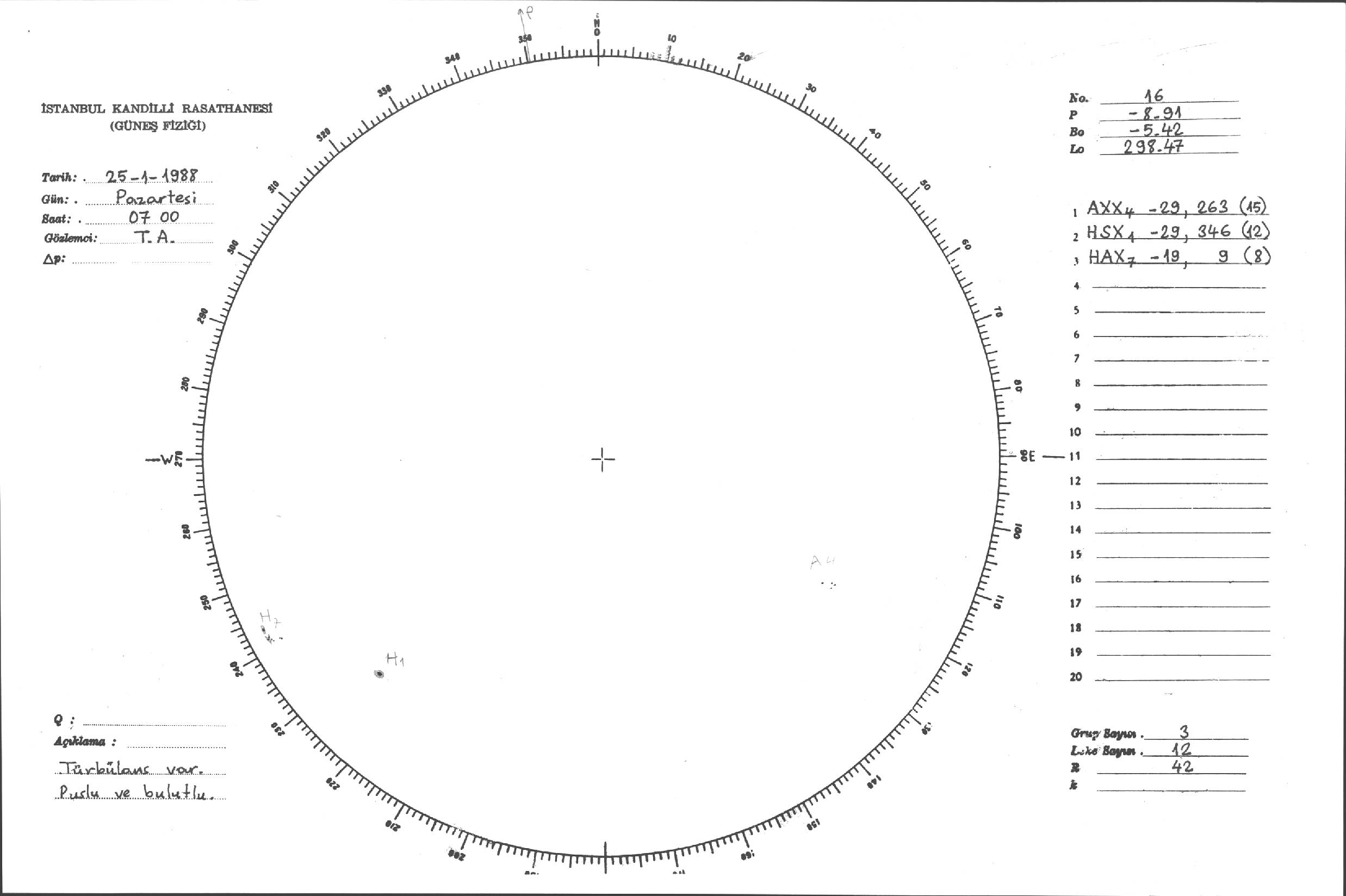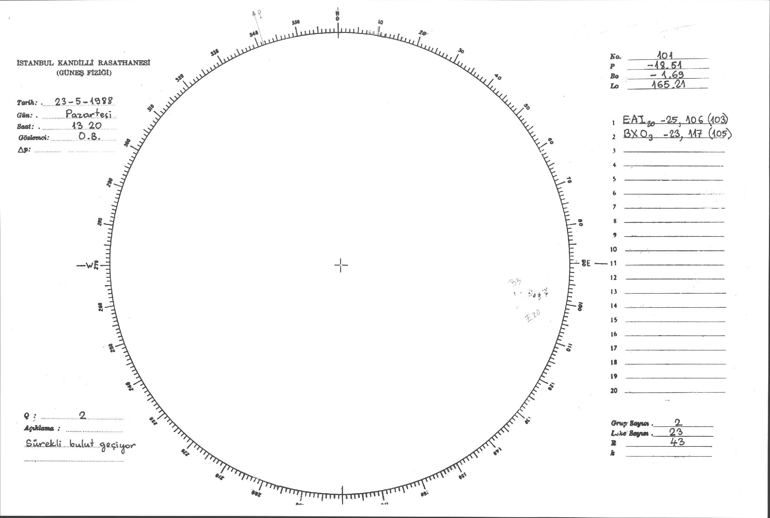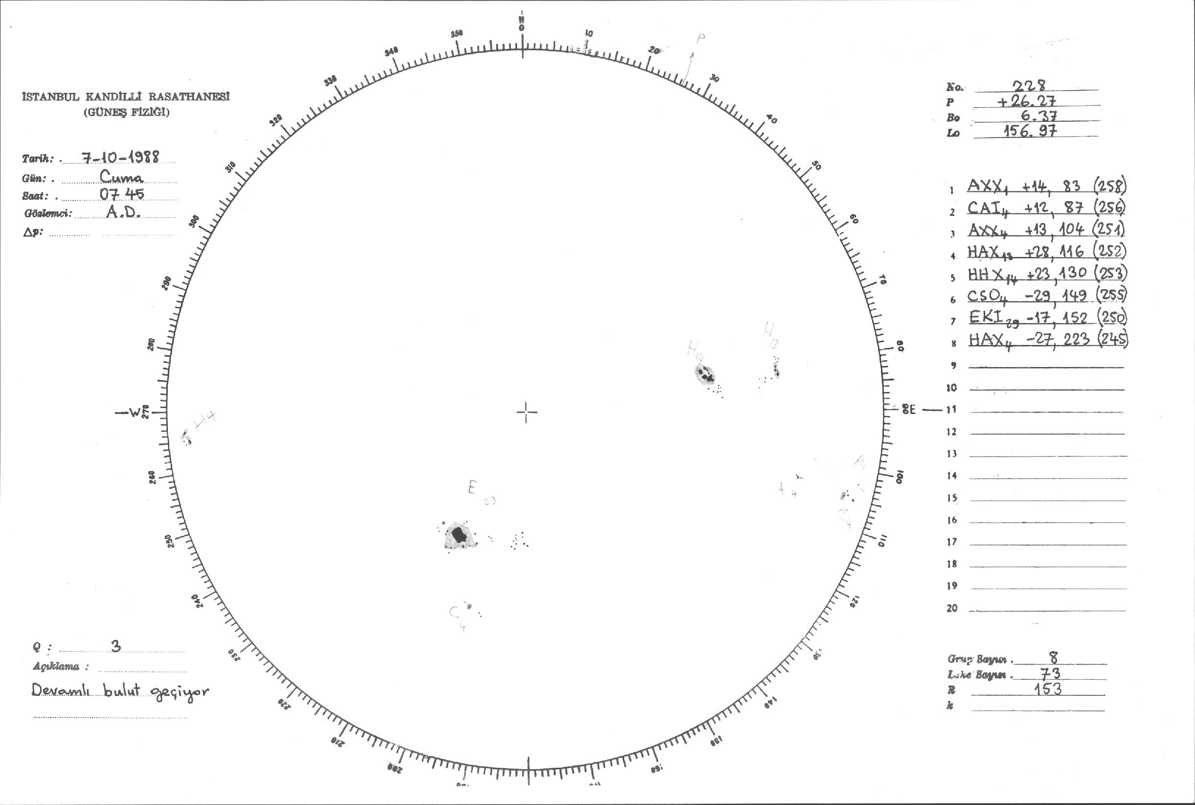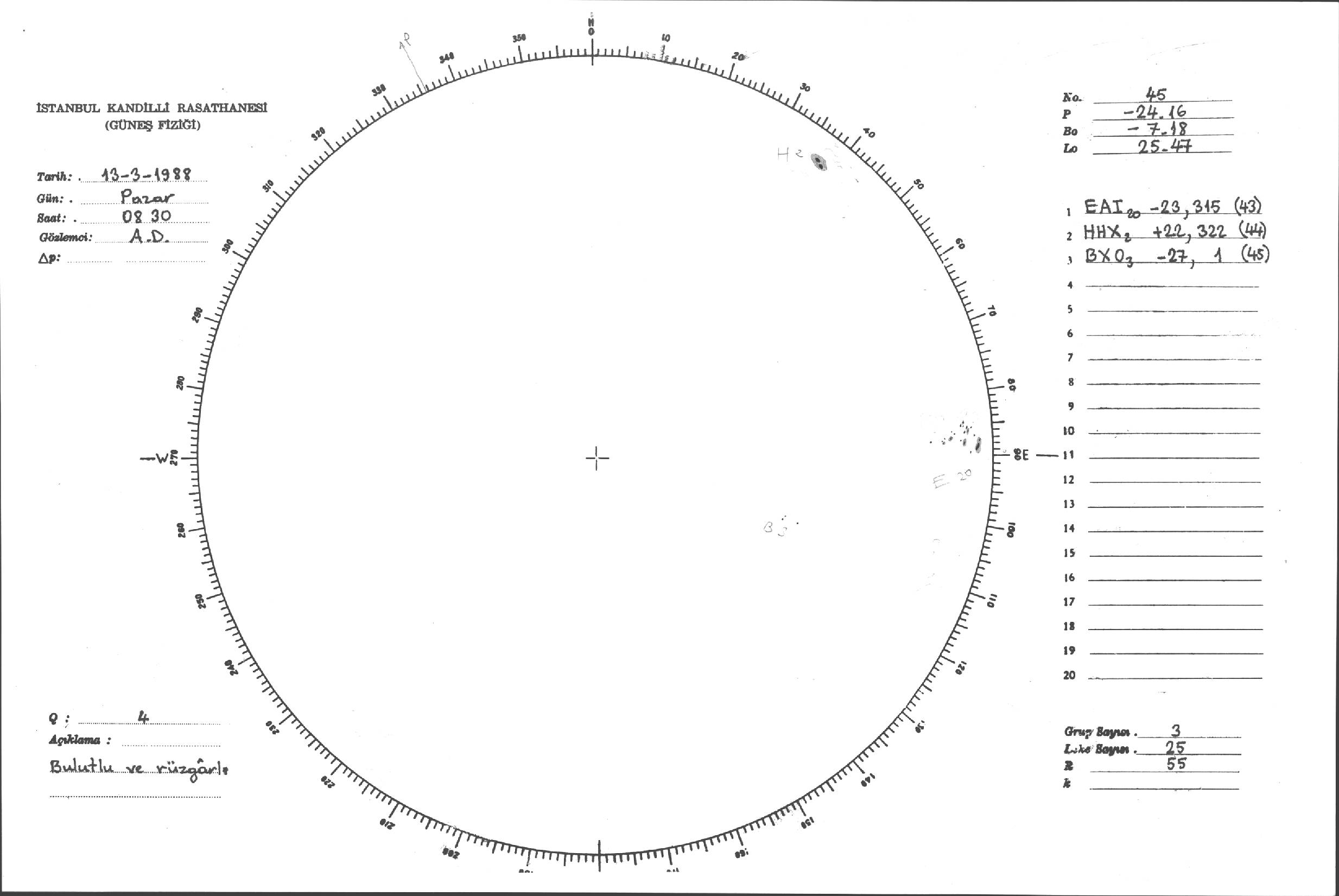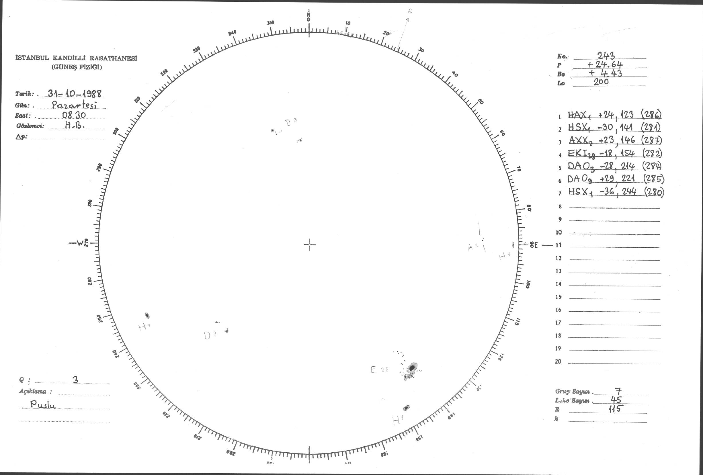Güneş Lekesi Çizimleri / Kandilli Sunspot Drawings